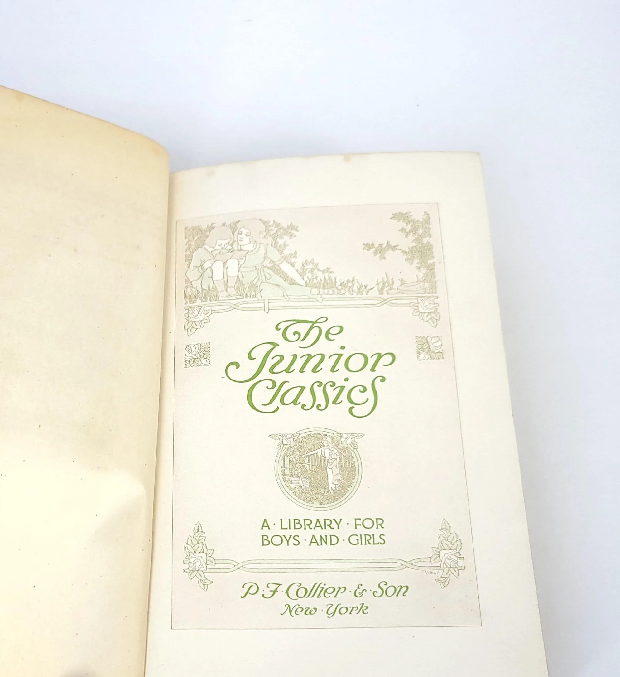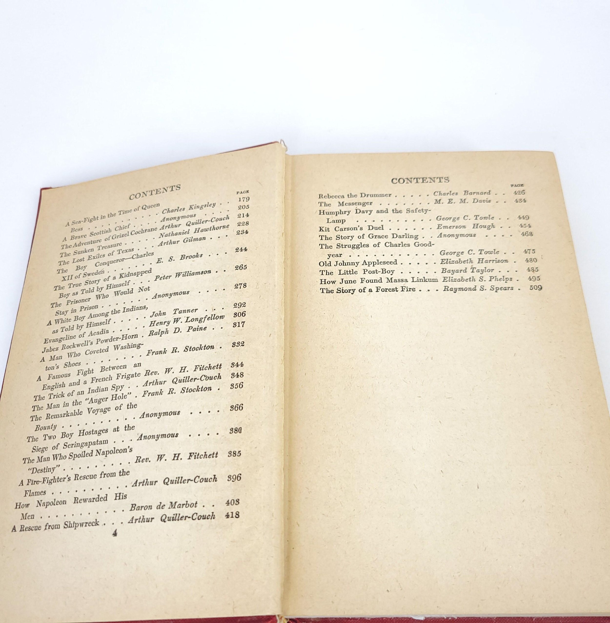 This gorgeous 1918 edition of The Junior Classics, A Library For Boys and Girls, Volume 7, Stories of Courage and Heroism, includes dozens of stories to inspire and astound. The book is in used condition with some wear and discoloration to the cover, bookplates and stamps from the original owner on the front and end pages along with some tape residue, one crack to the binding at the front and yellowing to the pages due to age.