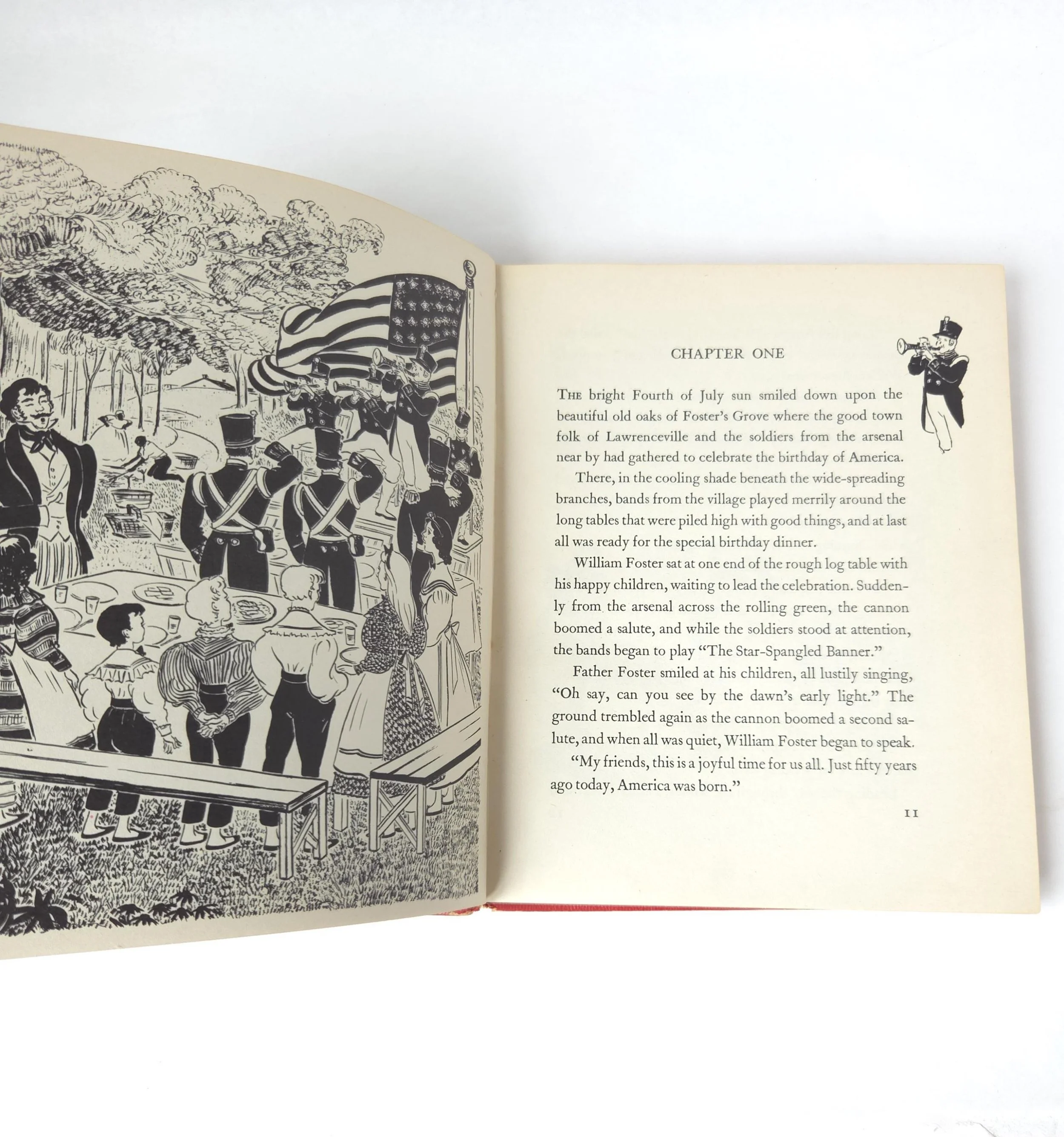 This beautiful 1935 edition of A Child's Book of Modern Stories features stories compiled by Ada and Eleanor Skinner and illustrations by Jessie Skinner. The book is in good used condition with some minor wear to the cover, a small tear to the illustration on the front, some cracking to the front and end pages near the spine, but no torn or marked pages, a solid binding and good color quality.