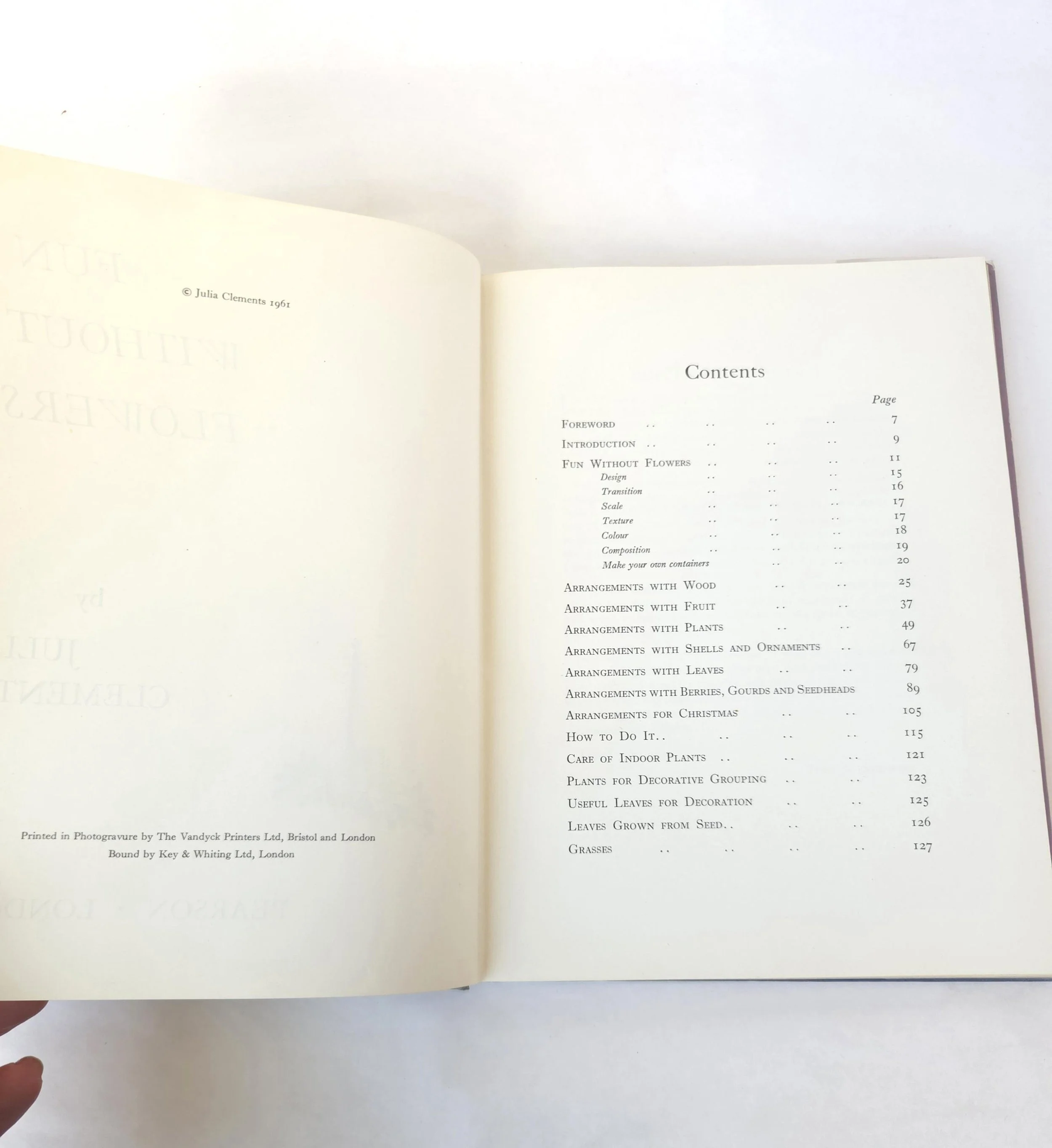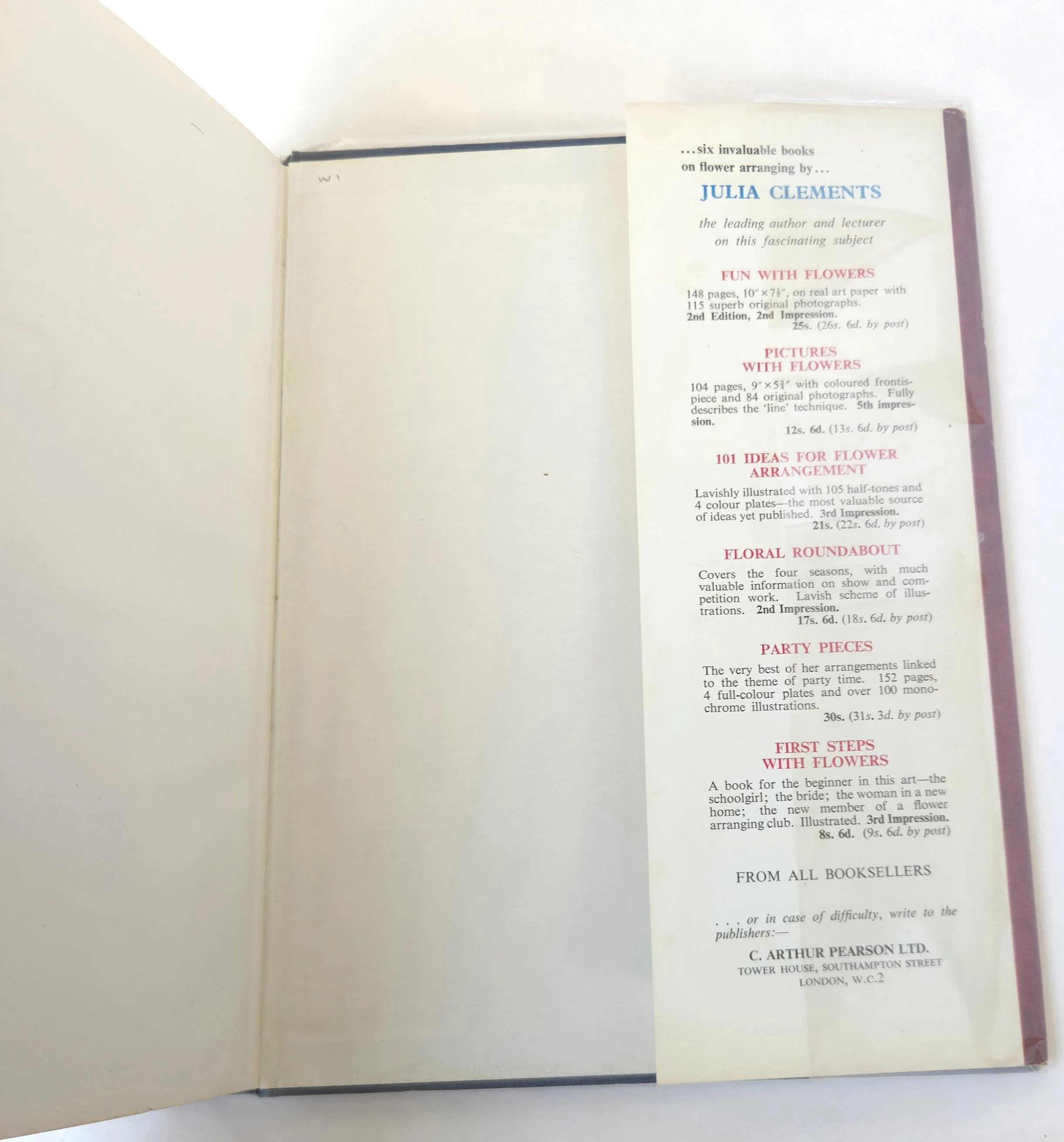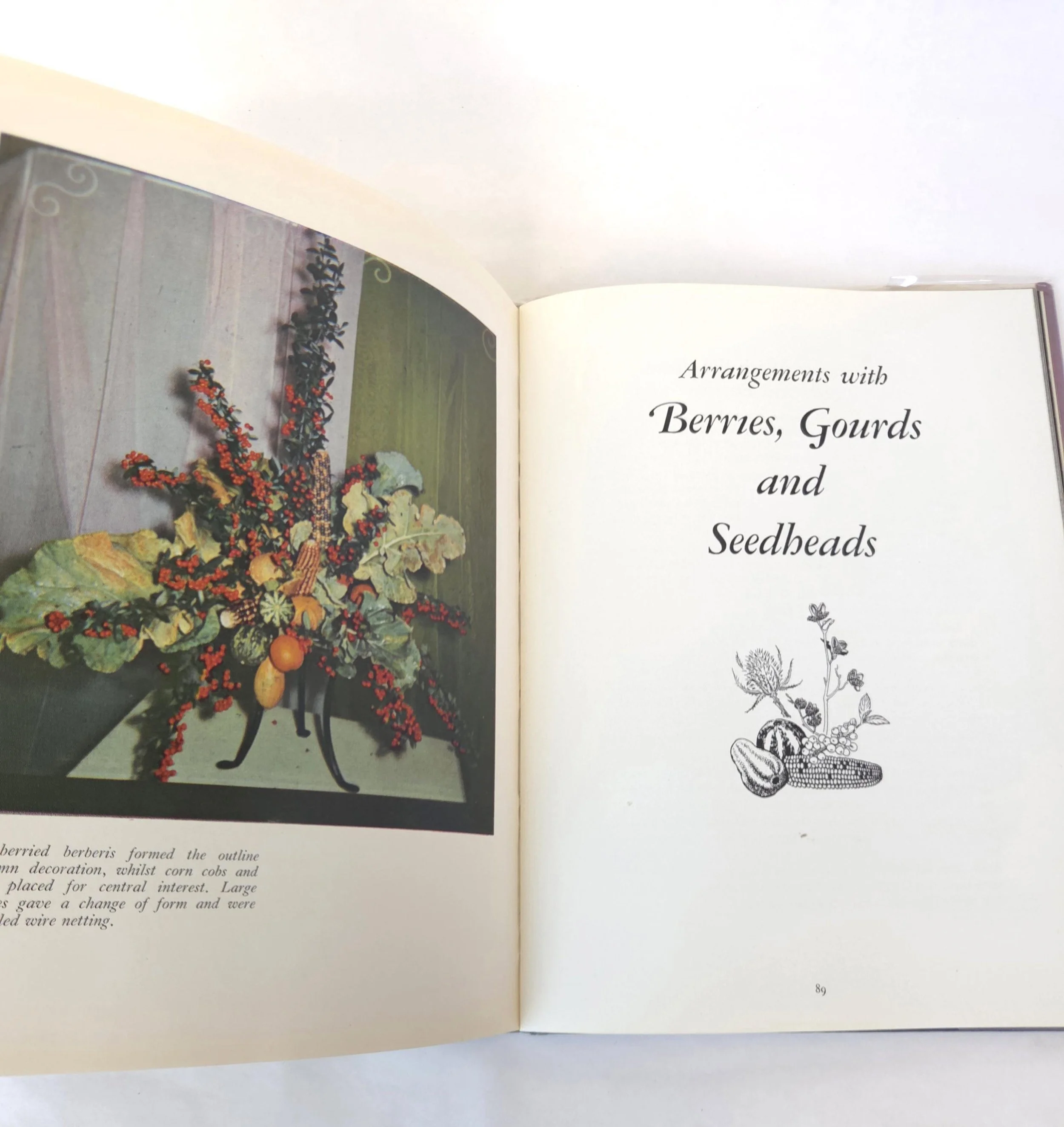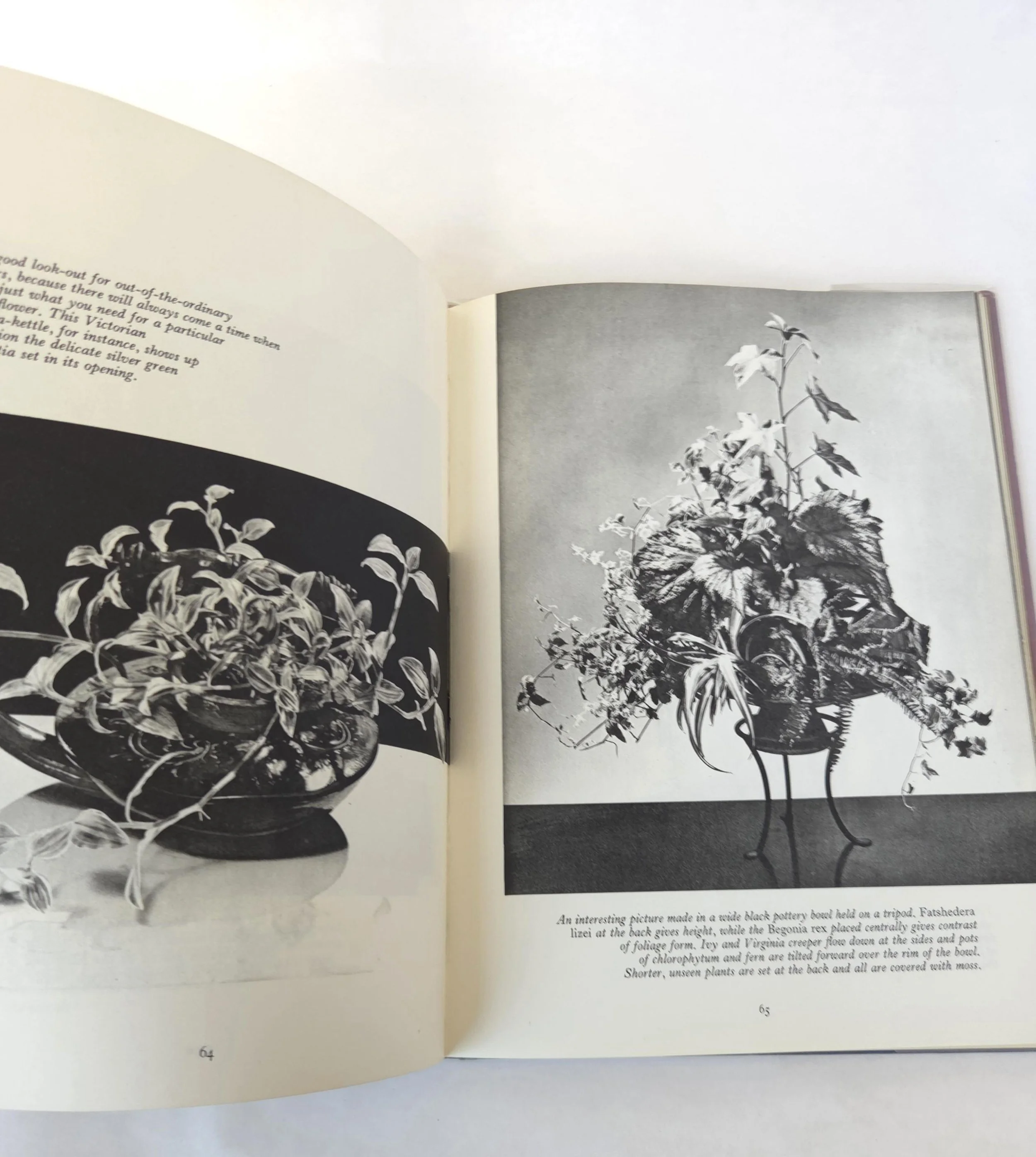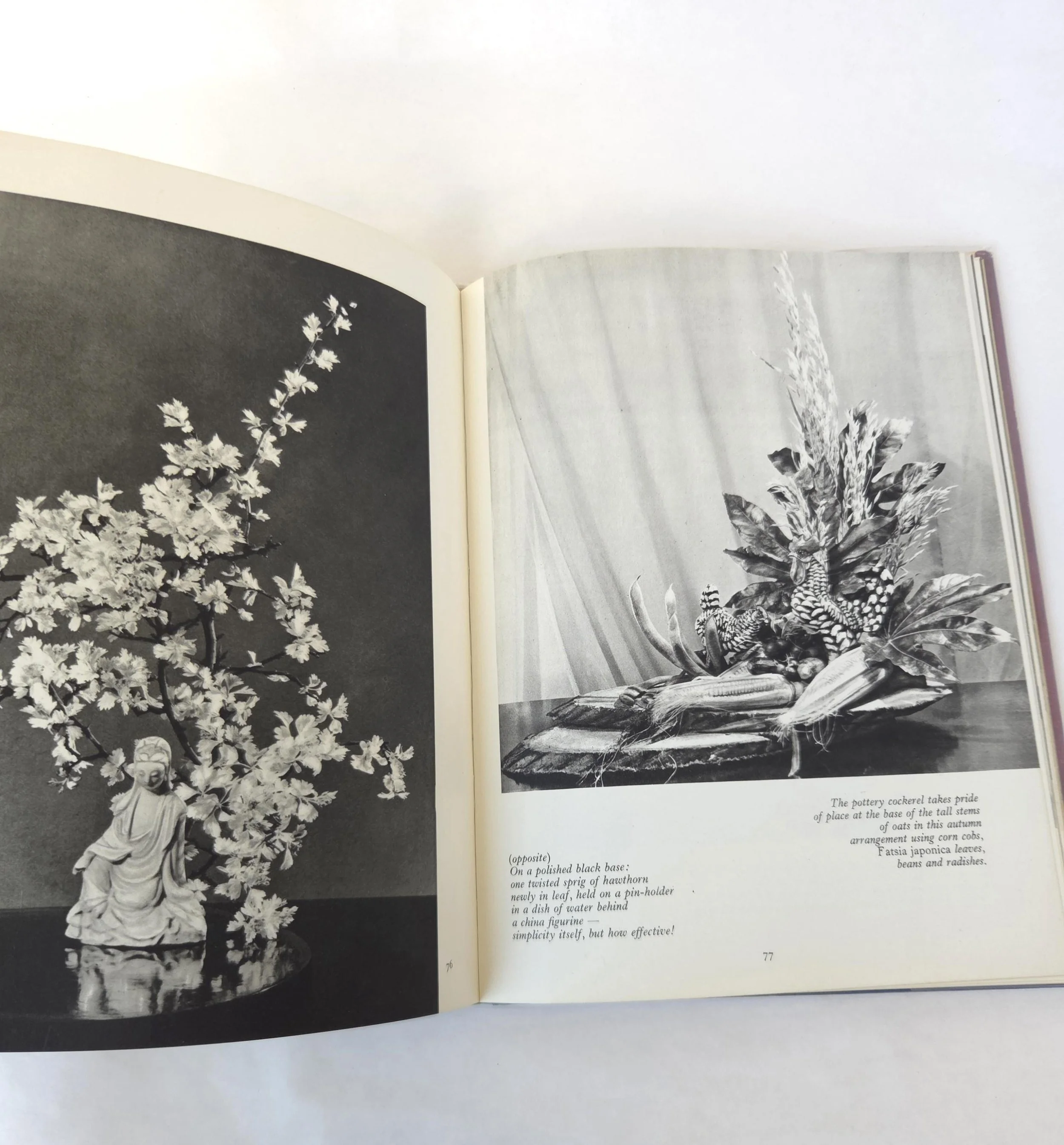 This gorgeous vintage 1939 hardcover first edition of Harmony in Flower Design (with 28 pages of photographs) features arrangements by Isabel T. Ackerman, Rose Batterham Houskeeper, Emma E. and Thacher. This key text of the era focuses on achieving a cohesive and intentional blend of materials, colors, and textures in floral arrangement and design. This copy is in used vintage condition with the dust jacket missing and some minor wear to the edges of the cloth cover. There is some tanning to the end pages and a crack to the spine towards the center of the book that reveals the glue and webbing, but no torn or marked pages and good overall color quality.