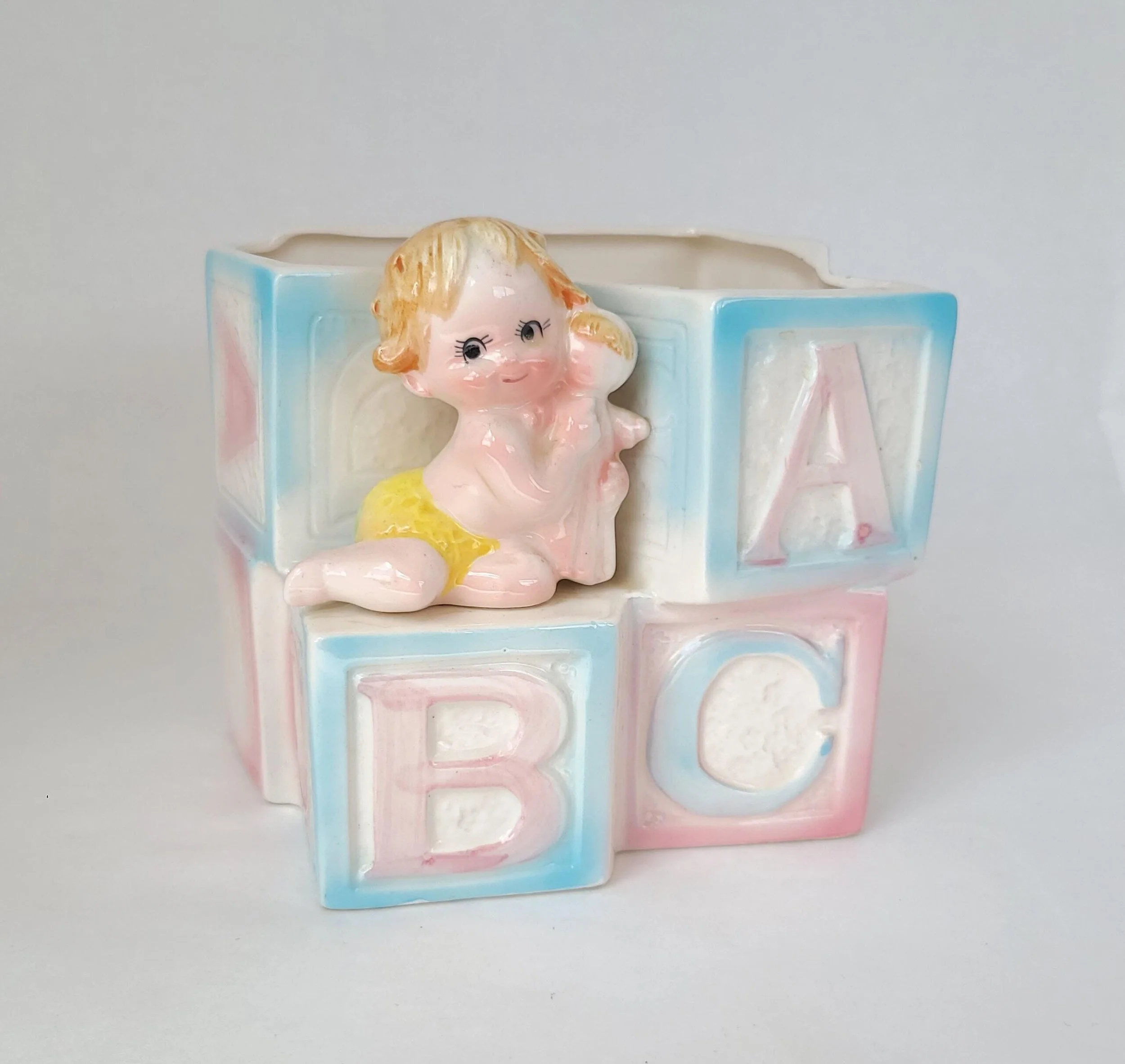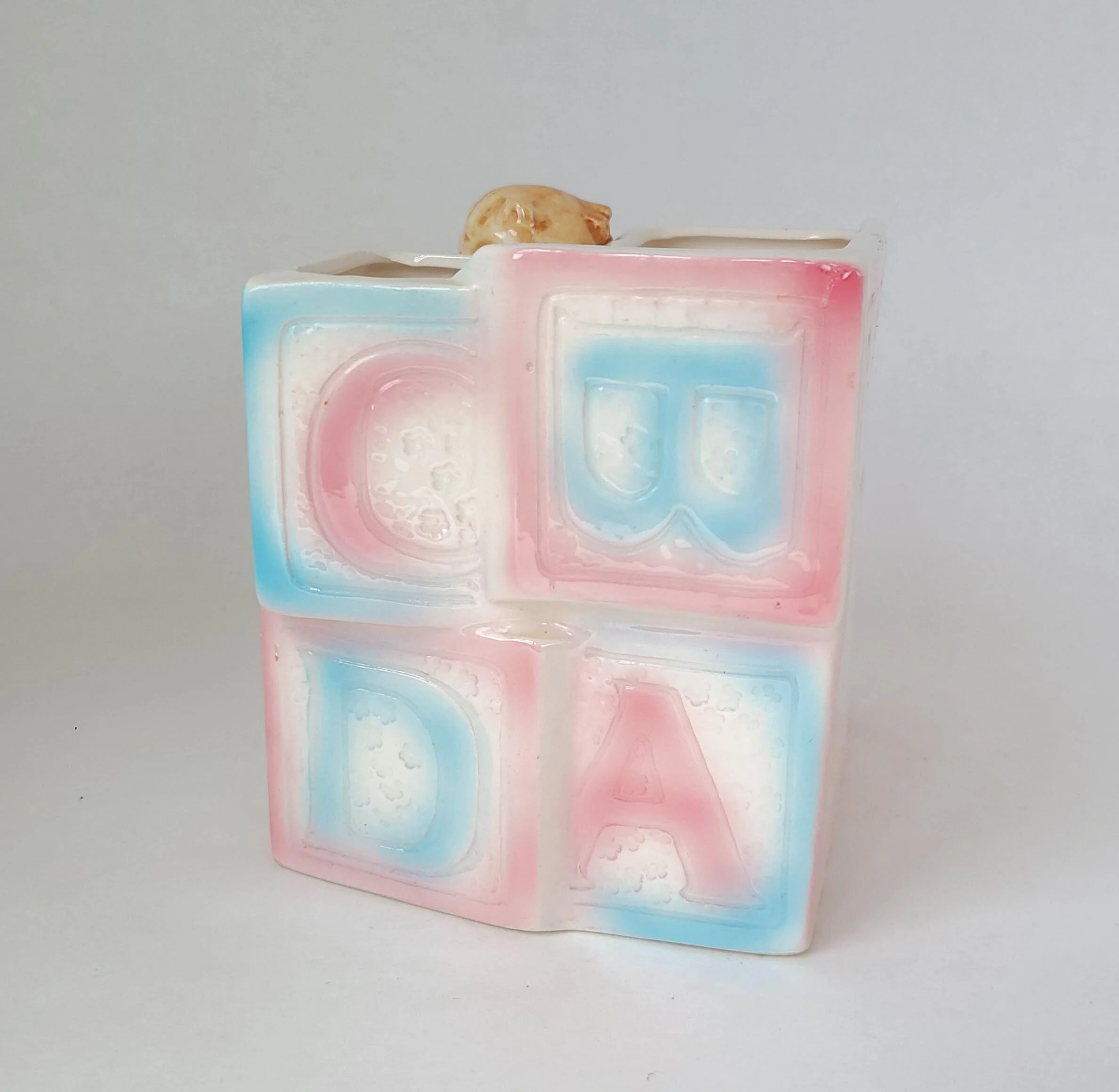 This gorgeous vintage 1940's General Electric Clock is known as their "Chef" design that was originally paired with a matching timer. This sleek mid century clock features a vibrant red bakelite / plastic body set with a gray frame around a round face and matching red knobs. The piece is in used vintage condition with some minor discoloration to some inner edges and some minor clouding to the clear plastic dome over the face. There is a crack in the red case on the top right edge, but piece is still in working condition and has excellent overall color quality.