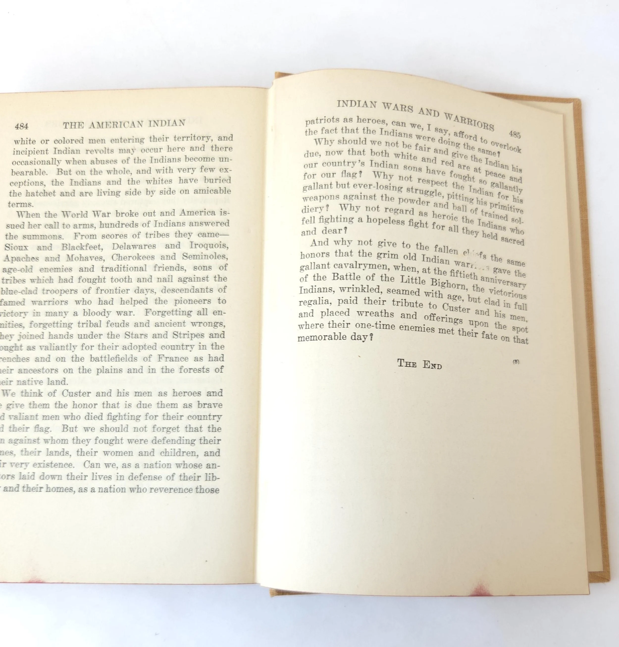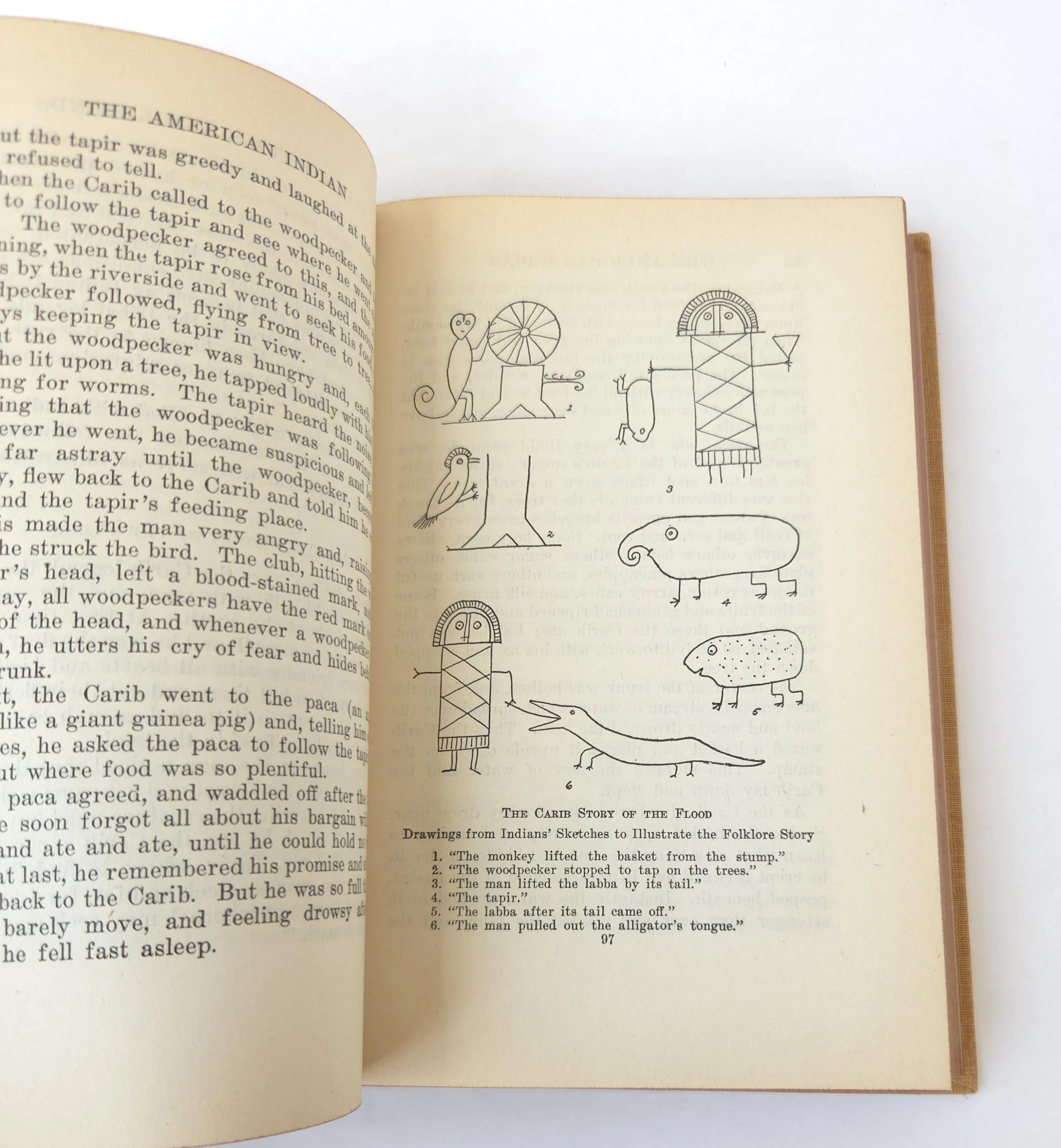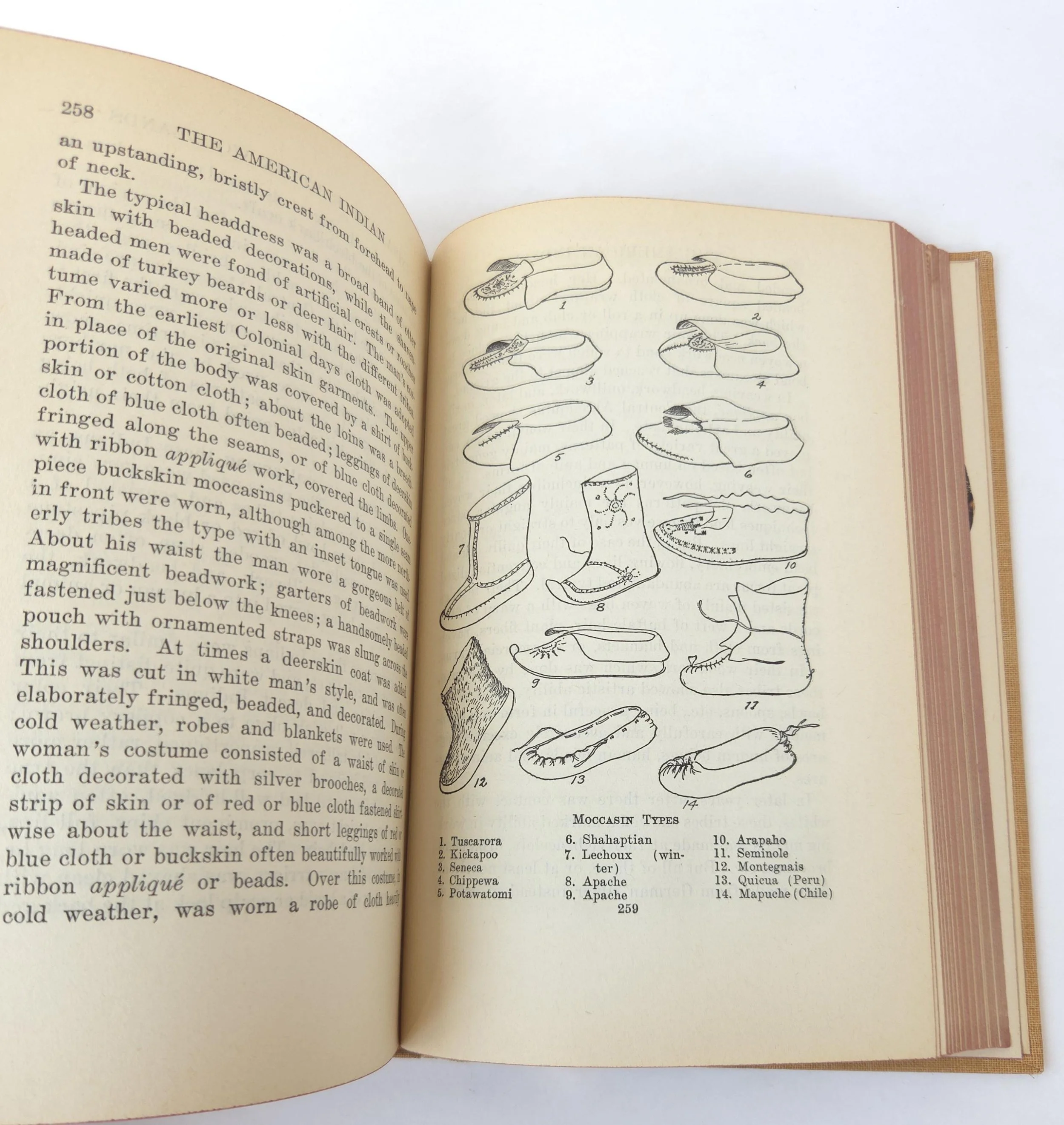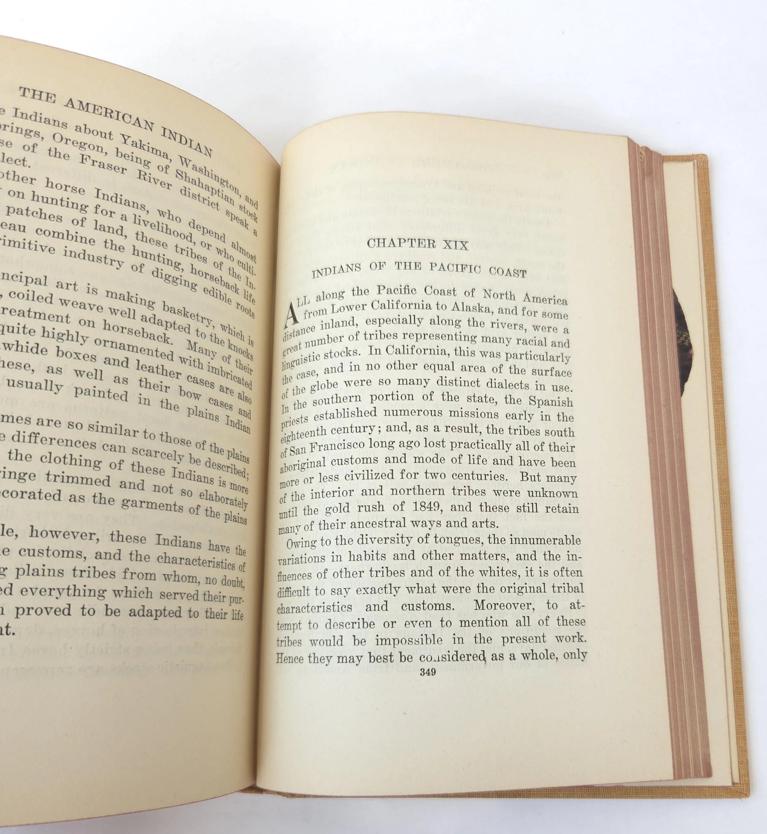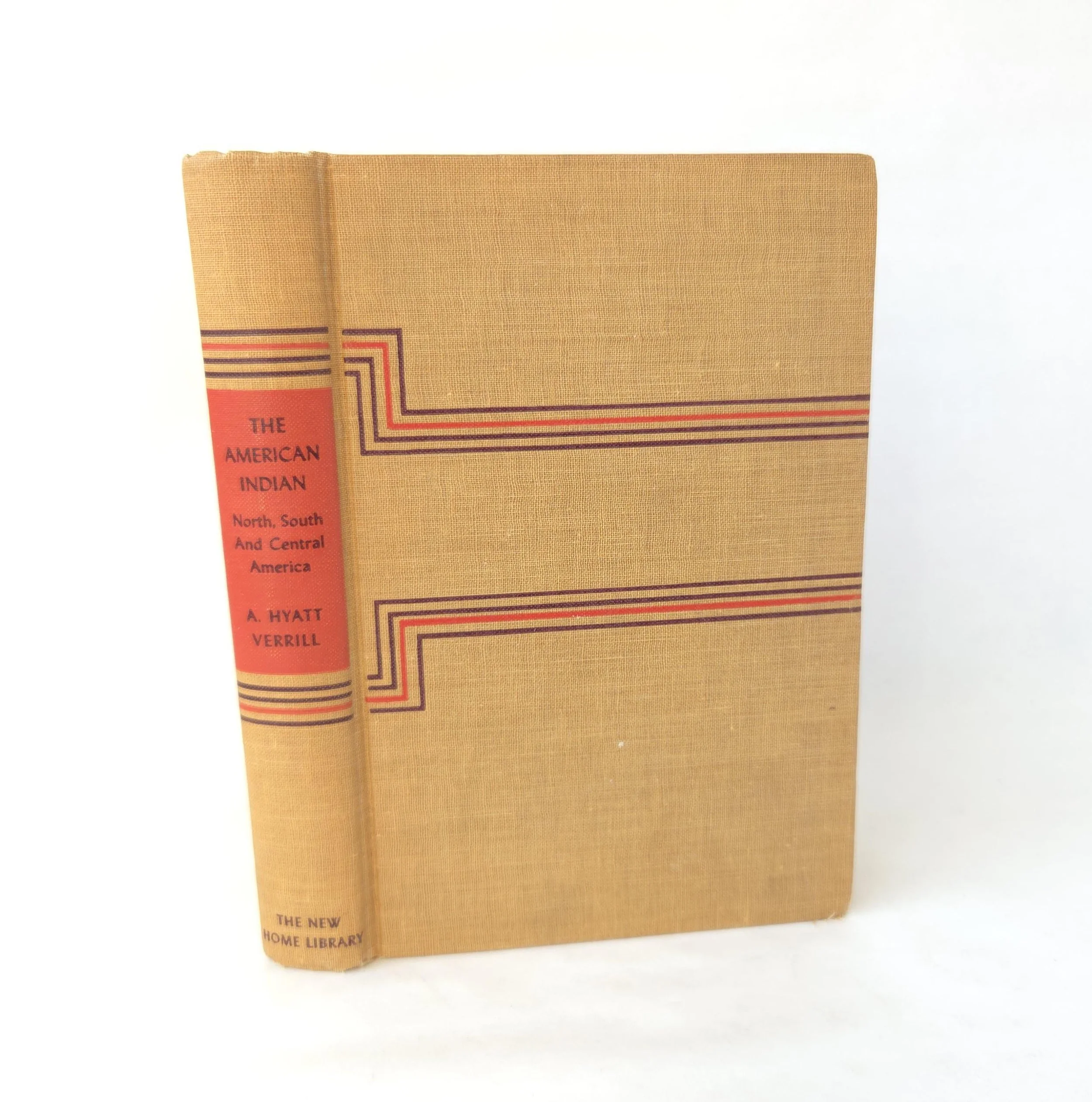 This beautiful vintage 1943 hardcover edition of The American Indian: North, South and Central America was written by A. Hyatt Verrill. It is aimed to correct misconceptions about Native American cultures by detailing their history and traditions. This copy is in good used vintage condition with the dust jacket missing and some minor wear to the edges of the cloth cover. The original owner's name is written on the front end page and there are couple spots where the coloring on the outer edge of the pages has started to bleed, but there are no torn or marked pages and excellent overall color quality.