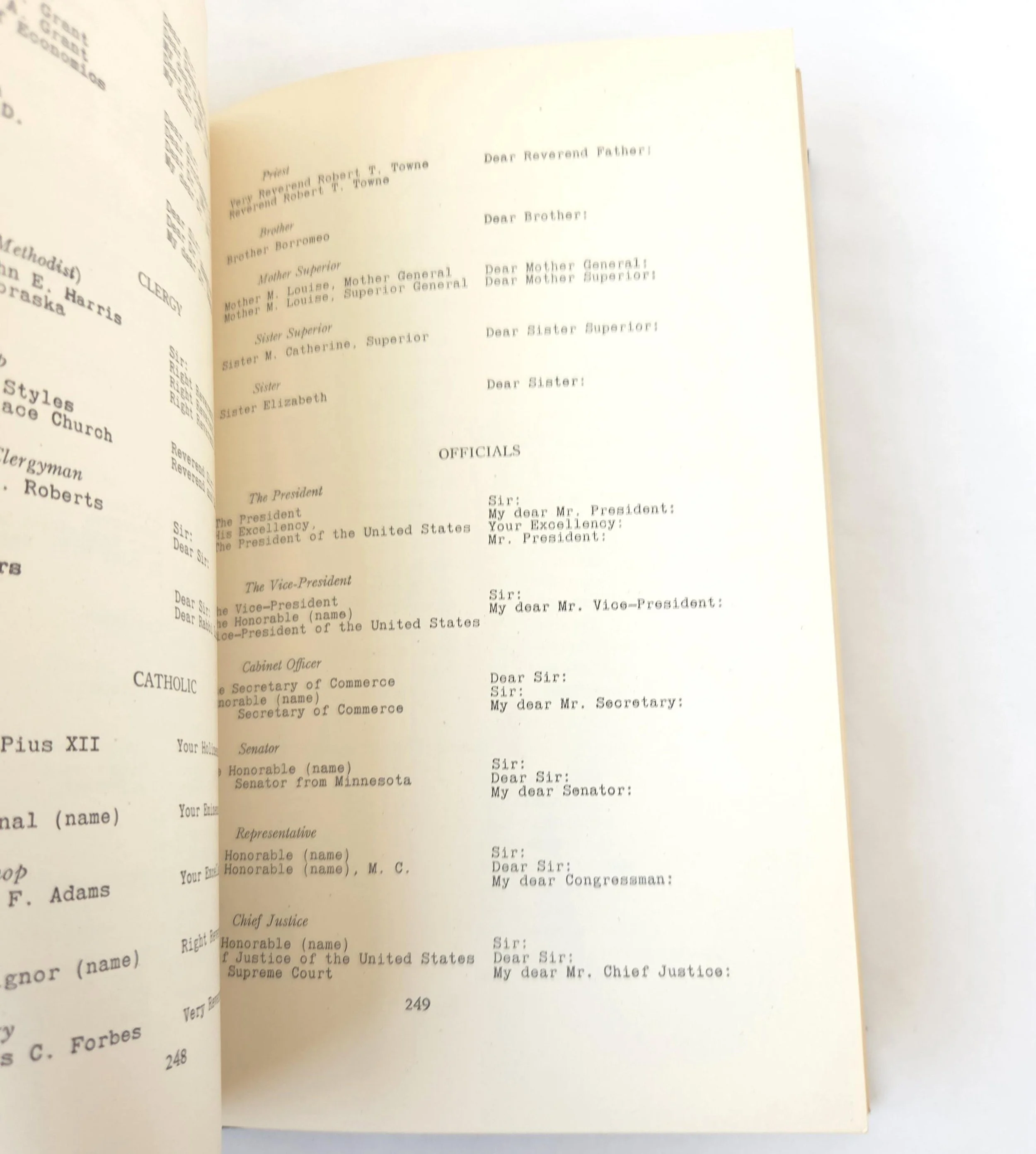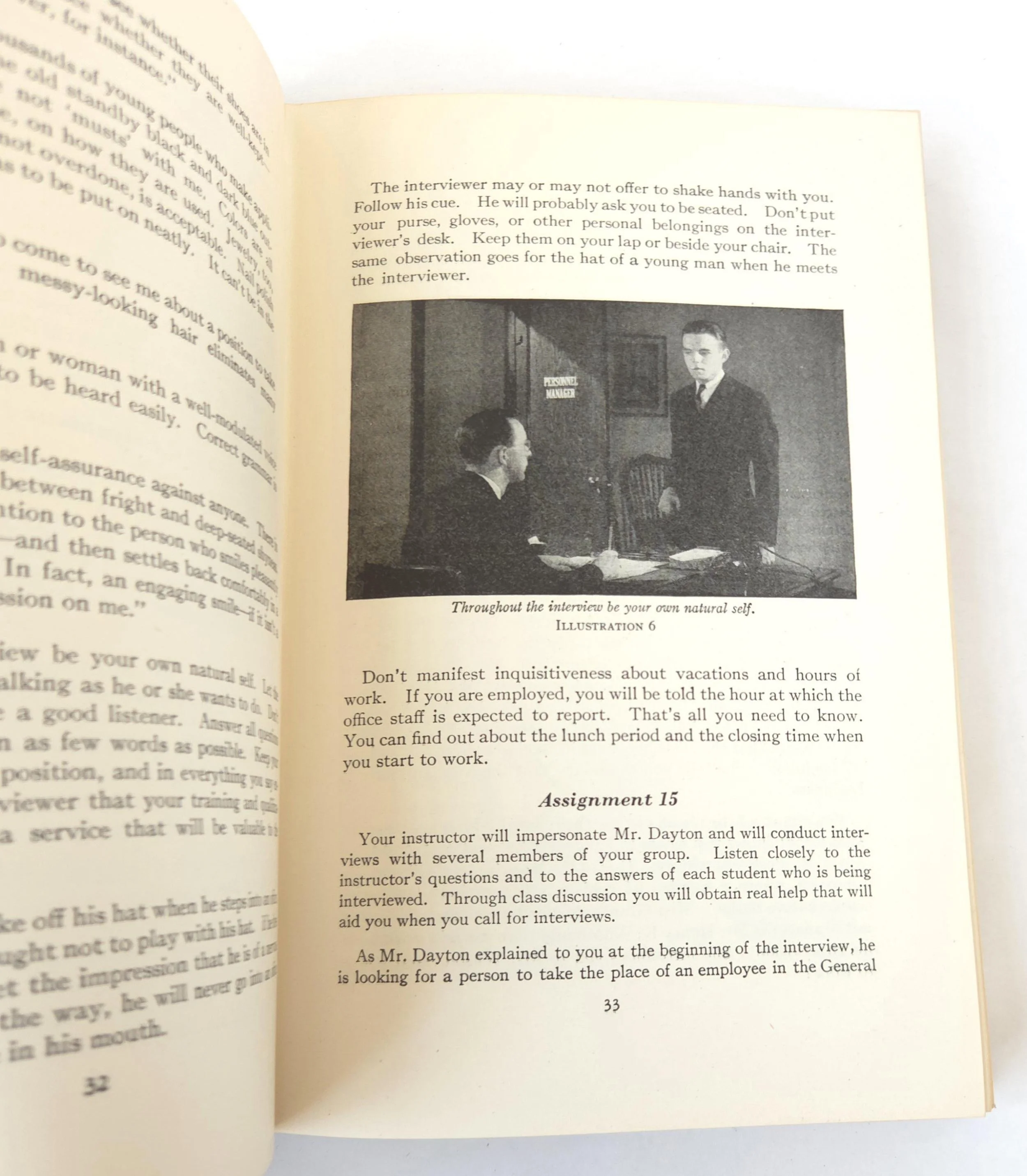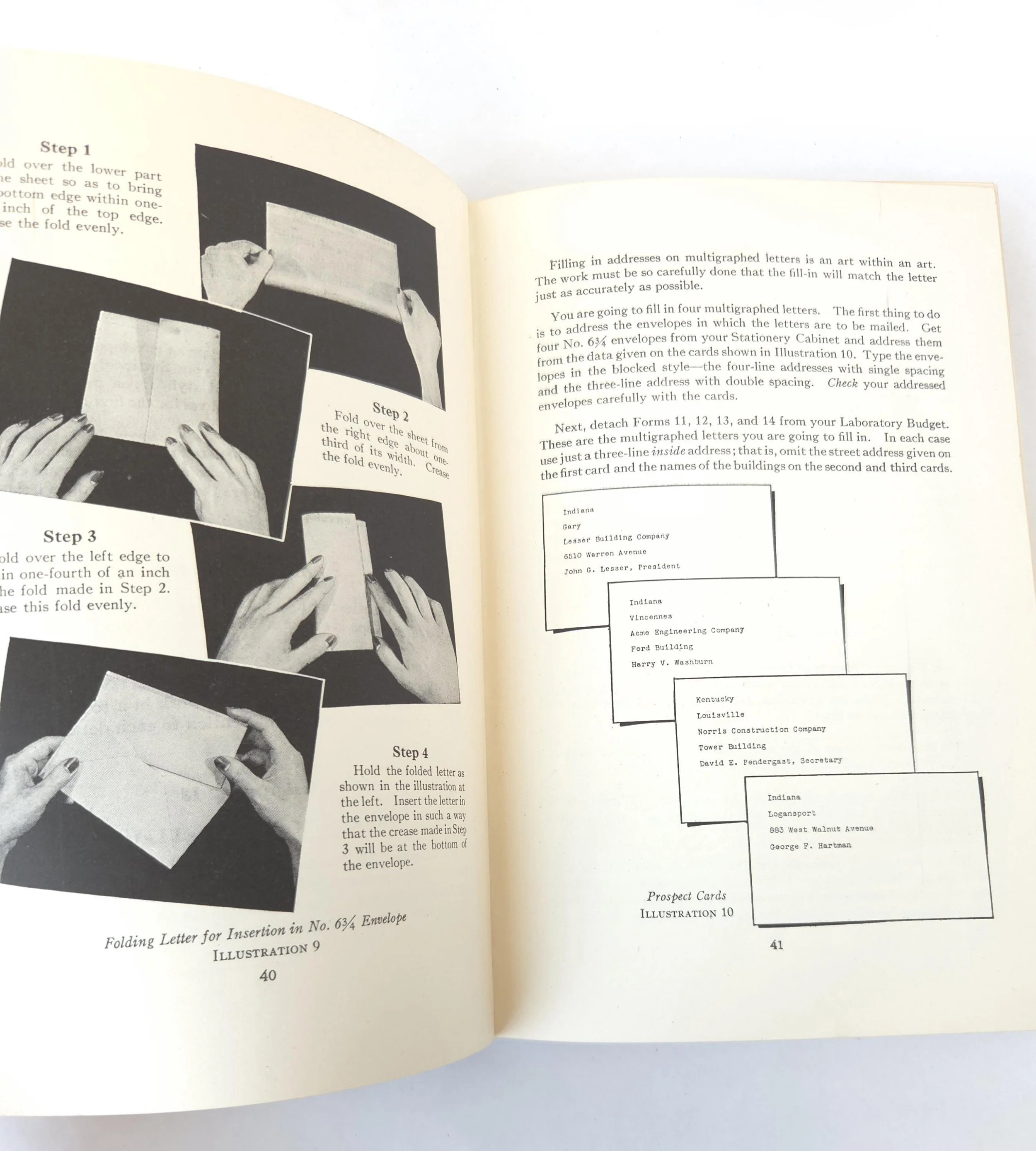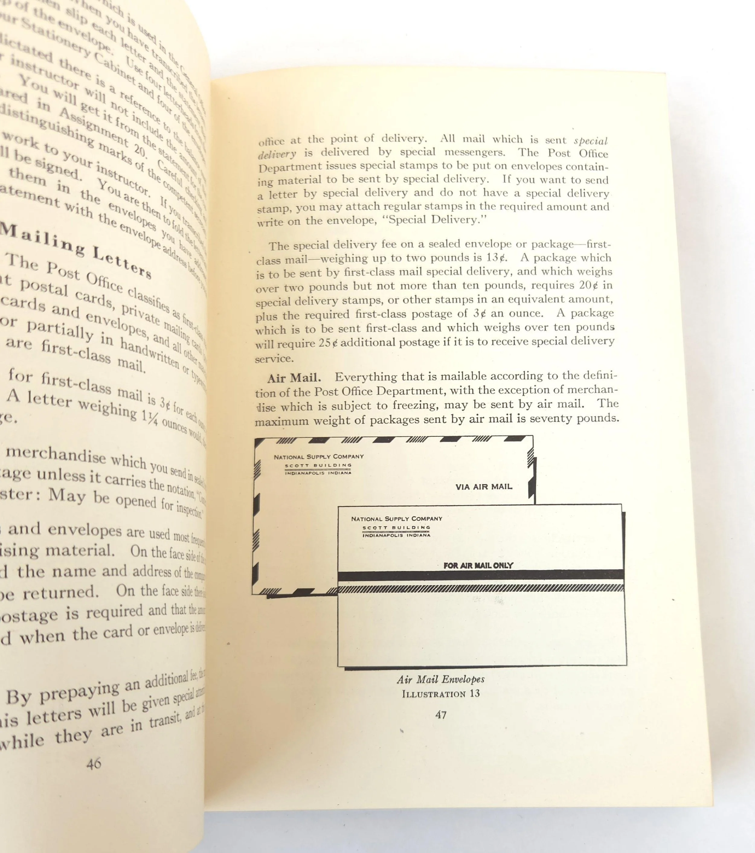 This charming vintage 1946 hardcover edition of College Secretarial Practice (Second Edition) was written by Charles G. Reigner. It is a course in the skills one needs to get a secretarial position, with tips on stenographic and general office work. This copy is in good used vintage condition with the dust jacket missing and some minor discoloration to the front cover. The original owner's name is written on the front end page and there are some pencil notes on a couple of pages, but there are no torn pages and the binding is solid.