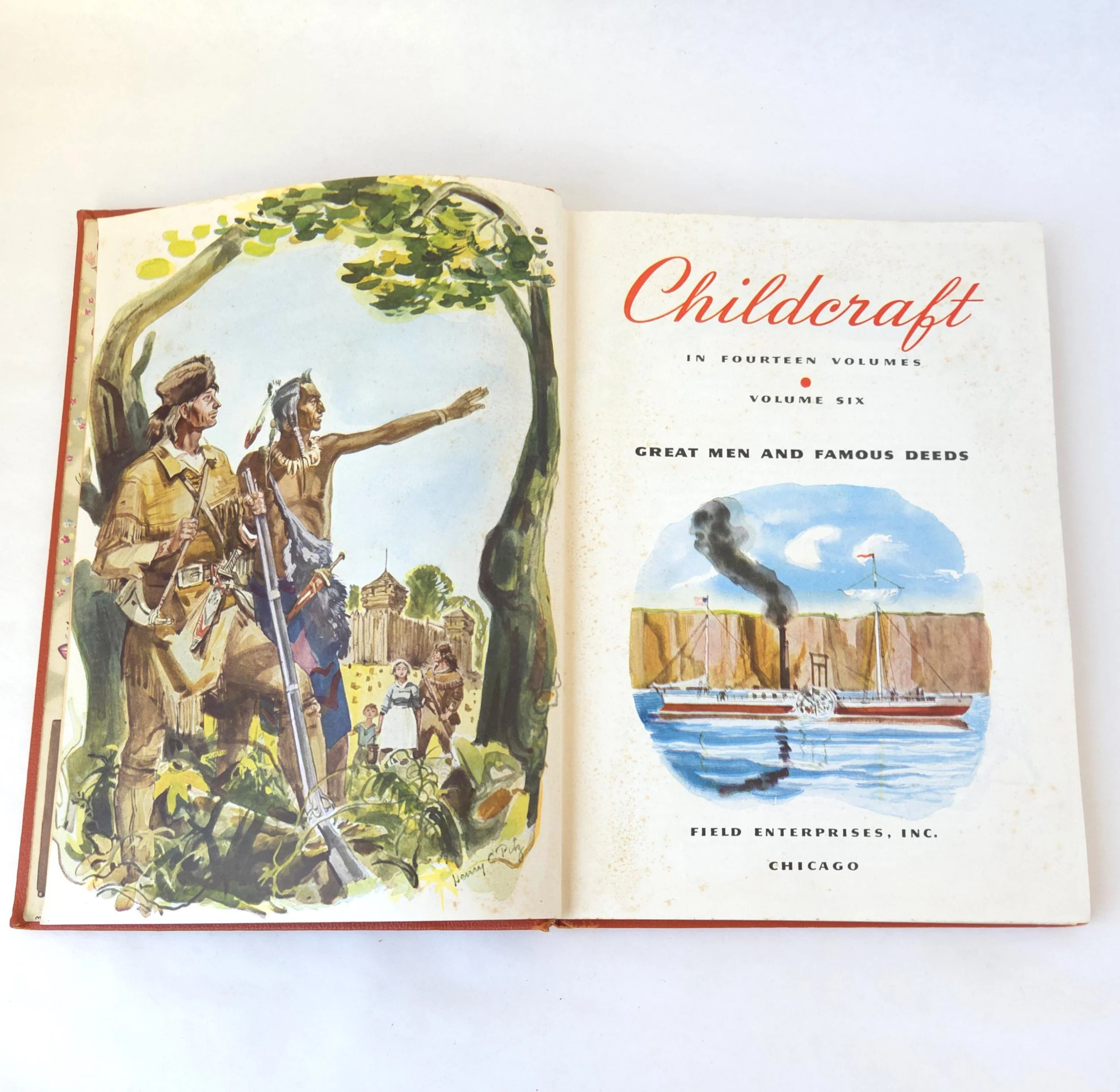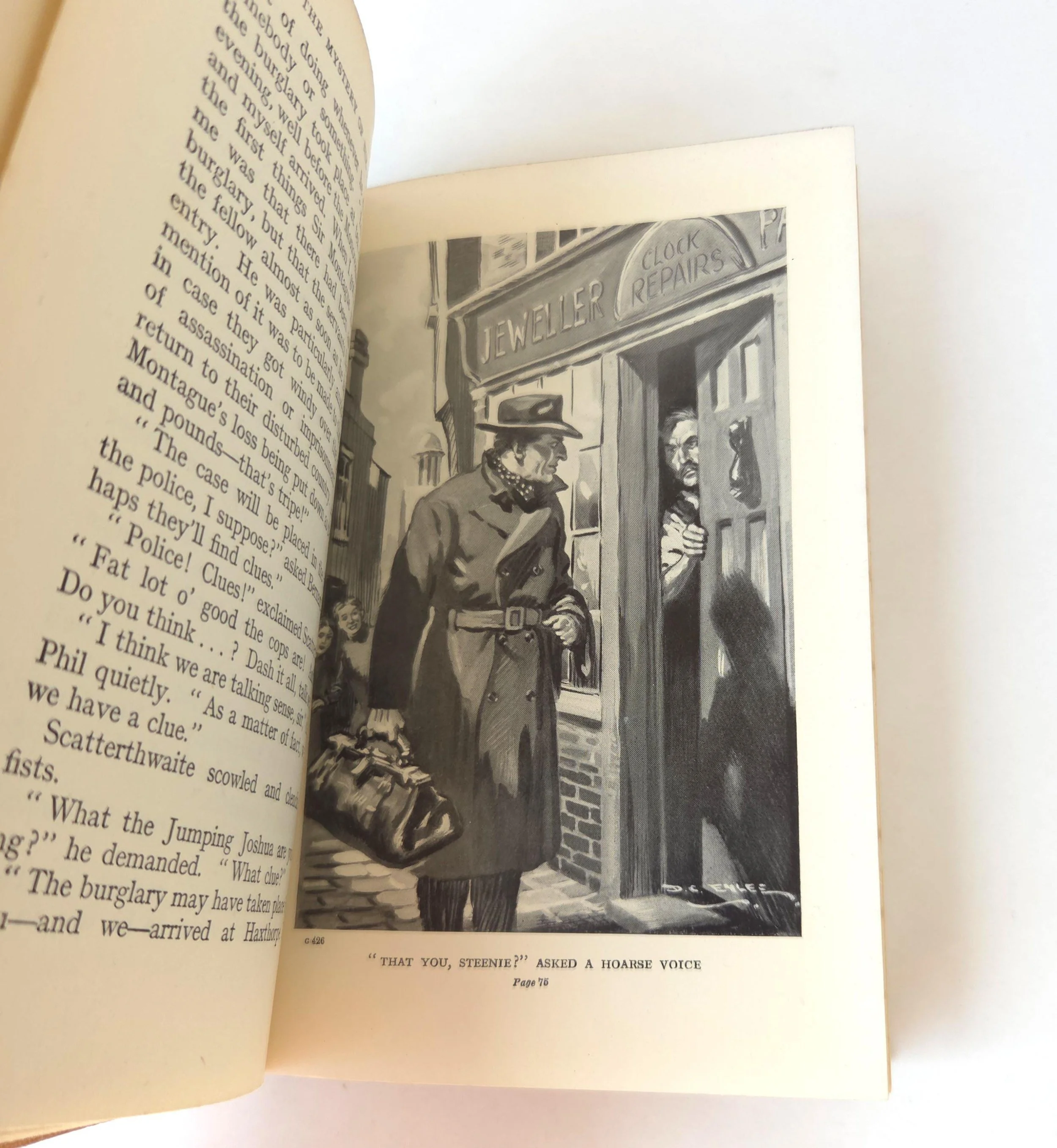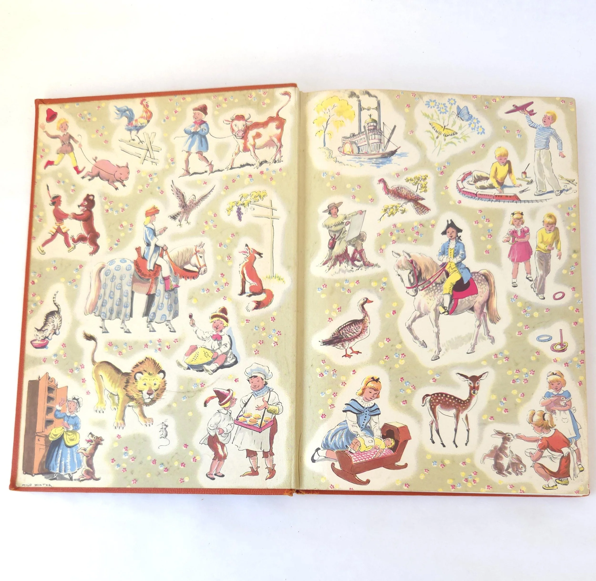 This charming vintage 1950 hardcover edition of The Mystery of Nix Hall is a boy's adventure book written by beloved author Percy F. Westerman that features gorgeous illustrations by D.C. Eyles. The book is in used vintage condition with the dust jacket missing and some wear to the edges of the cloth cover, along with a couple of small spots of discoloration. There is a dedication written on the front end page next to a homemade bookplate. There is a crack that reveals the webbing of the spine at the frontispiece, and a few small stains or some inner pages, but no torn or marked pages and good overall color quality.