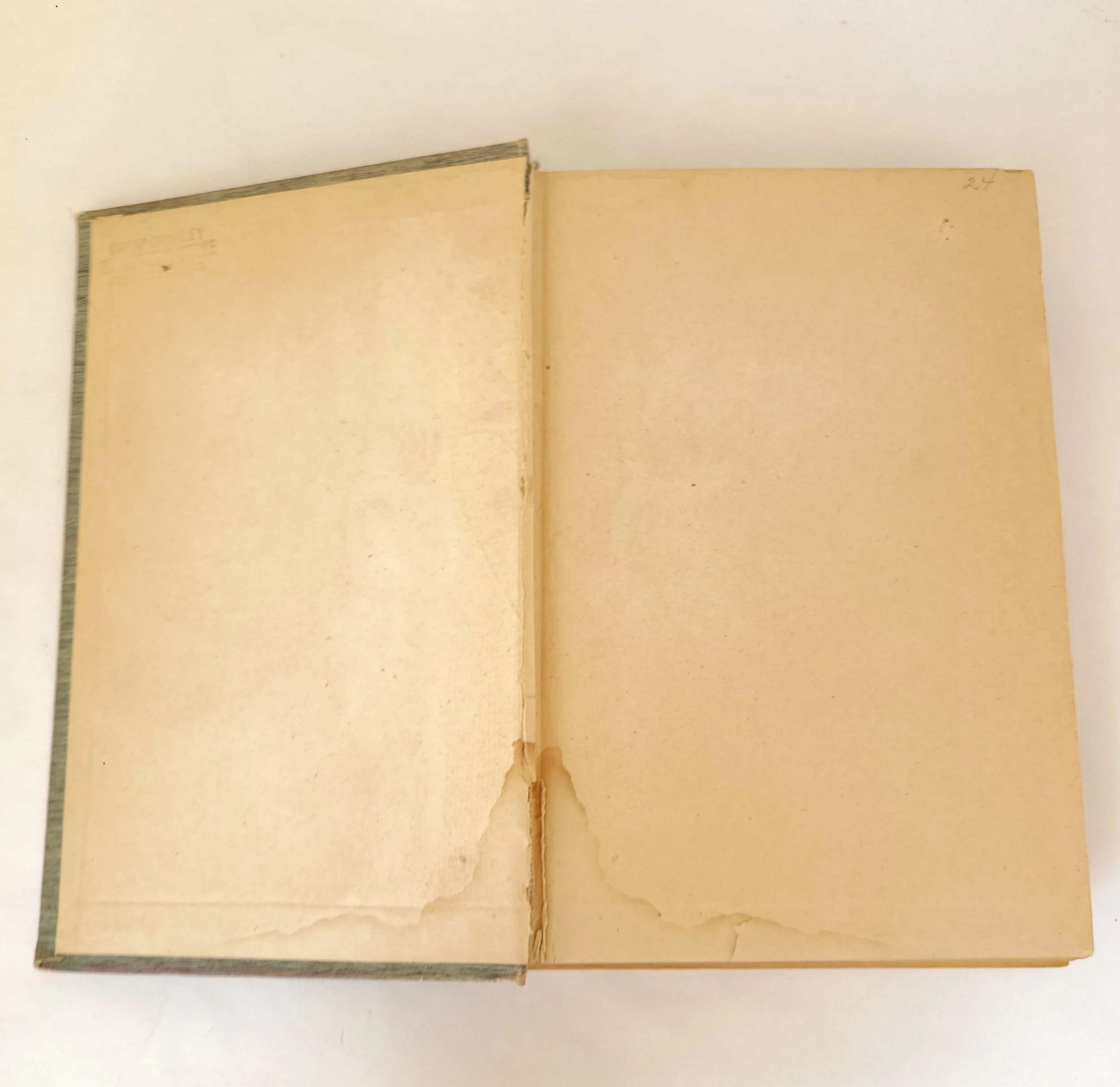 This rare first edition of Marie Monchen's one and only book, Achilles Absent, was published in 1951 by Vintage Press Inc. The book tells a sweeping story that takes place along the American and European frontier in the early 20th century. The book is in used condition with the dust jacket missing, some wear and color loss to the cloth jacket, one page has a torn corner - but otherwise the inside is in good condition with some yellowing and a few spots of discoloration, but no marks and a solid binding.