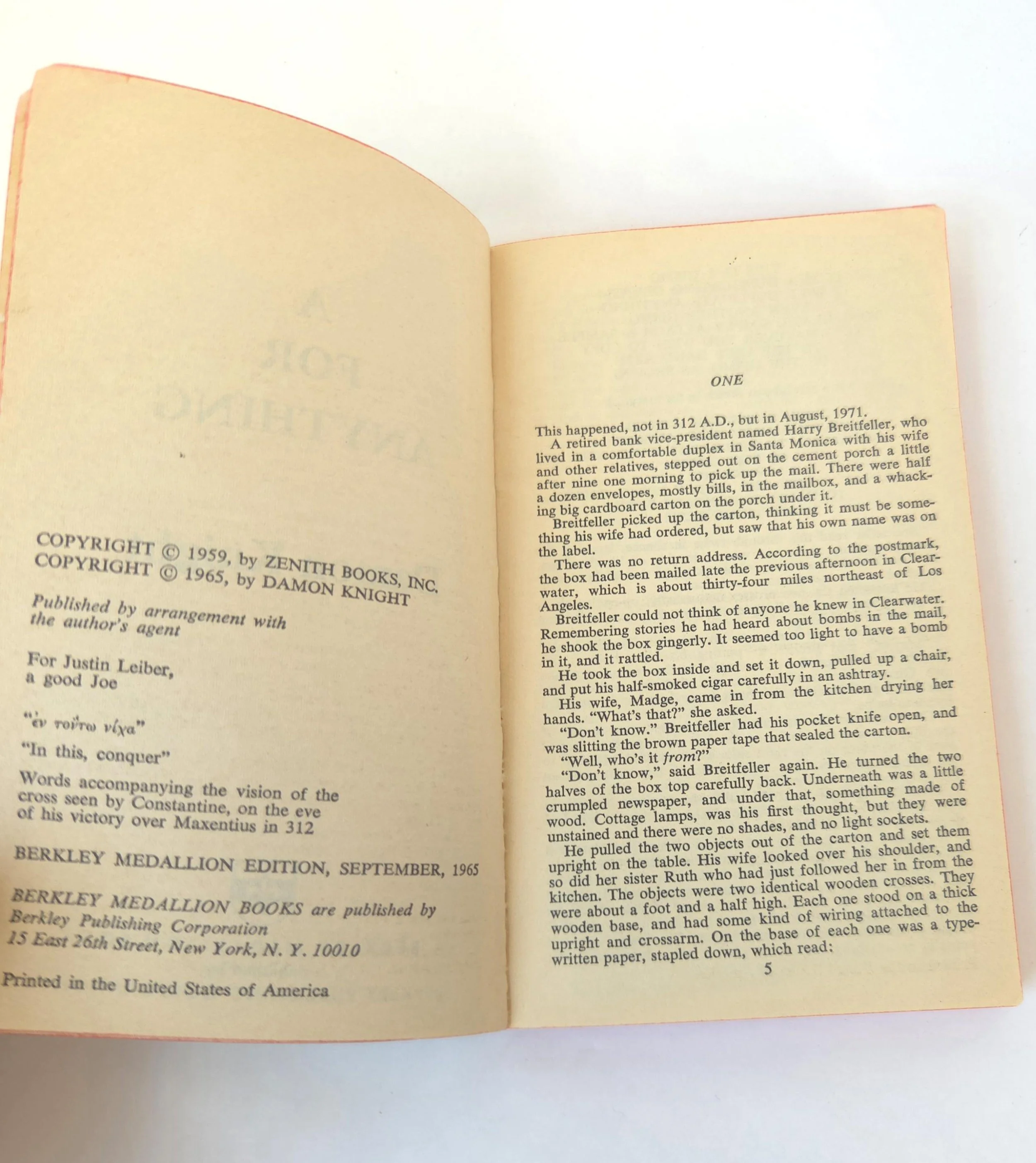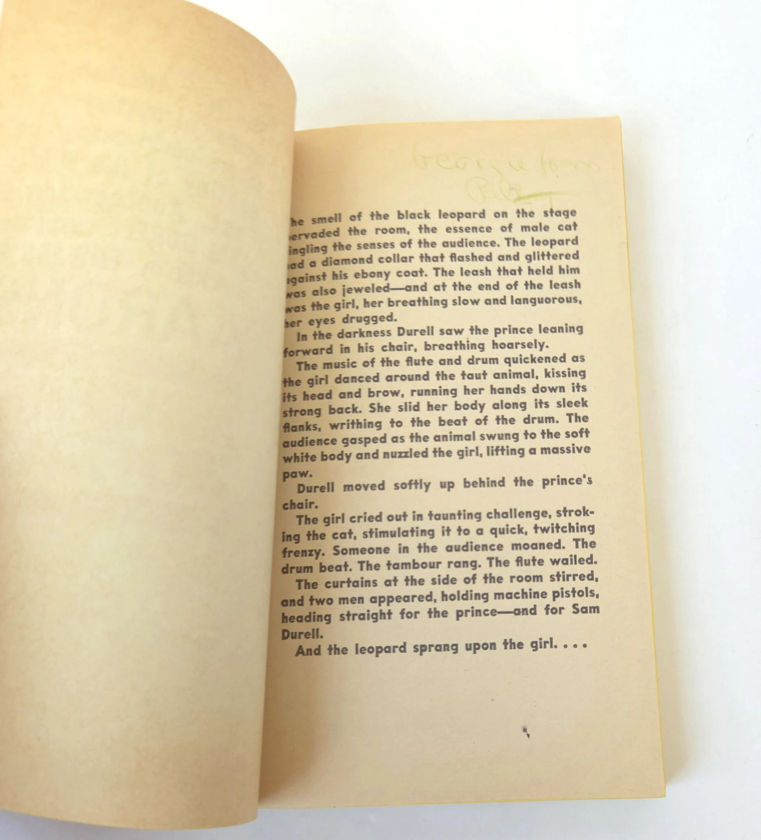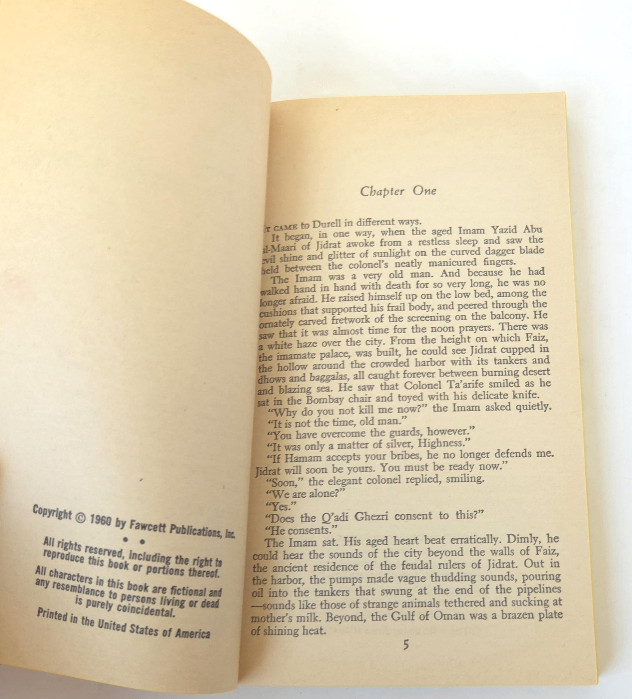 This copy is in used condition with some tear to the edges of the dust jacket as well as some discoloration to the front and back end pages, but no torn or marked pages and good overall color quality. The dust jacket is protected by a plastic sleeve that is also vintage, with some light scratching and scuffs.