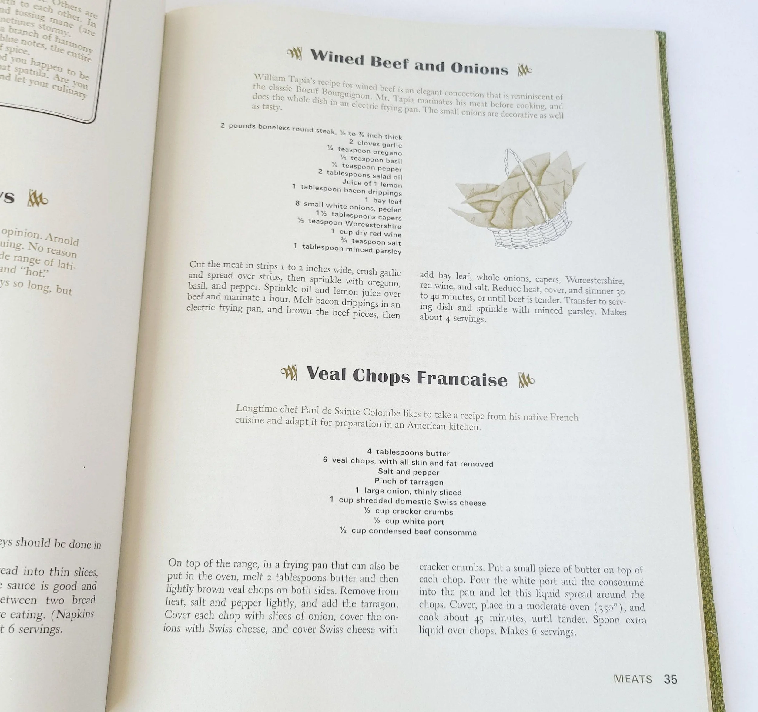 This charming vintage 1953 Osterizer: The Modern Meal Maker Cookbook features recipes using this classic liquefier and blender. The booklet is in very much used condition with significant wear and color loss to the cover, along with a few taped portions to the binding and top edge. There are some small marks and stains inside, but no torn pages and good overall color quality.