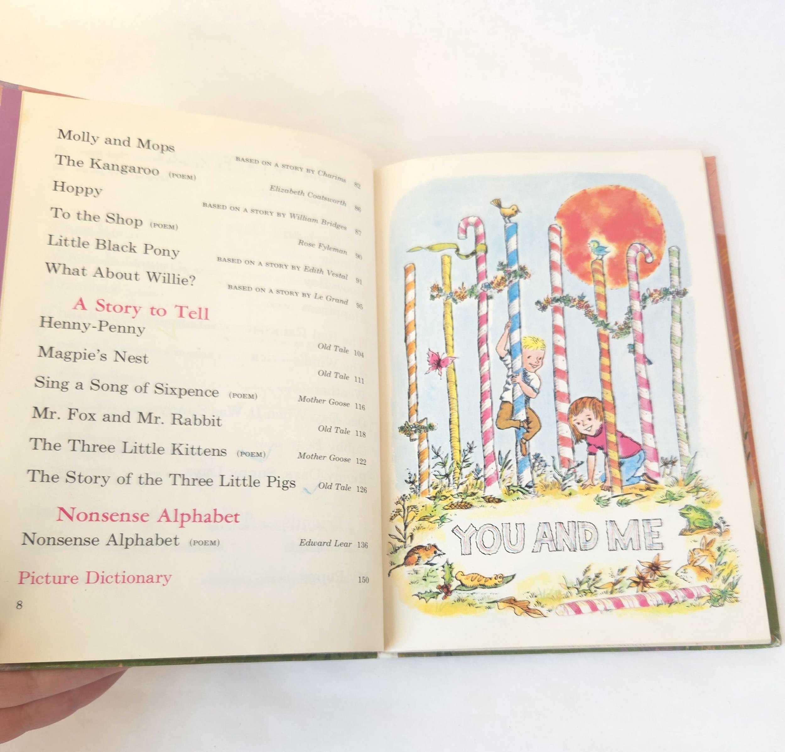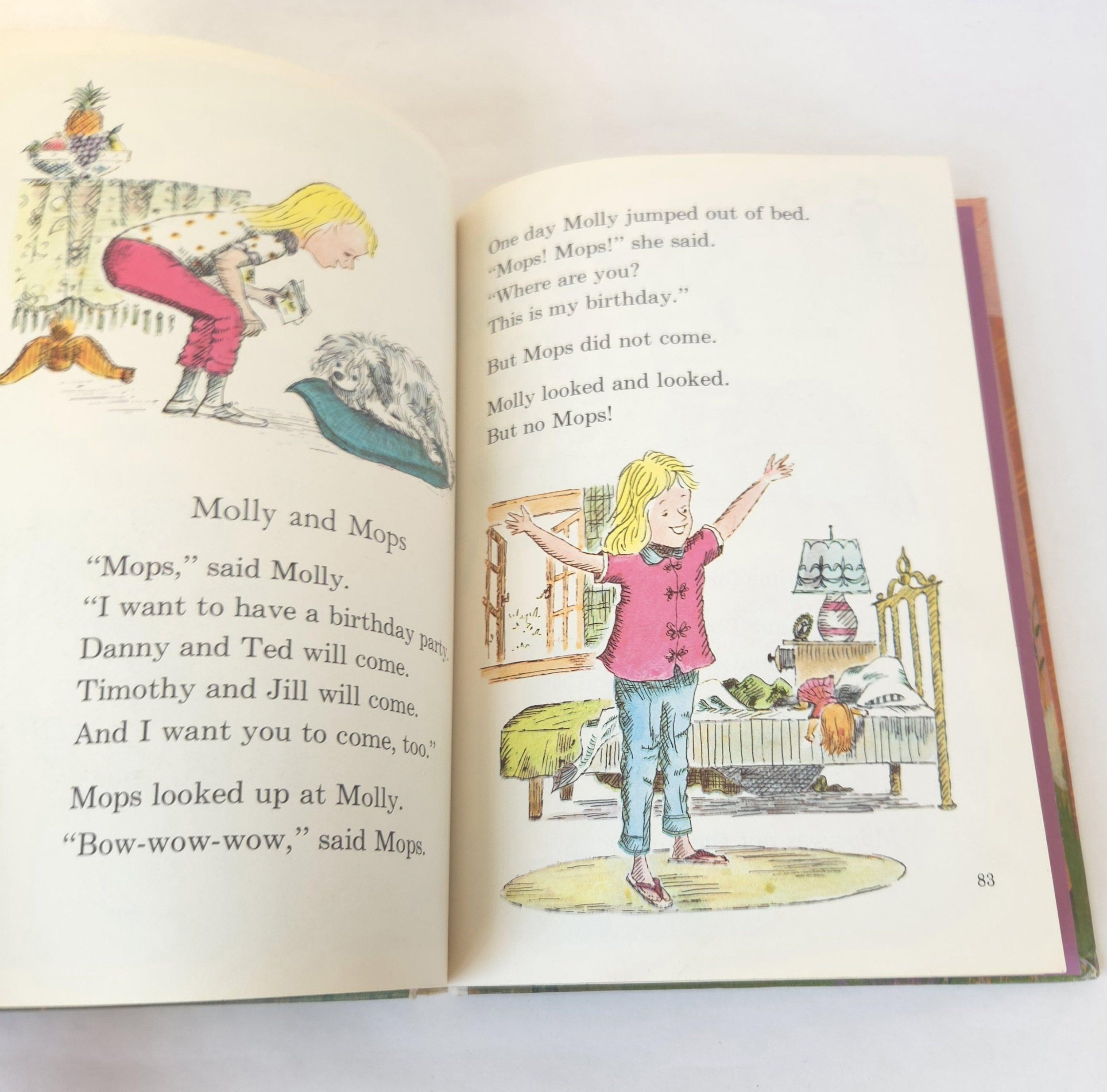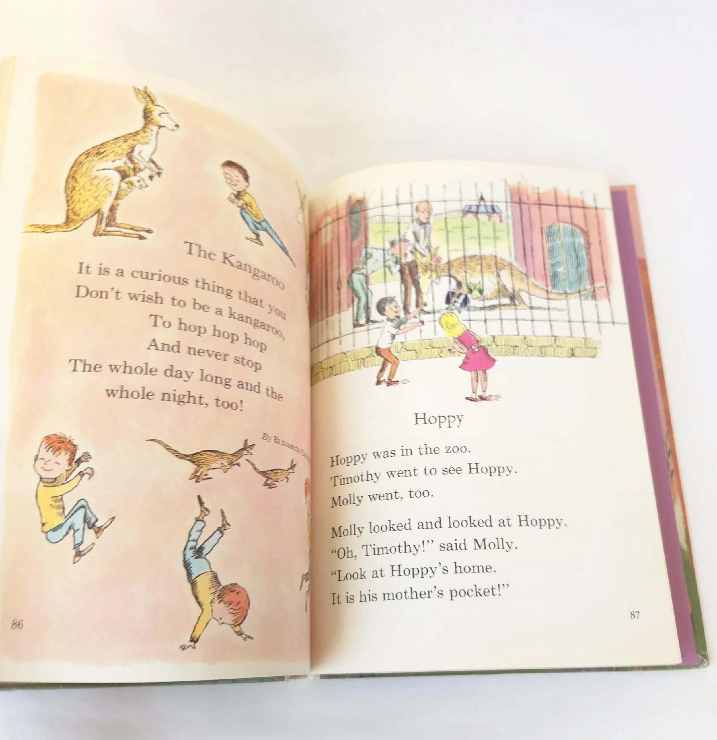 This beautiful vintage 1954 edition of Chichi's Magic is a part of the Woodland Frolics Series written by Adda Mai Sharp and Epsie Young with illustrations by Elizabeth Rice. The book tells of story of Chichi the monkey and his life in Costa Rica. The book is in used condition with wear and loose threads to the corners of the cover along with color loss and some discoloration to the cover. There are several small tears and spots of discoloration to inner pages, but no large tears and excellent color quality to the illustrations.