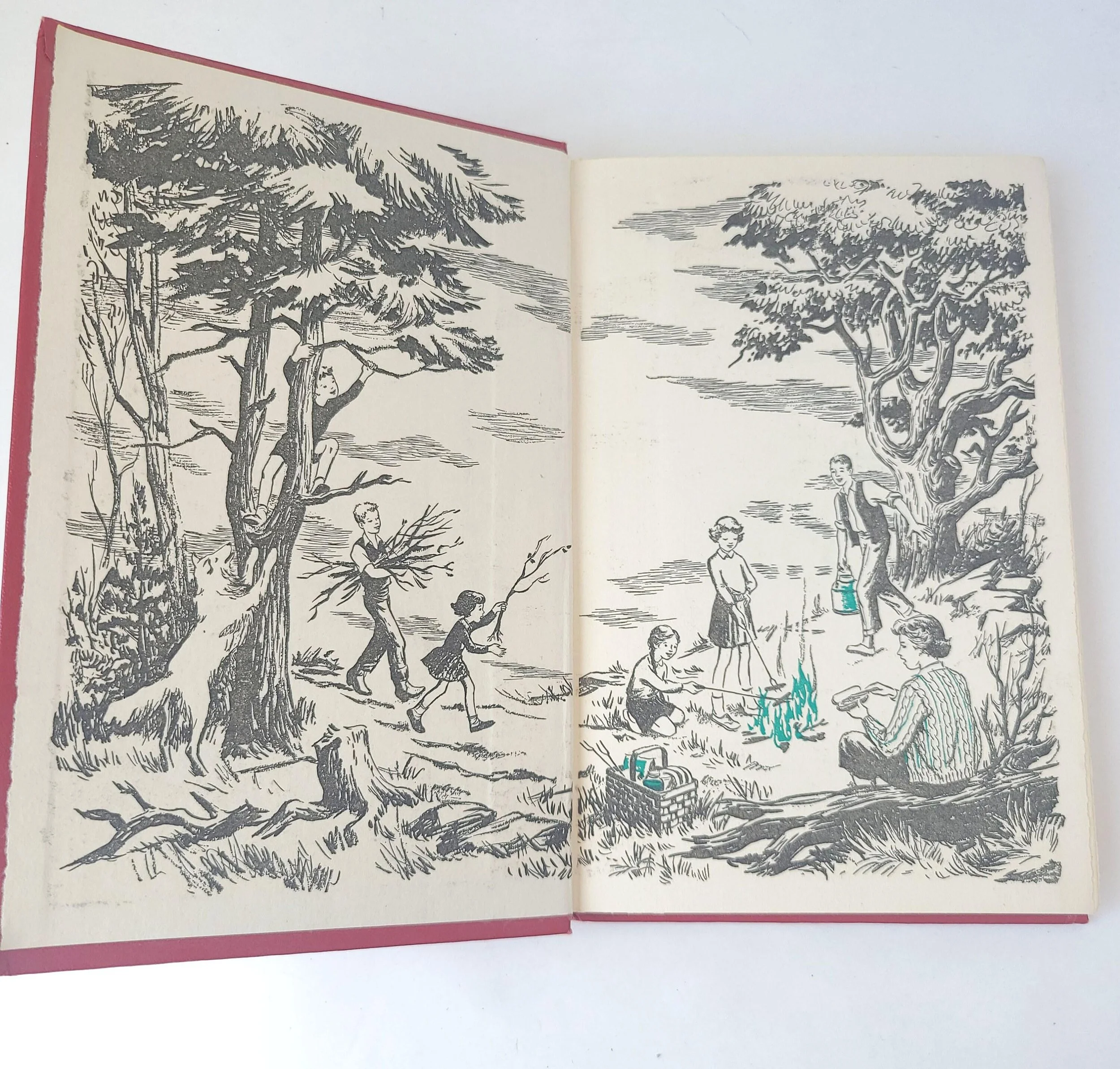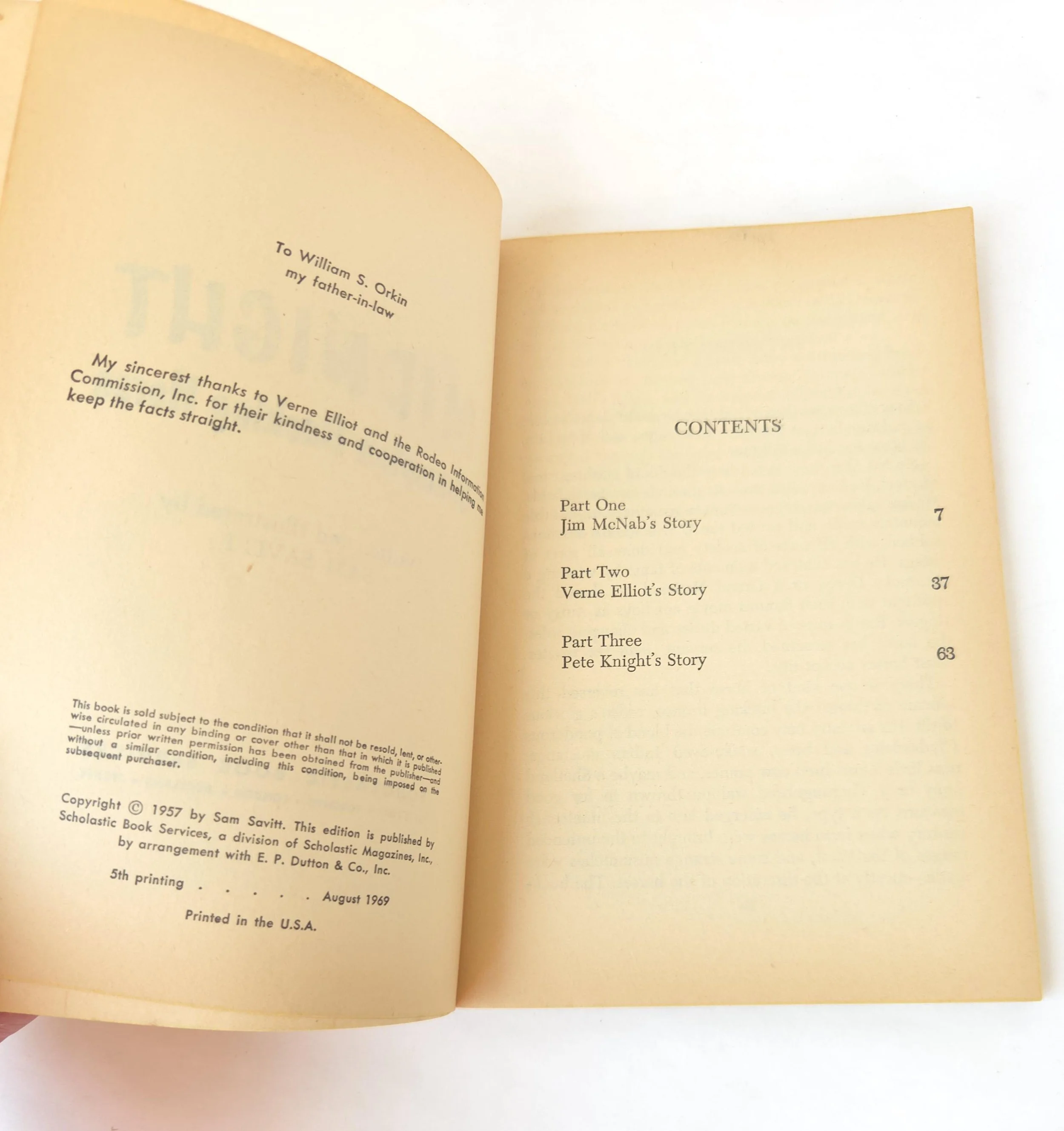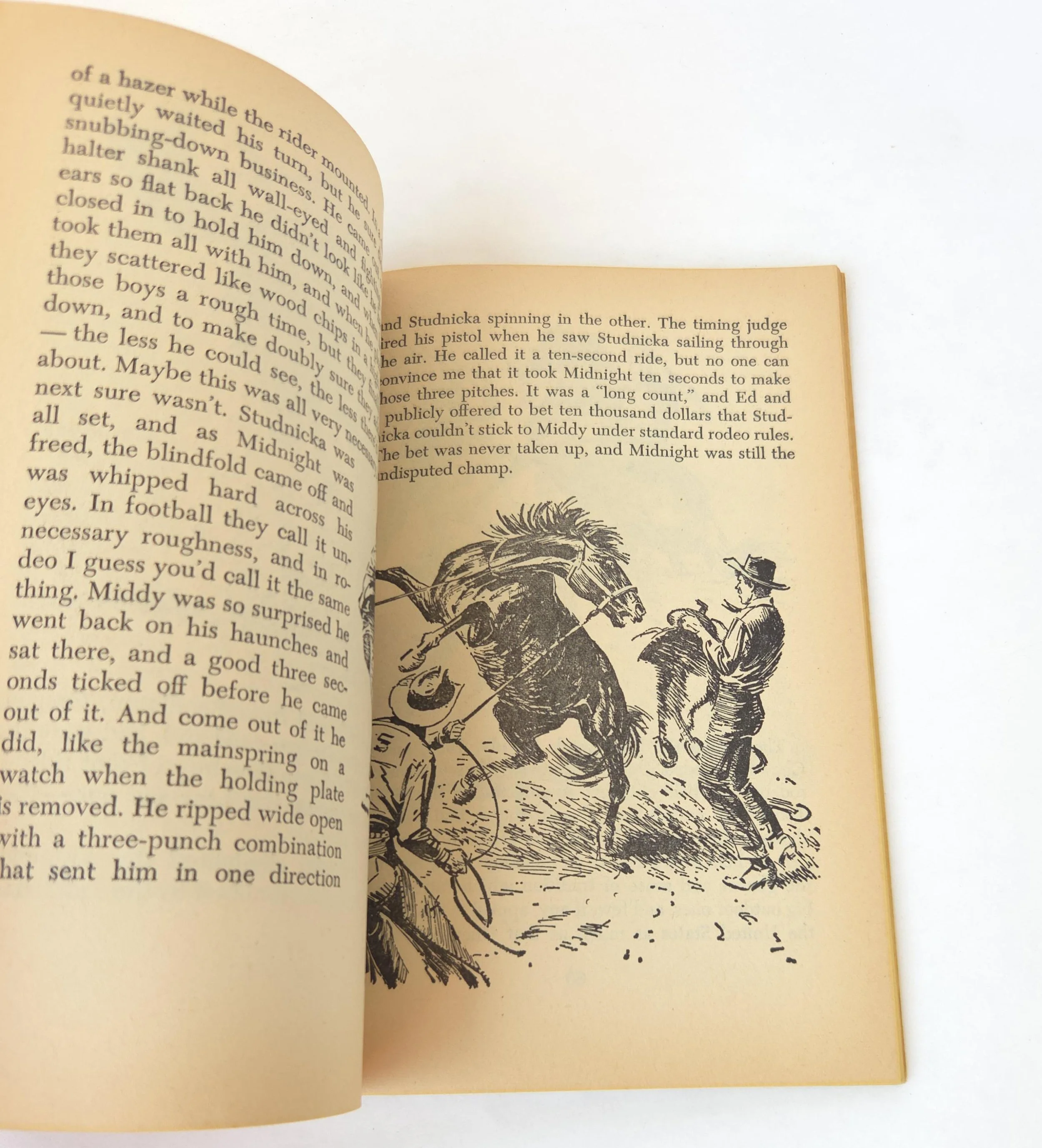 This charming vintage 1956 hardcover edition of Tom Corbett: Space Cadet - The Robot Rocket was written by Carey Rockwell and features illustrations by Louis Glanzman. The Robot Rocket is about the Polaris crew's dangerous mission to stop a "maverick planetoid" with altered atomic structure that is disrupting space traffic. This copy is in used vintage condition with the dust jacket missing and some wear and small surface tears to the cloth cover. The original owner's initials are written on the outside edge of the pages as well as inside the front cover. There is a black mark on the front end page and a couple of scribbles and spots of discoloration to the title page, but there are no torn or marked inner pages and good overall color quality.