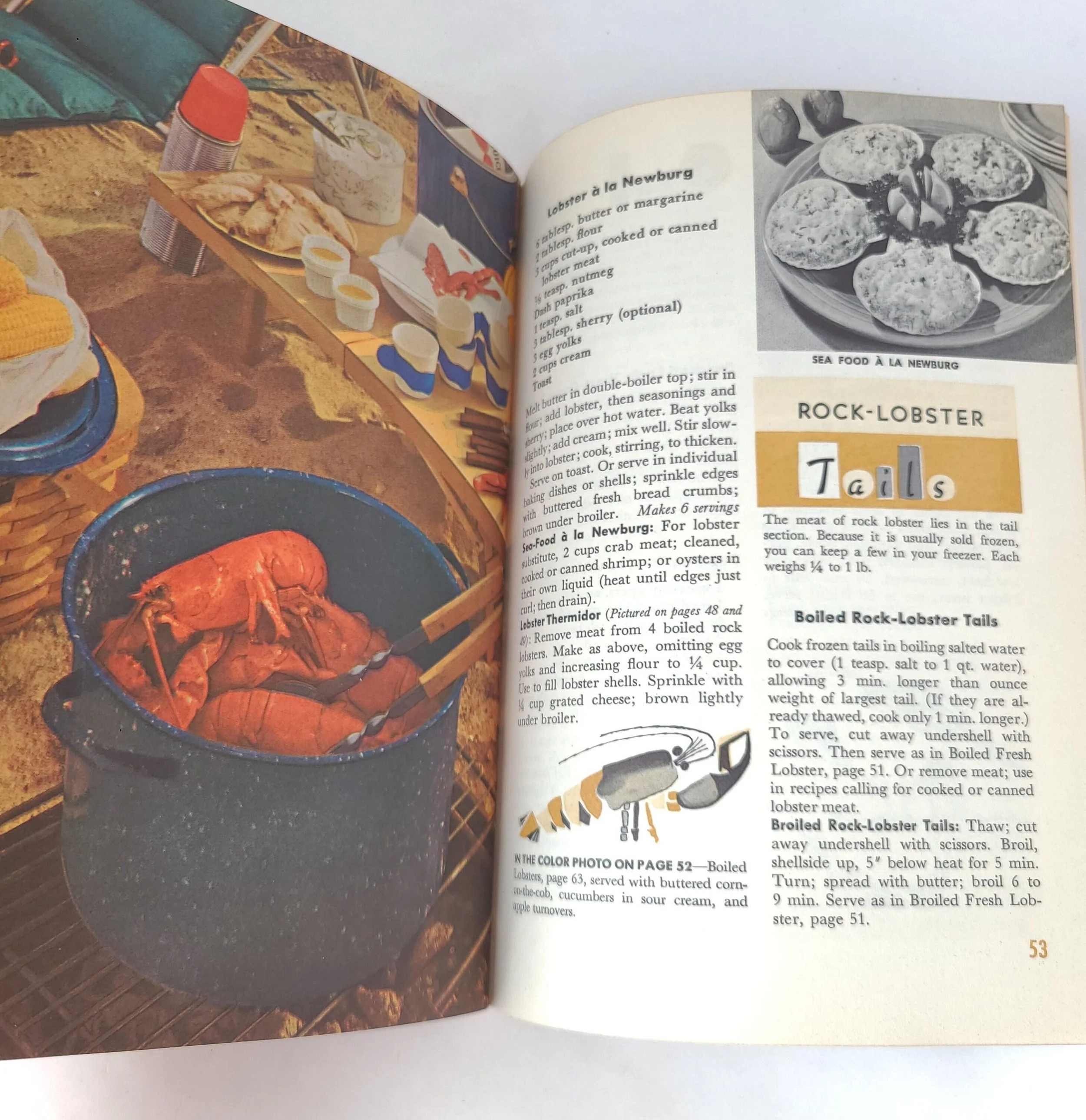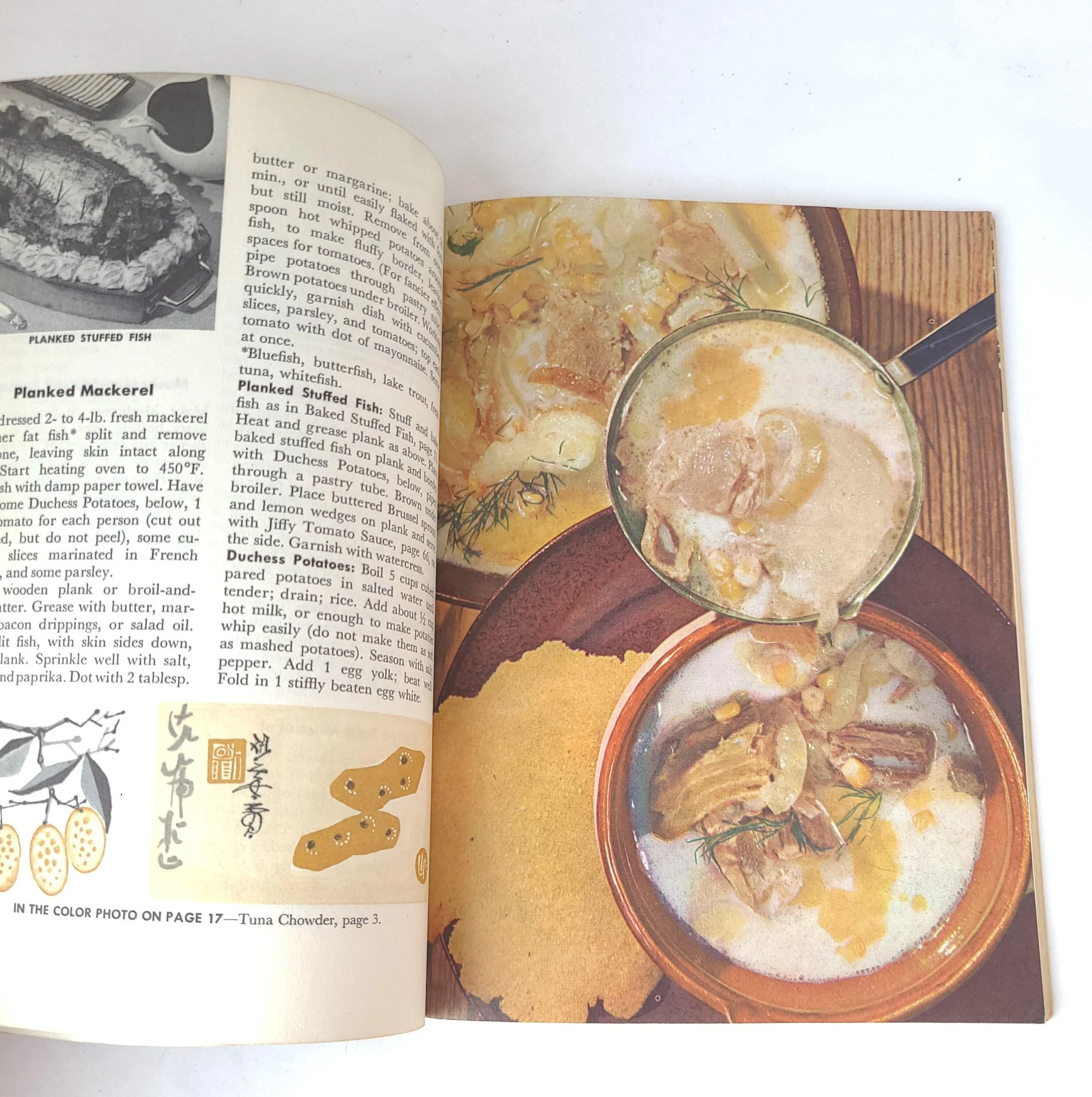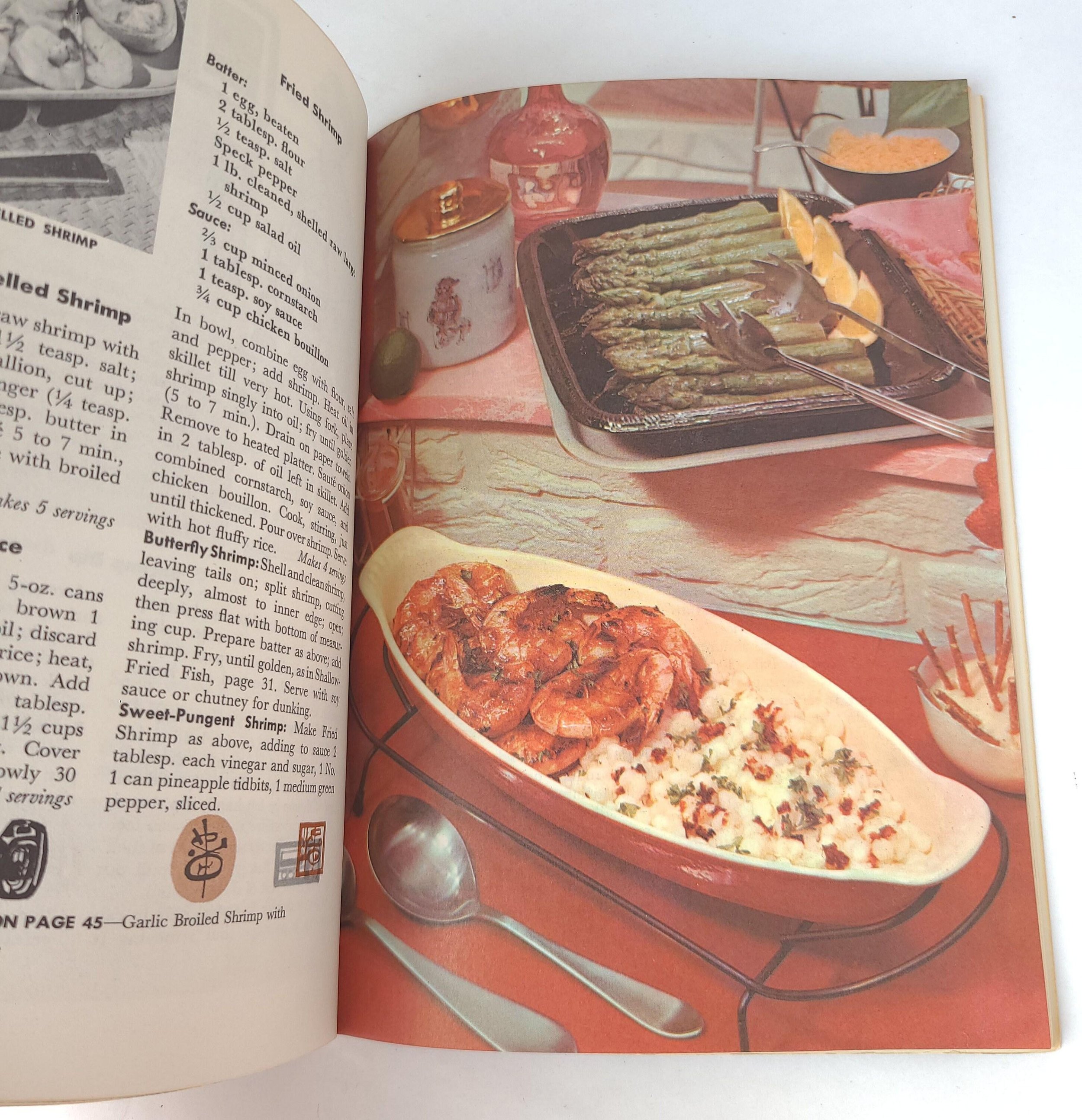 This charming vintage 1958 edition of Good Housekeeping's Fish and Shellfish Book features recipes for "fine foods from ocean, lake and stream". The booklet is in good used condition with some minor wear to the edges of the cover, no torn or marked pages and excellent overall color quality.