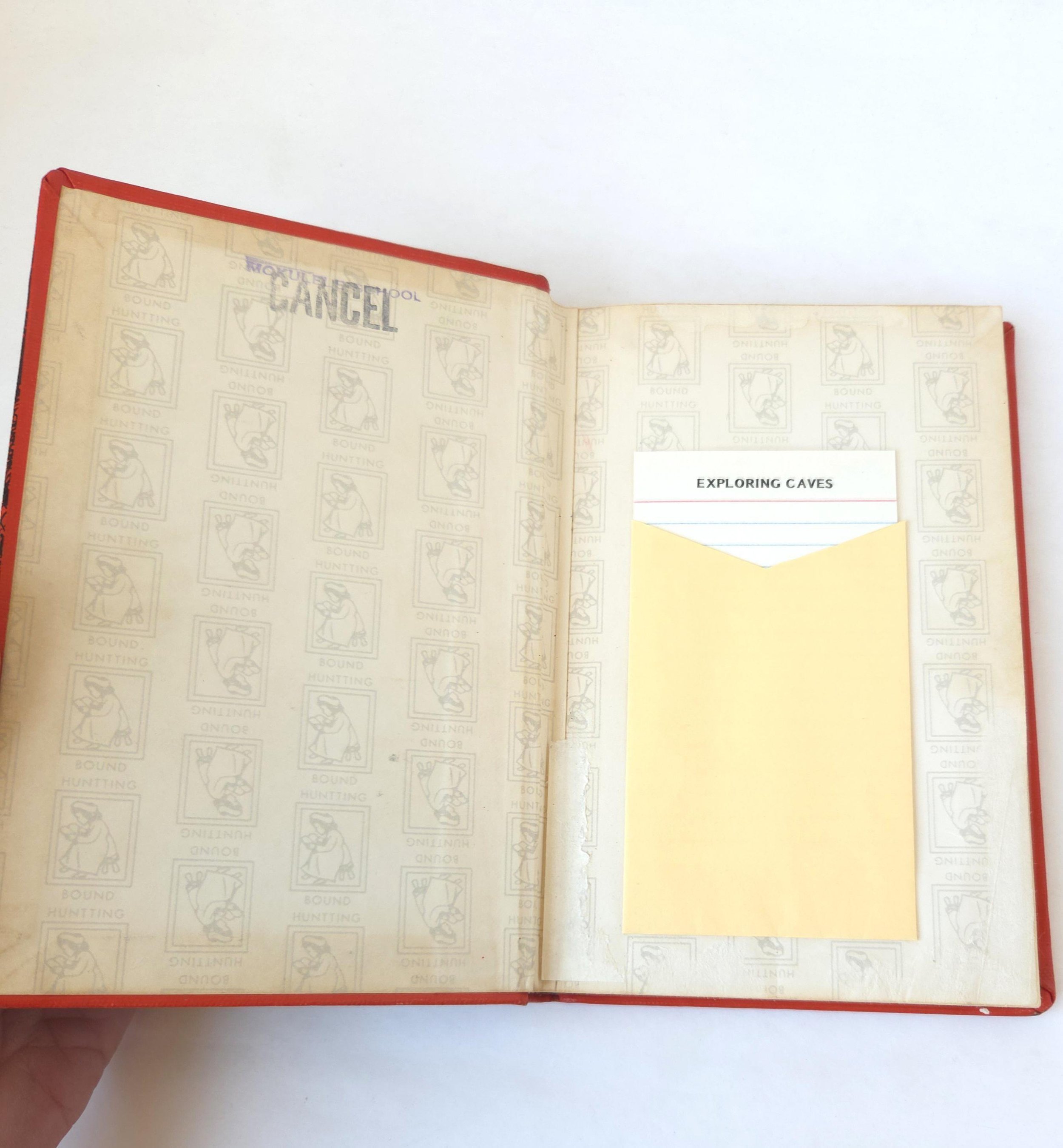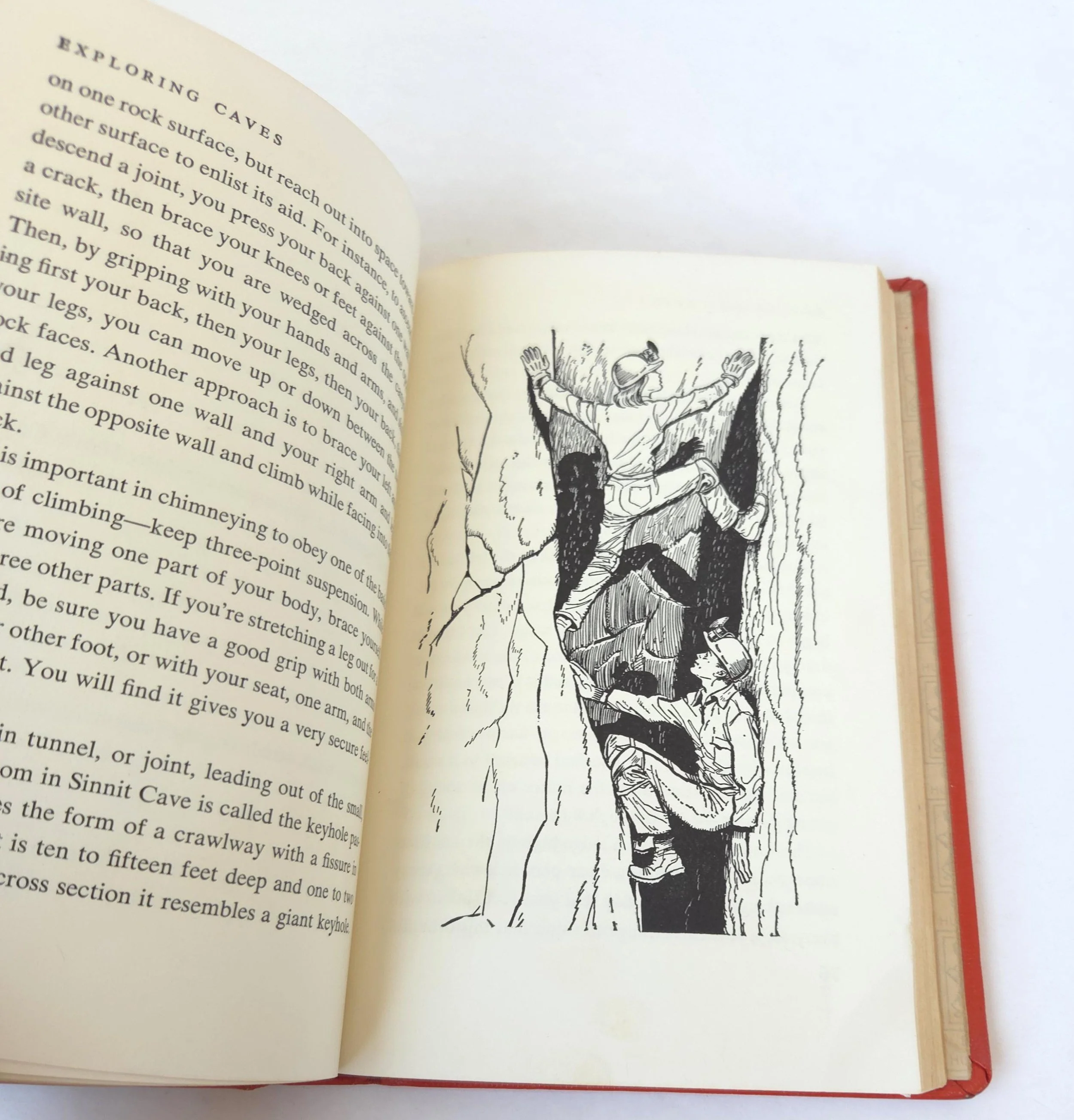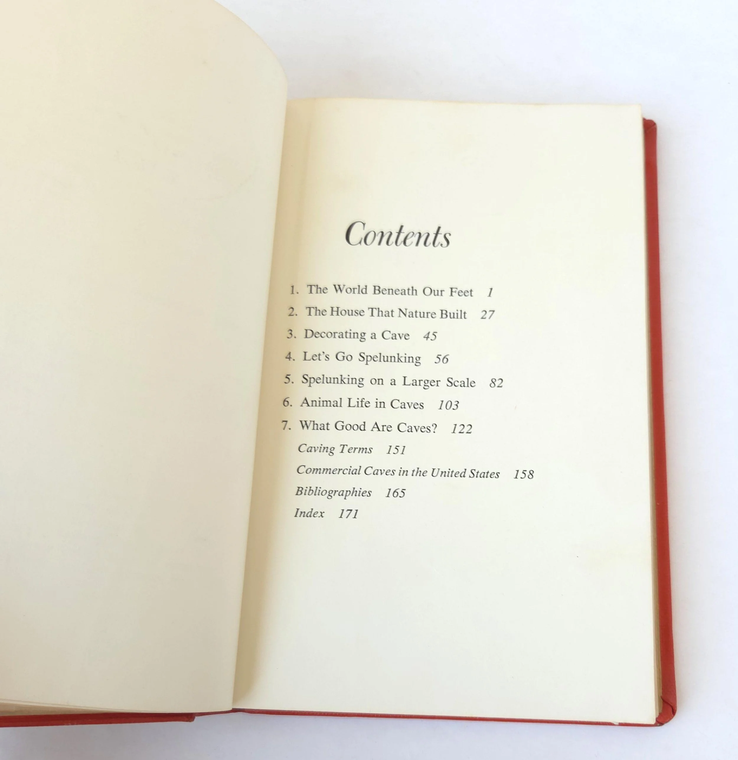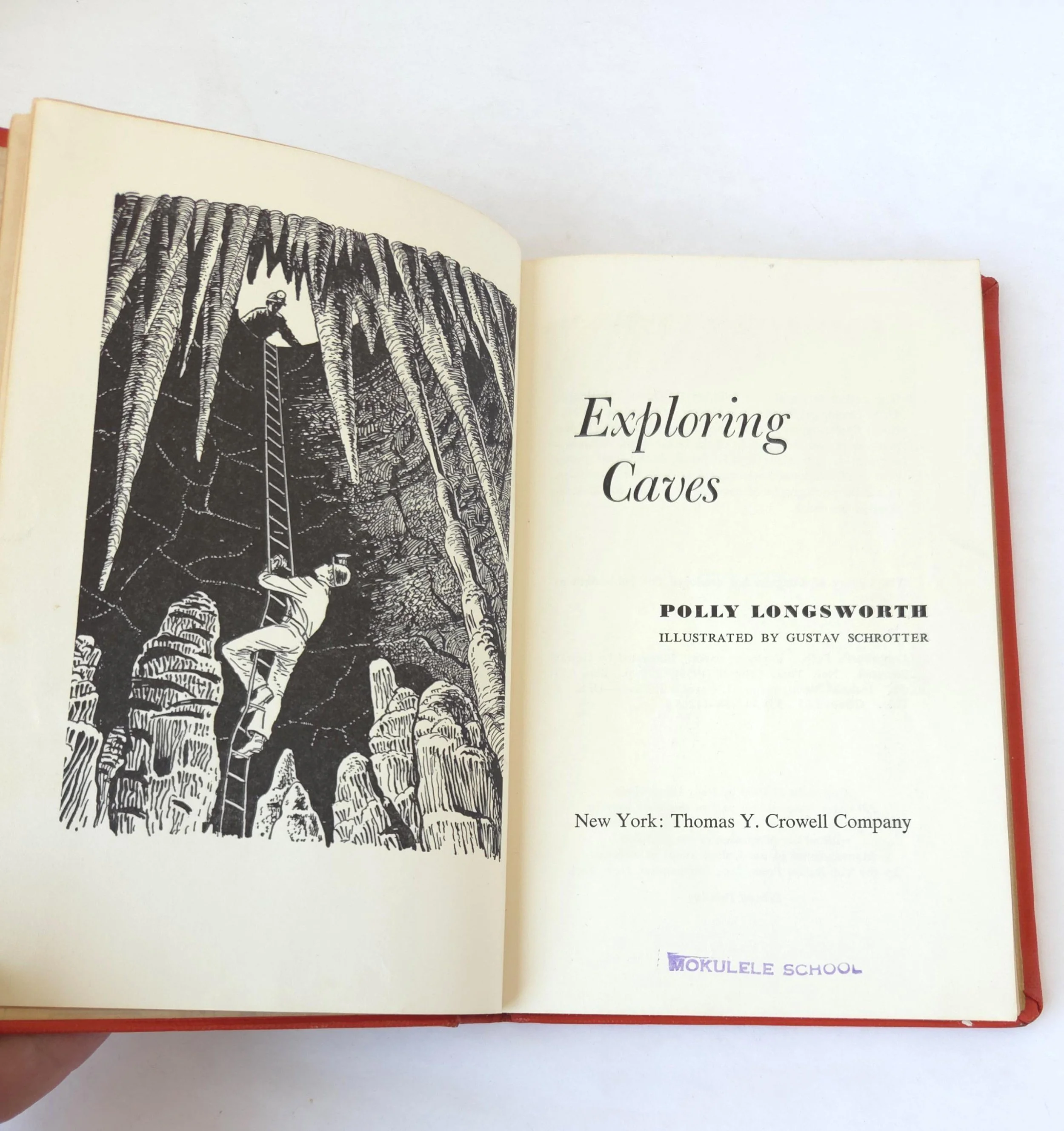 This charming vintage 1959 hardcover edition of Exploring Caves by Polly Longsworth features illustrations by Gustav Shrotter. It brings to life the formation of, life within and adventures that can be found inside caves around the world. The book is in used vintage condition with some minor wear to the edges of the cover along with some discoloration to the back cover, and a mark on the spine. The book belonged to a school library so it has a checkout card inside the cover and a few stamps on the title and end pages, but no torn or marked inner pages and good overall color quality.