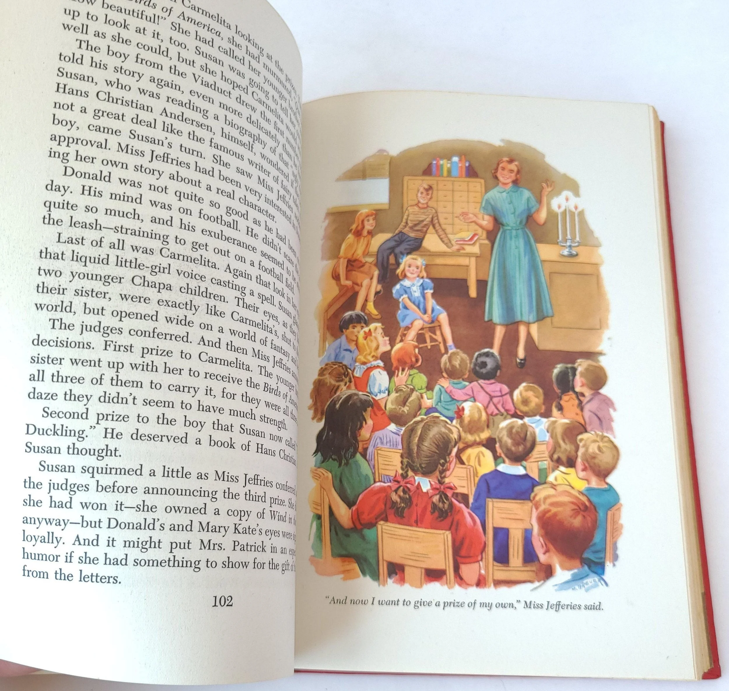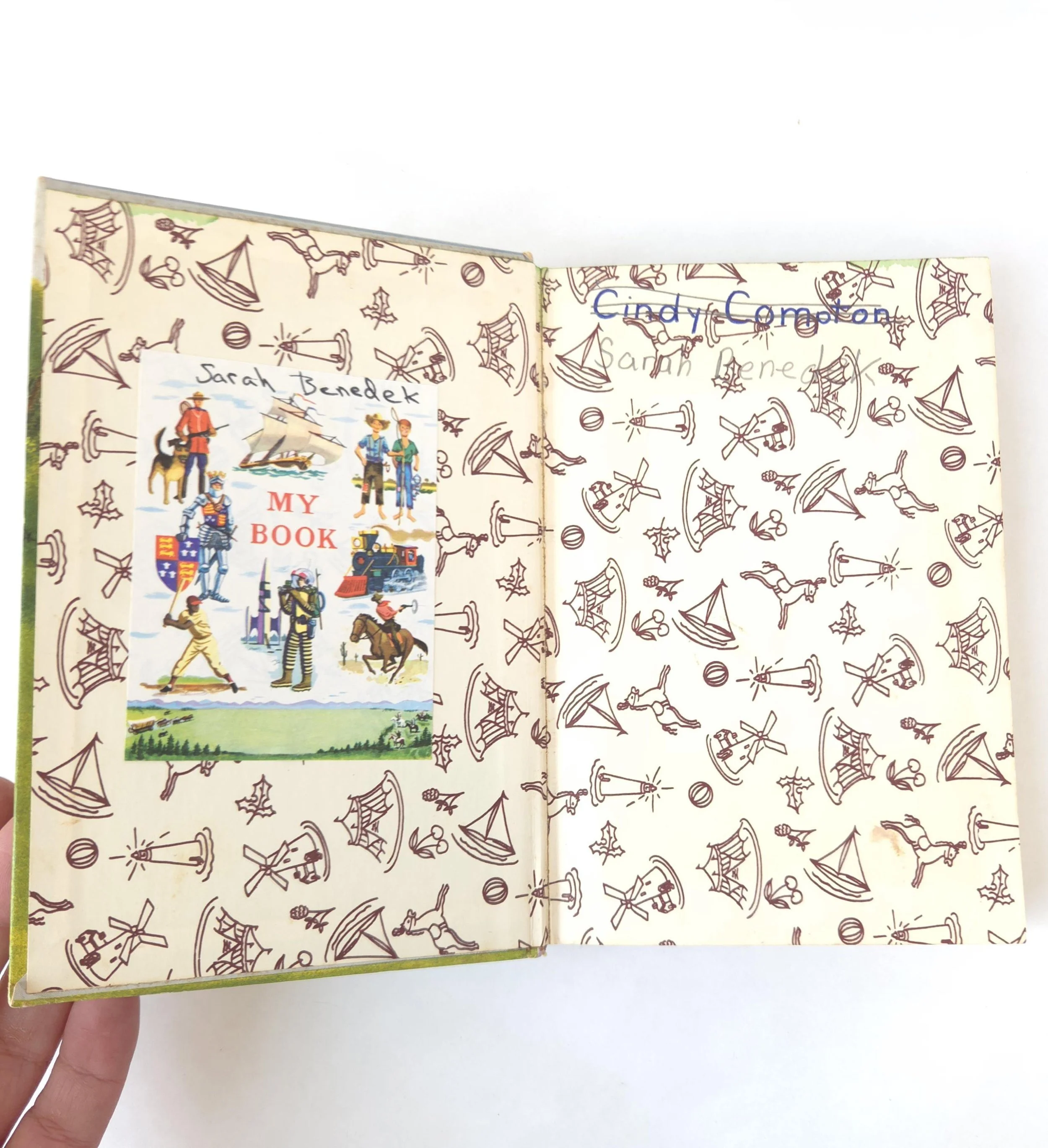 This charming vintage 1961 hardcover edition of The Bobbsey Twins of Lakeport by Laura Lee Hope is book one in this beloved children's novel series. This copy is in used vintage condition with some wear to the edges of the cover and the original owner's bookplate inside the front cover and written on the front end page. There are a few spots of discoloration to inner pages, but there are no torn or marked pages and good overall color quality.