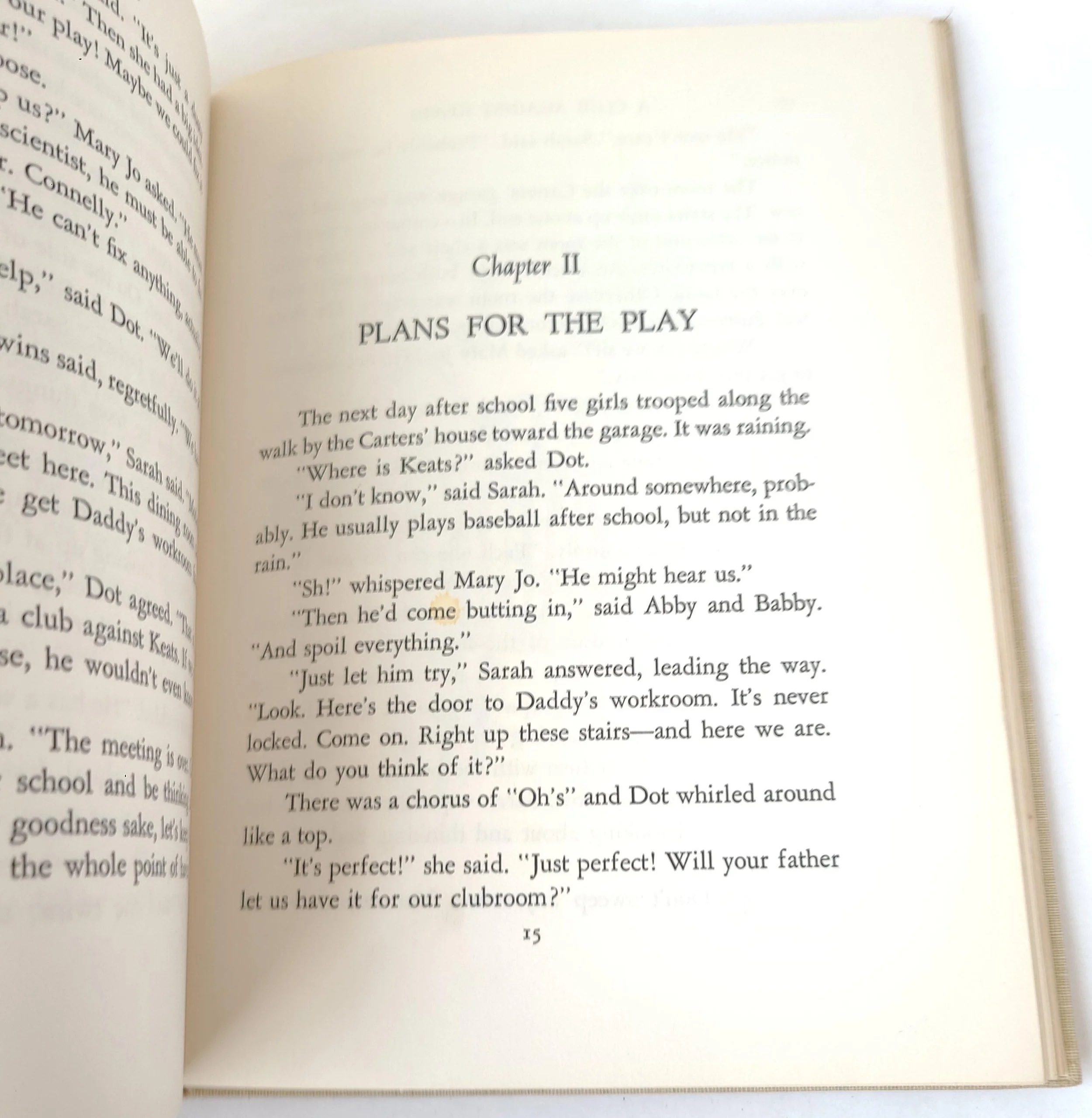 This darling vintage 1962 hardcover edition of The Bobbsey Twins #3 The Secret at The Seashore was written by Laura Lee Hope and published by Grosset and Dunlap. It tells of the story of the twins' summer at the seashore with their cousin Dorothy and the adventures, pleasures and intrigue they encounter along the way. The book is in good used condition with some very minor wear to the edges of the cover, but excellent color quality. There is a dedication written on the front end page and some minor discoloration to the outer edge of the pages, but no torn or marked pages and a solid binding.