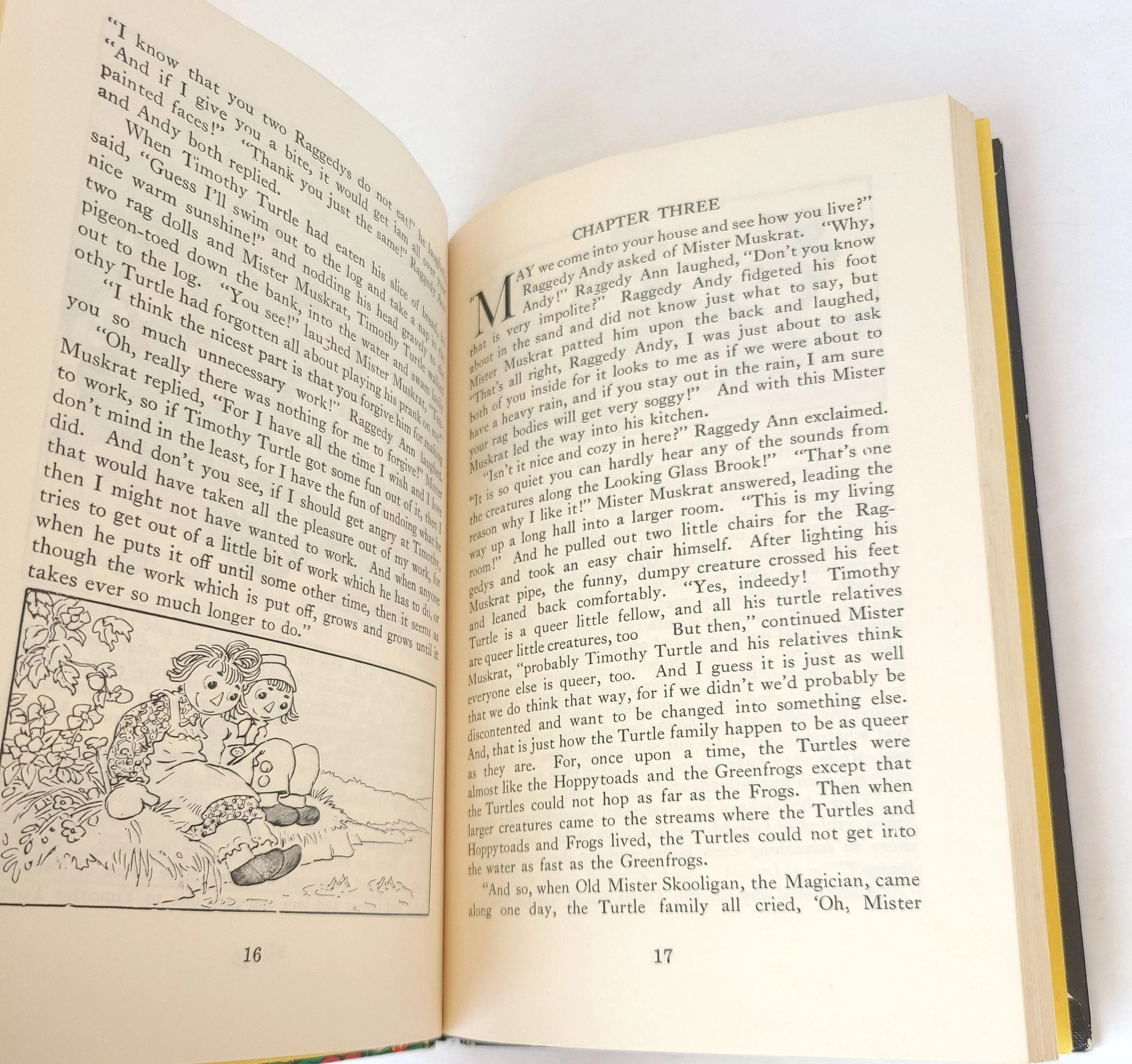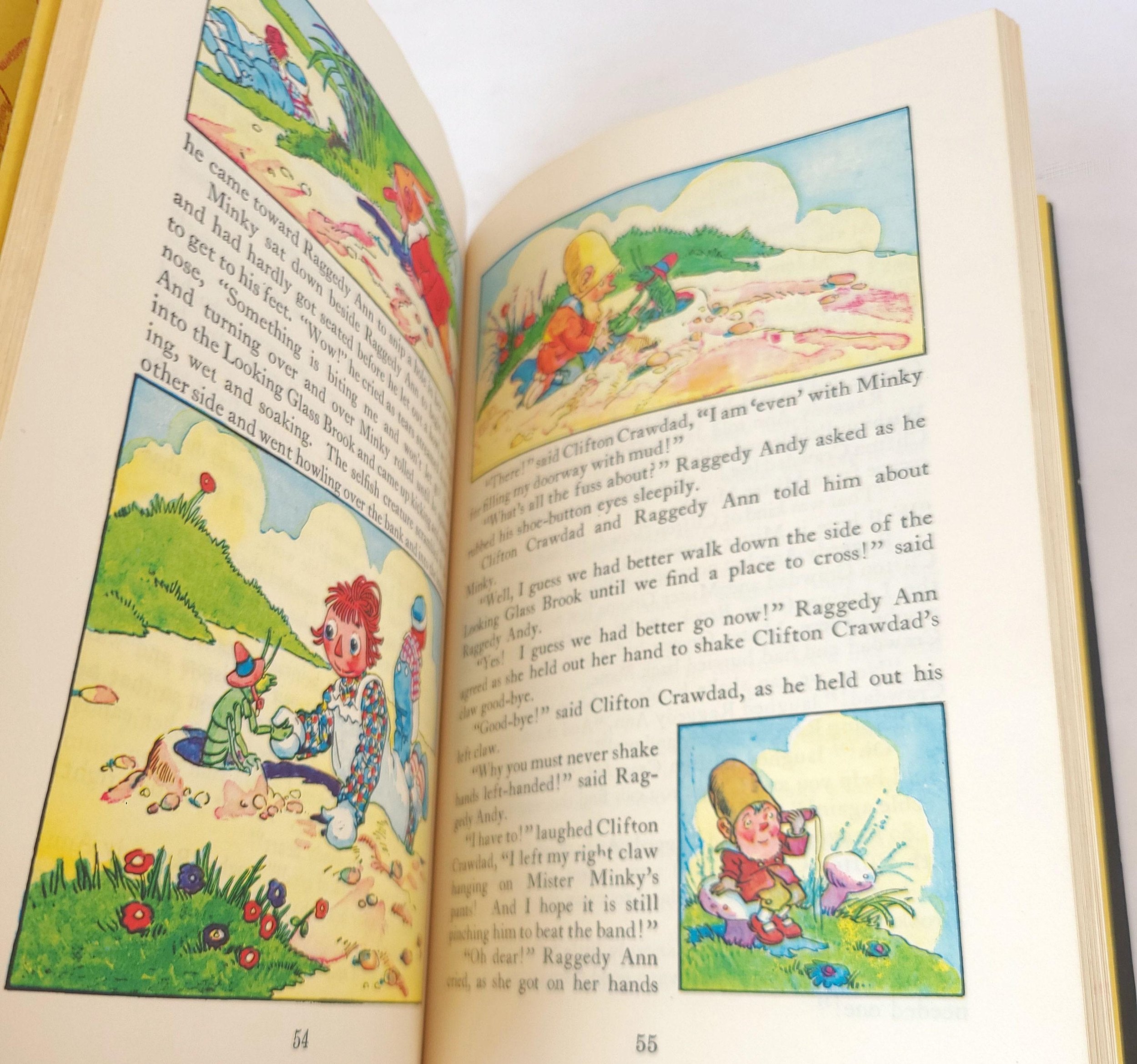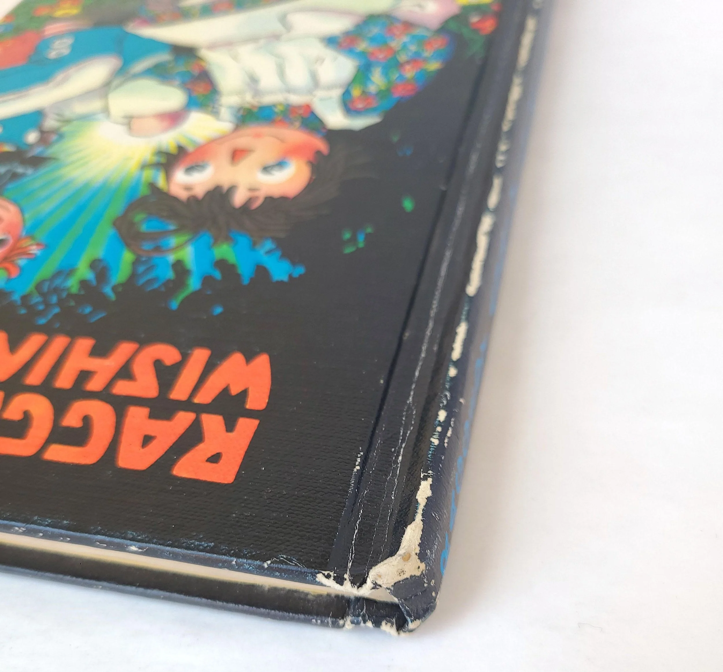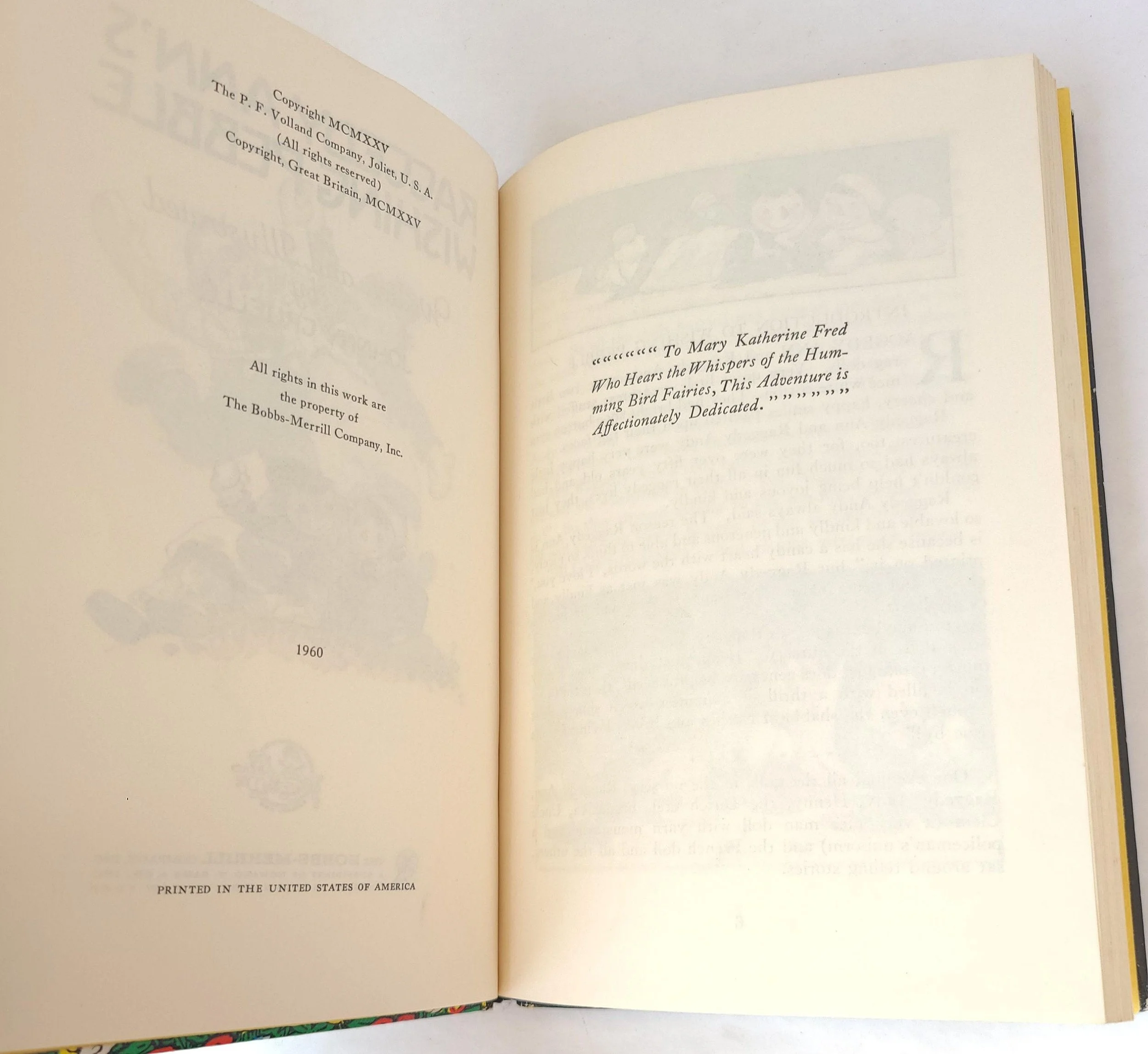 There is a tear with a taped portion on the frontispiece page and a few small stains and spots of discoloration on some inner pages, along with a little crinkling and a couple of creased corners. There are no large tears or missing pages and the illustrations have good color quality.