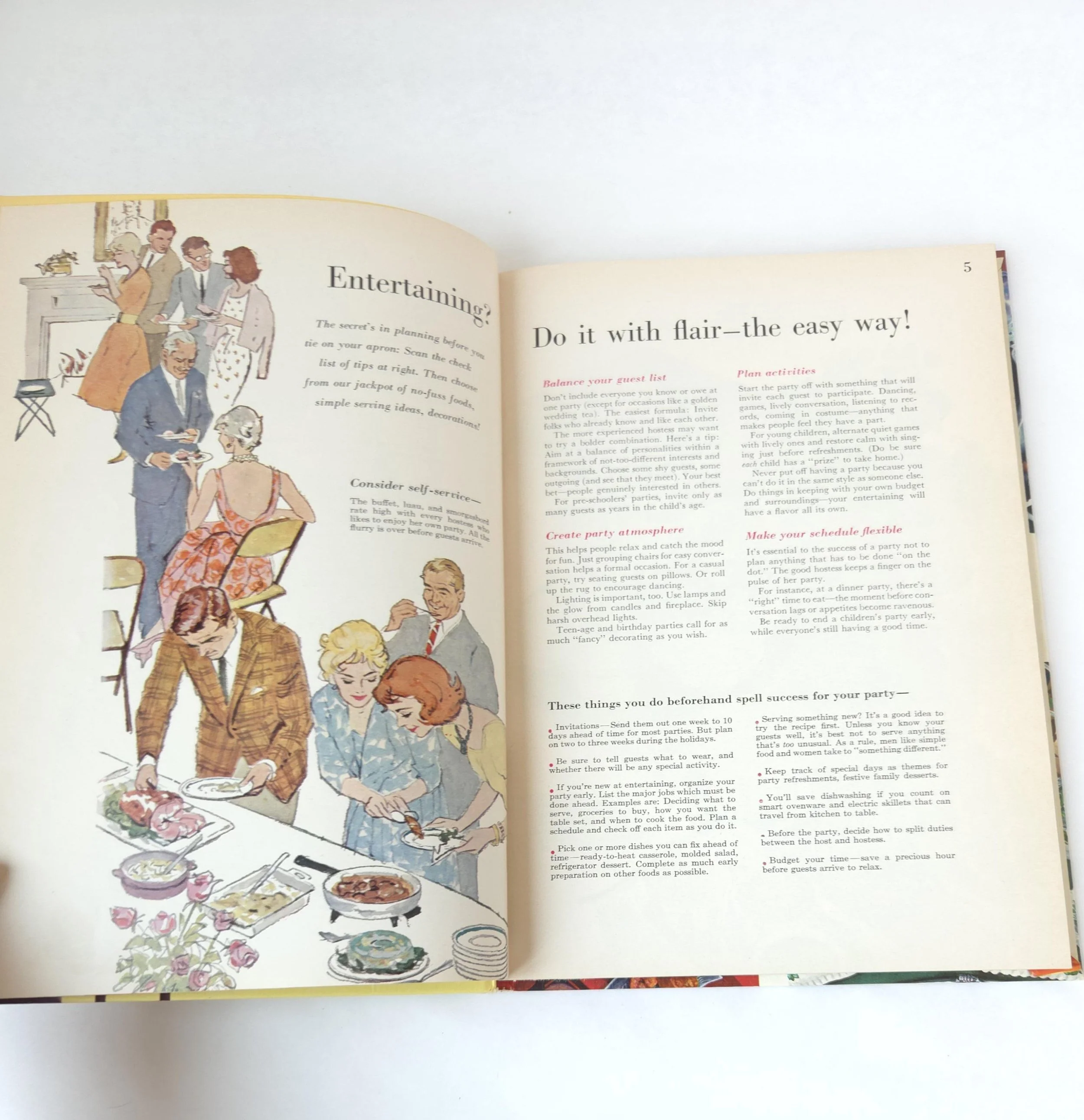 This charming vintage 1963 edition of Better Homes and Gardens So Good Meals Cookbook includes 100 tasty ways to please your family. The book is in good used condition with some minor wear to the edges of the cover, but no torn or marked pages and good color quality.