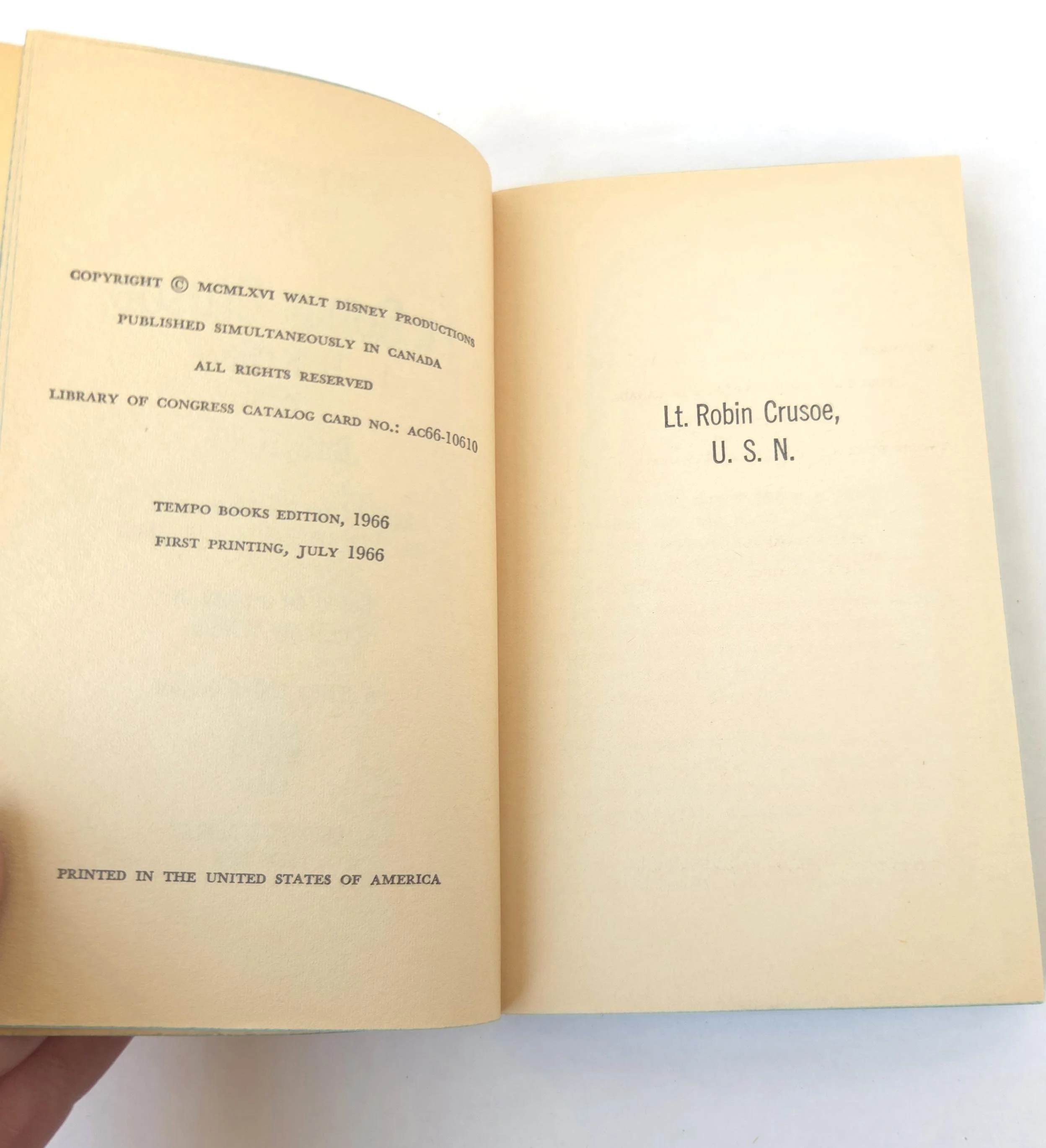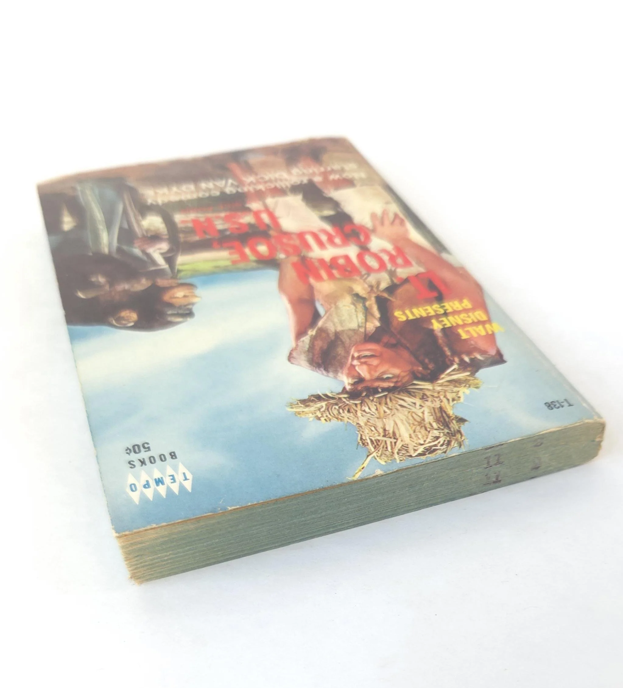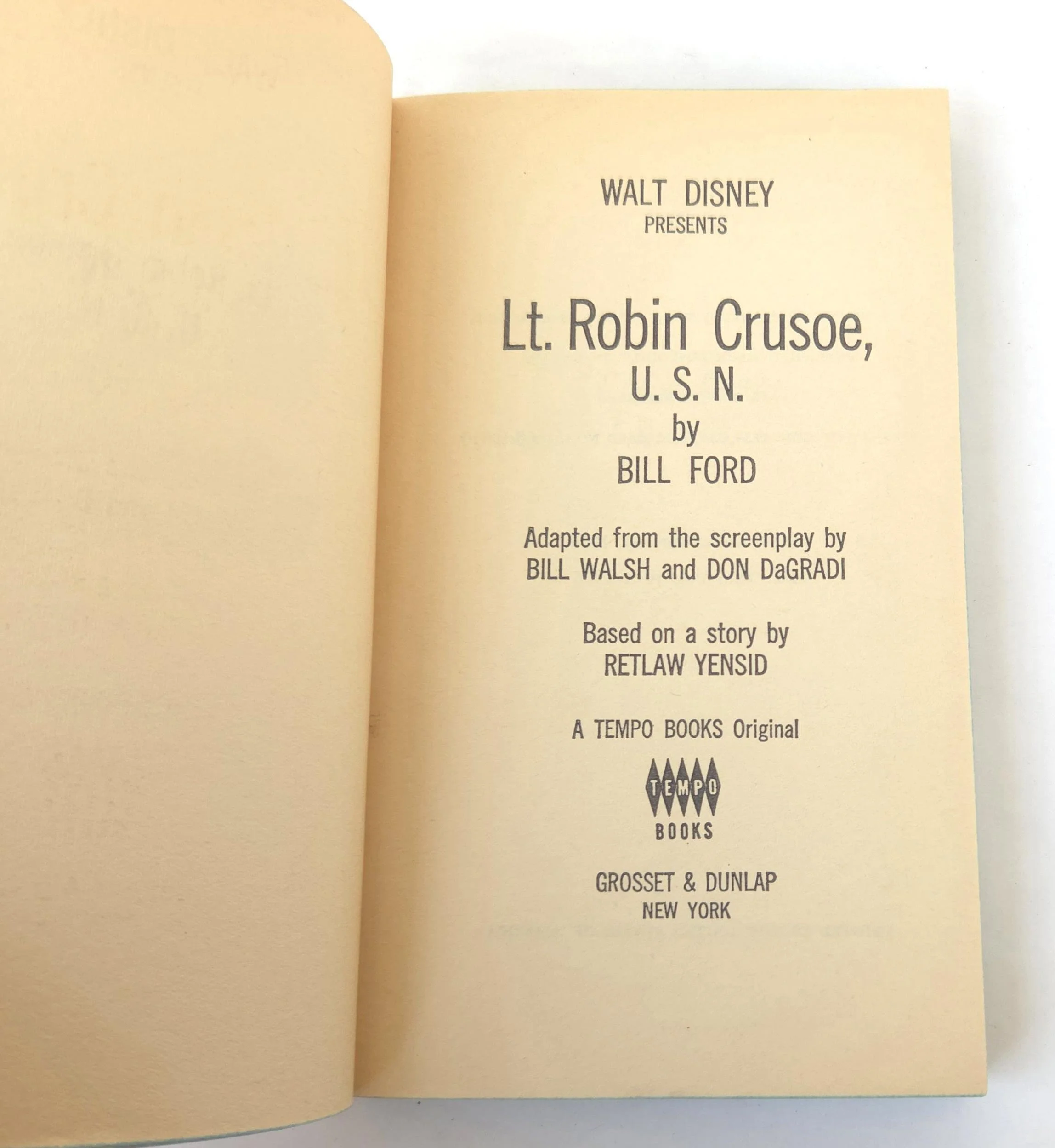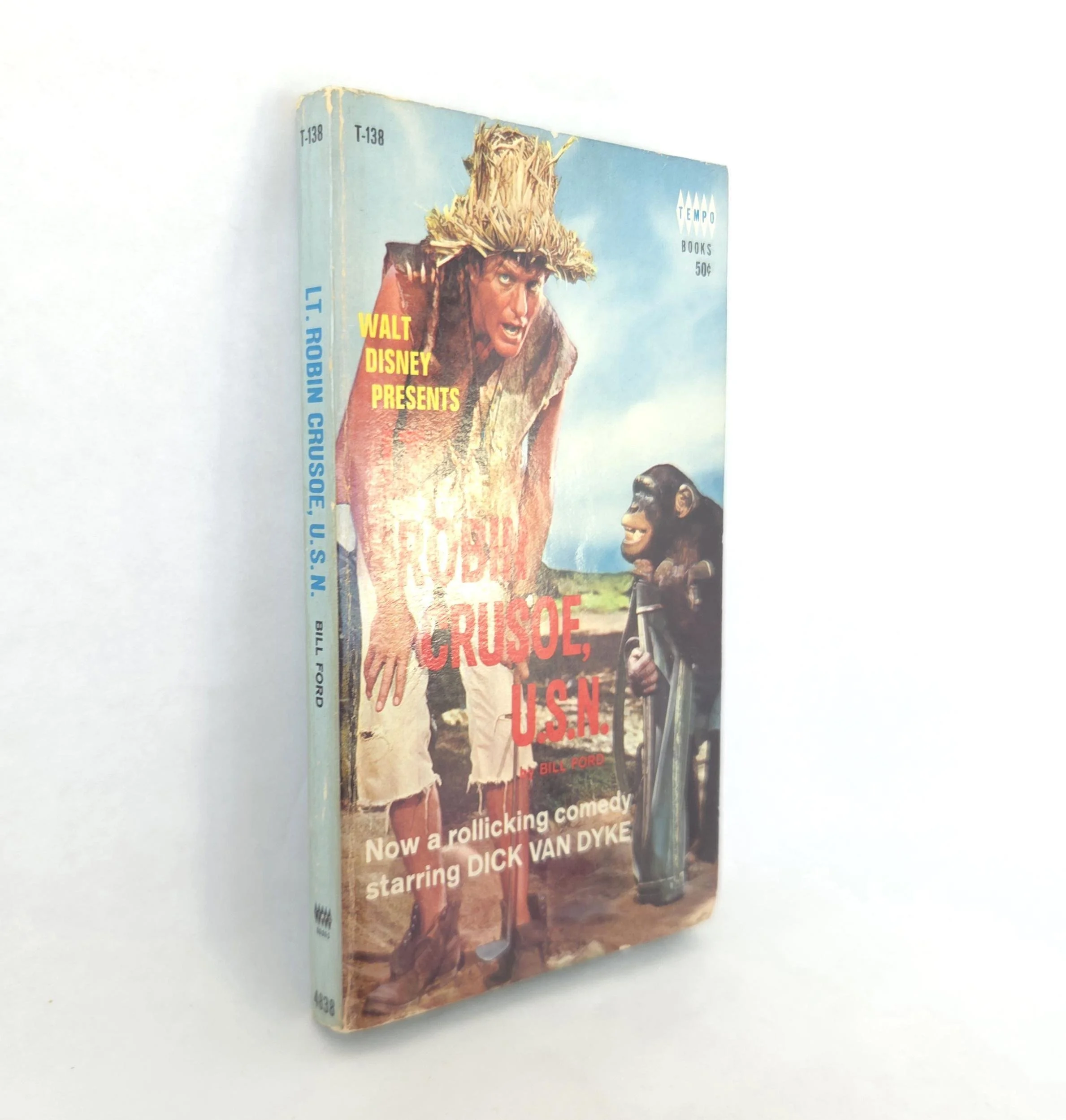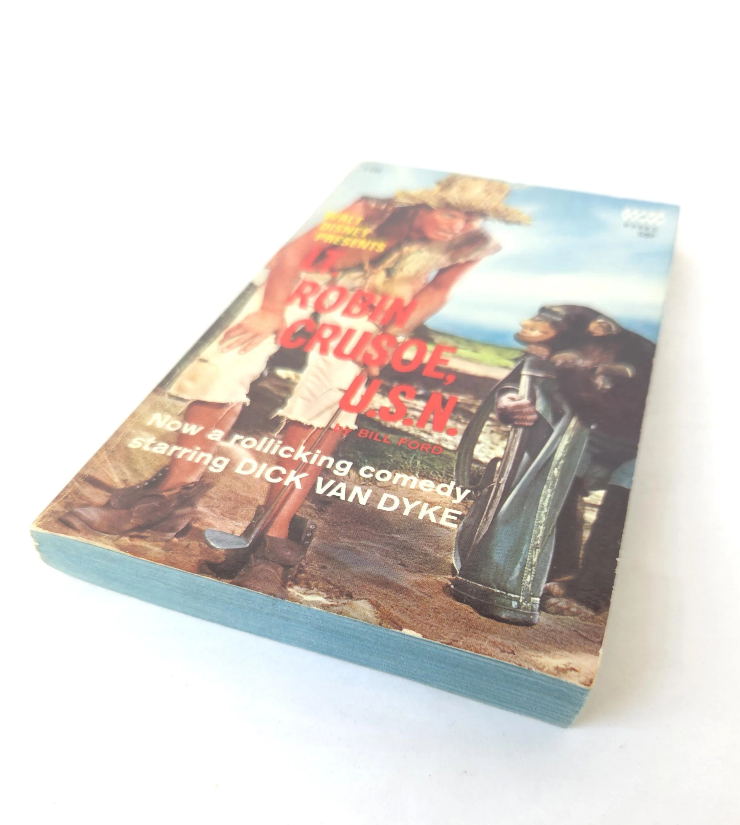 This charming vintage 1966 paperback edition of Walt Disney Presents Lt. Robin Crusoe, U.S.N by Bill Ford is the book the rollicking comedy starring Dick Van Dyke was based on. This copy is in good used vintage condition with some minor wear and creasing to the edges of the cover, but no torn or marked pages and excellent overall color quality.
