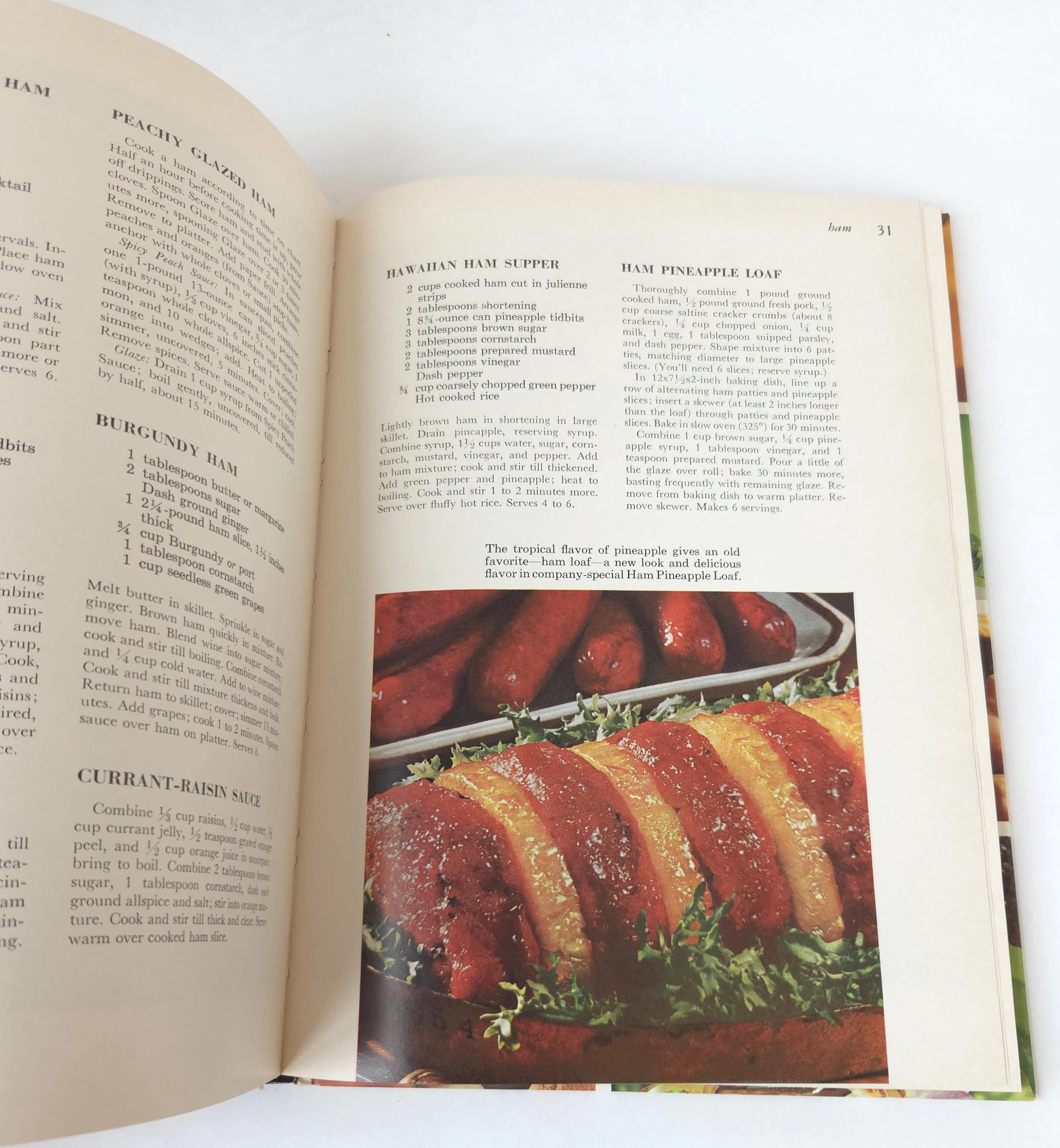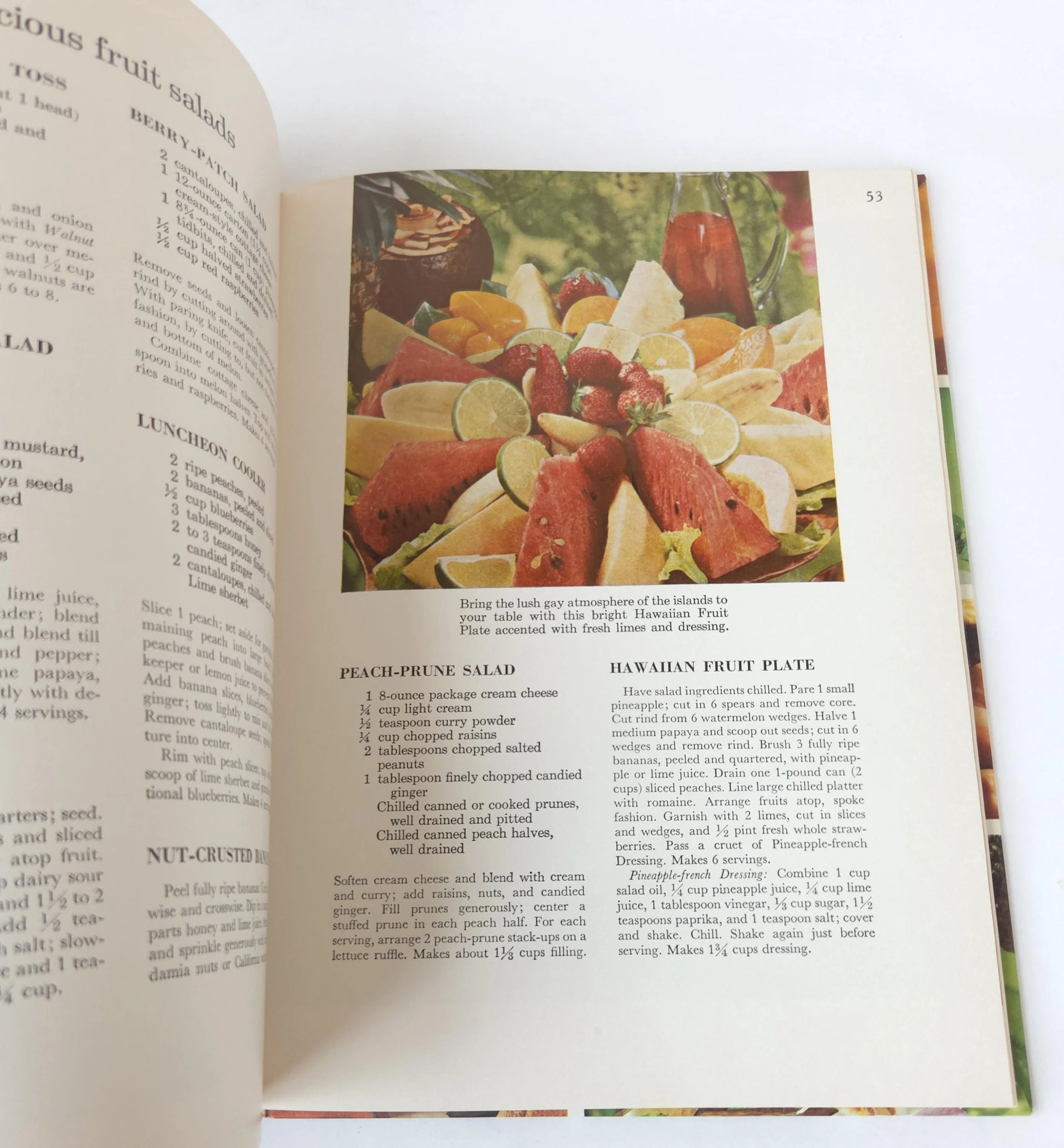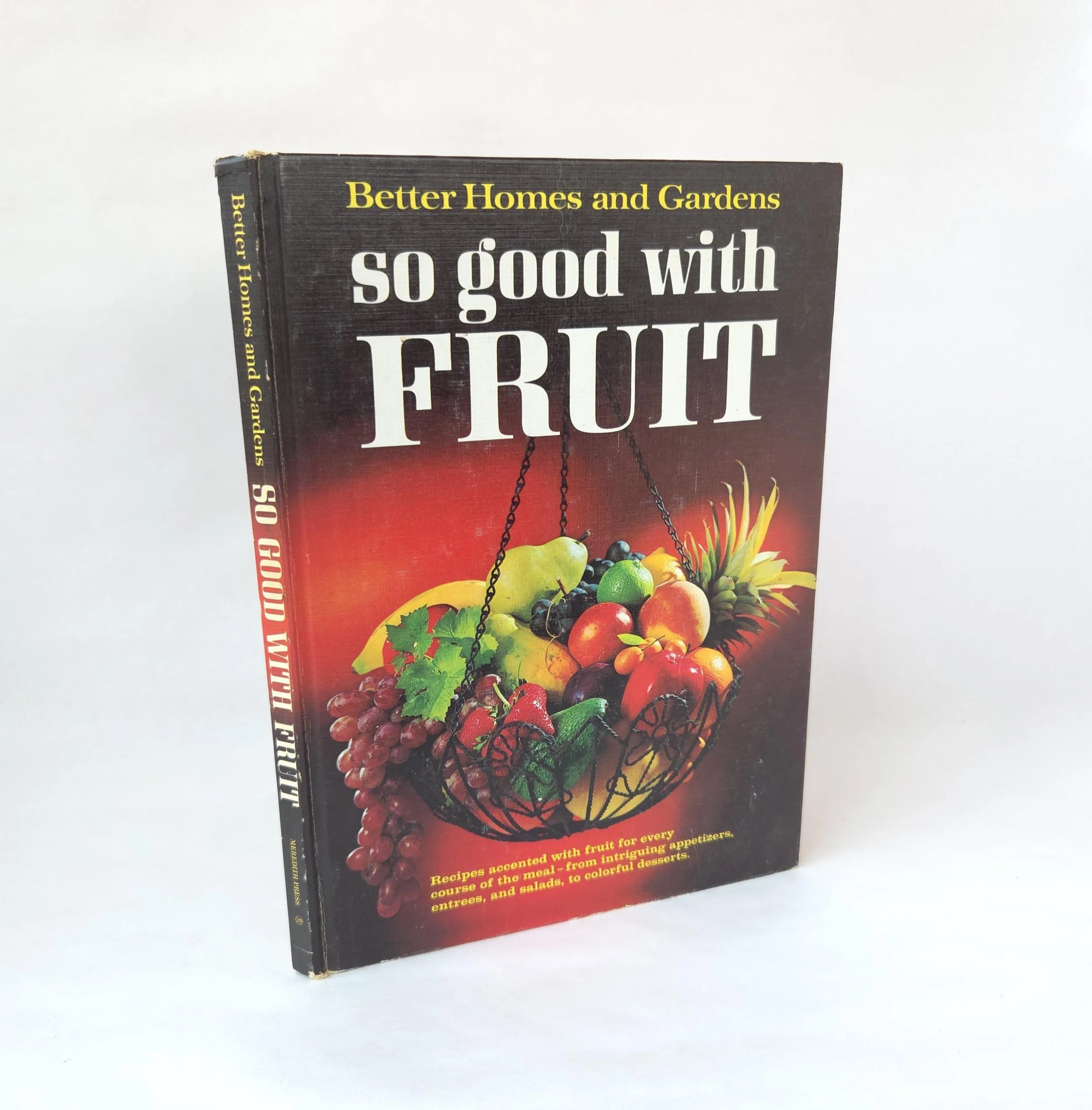 This charming vintage 1967 edition of Better Homes and Gardens So Good With Fruit Cookbook includes dozens of tested recipes for every kind of occasion. The book is in used condition with wear and cracking to the edges of the cover, but no marked or torn pages and excellent overall color quality.