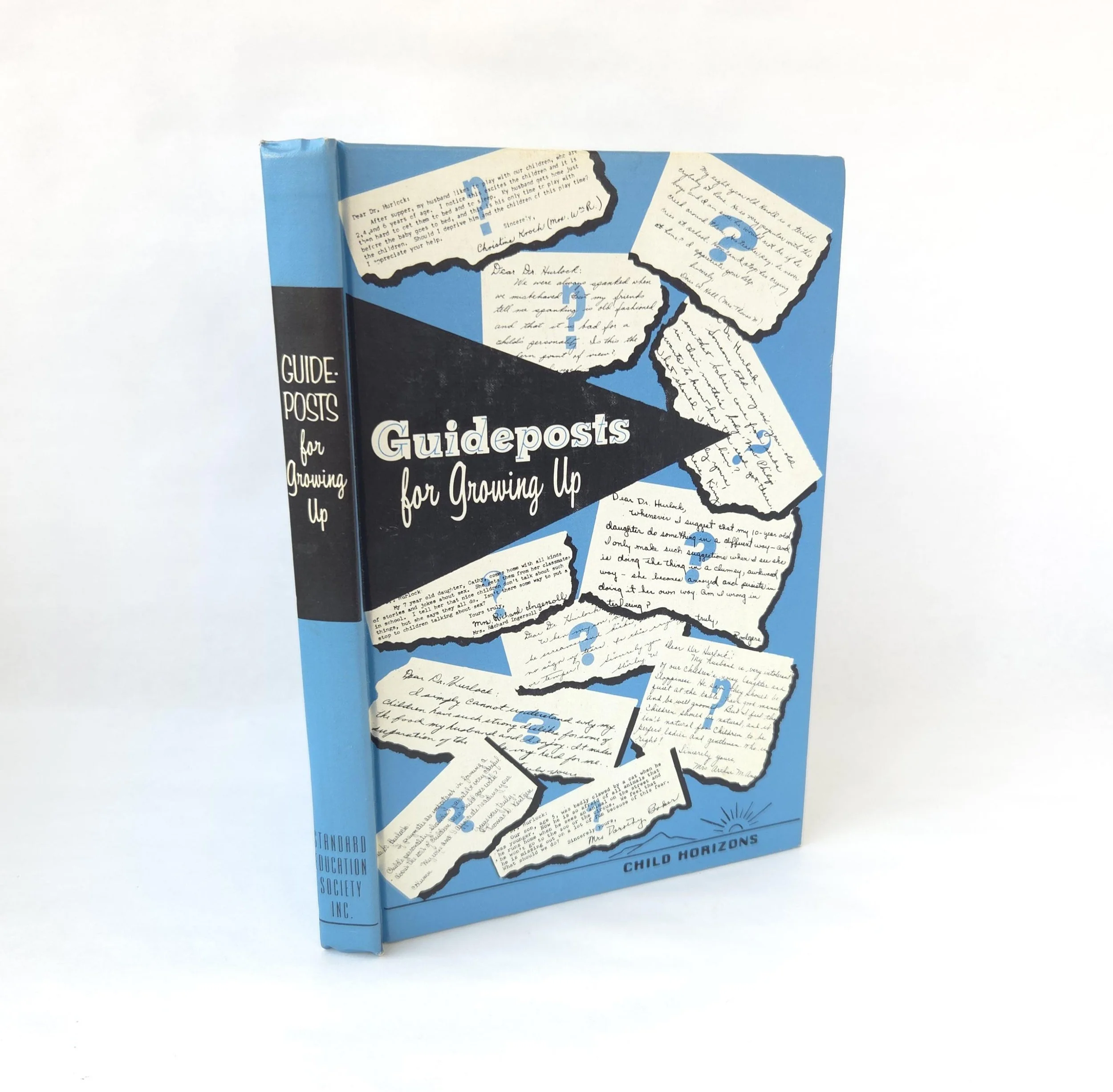 This vintage 1967 hardcover edition of Guideposts For Growing Up by Elizabeth Hurlock is a part of the beloved Child Horizons series. It's full of helpful ideas to make your job as a parent more rewarding and joyful. This copy is in good used condition with some slight wear and scuffing to the cover, but no torn or marked pages and excellent overall color quality.
