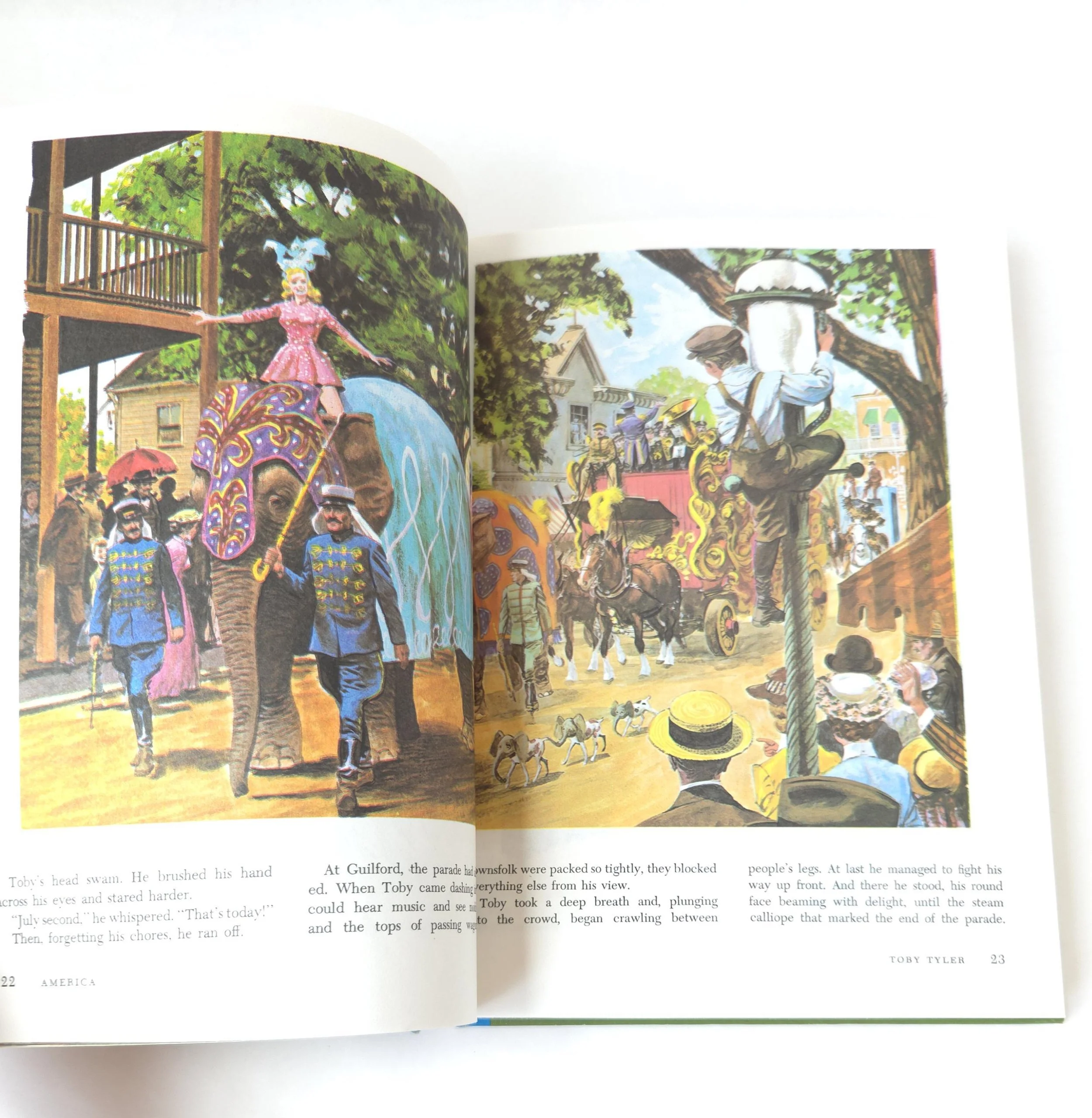 This charming vintage 1967 edition of Rolling Along is a part of the Open Highways Readers Series from Scott, Foresman and Company and is book one, part 2 of the collection. The book is an anthology of classic children's stories and poems with colorful illustrations and striking black and white photographs. This piece is in good used condition with a stamp and name inside the front cover, but no torn or marked pages and excellent overall color quality.