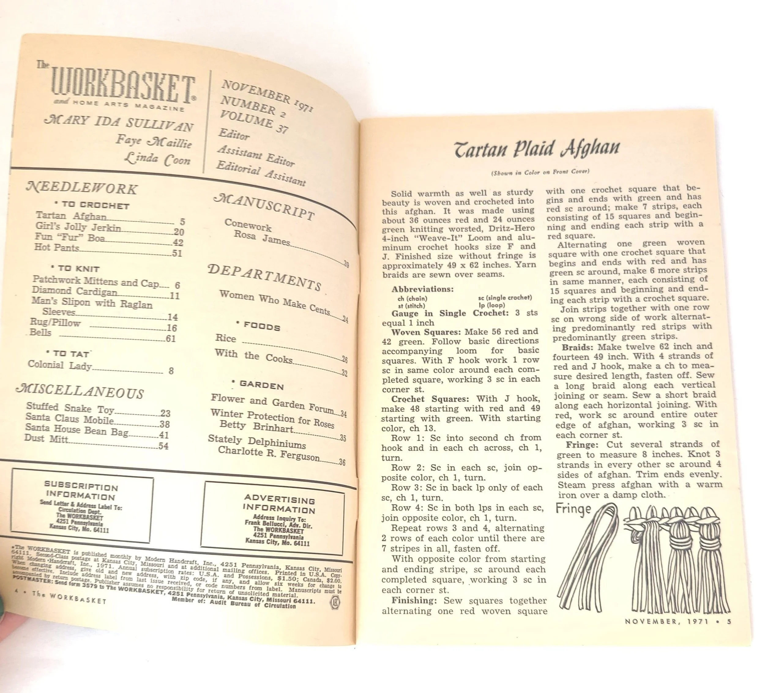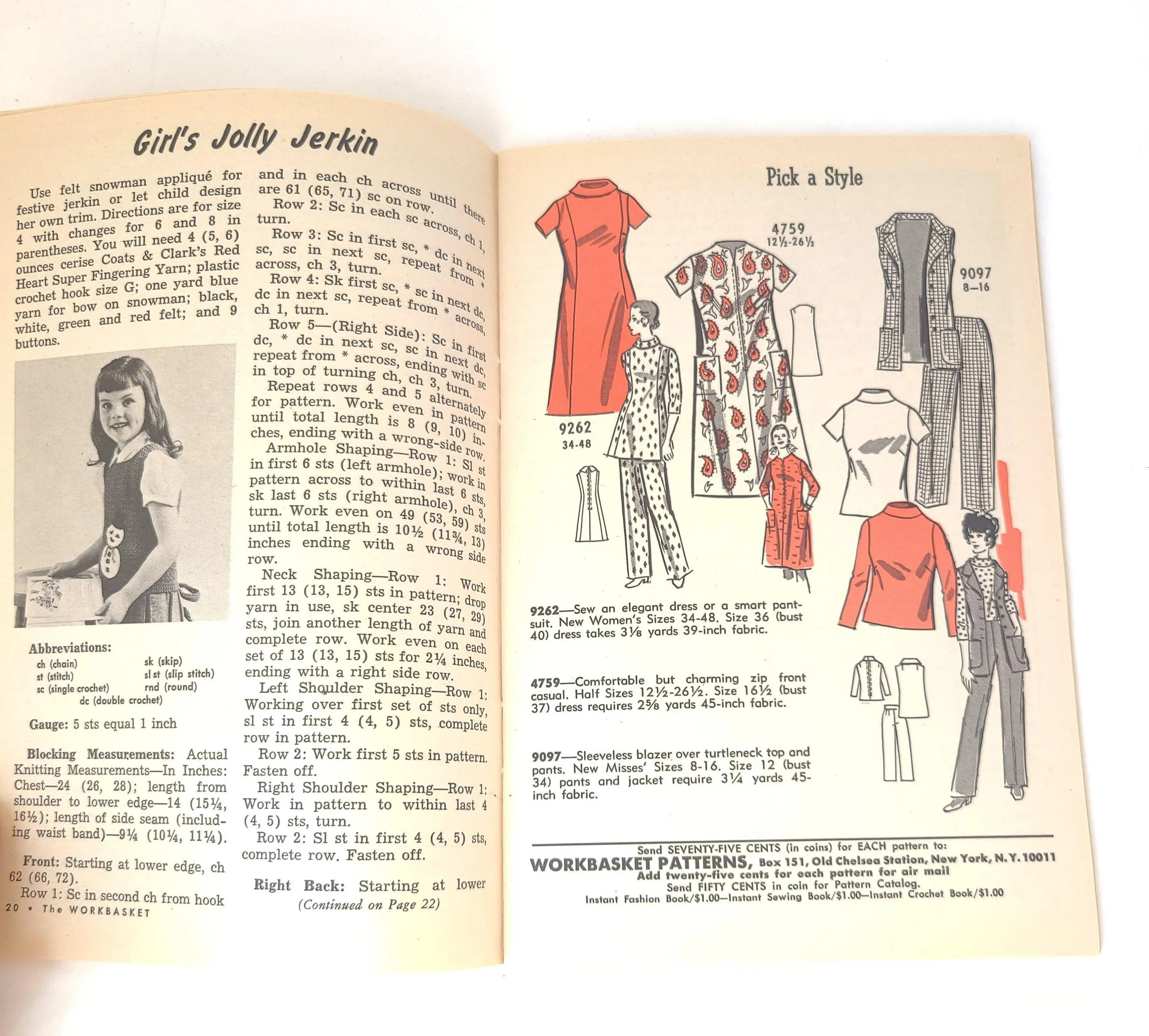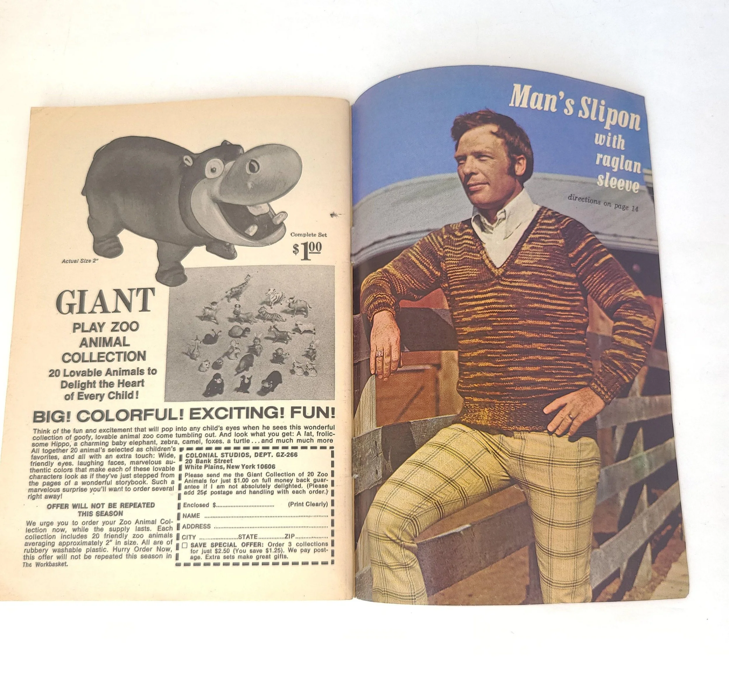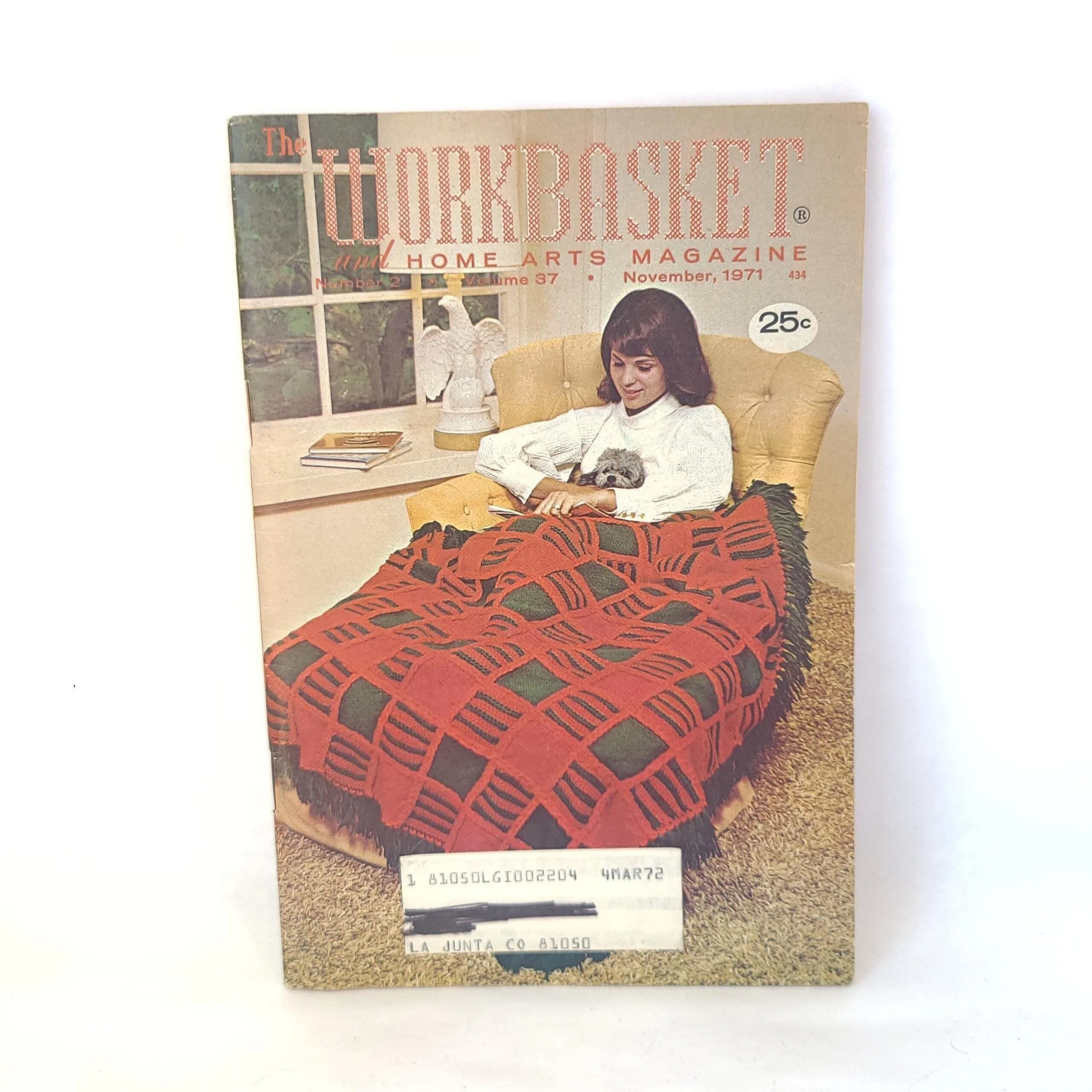This charming vintage September 1971 edition of The Workbasket and Home Arts Magazine is Number 12, Volume 36. This issue features a pattern for a knit baby booties, along with designs for tatted chapel squares, tasty sandwich recipes - and much more. The magazine is in good used condition with some small tears to the edges of the cover and the original mailing address label on the front, but no torn or marked pages and excellent overall color quality.
