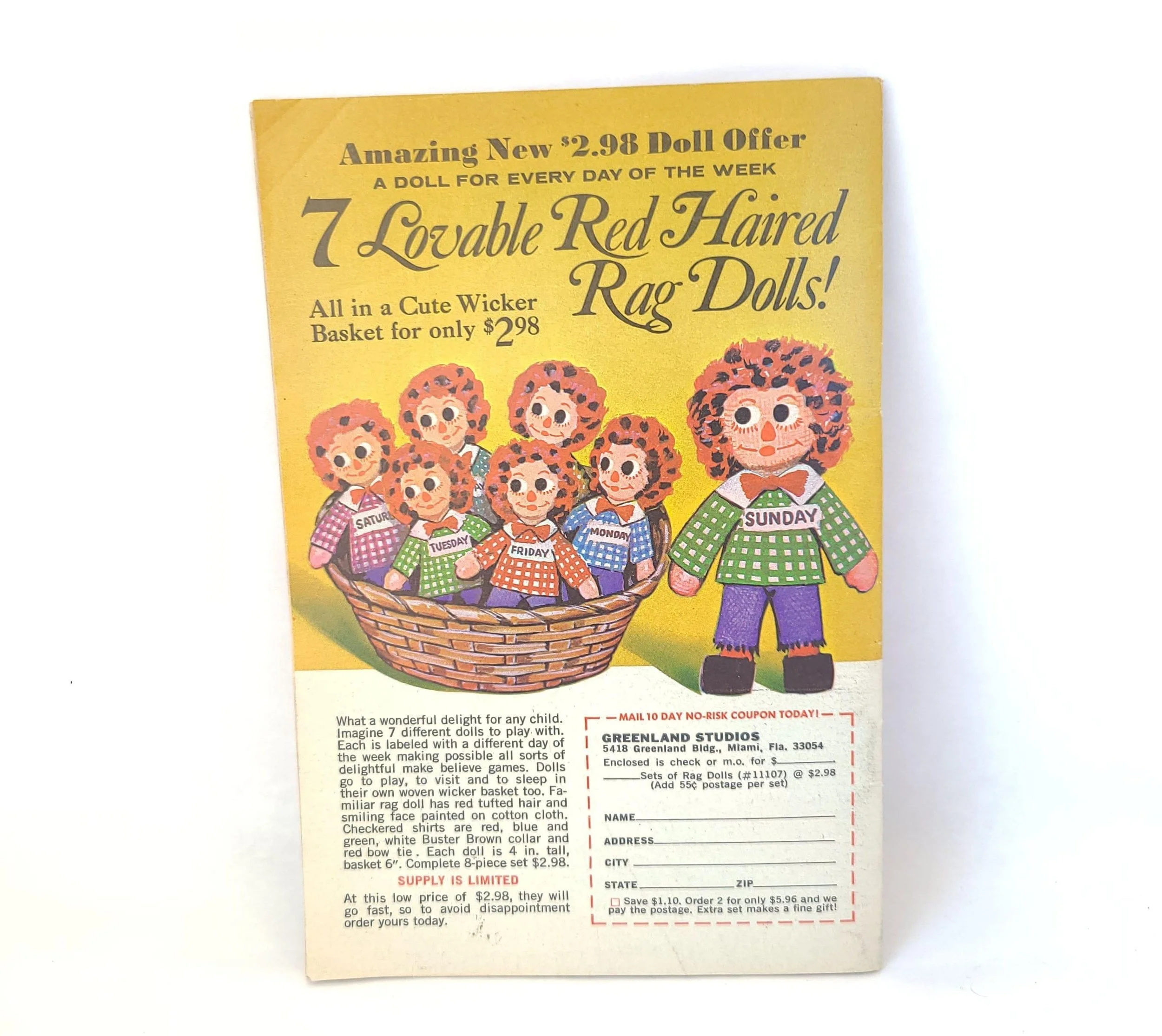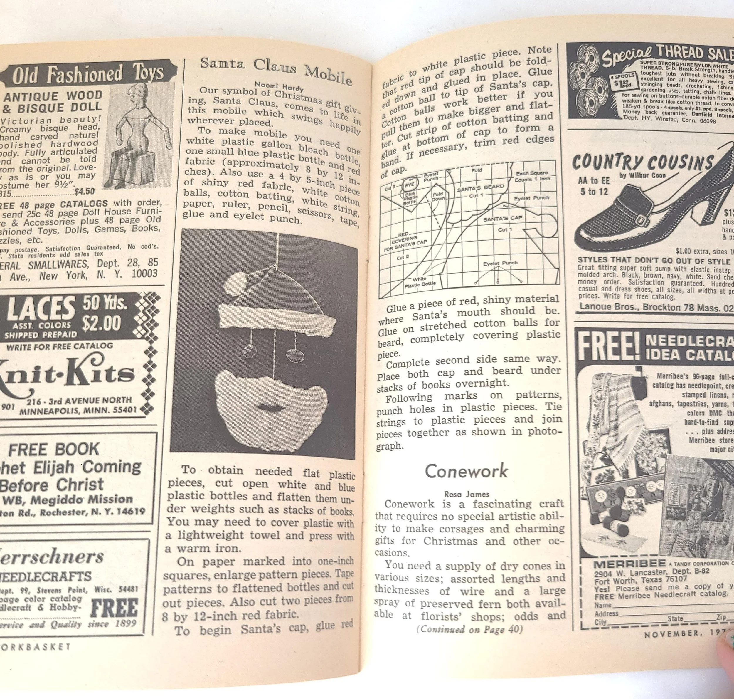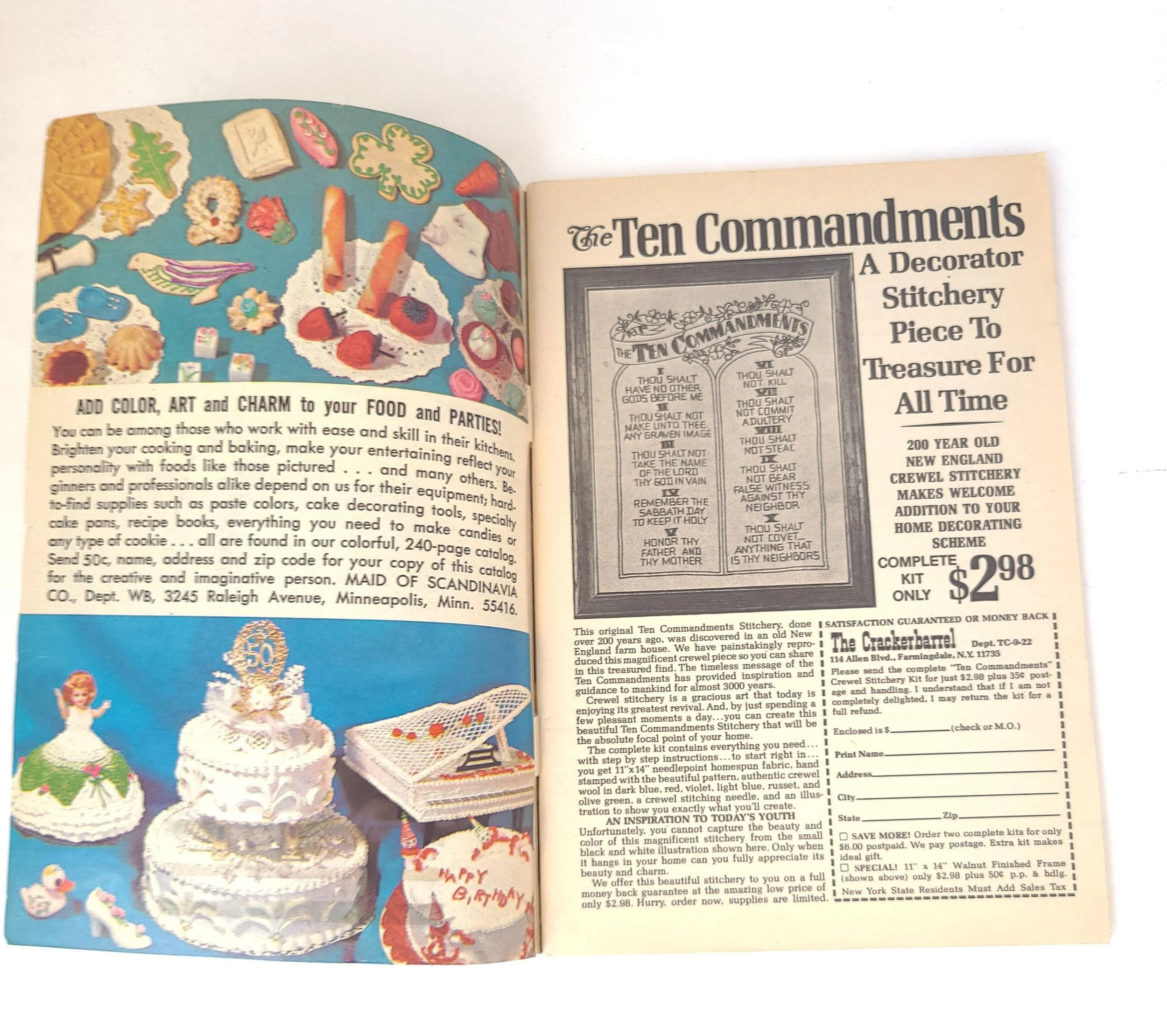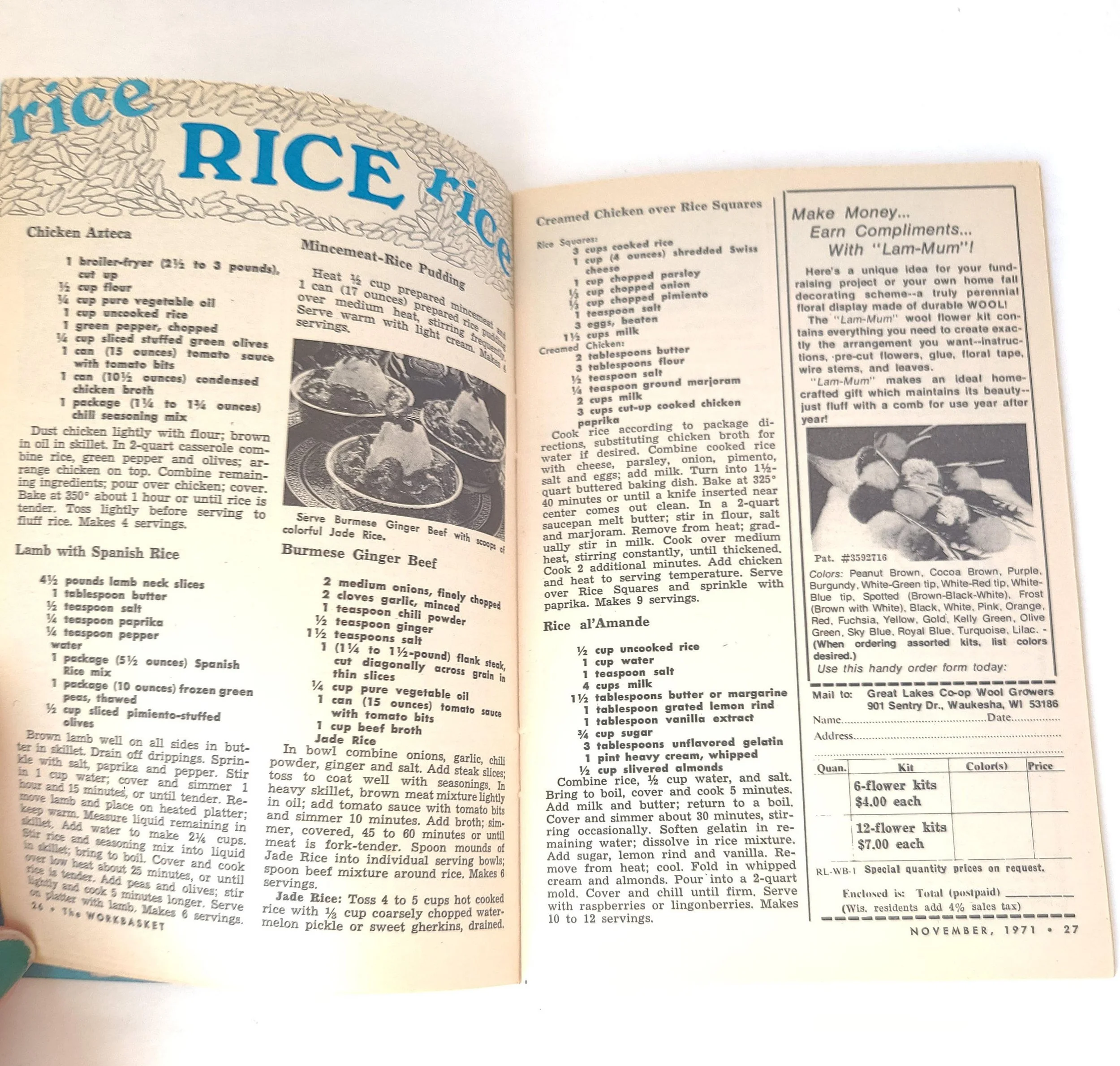 This charming vintage September 1971 edition of The Workbasket and Home Arts Magazine is Number 12, Volume 36. This issue features a pattern for a knit baby booties, along with designs for tatted chapel squares, tasty sandwich recipes - and much more. The magazine is in good used condition with some small tears to the edges of the cover and the original mailing address label on the front, but no torn or marked pages and excellent overall color quality.