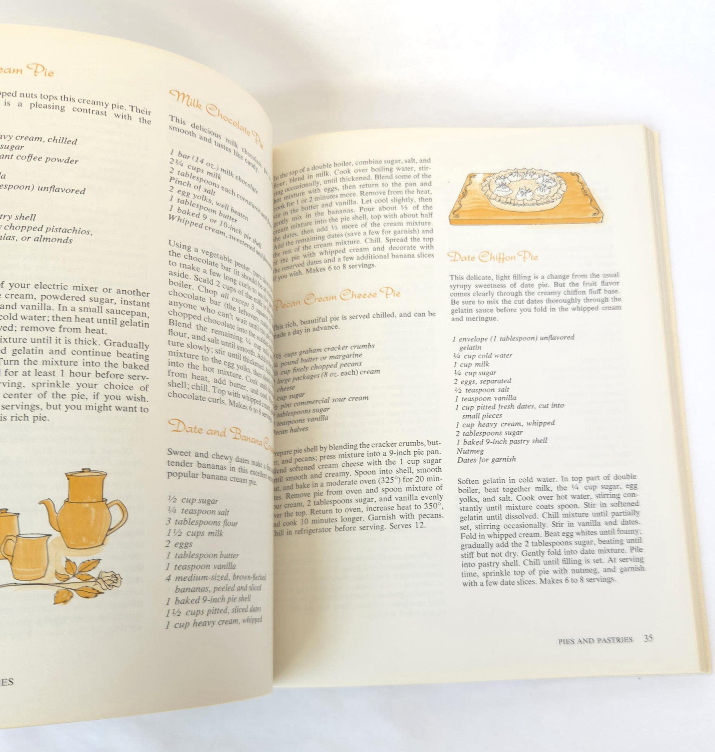 This charming vintage 1972 edition of the Sunset Cook Book of Desserts features dozens of mouth watering recipes along with easy to follow instructions. The book is in good used vintage condition with some minor wear to the edges of the cover, but no torn or marked pages and excellent overall color quality.