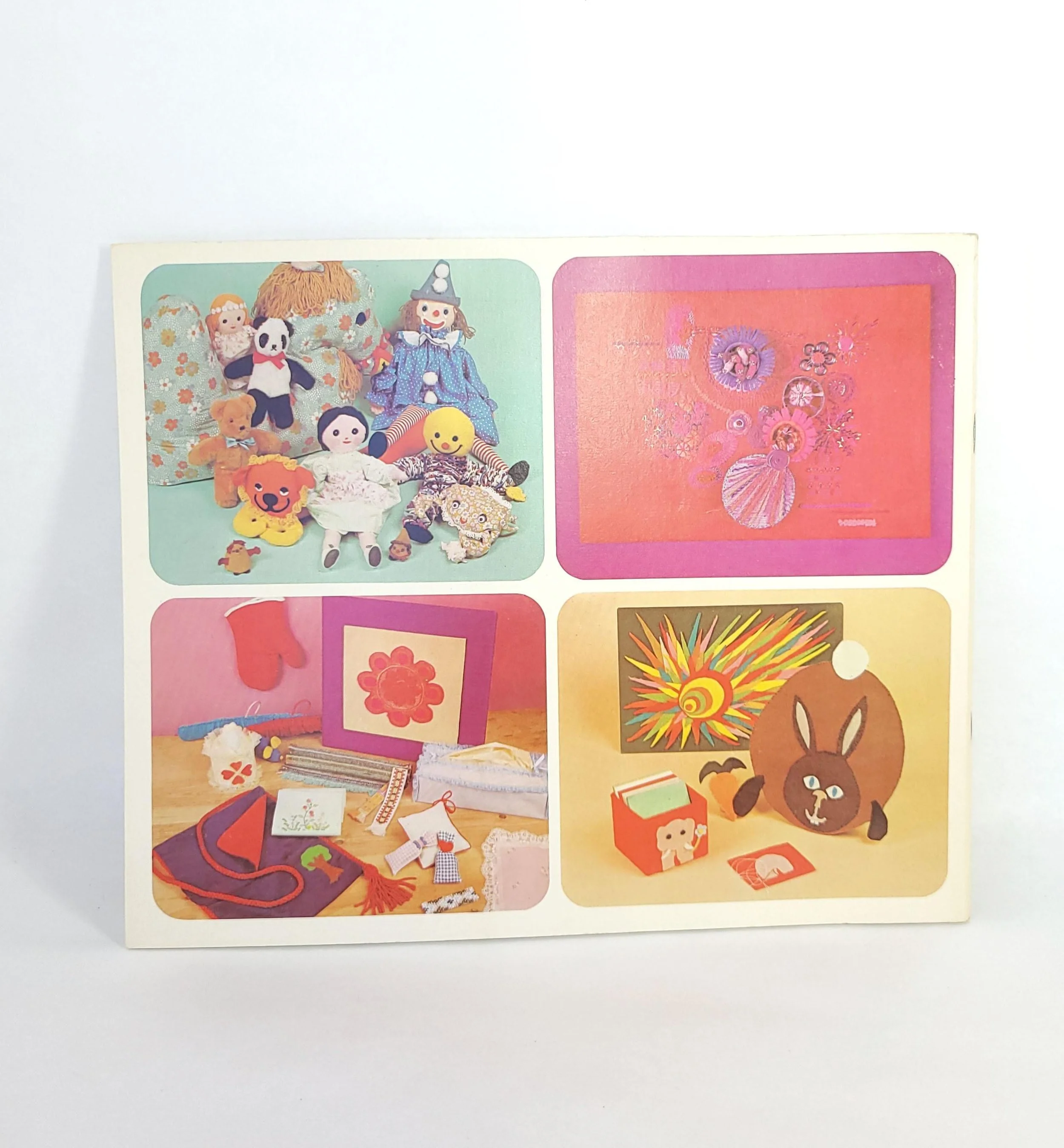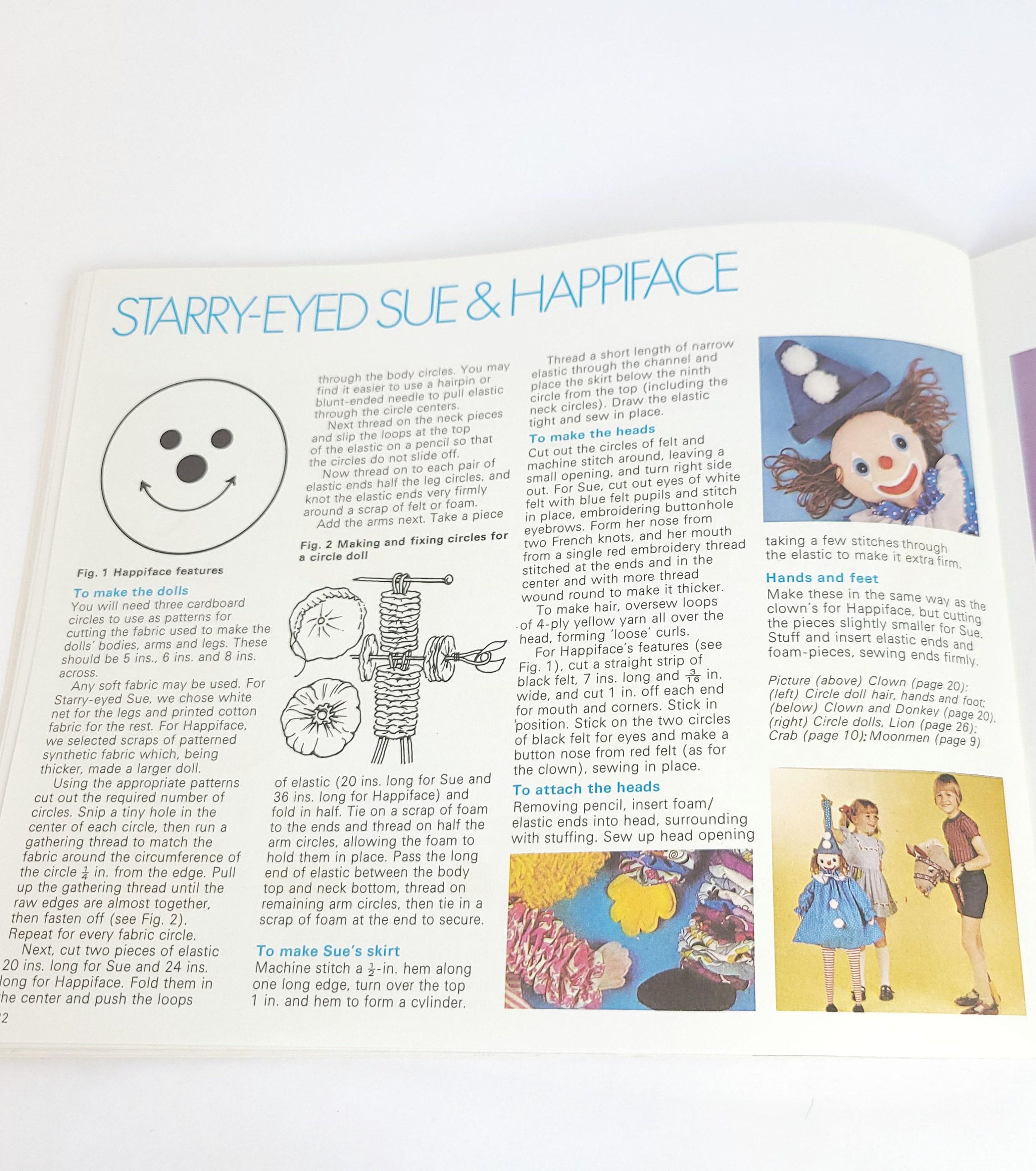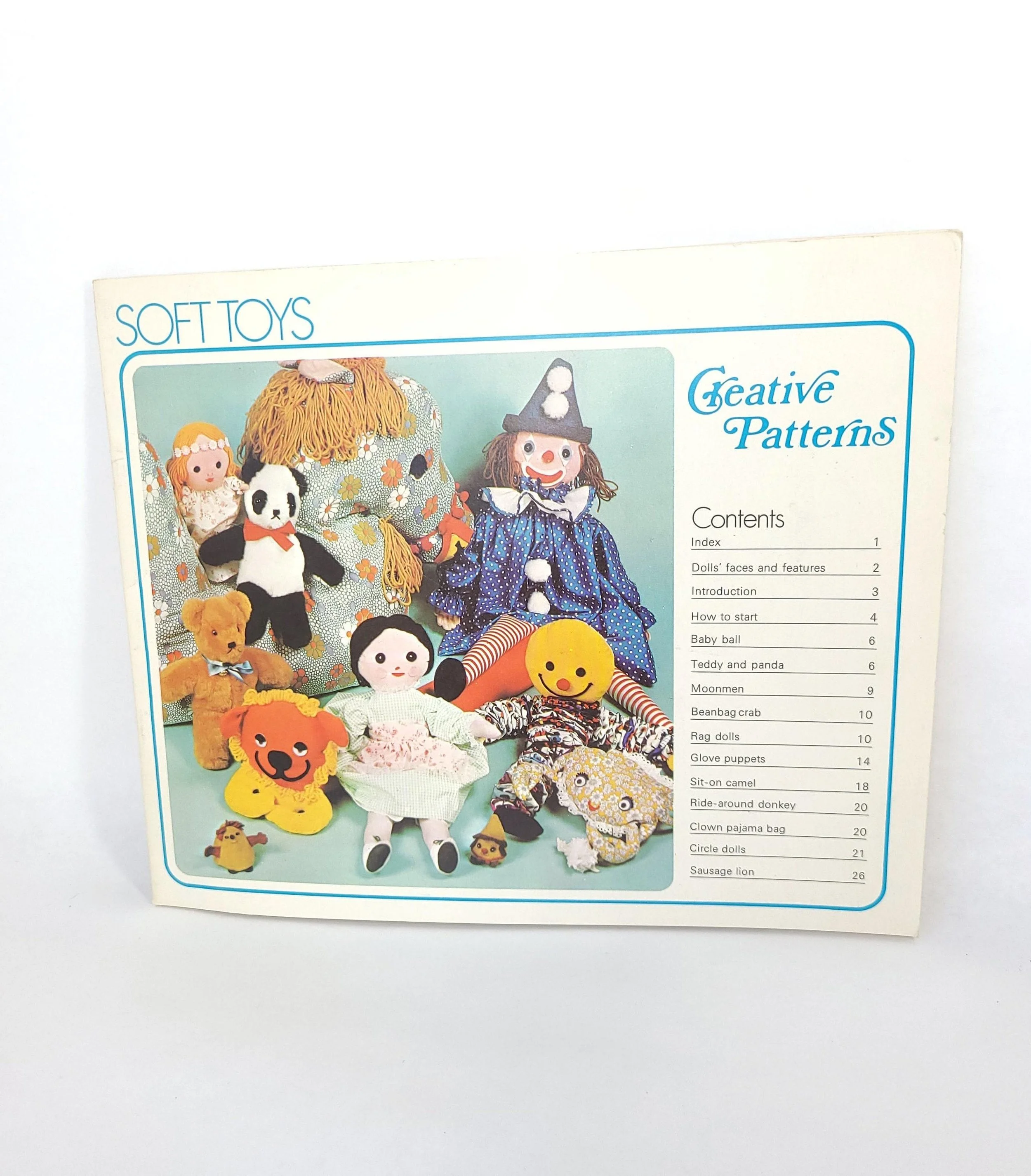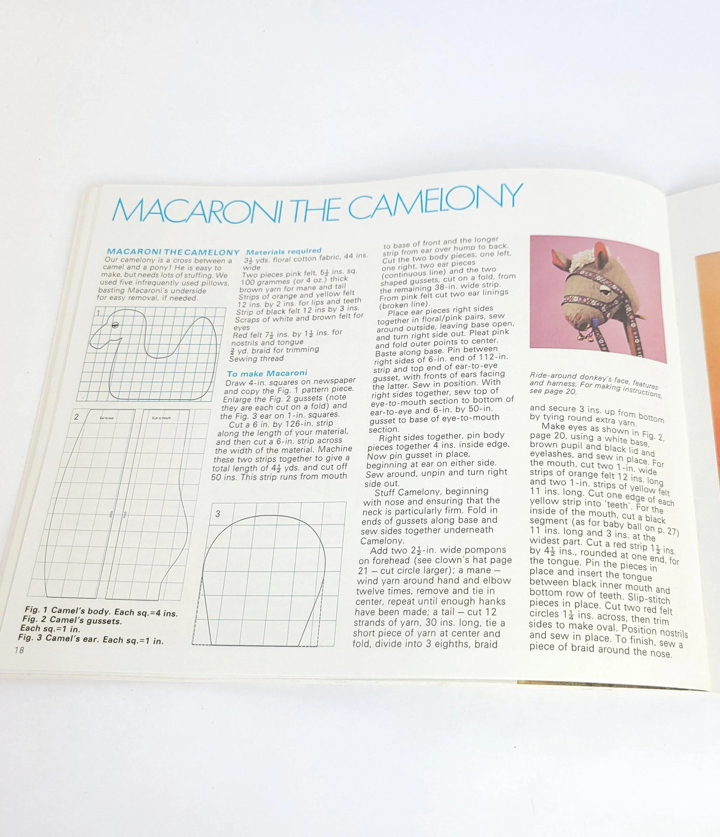 This 1975 edition of Creative Patterns for Soft Toys features over a dozen fun, easy to follow projects for making softs toys, including stuffed animals, puppets, dolls and much more. The booklet is in good used condition with no torn or missing pages and excellent color quality.