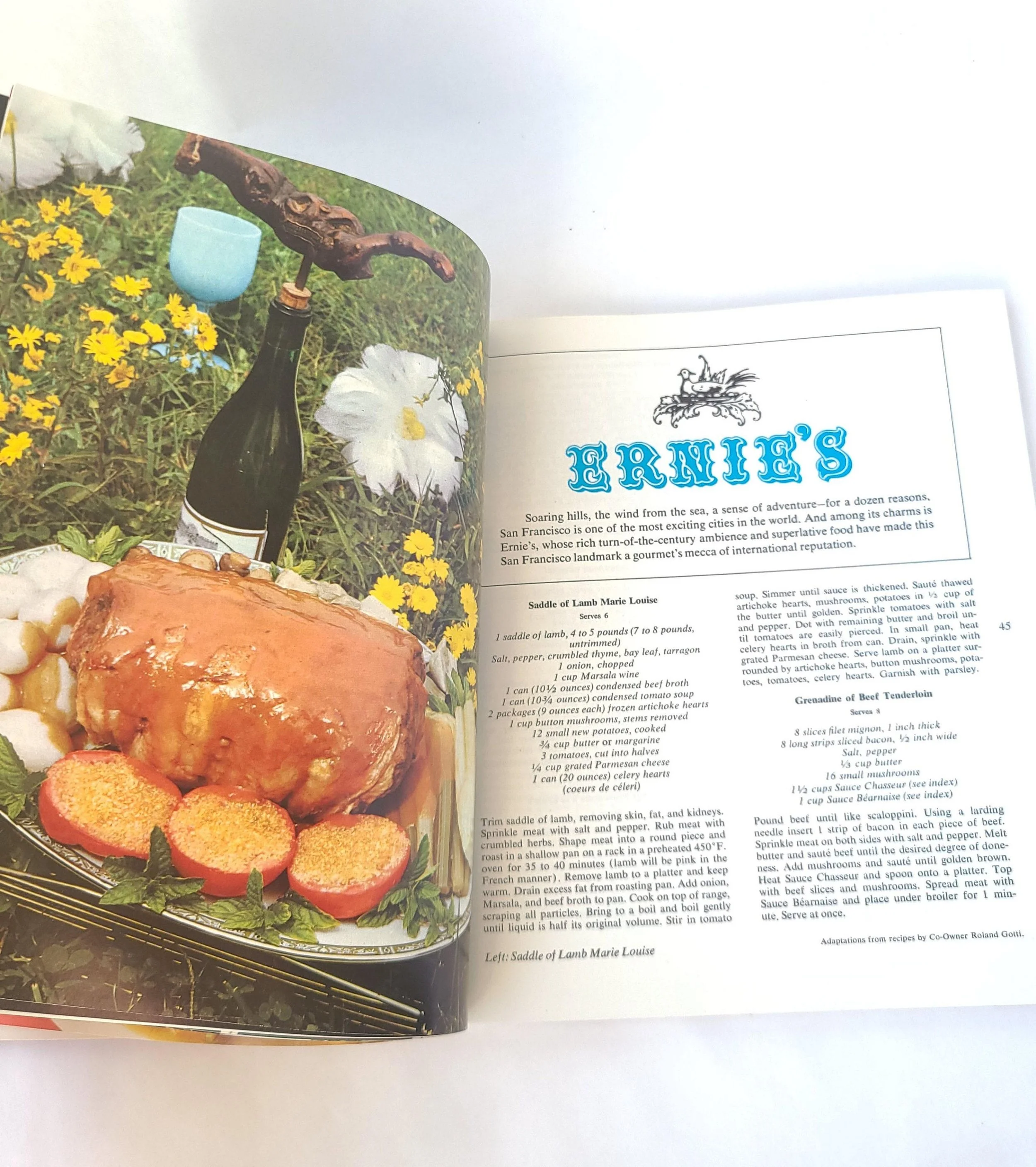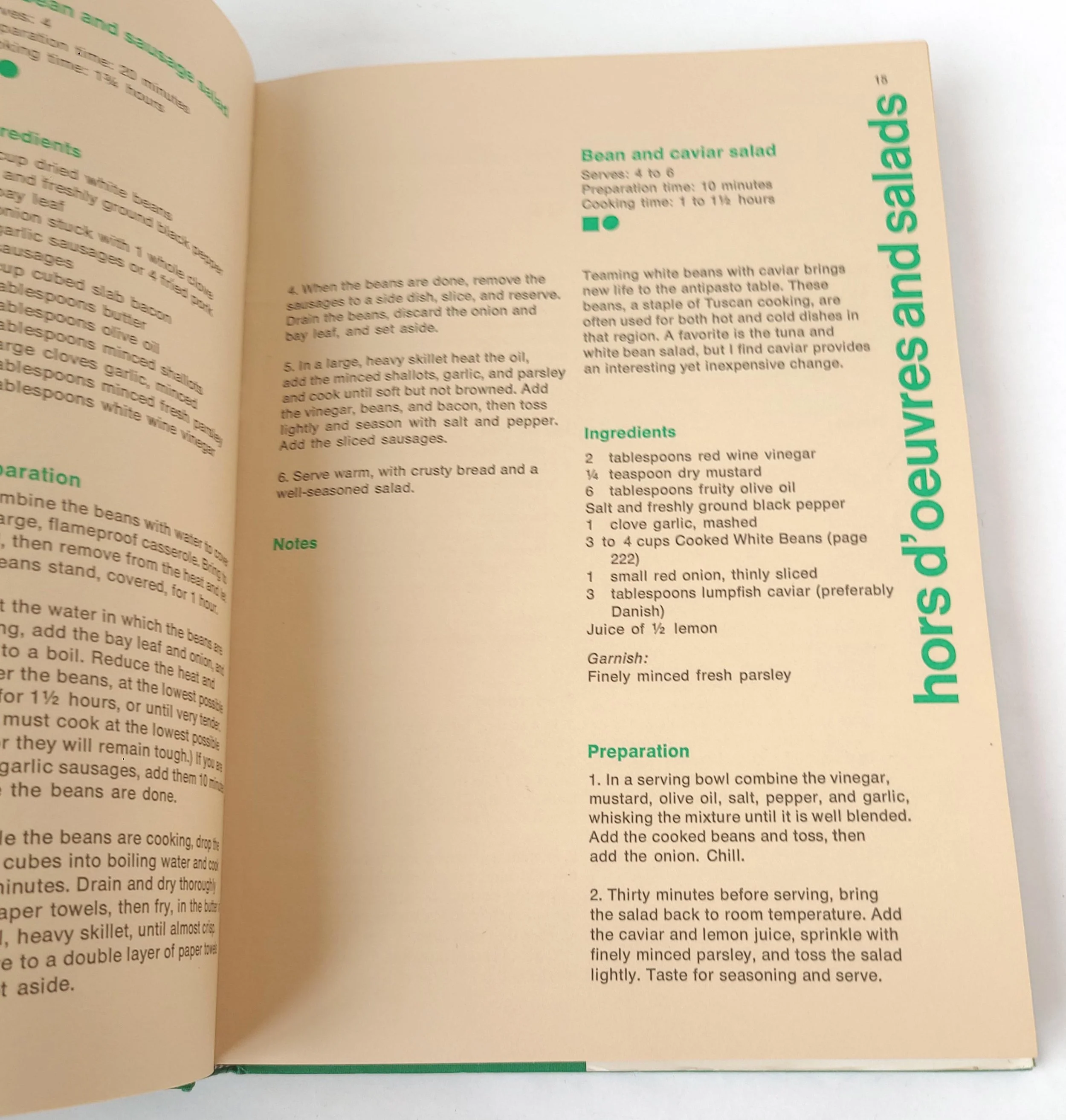 This vintage 1975 Hardcover First Edition of The Peasant Kitchen was written by Award-winning cookbook author Perla Meyers. She has collected many of the most cherished traditions of European country cuisine in a series of 200 simple, hearty dishes that can by easily prepared. The book is in used condition with some small wear and tears to the edges of the dust jacket, along with a handwritten price from a previous seller inside the front flap of the dust jacket - but no torn or marked pages and excellent overall color quality.
