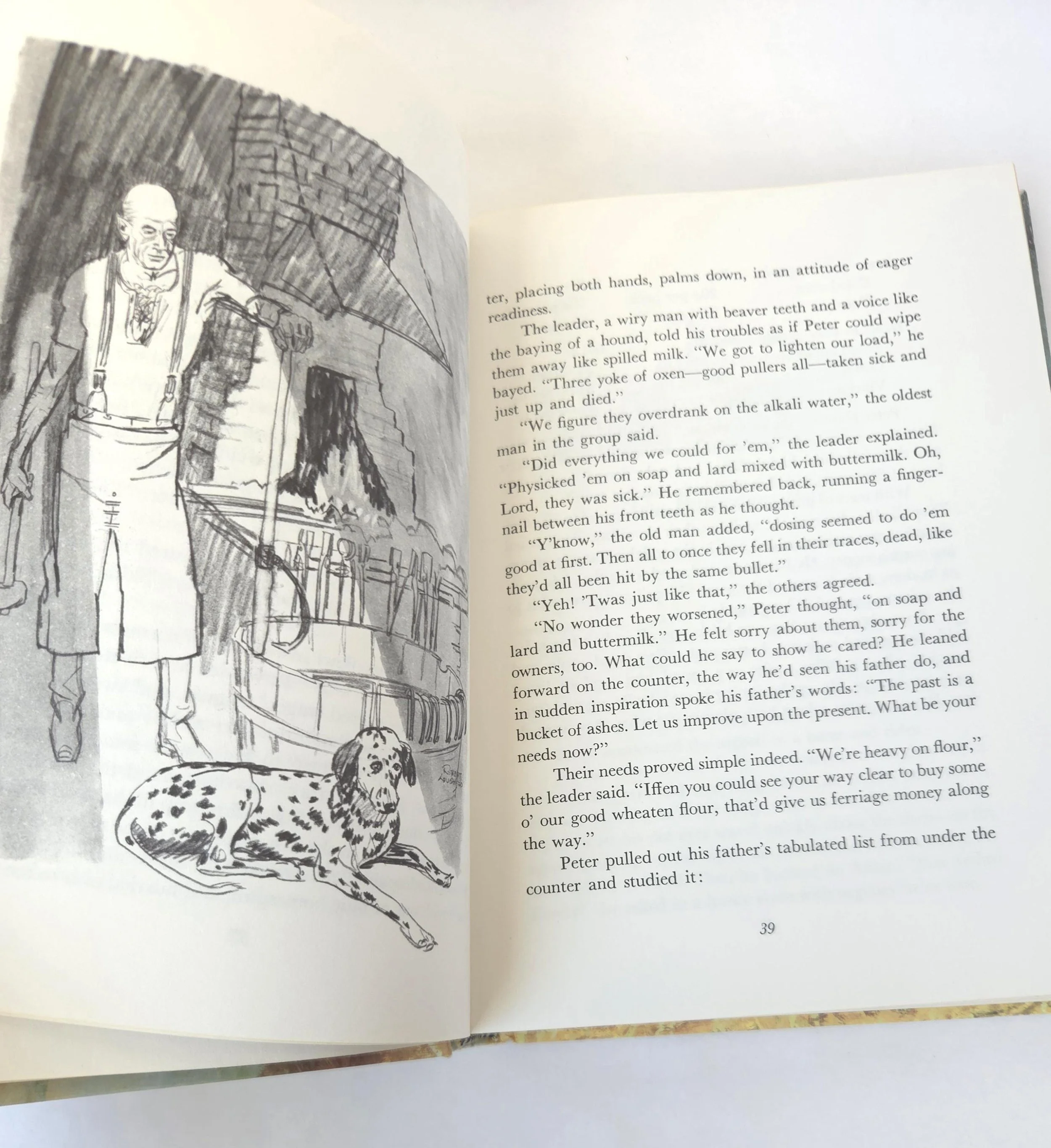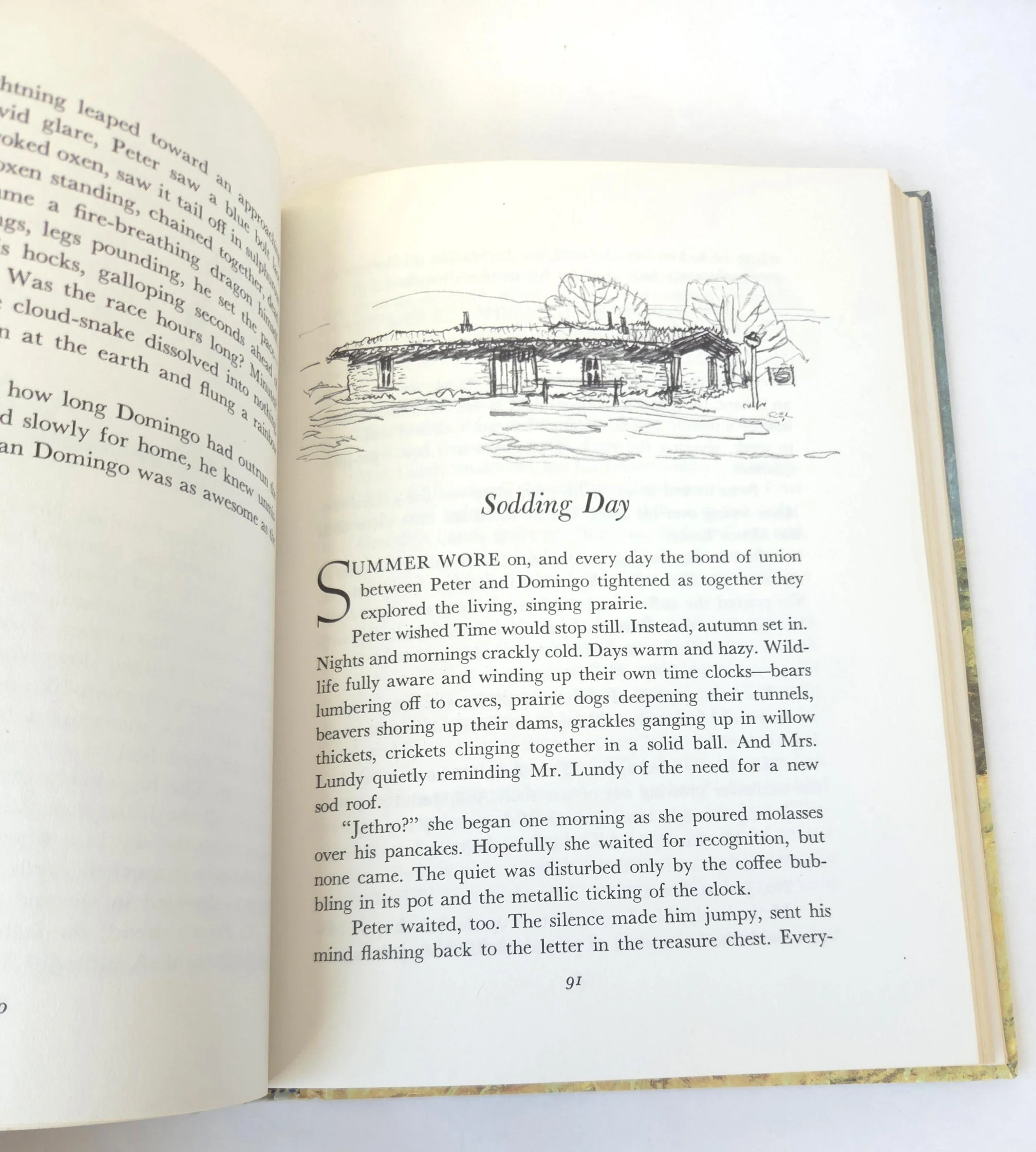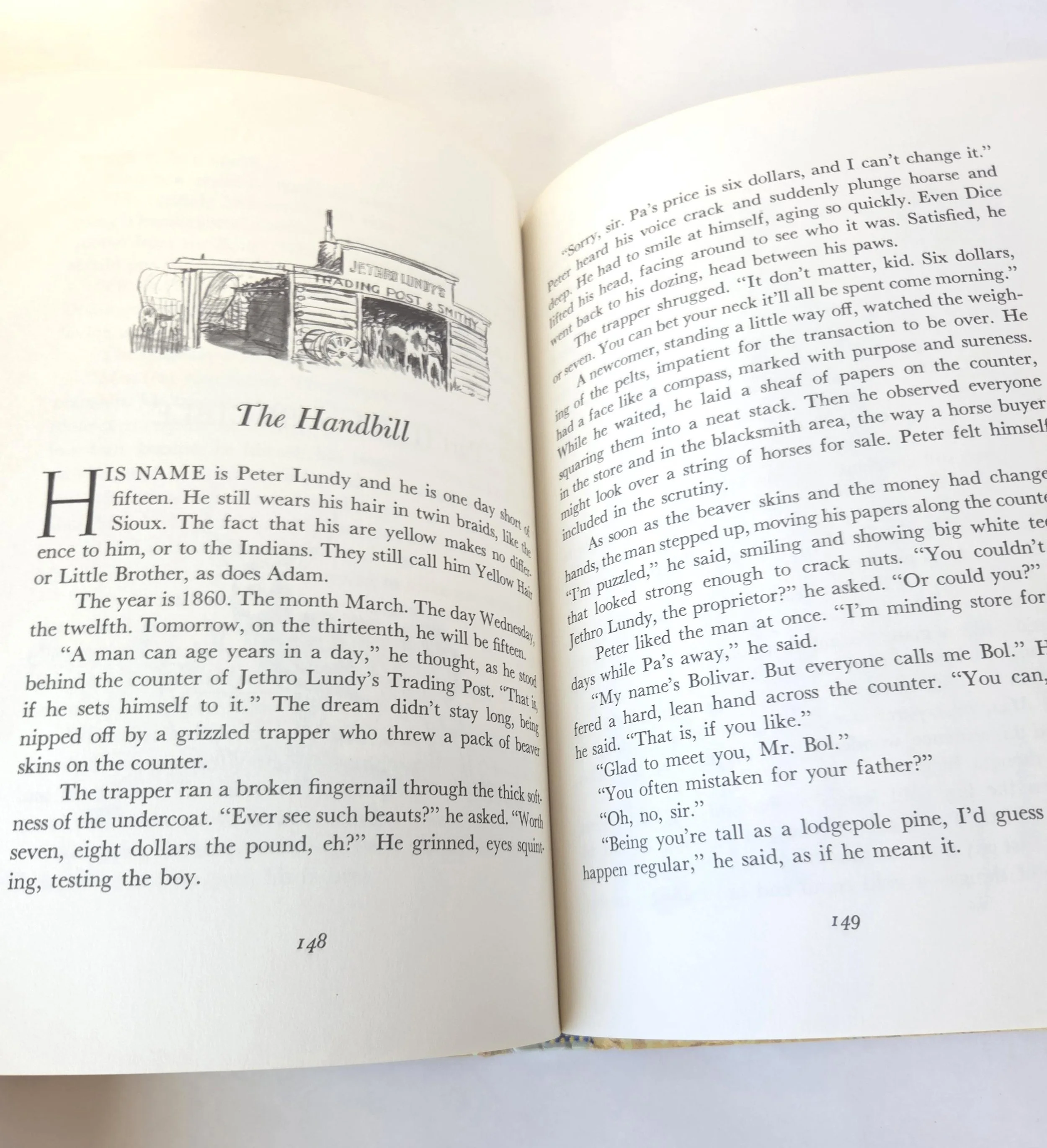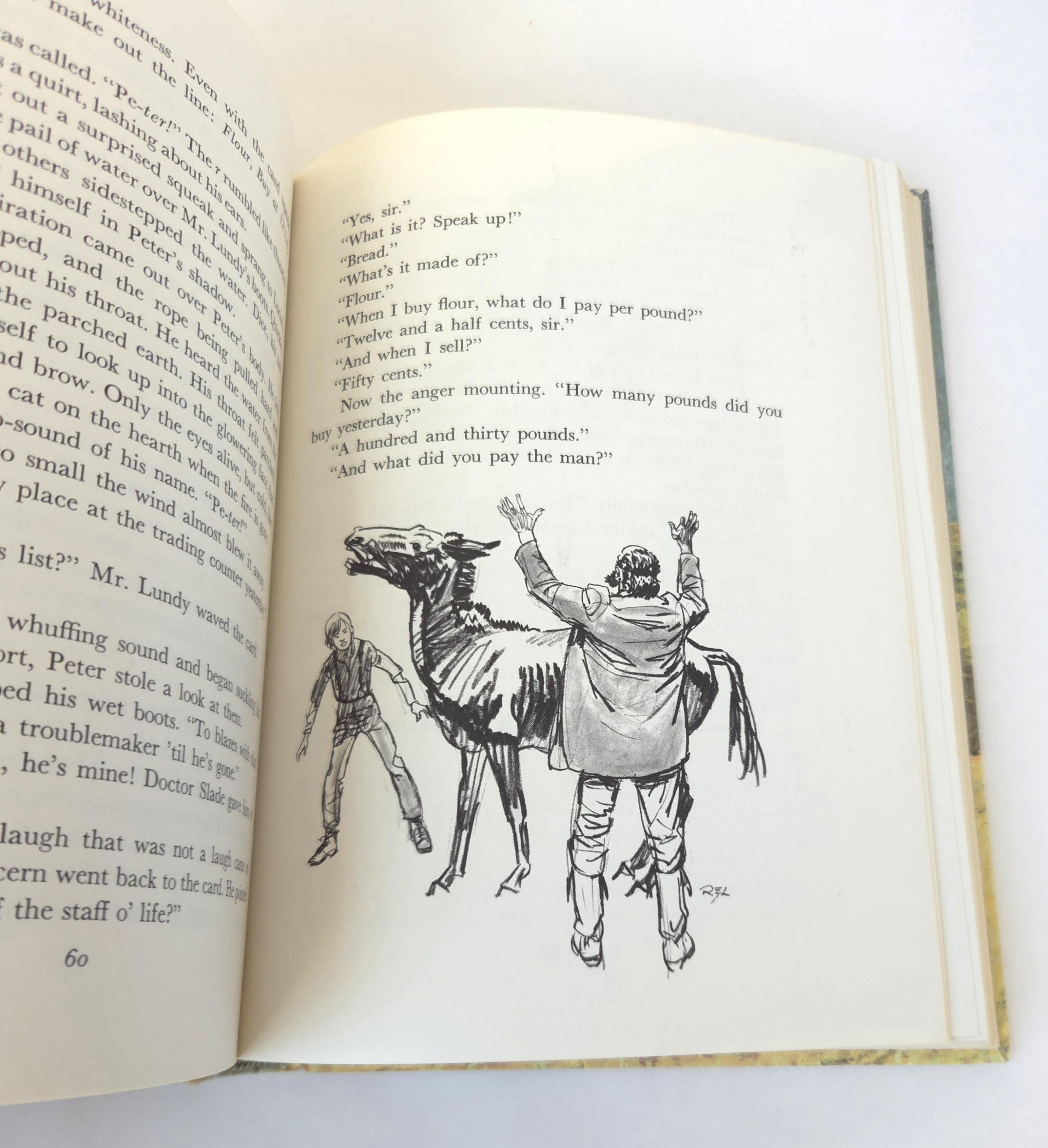 This special 1981 hardcover edition of San Domingo: The Medicine Hat Stallion is a novel by Marguerite Henry, featuring illustrations by Robert Loughee. It tells the story of a sacred horse with a white "war bonnet" marking, believed to protect its rider. The story follows Peter Lundy and his bond with the horse, which is broken when his father trades the horse, forcing Peter to leave home. This copy is in good used vintage condition with some minor wear to the edges of the cover, but no torn or marked pages and excellent overall color quality.