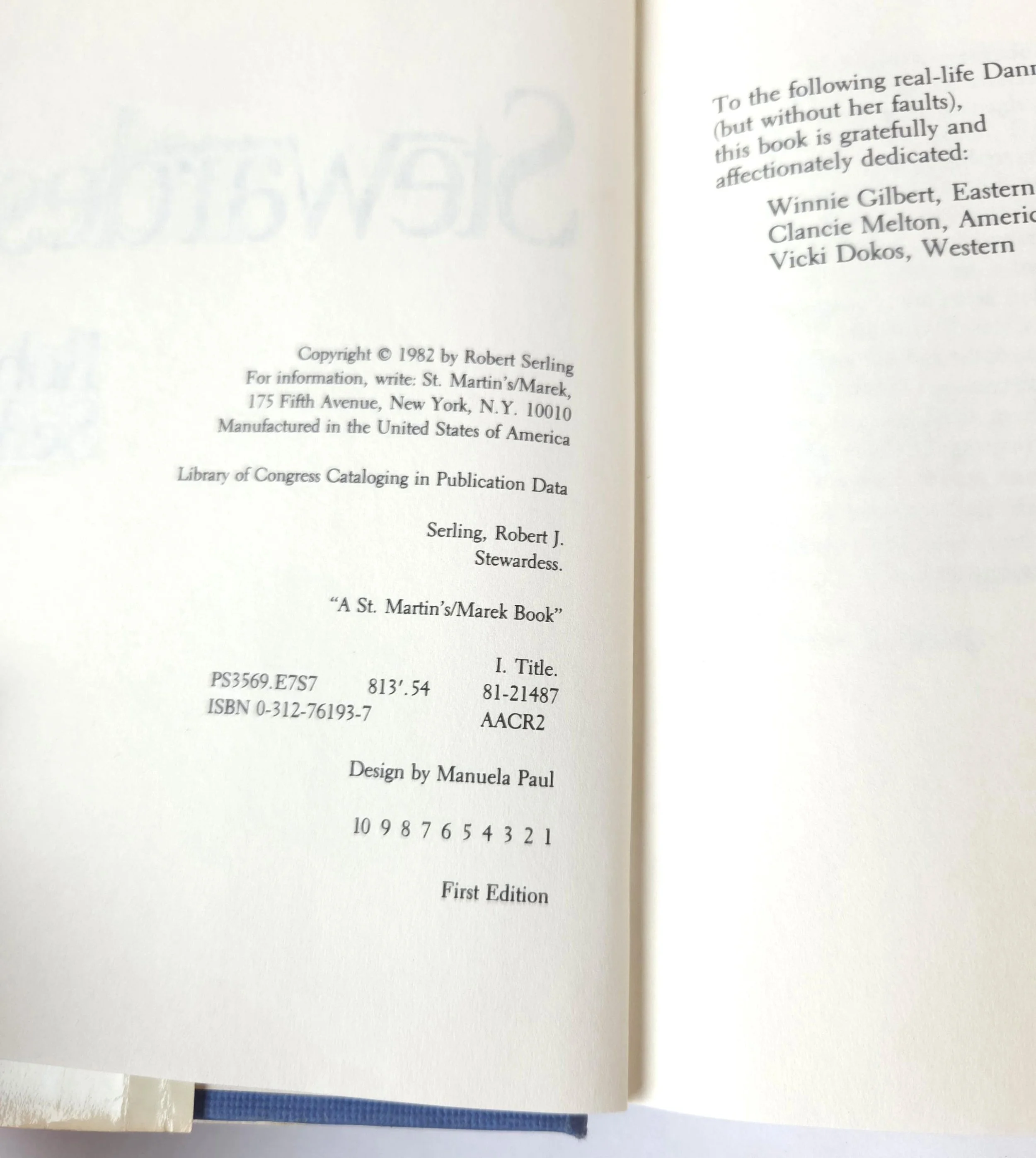 1982 Stewardess by Robert Serling - First Edition