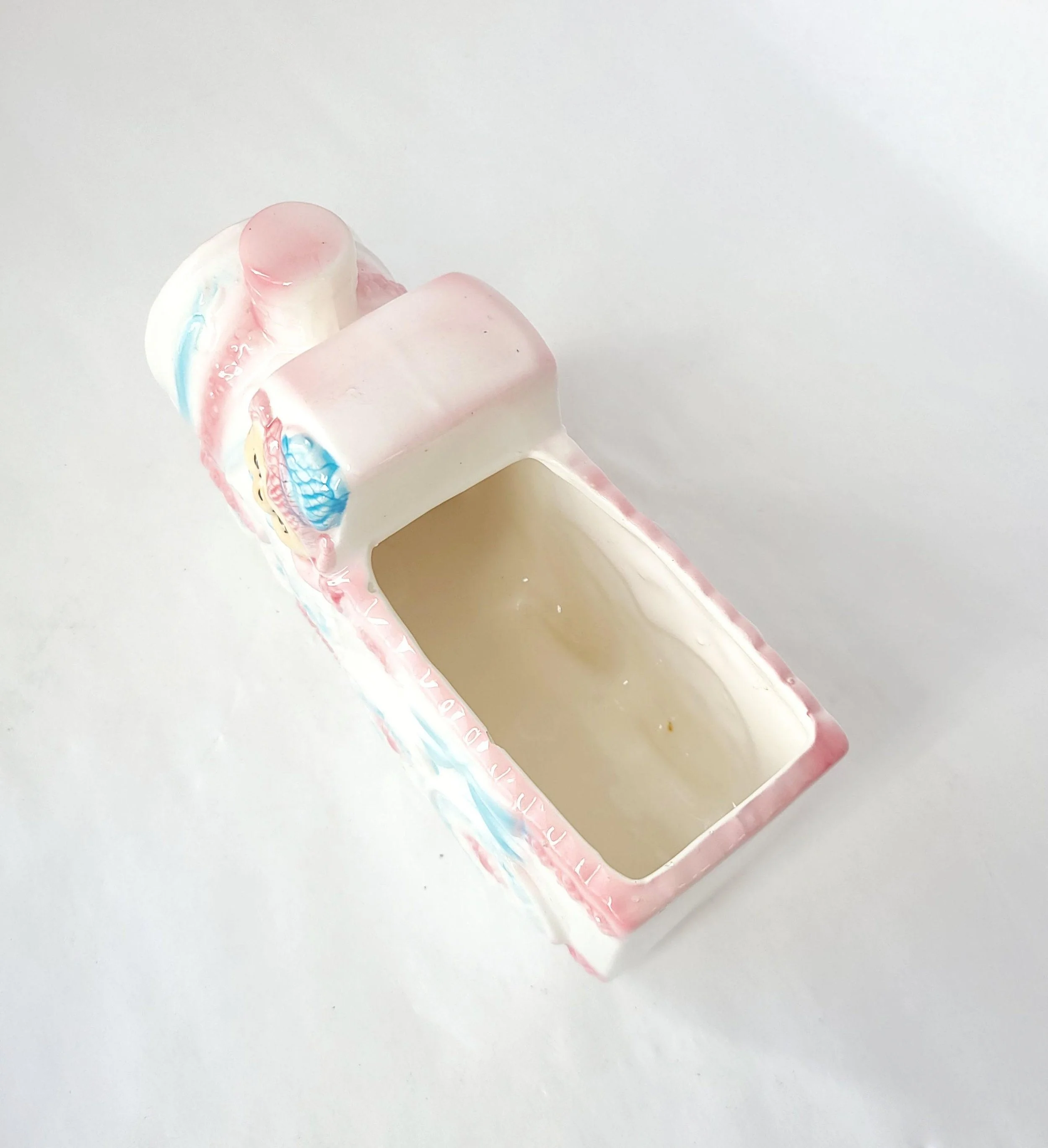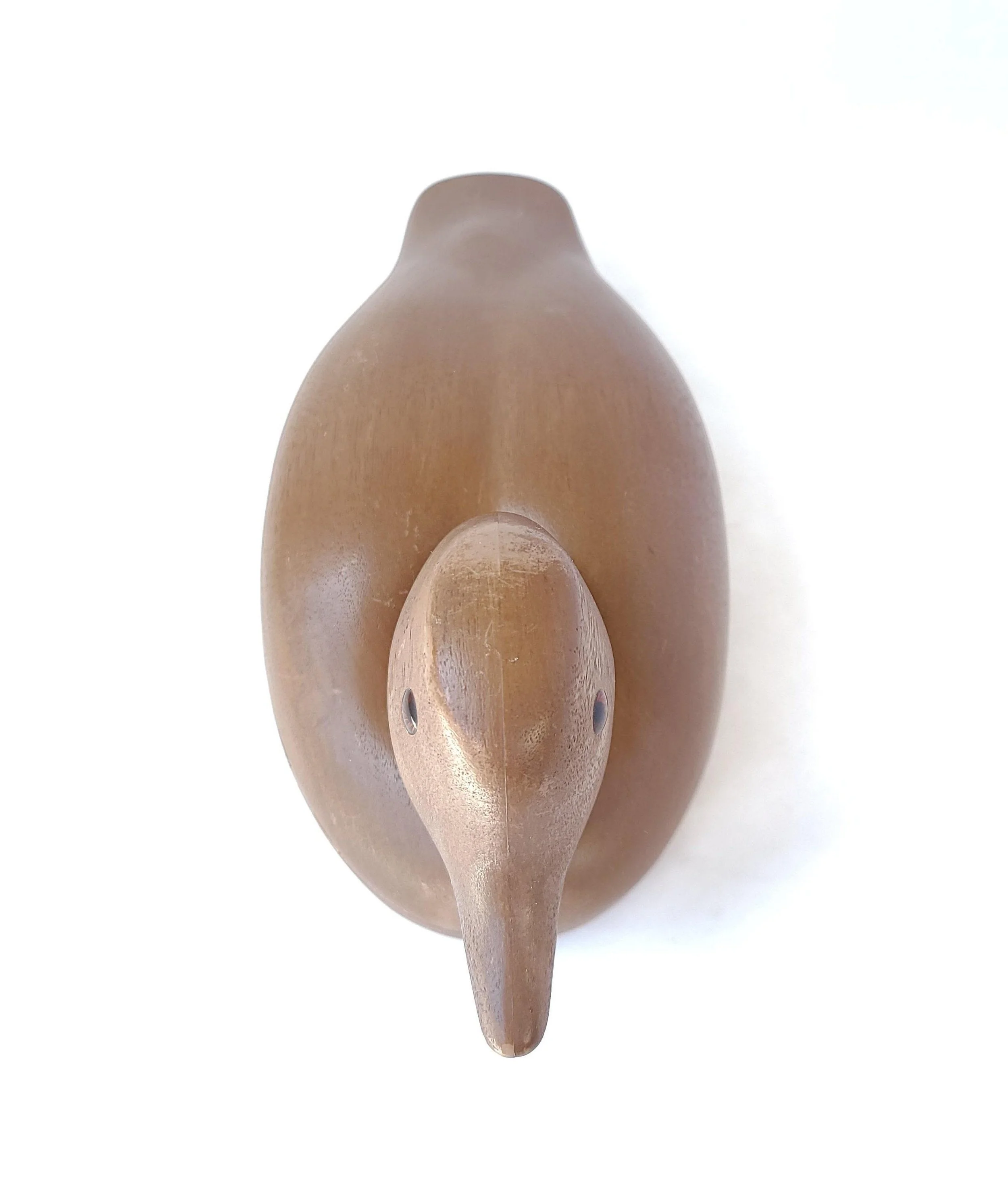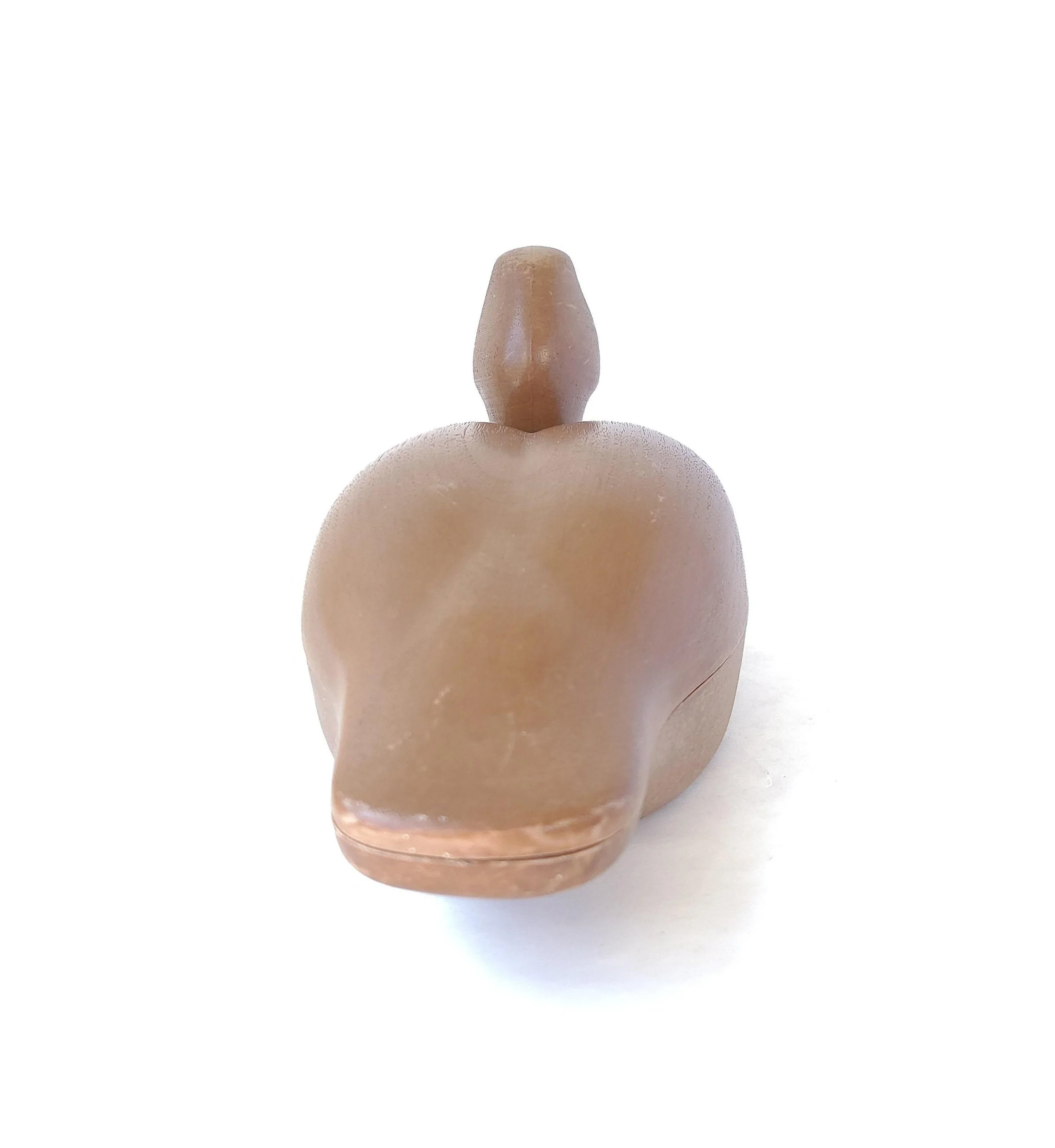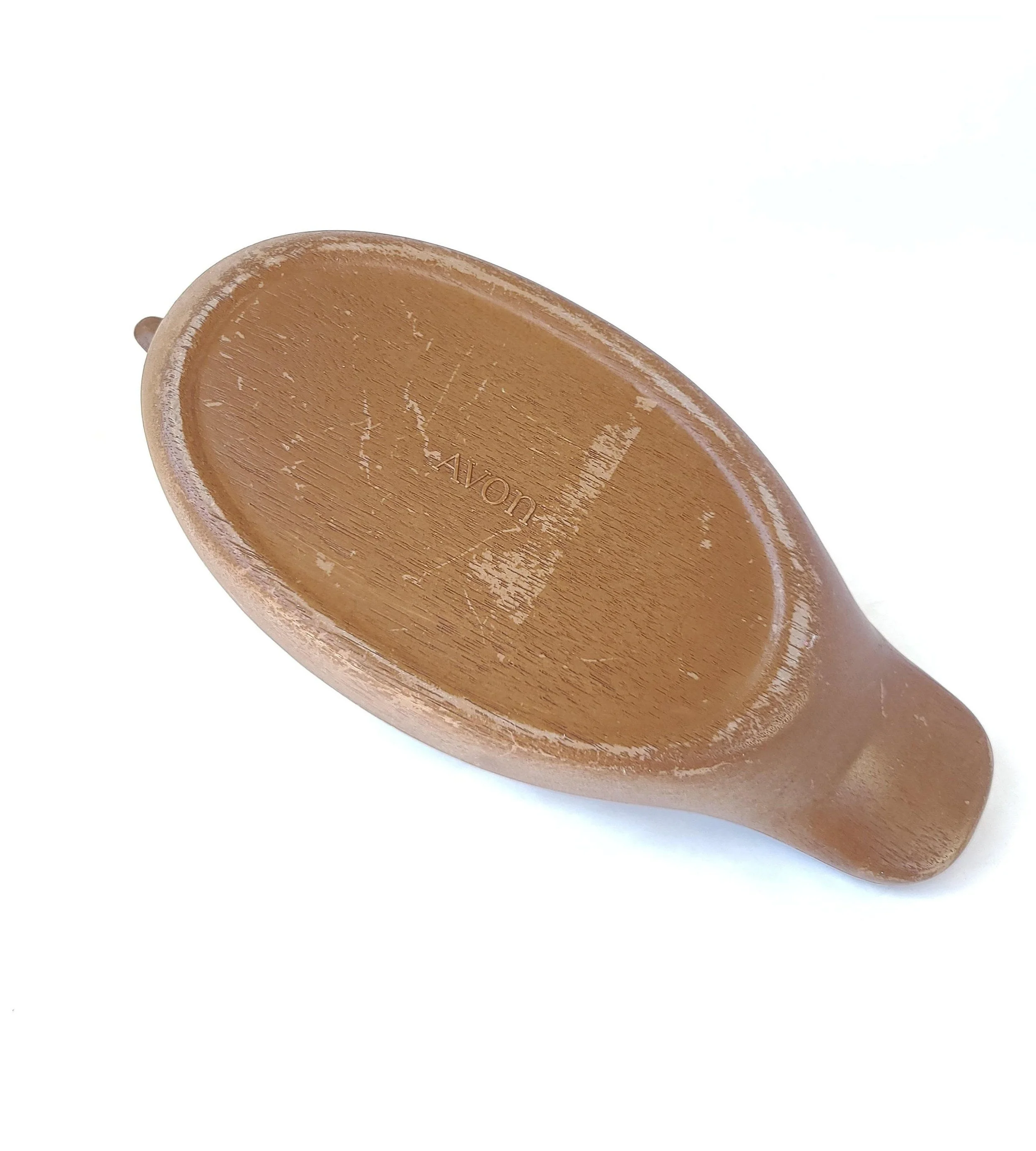 This charming vintage decoy duck box was made by Avon in the 1970's. It looks like a old wood decoy, but is made from lightweight plastic with green flocking inside. The box is in used condition with light scratching and scuffing to the outside and some peeling and spots of discoloration inside. Such a cutie, it would make a great gift!