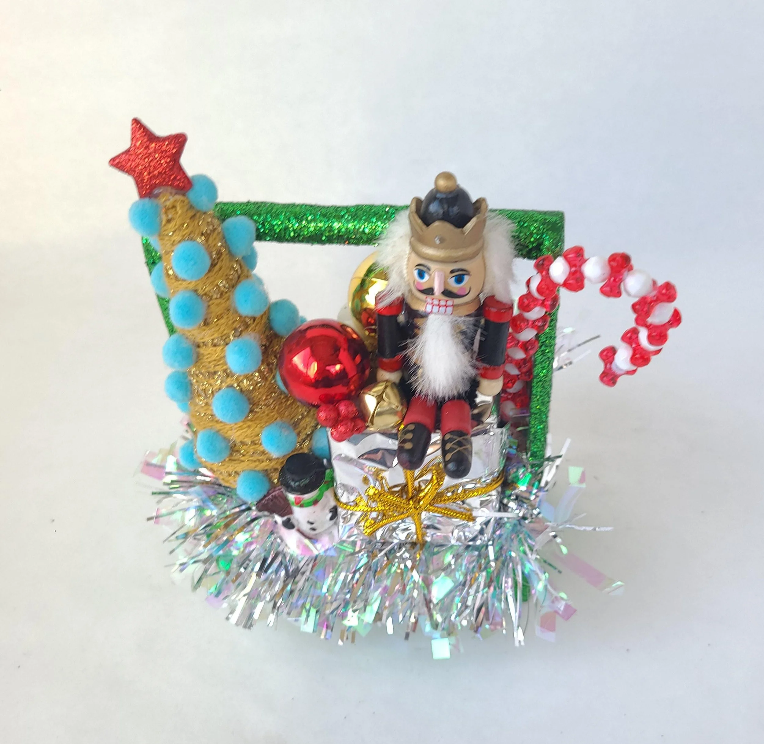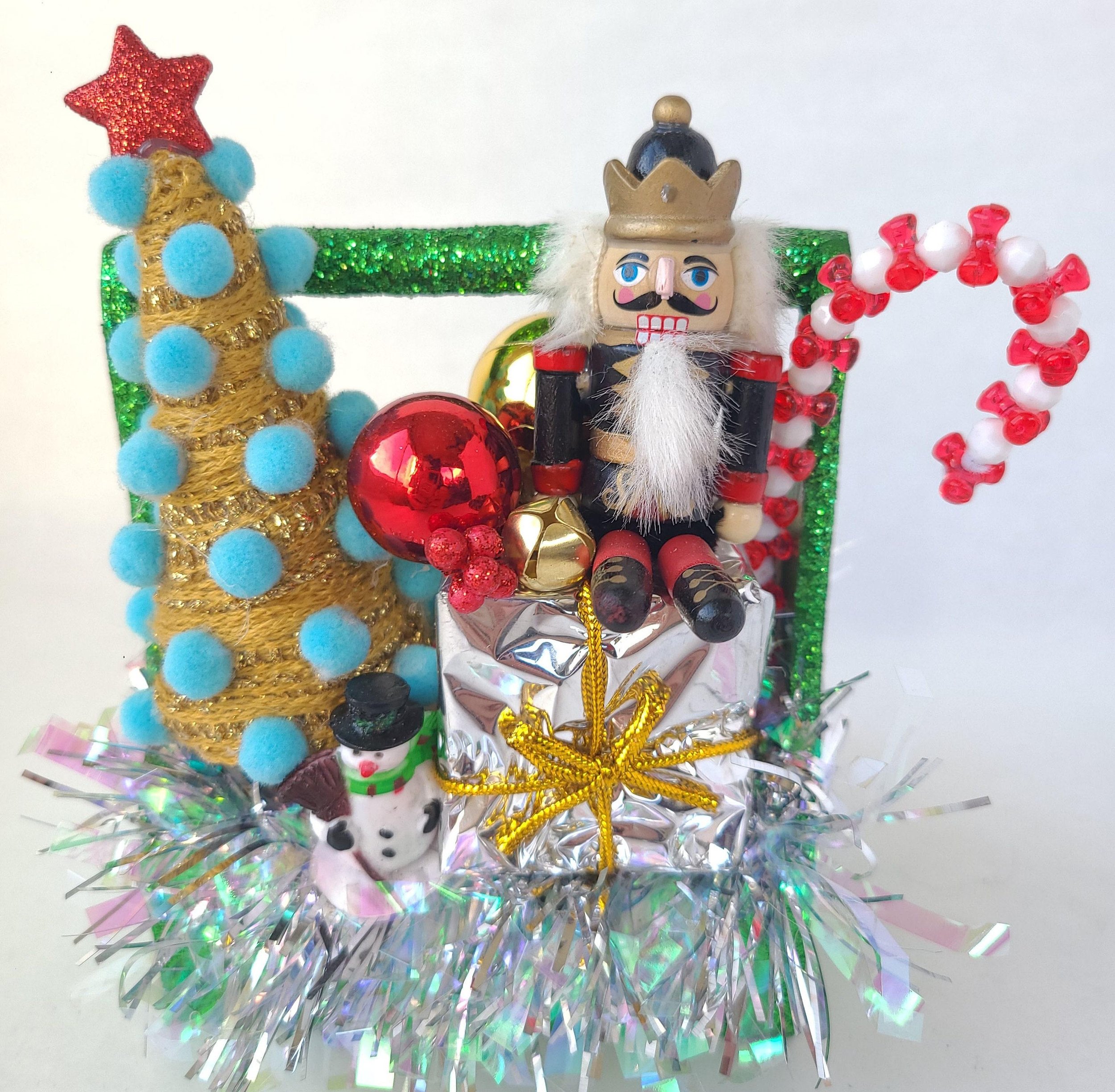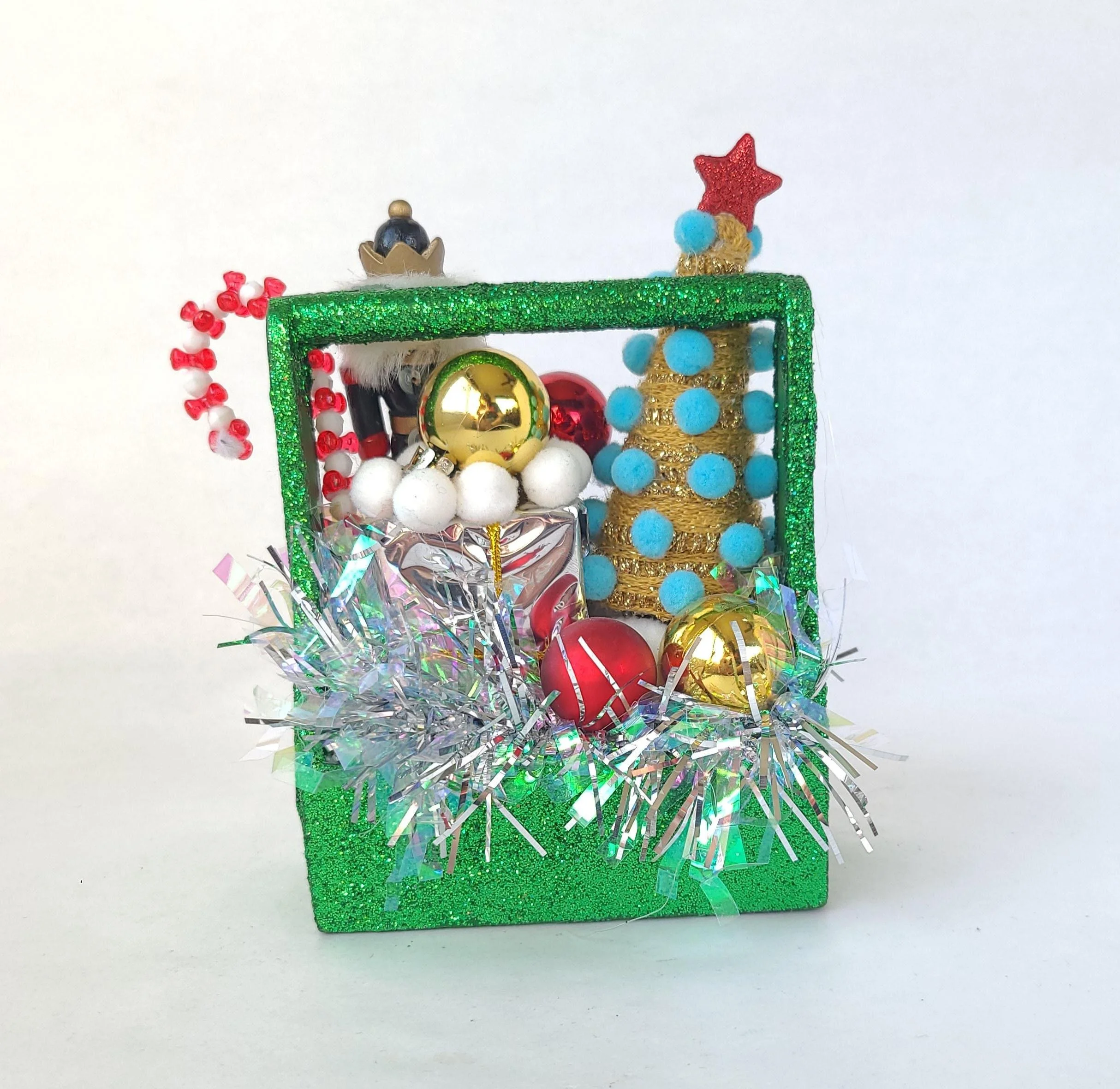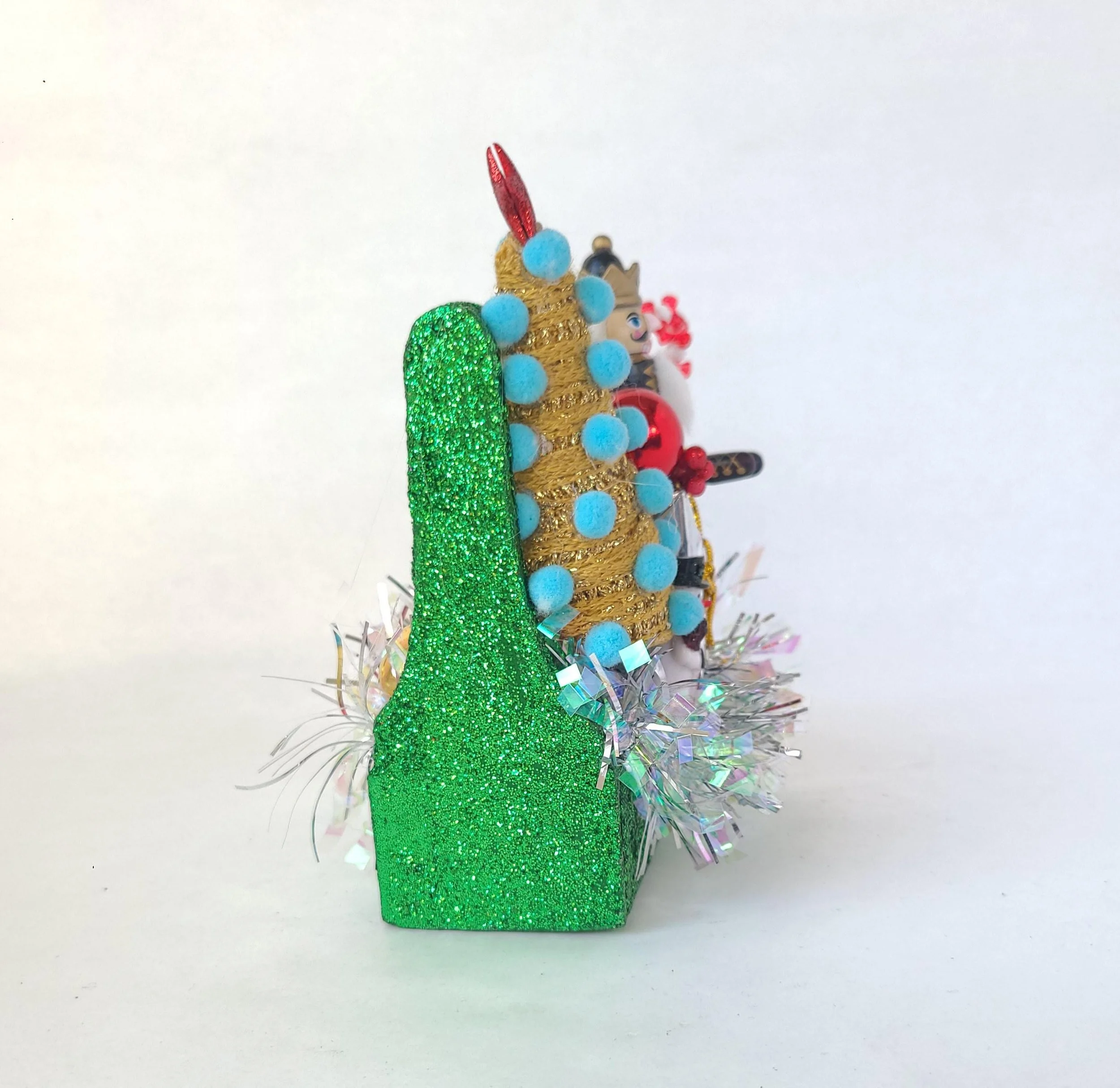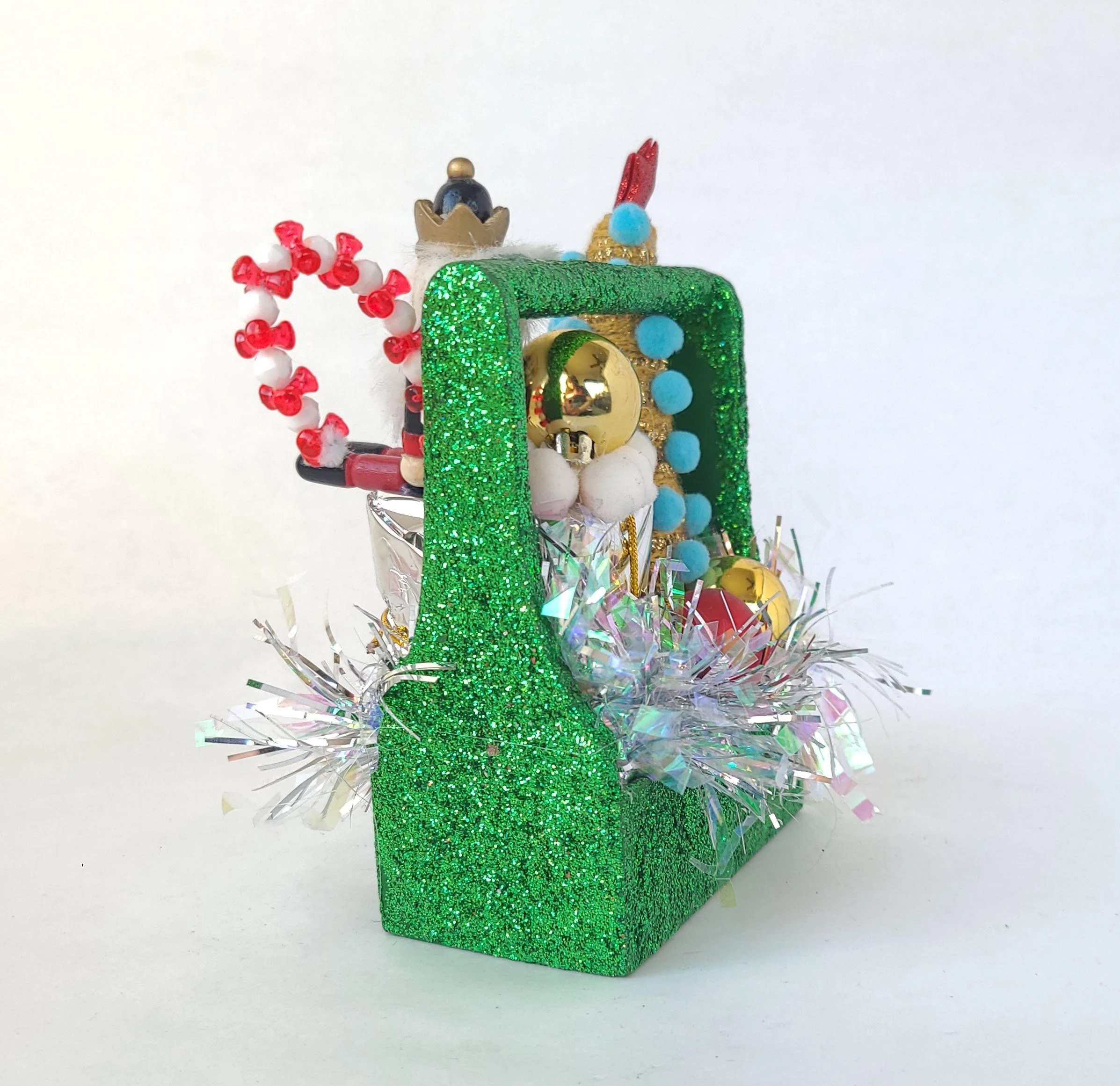 This little shrine altar box celebrates the one and only Billie Holiday. It features the famous image of Billie Holiday with a magnolia flower in her hair. The box has been adorned with satin ribbon, chenille yarn, rhinestone studs, glass beads, silver roses and much more. The back of the the box has been decked out with glittering blue letters that read "Lady Day".