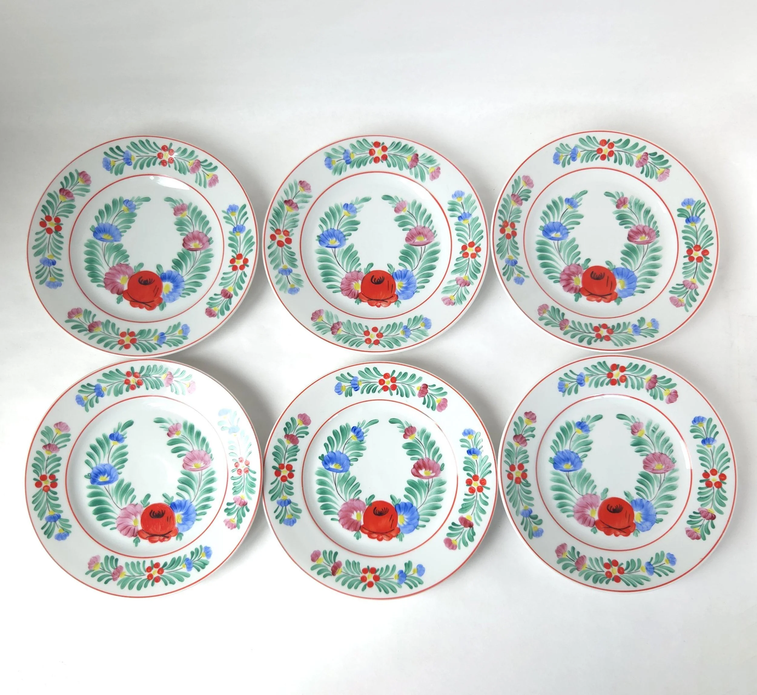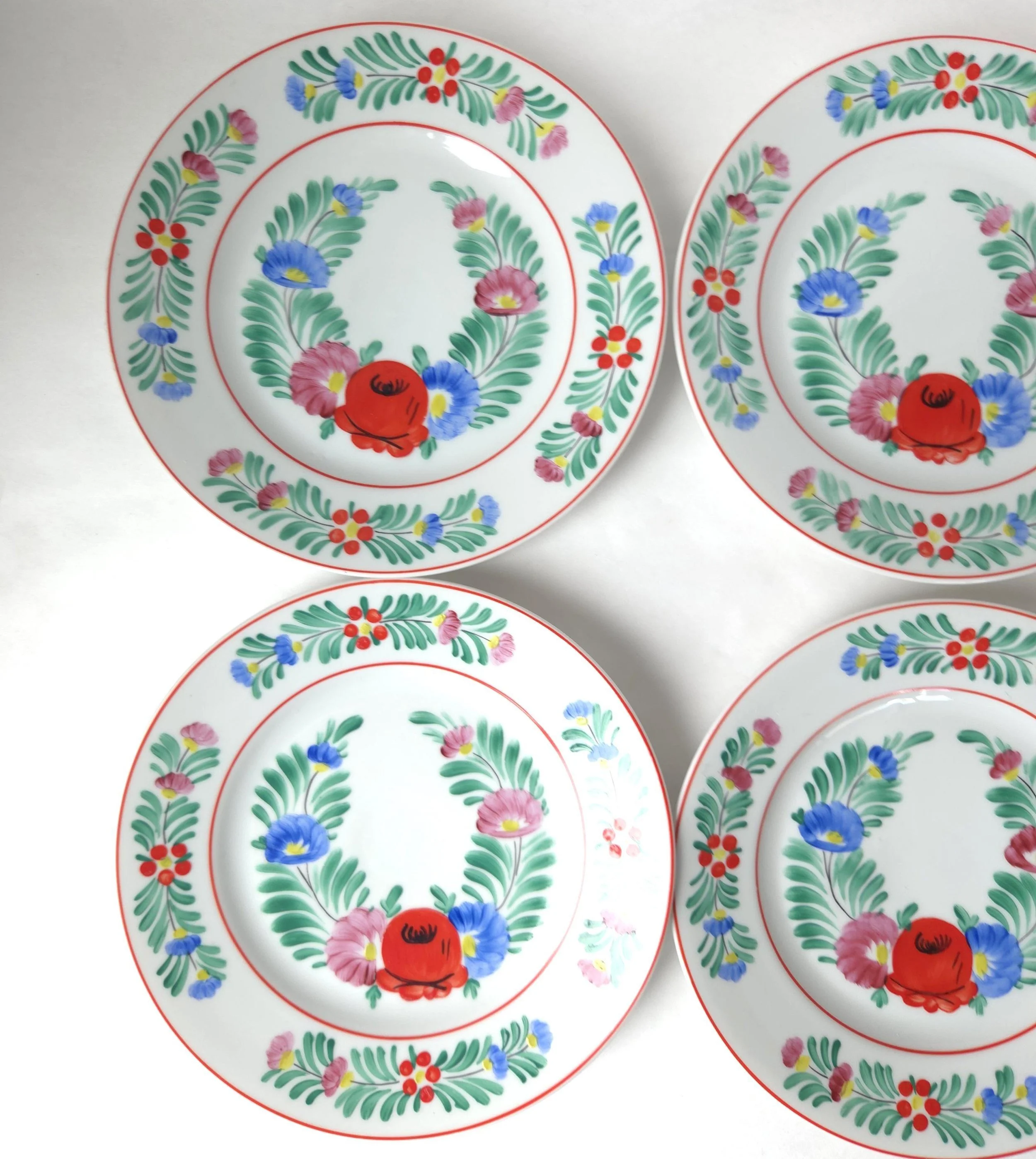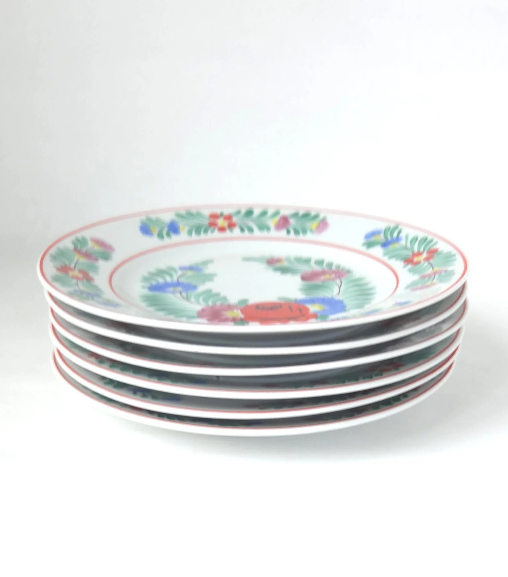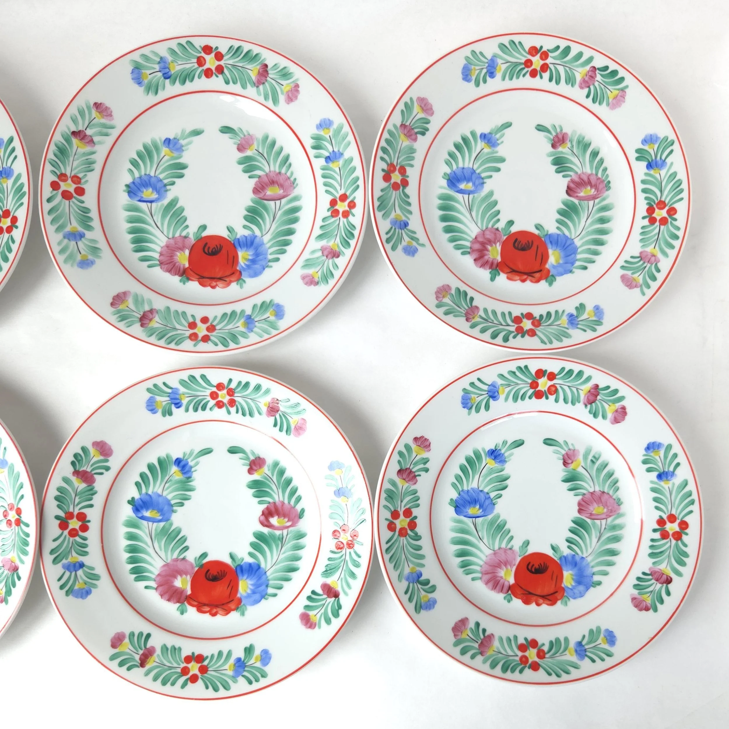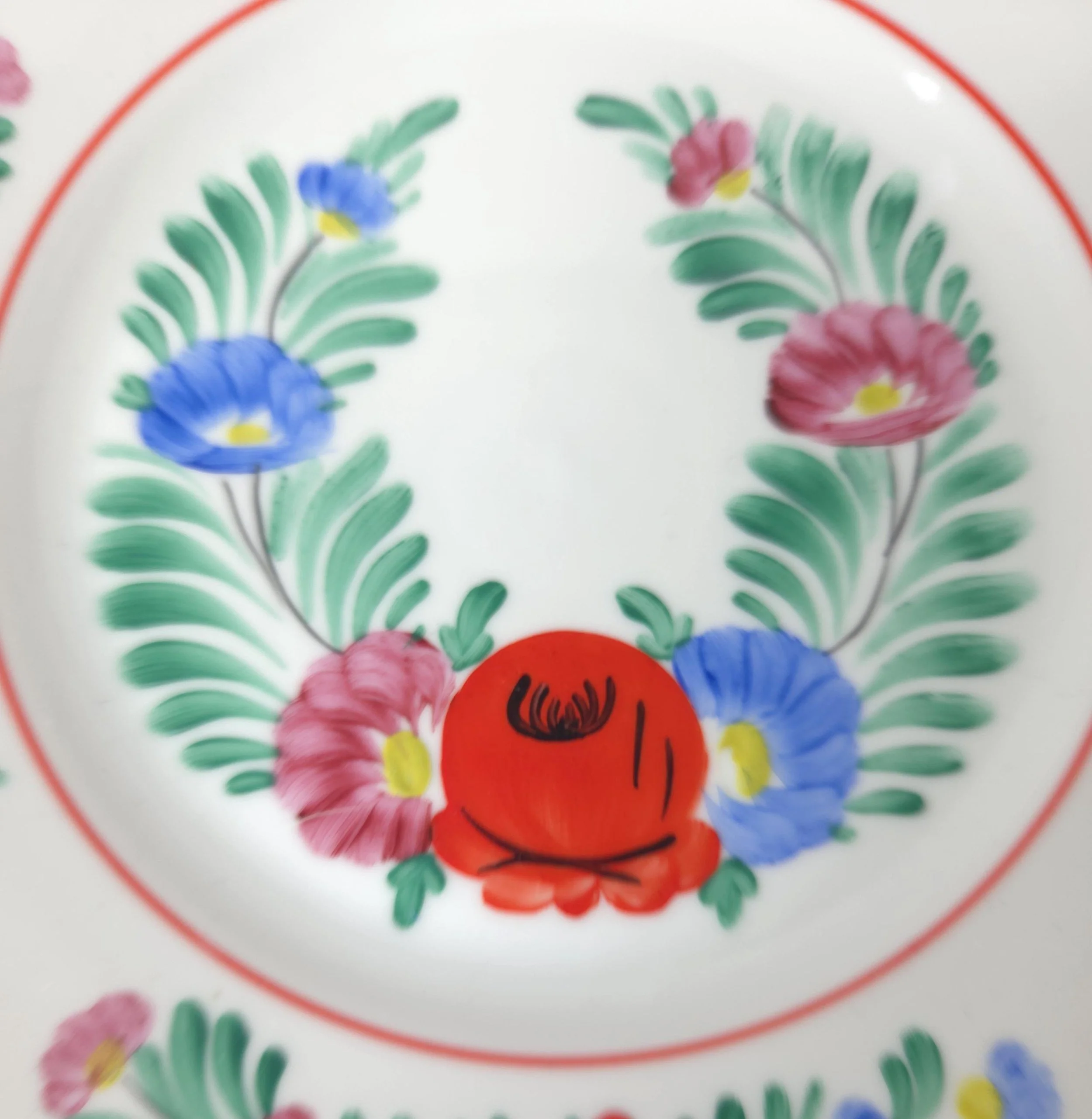 These beautiful vintage mid century porcelain espresso and saucers were made in Spain by Capean. They feature a floral design in gold, black and orange on a white background. The pieces are in good used condition with no chips or cracks, there is some paint loss in spots - but excellent overall color quality.