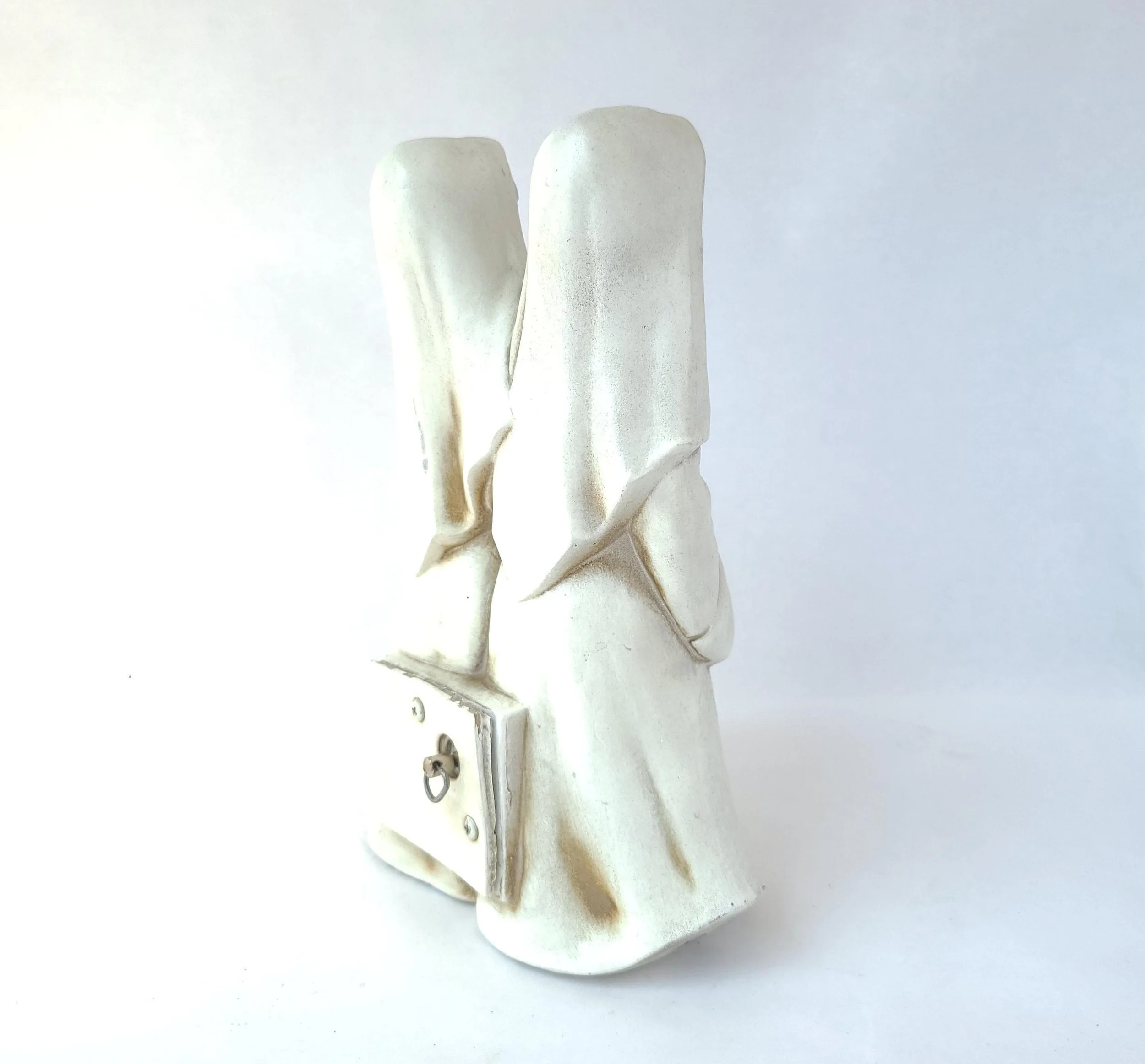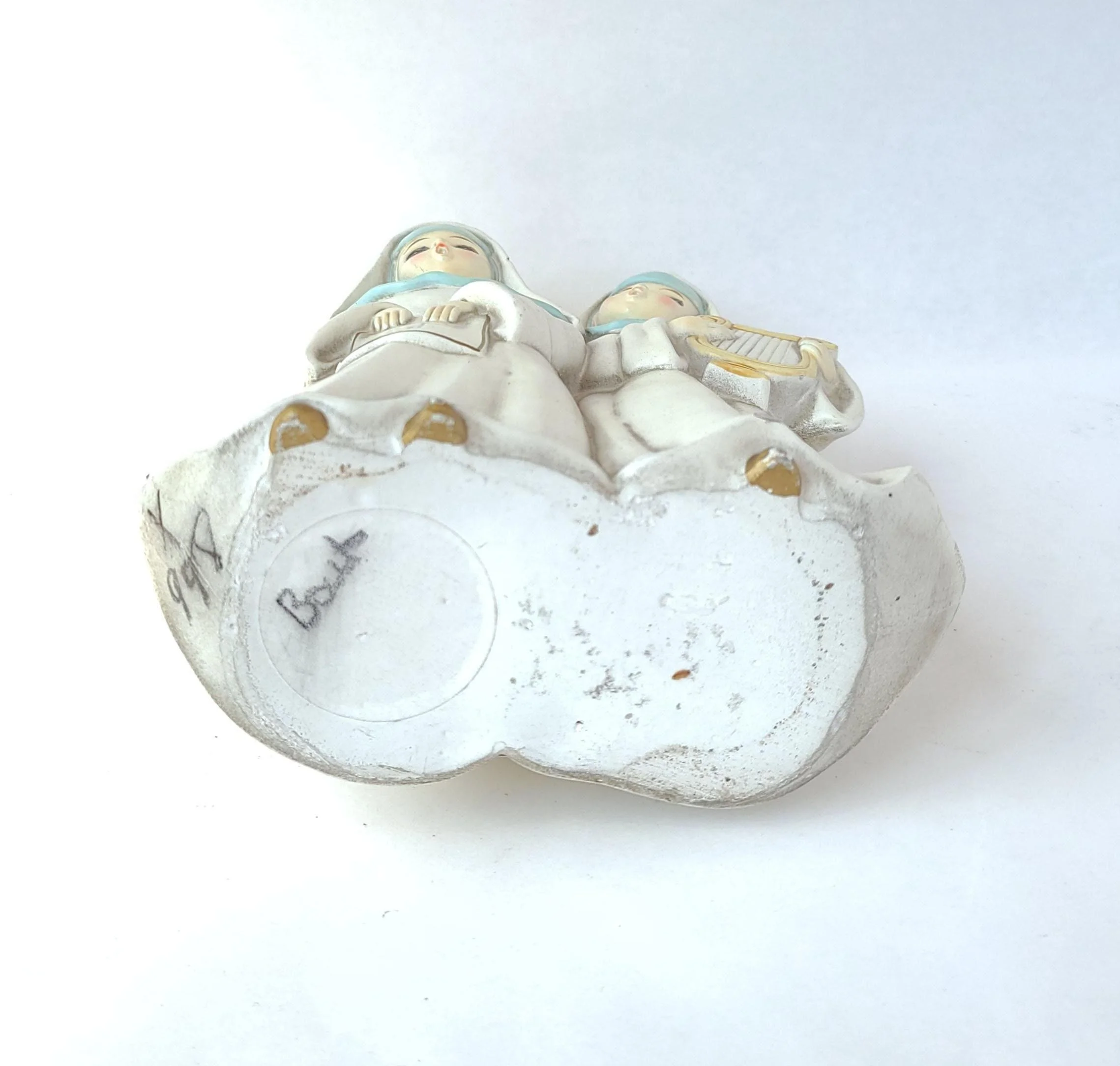 This gorgeous vintage porcelain figurine of baby Bacchus riding a goat is full of joy, movement and a touch of naughtiness. The piece was made in Thuringia Germany in a region known world wide for it's exquisite porcelain art.