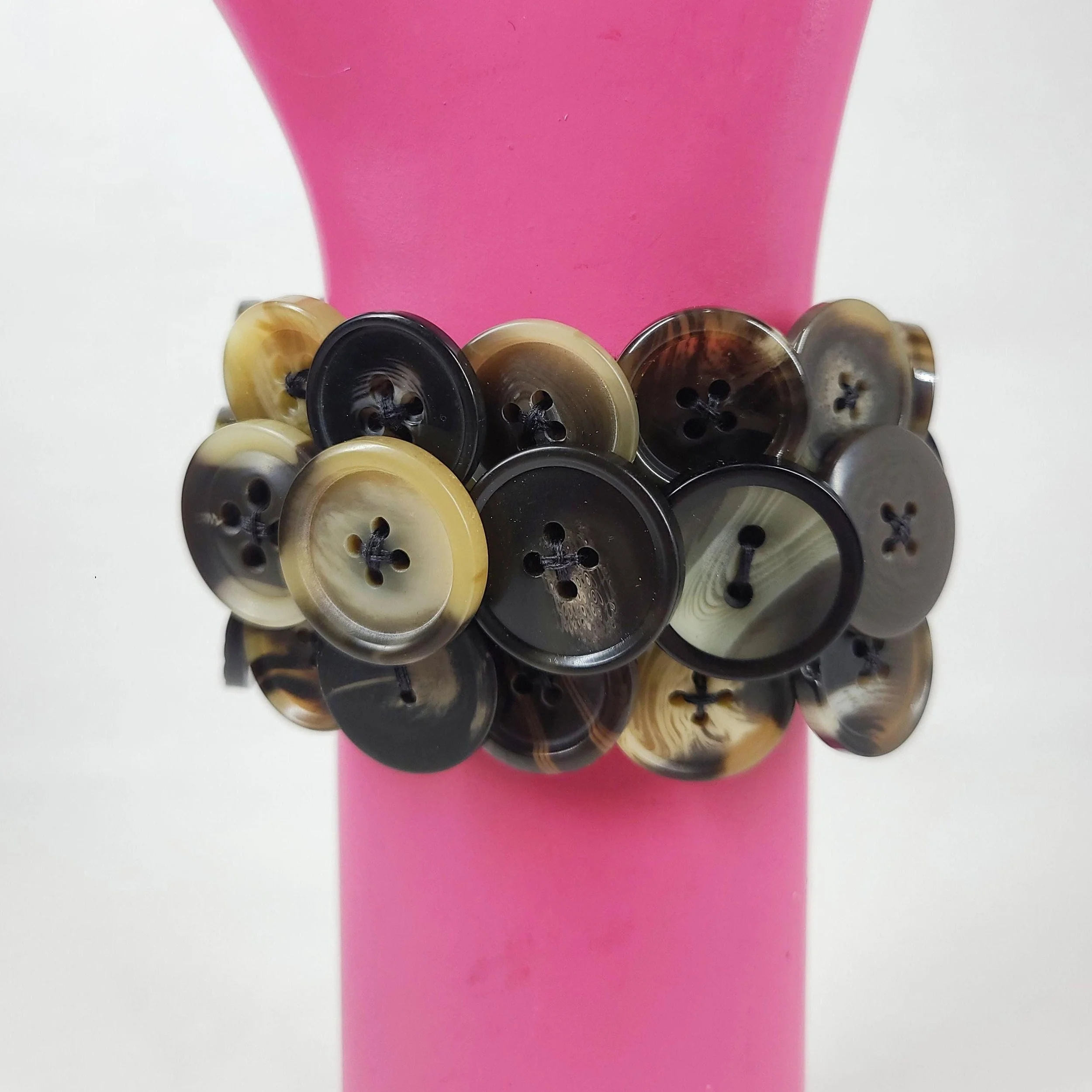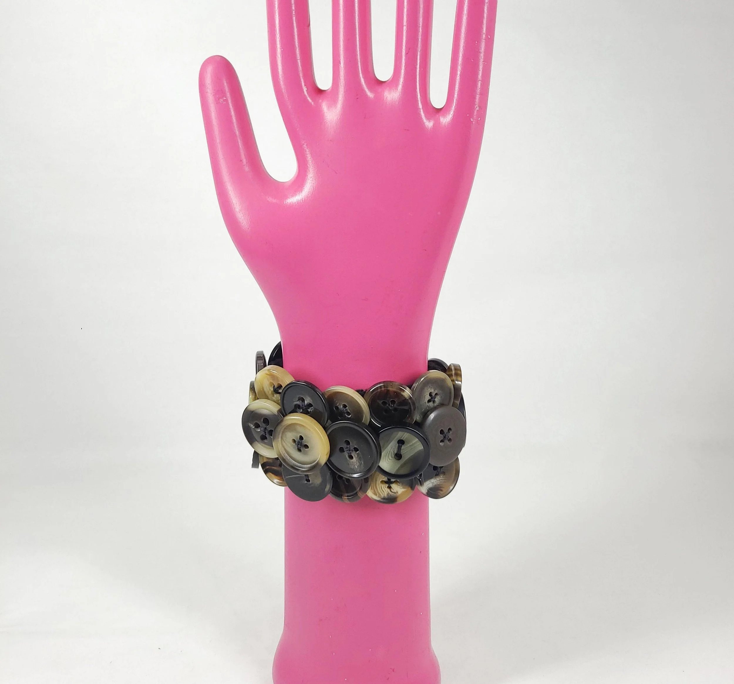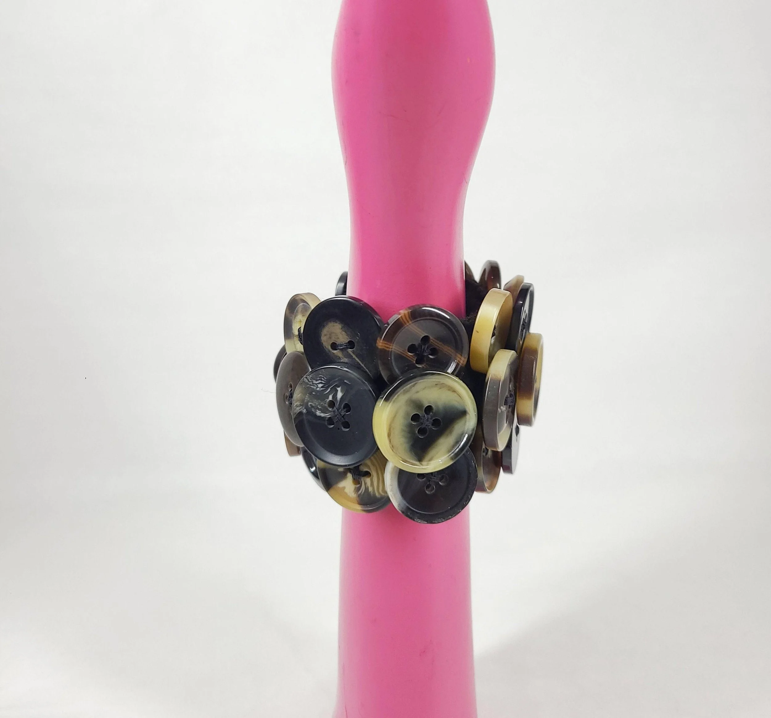 Upcycled Vintage Button Bracelet with Faux Tortoise Shell