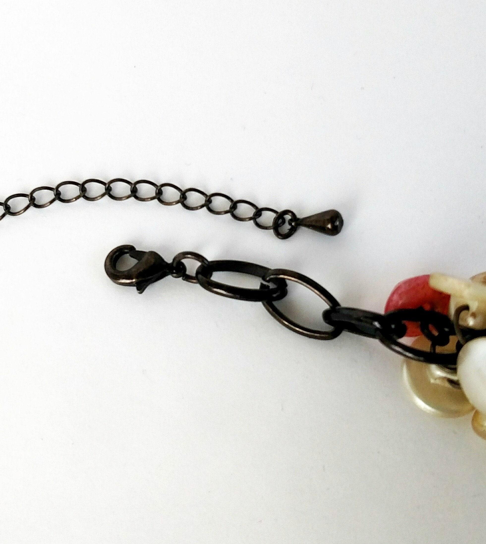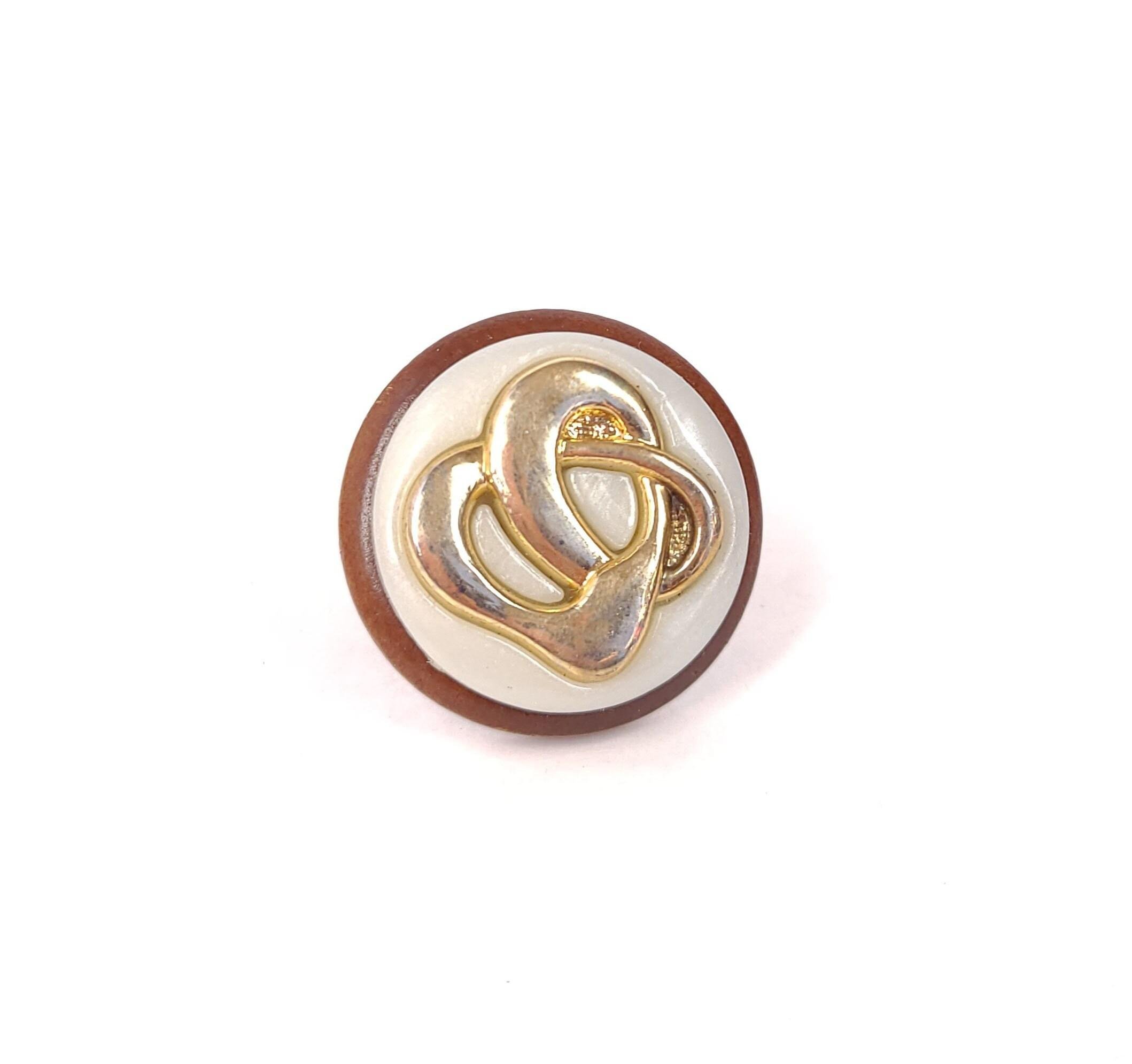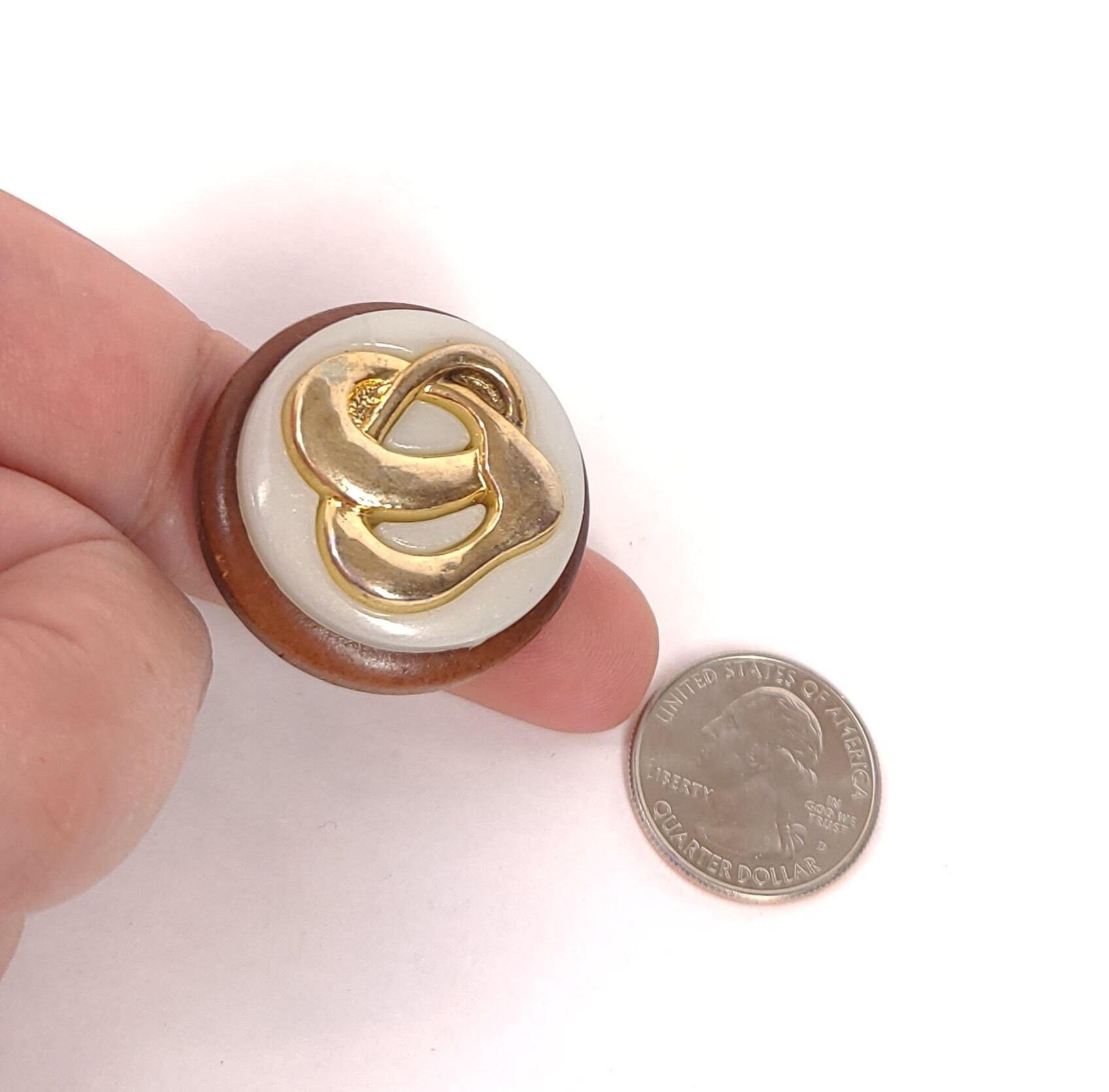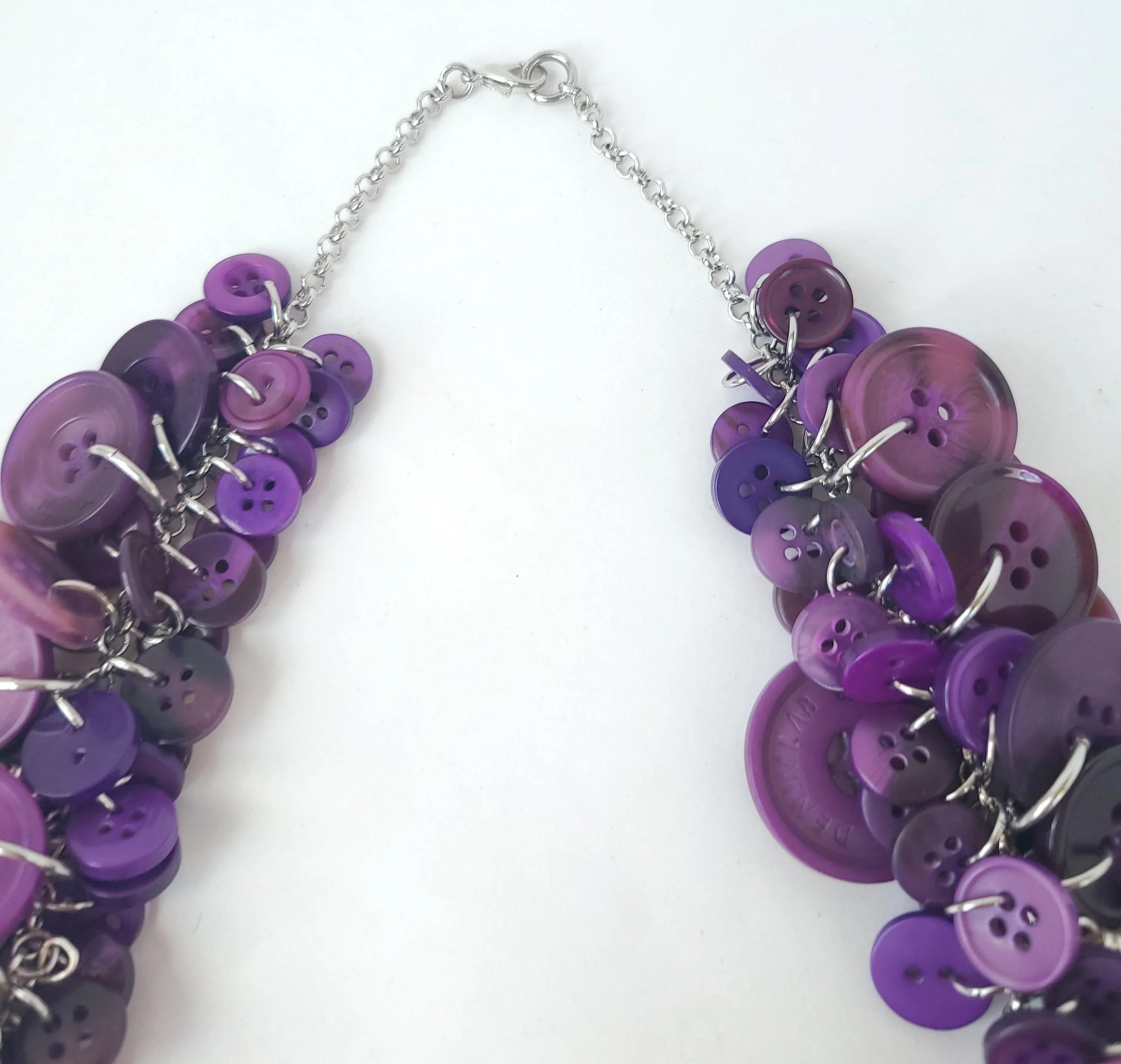 This chunky, funky, one of a kind bracelet was made with a variety of vintage buttons in black, brown and beige, that have been hand stitched onto a acrylic felt backing. The buttons are from the 1950's through the 1990's and are made from various forms of resin, natural shell, and coconut shell in an assortment of sizes, textures and designs. The bracelet is made with several layers of soft felt for extra comfort with an easy button and loop toggle closure. The buttons are used vintage pieces, so there may be some minor scratches or nicks due to their age.