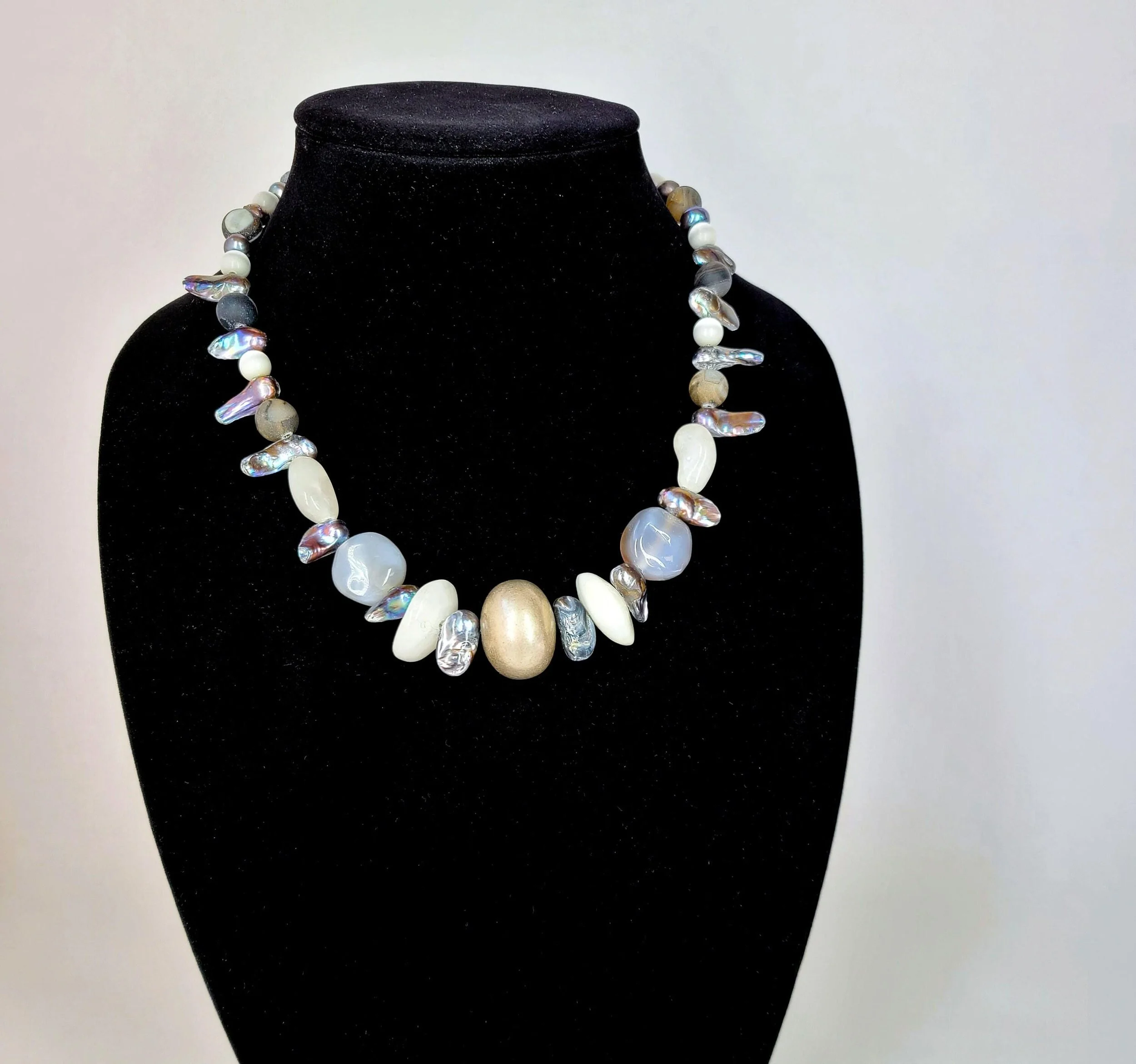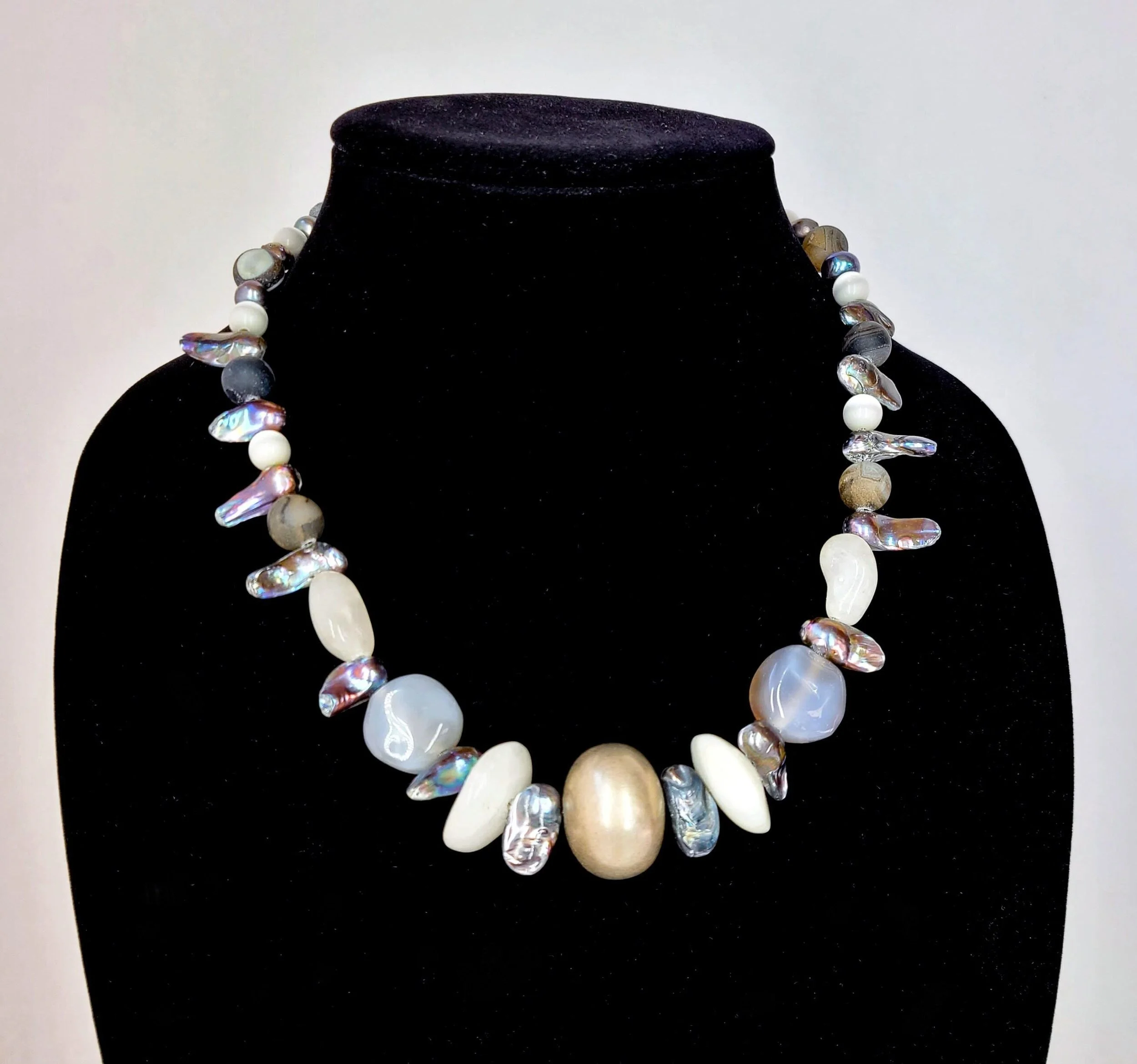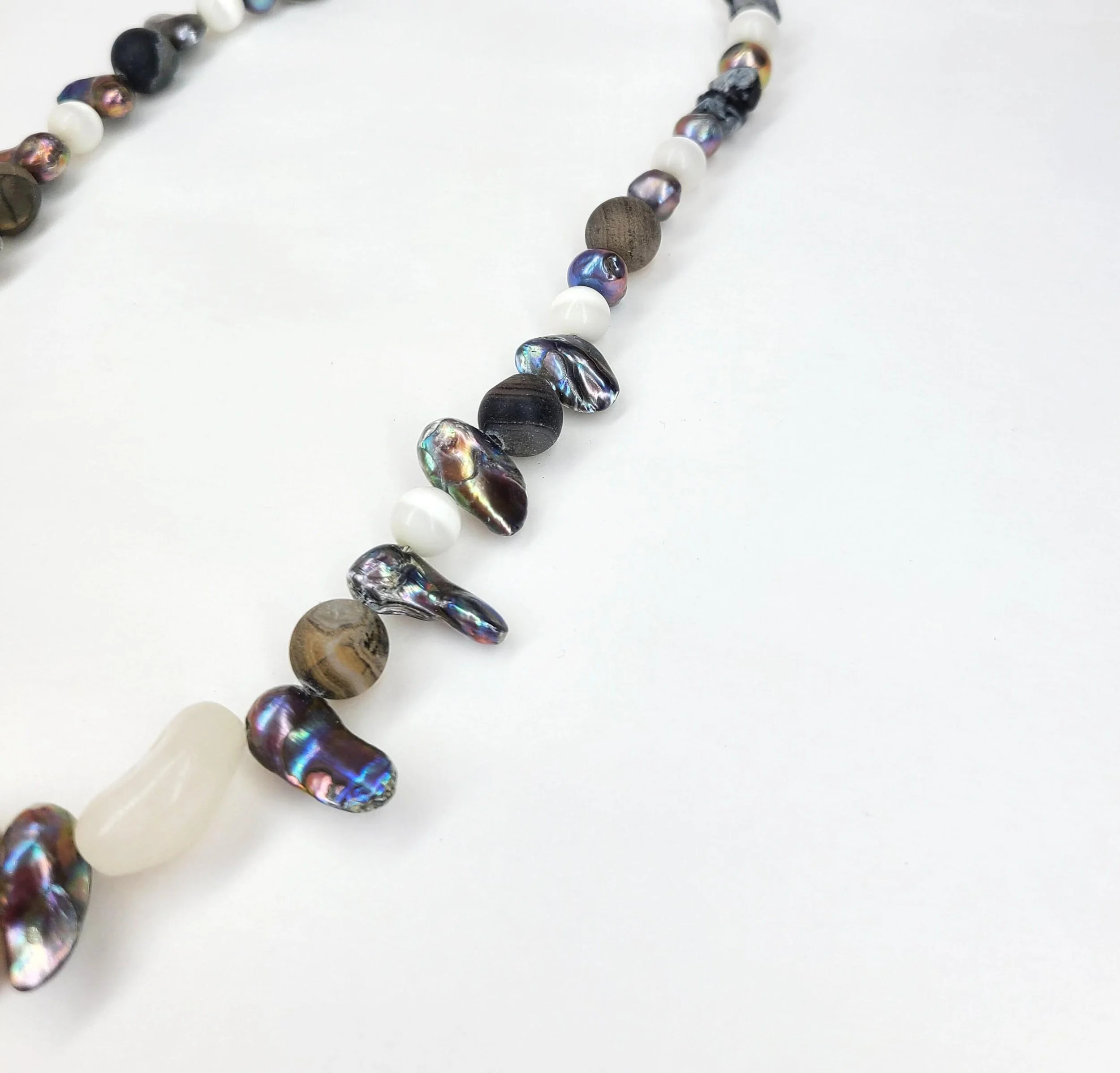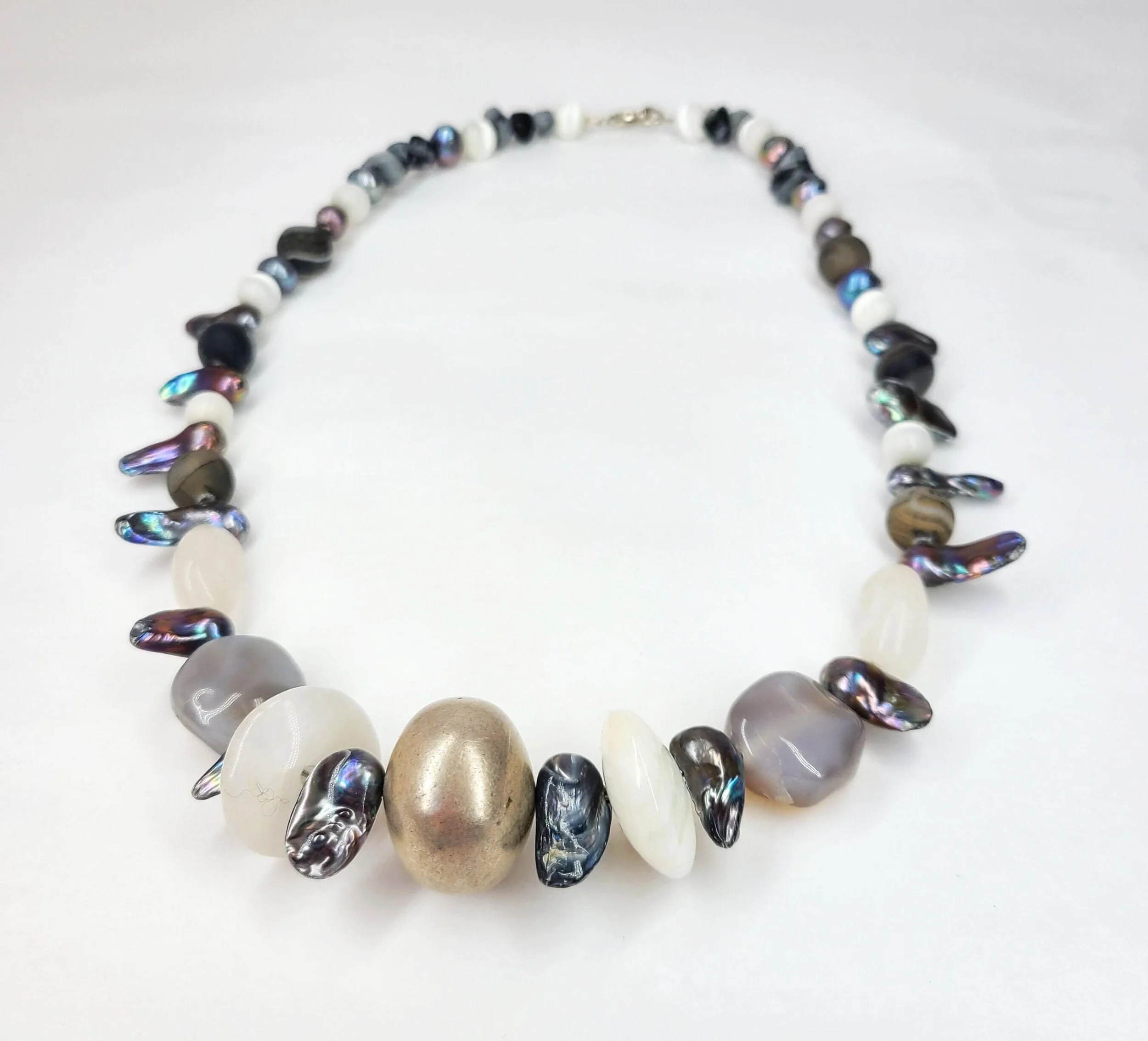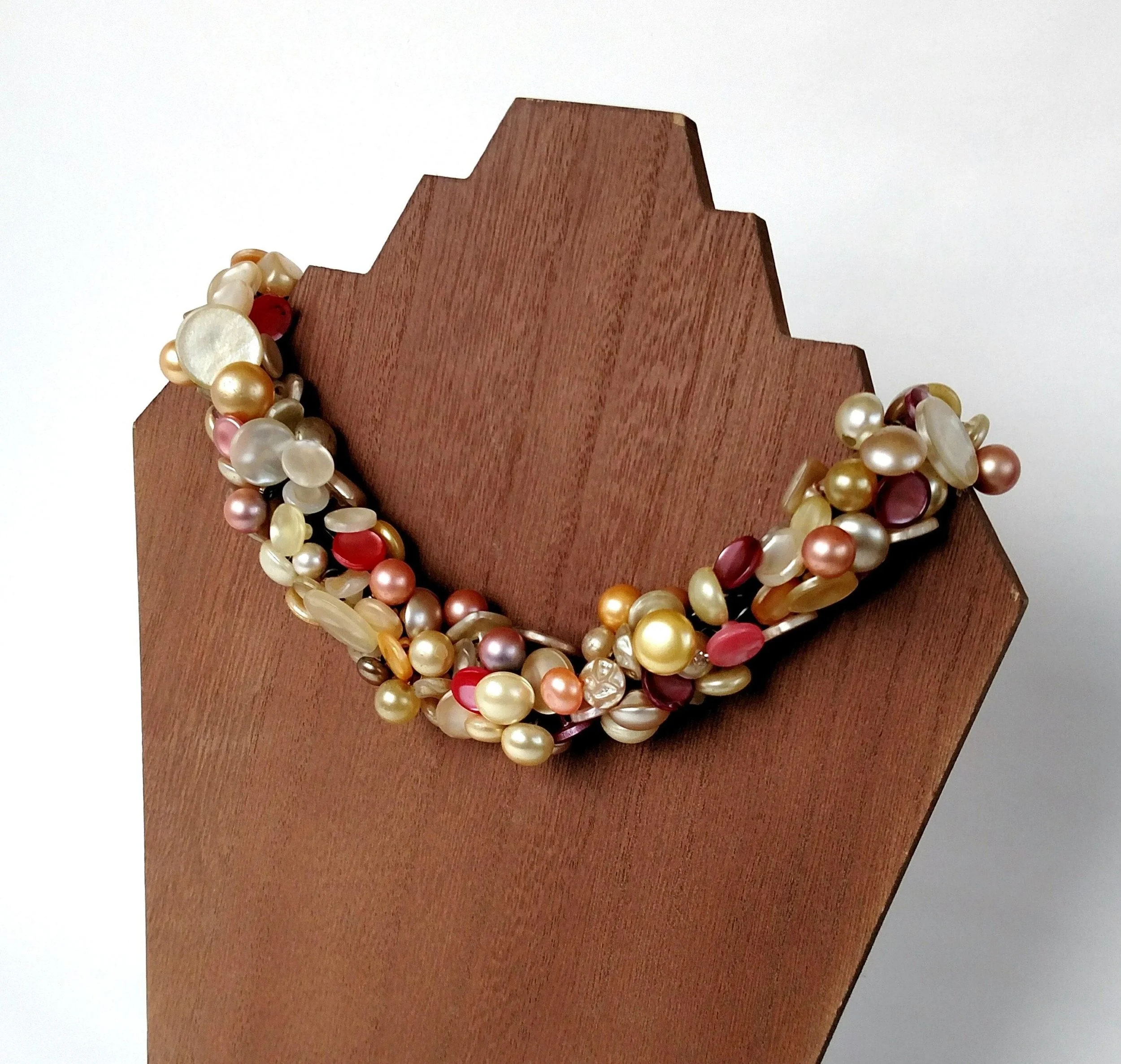 This chunky, funky, one of a kind bracelet was made with a variety of vintage buttons in black, brown and beige, that have been hand stitched onto a acrylic felt backing. The buttons are from the 1950's through the 1990's and are made from various forms of resin, natural shell, and coconut shell in an assortment of sizes, textures and designs. The bracelet is made with several layers of soft felt for extra comfort with an easy button and loop toggle closure. The buttons are used vintage pieces, so there may be some minor scratches or nicks due to their age.
