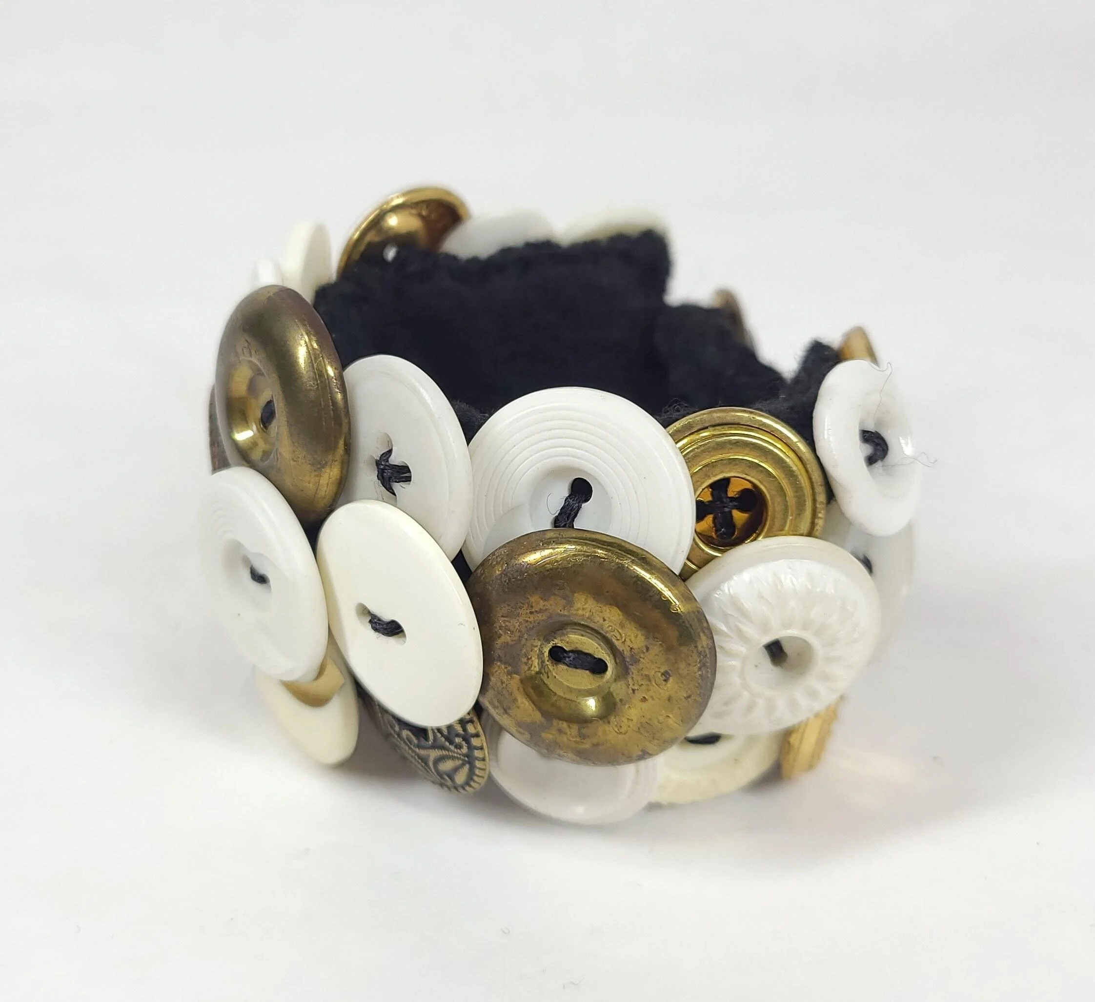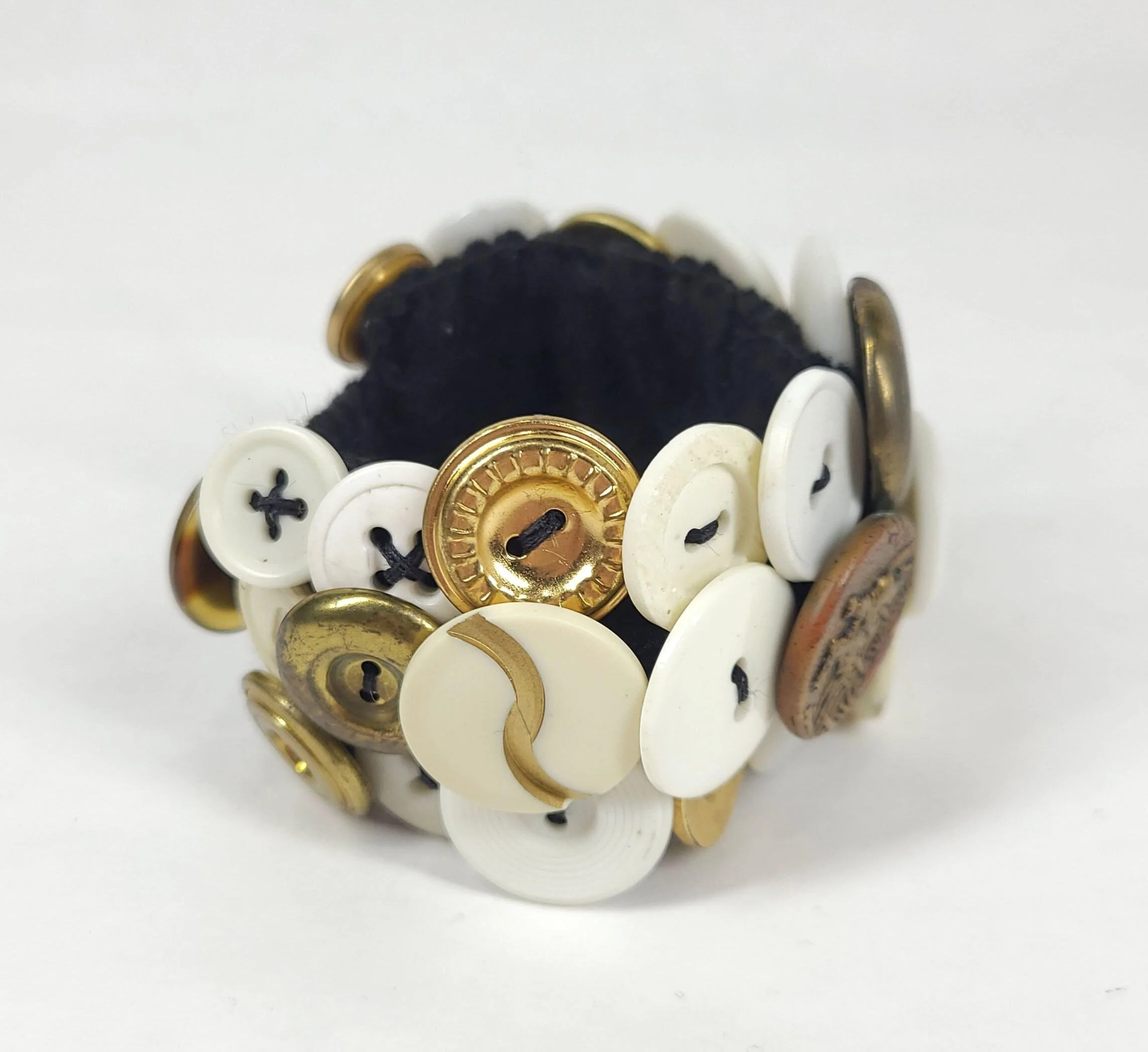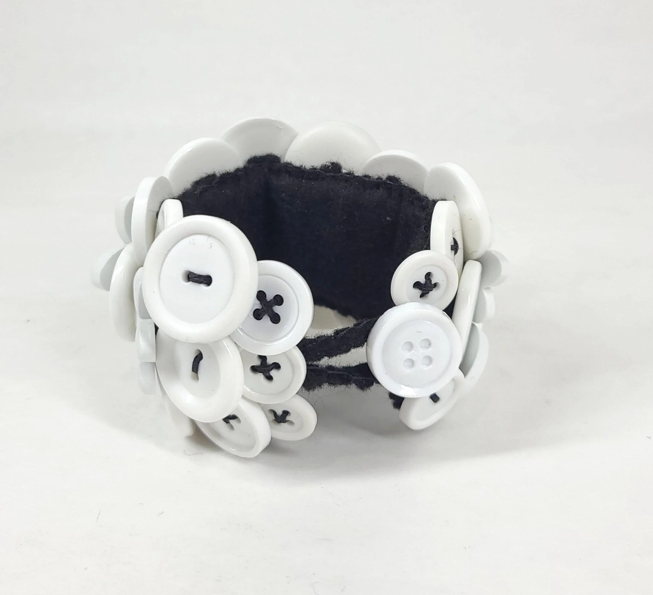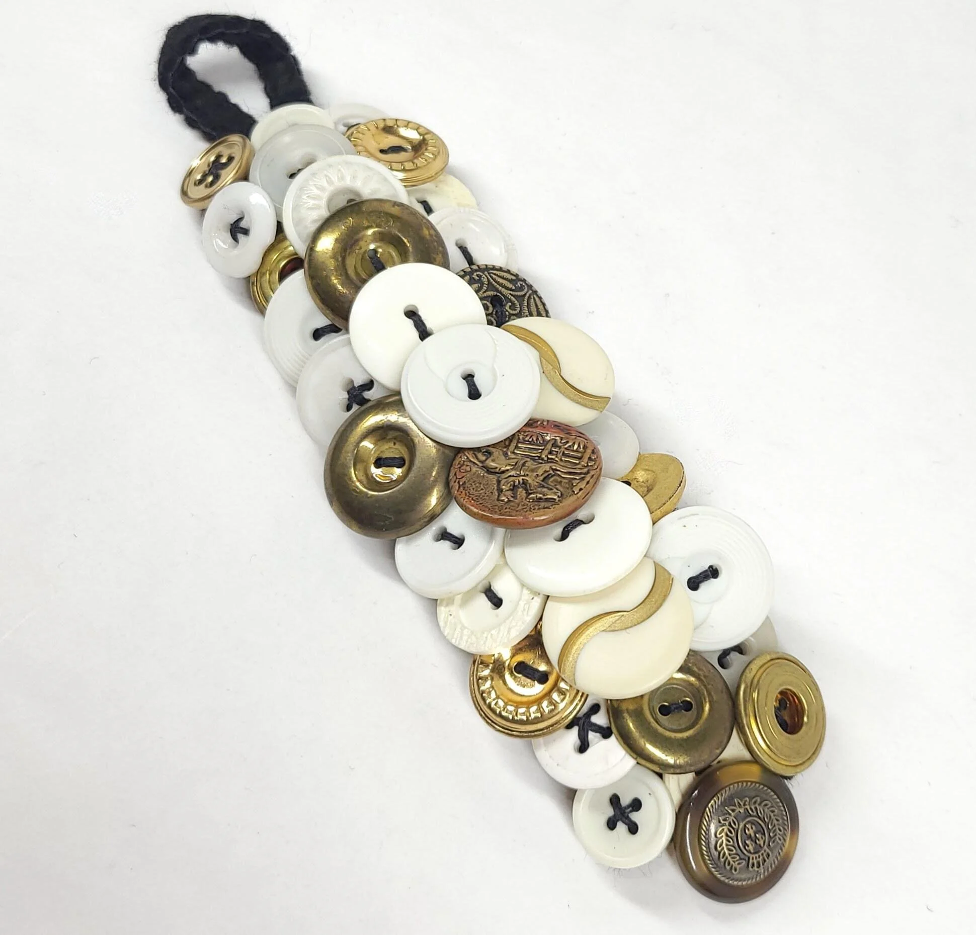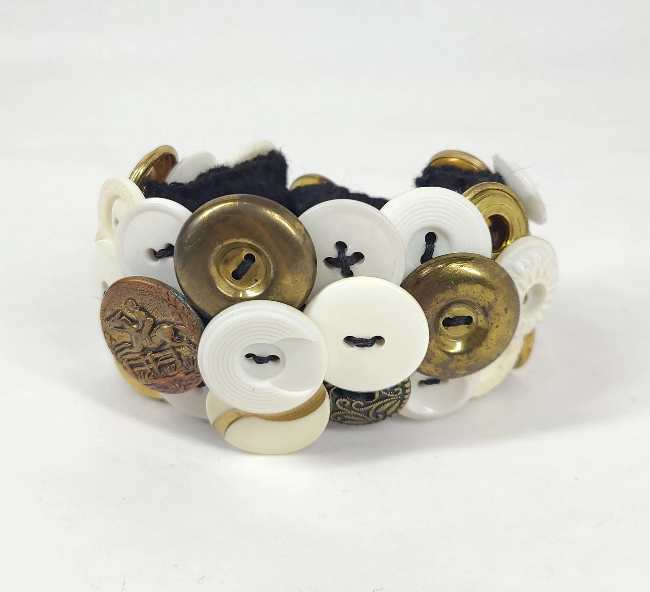 Upcycled Vintage Button Statement Necklace in White & Butterscotch Brown