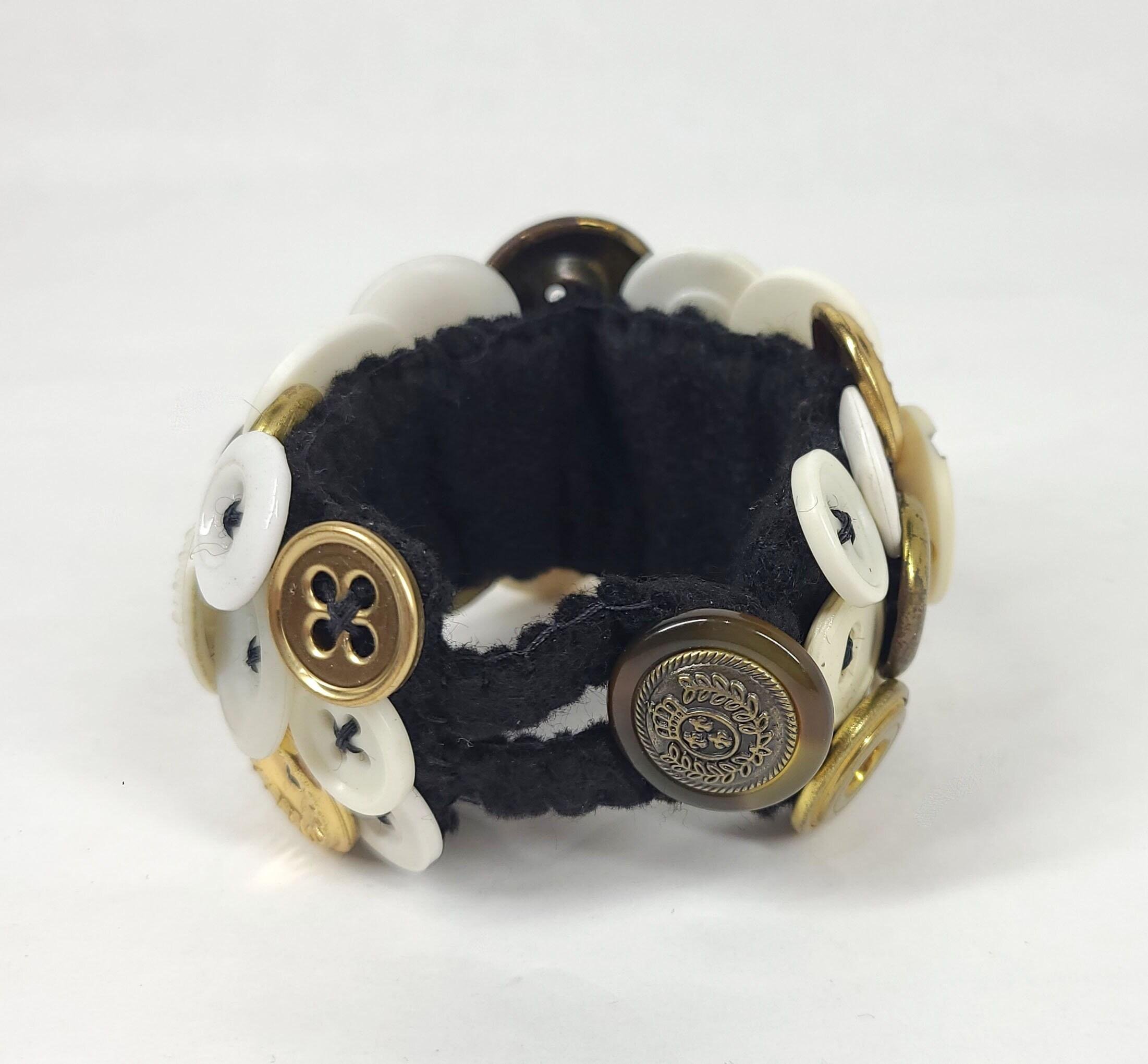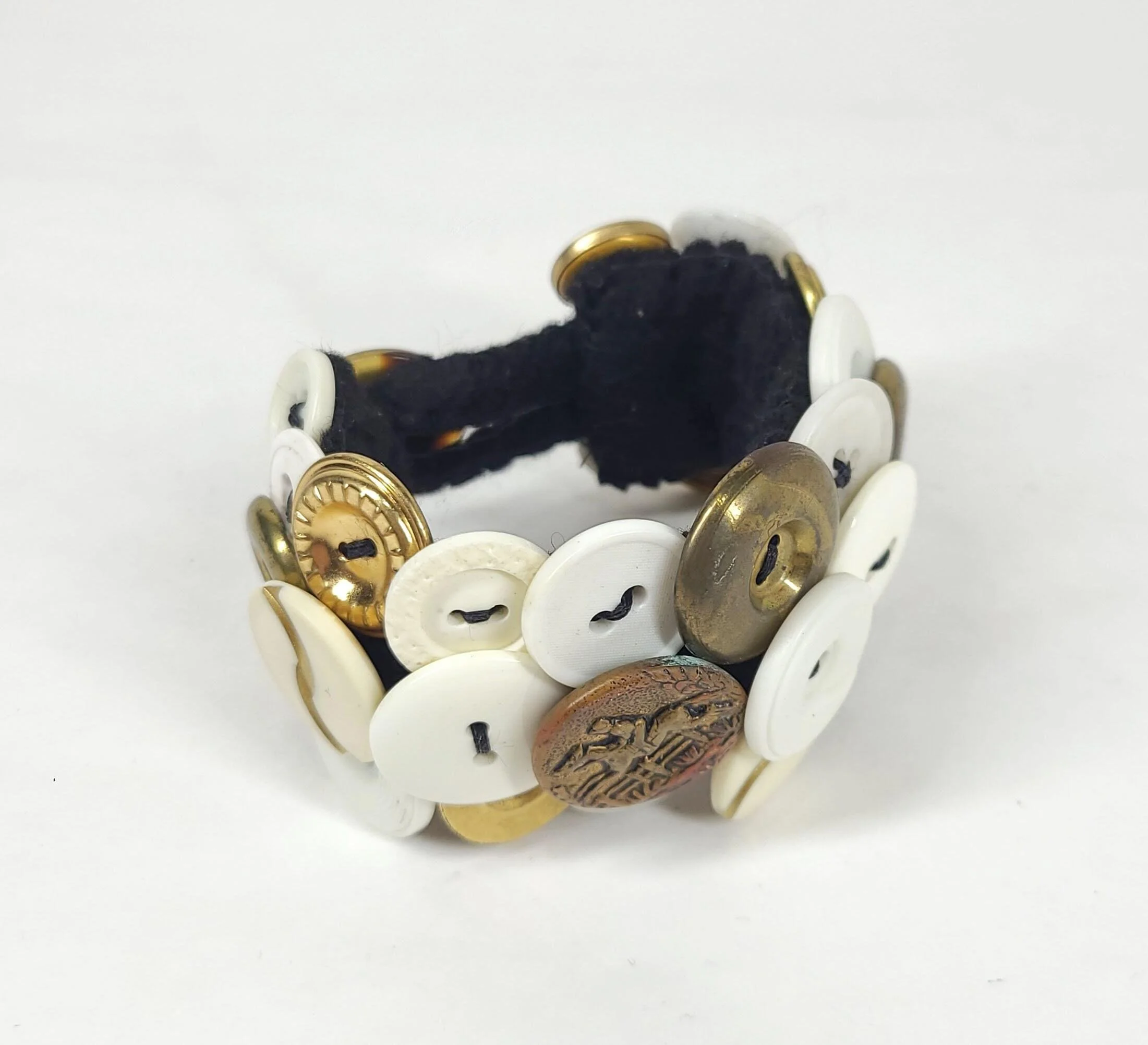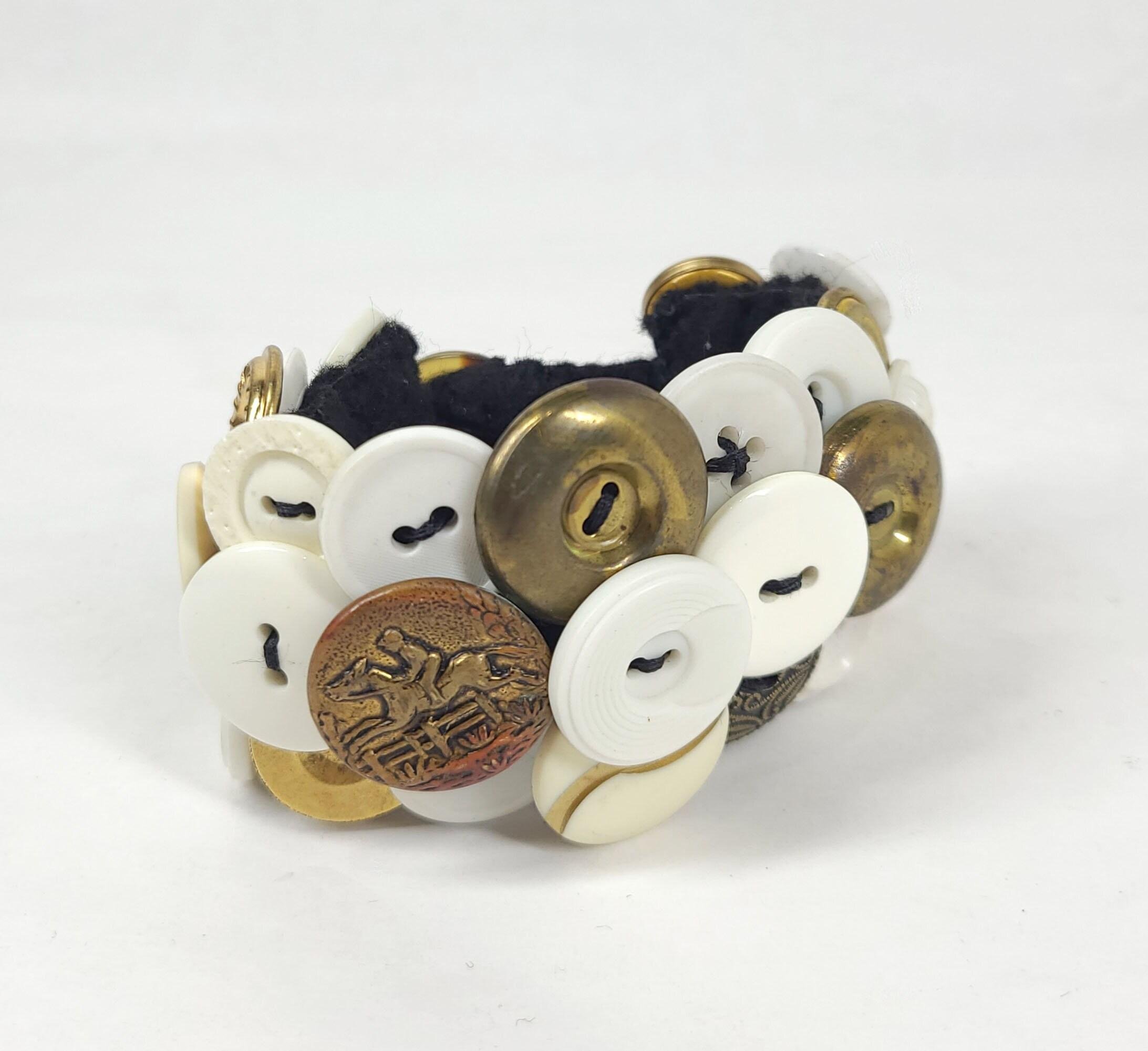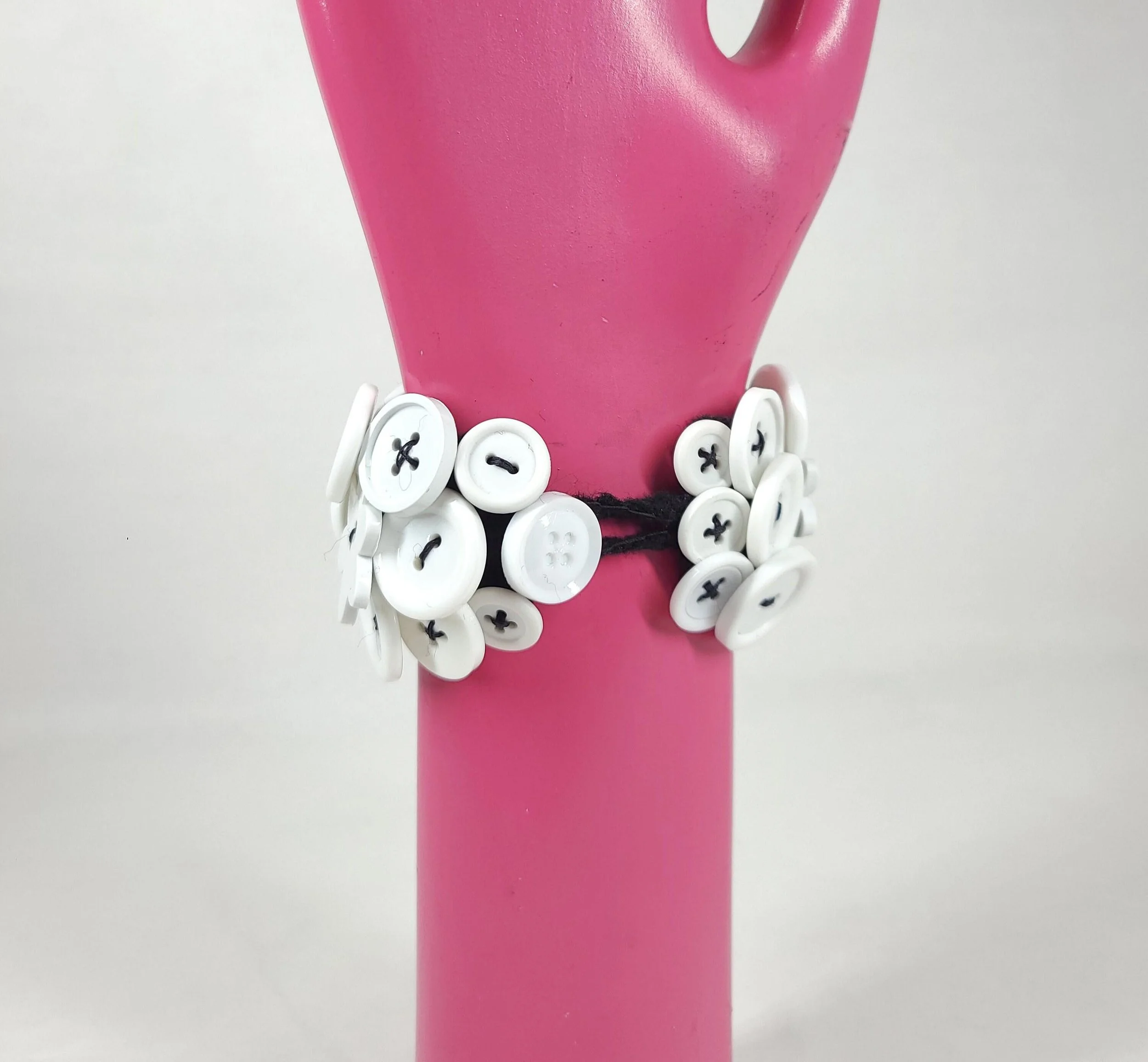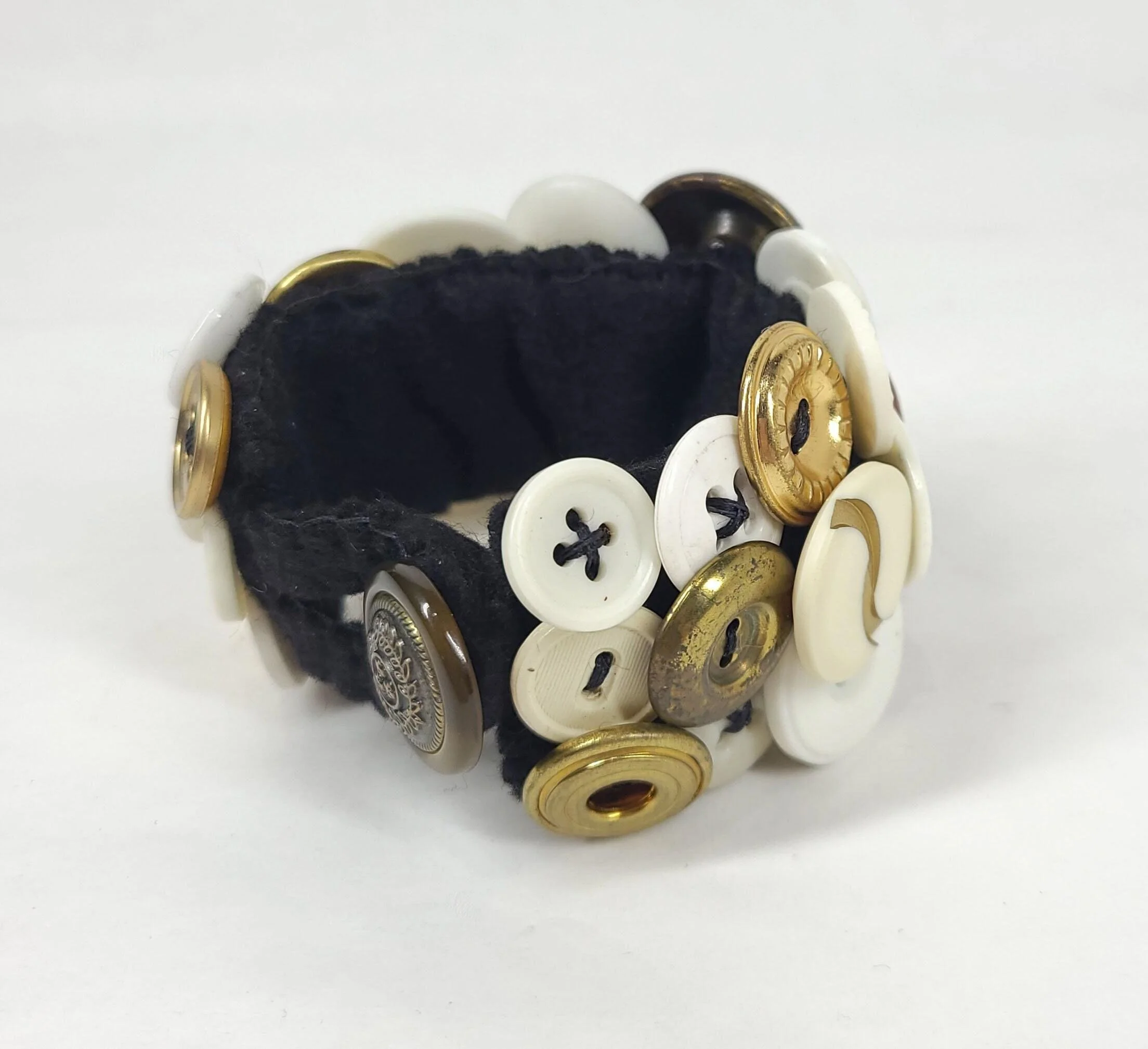 Upcycled Vintage Button Statement Necklace in White & Butterscotch Brown