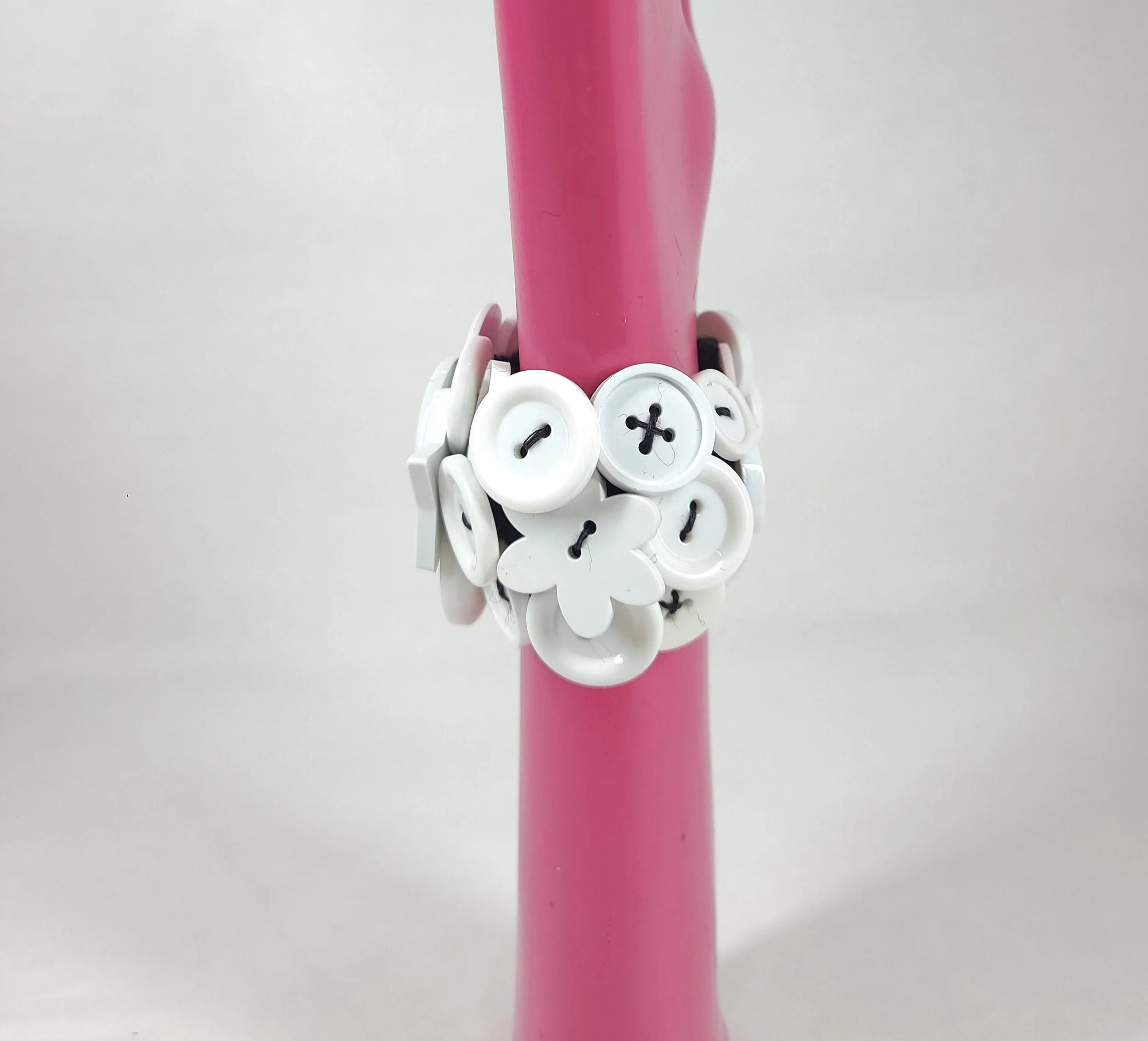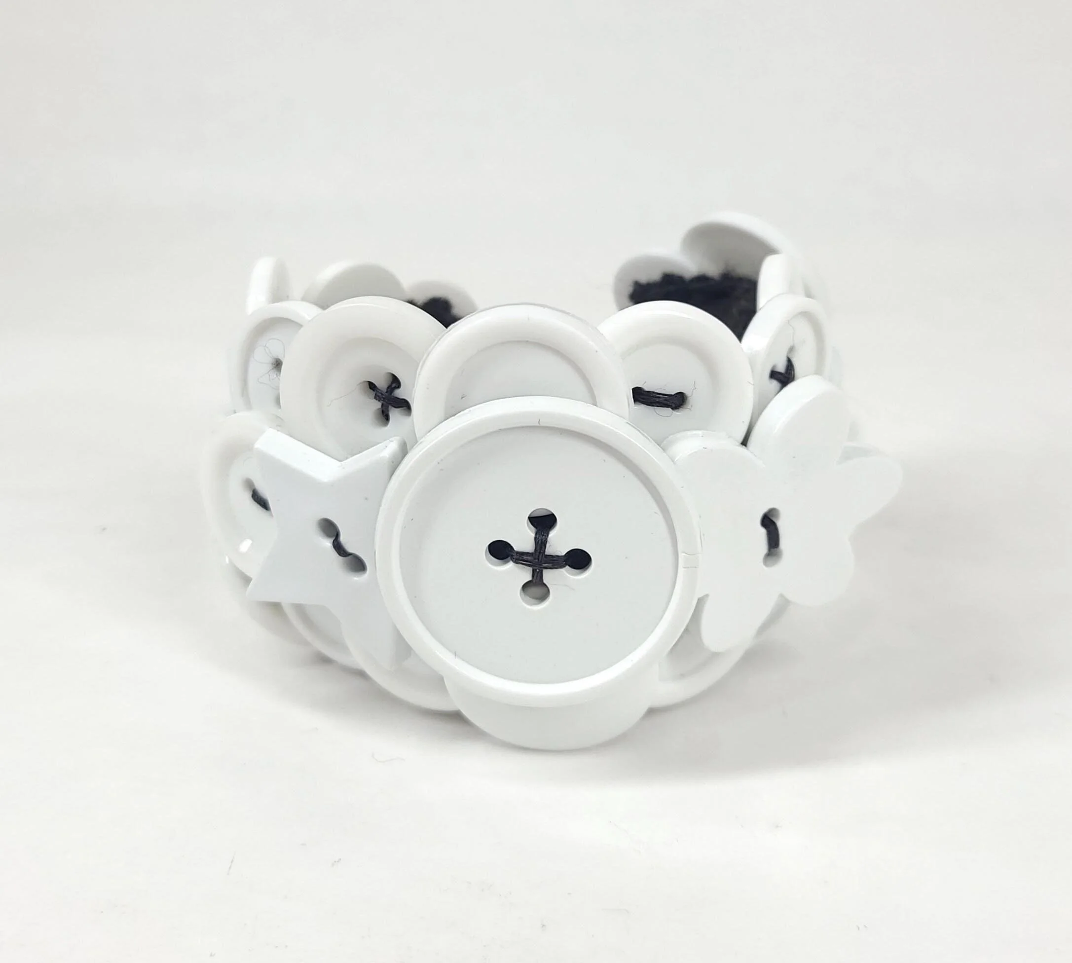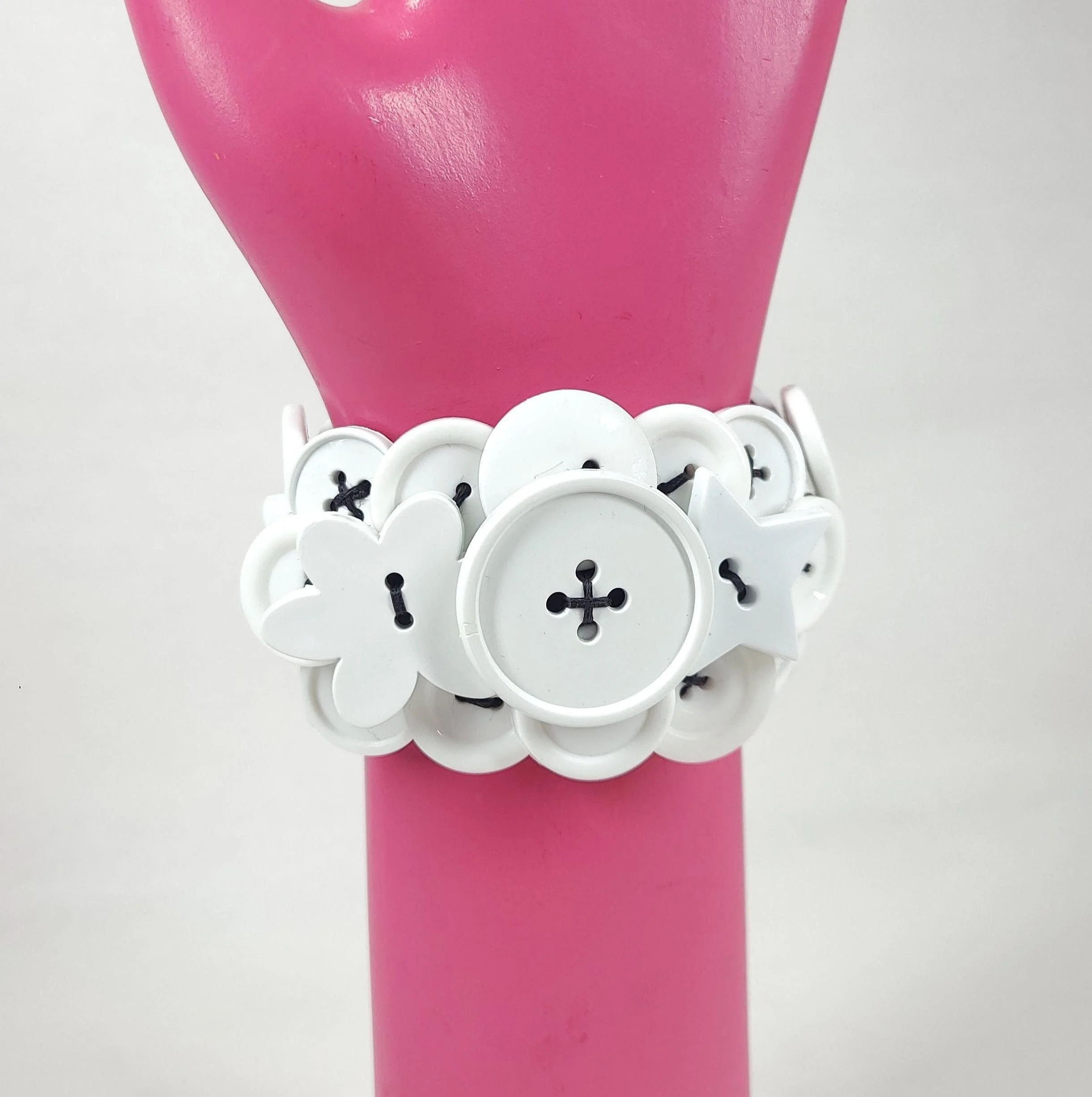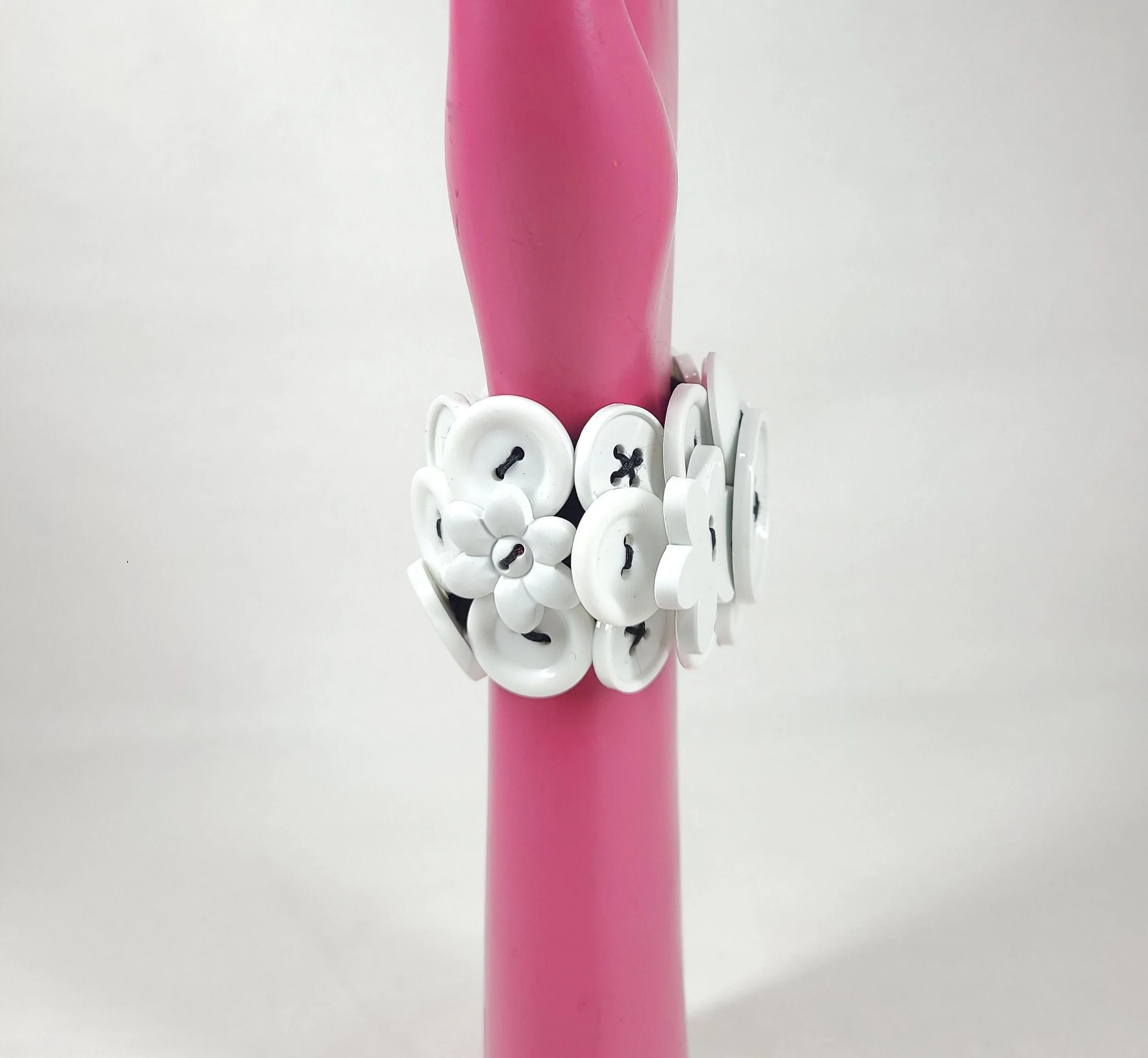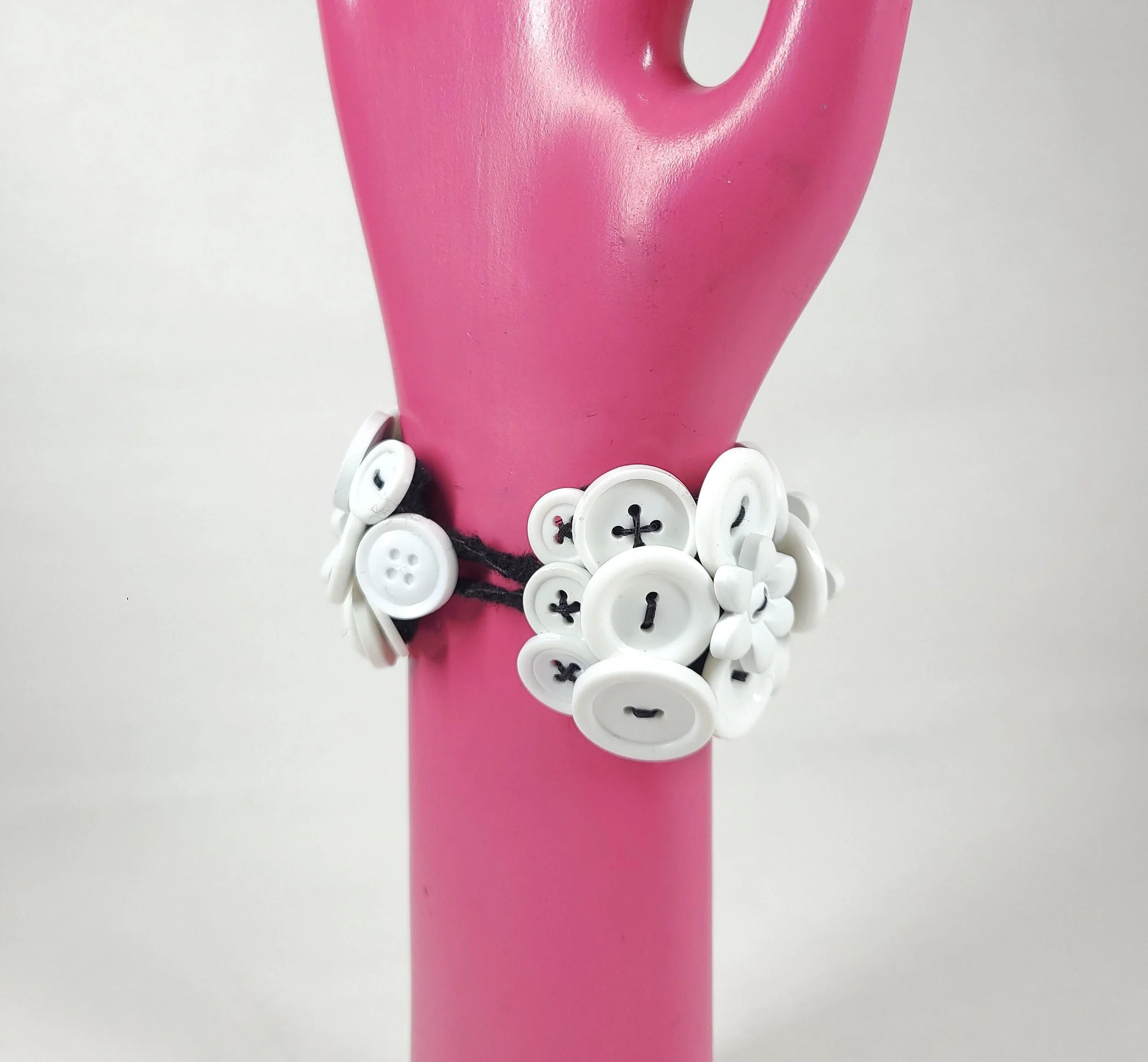 Upcycled Vintage Button Statement Necklace in White & Butterscotch Brown