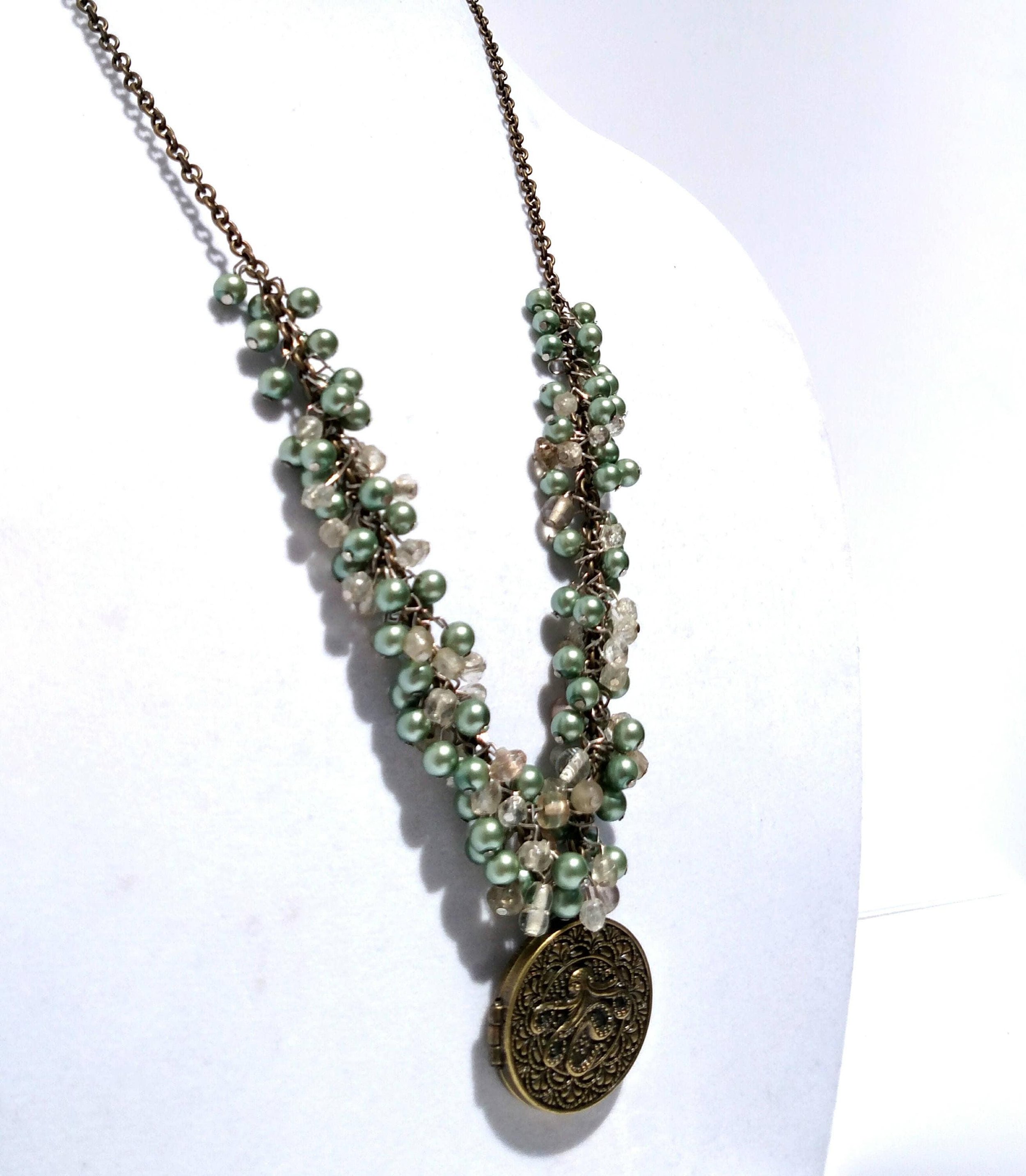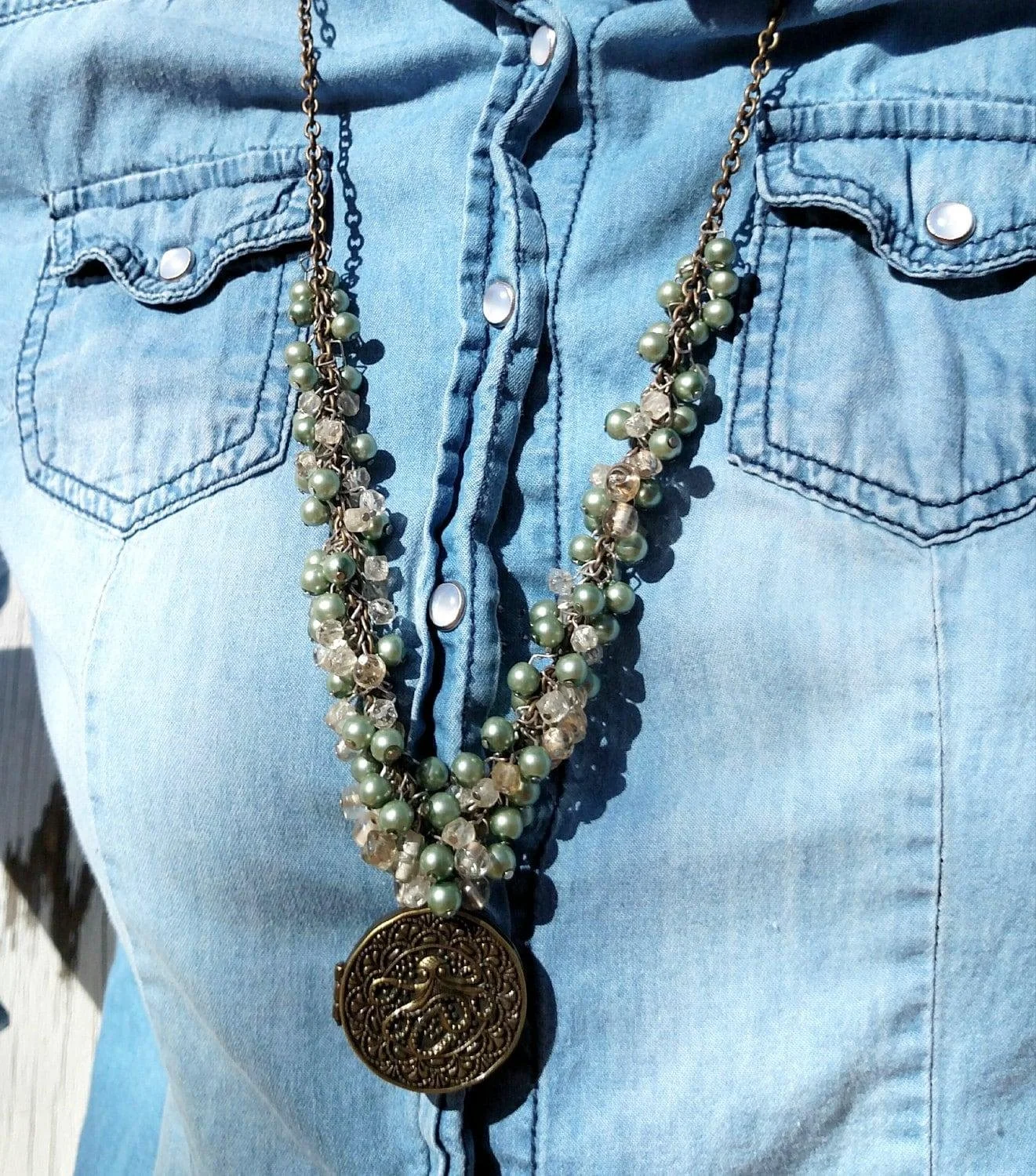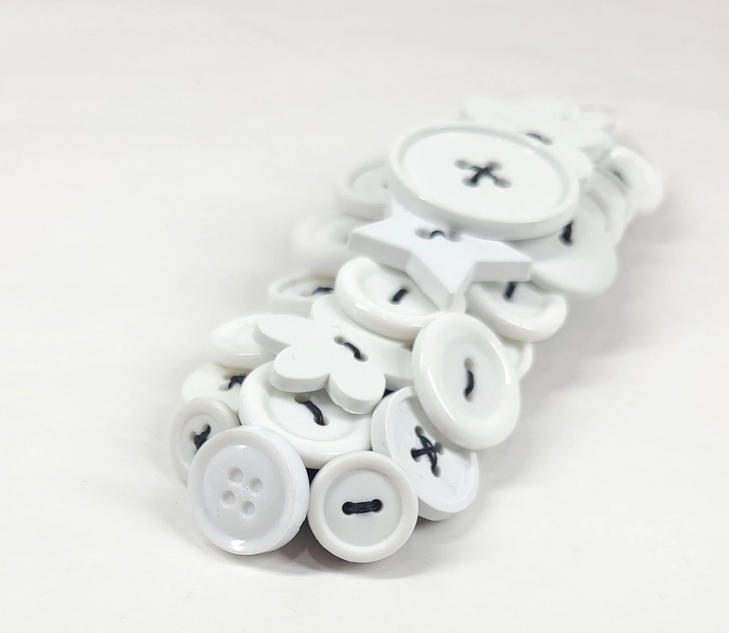 This one of a kind chunky, funky necklace was made with an assortment of vintage buttons in a rich mixture of warm white and butterscotch brown. The buttons are made from plastic in a variety of shapes and sizes and they hang from a silver tone nickel free metal chain that features a lobster claw clasp. The buttons on this necklace are vintage so there may be some light scratches, cracking or discoloration to some pieces.