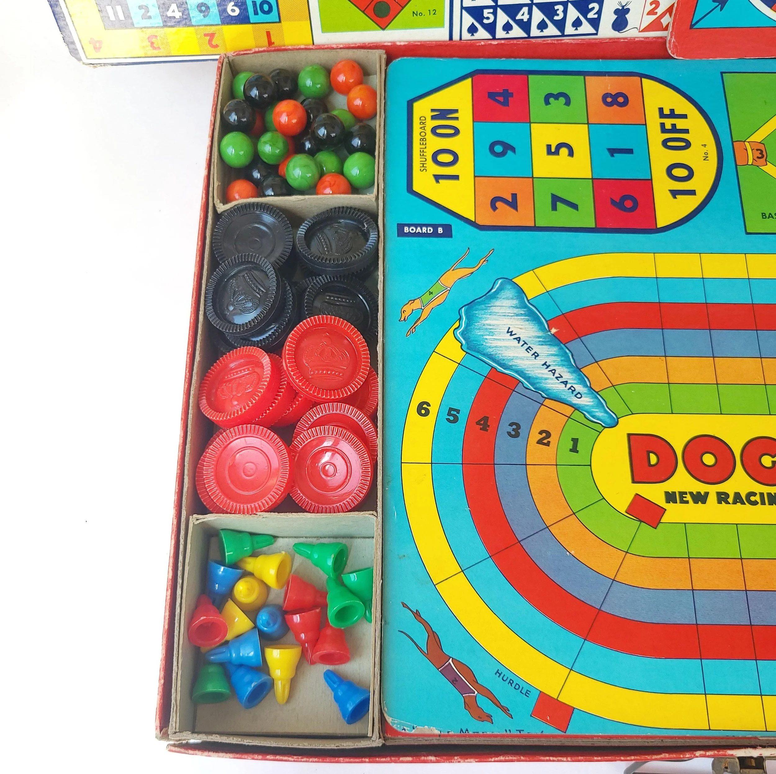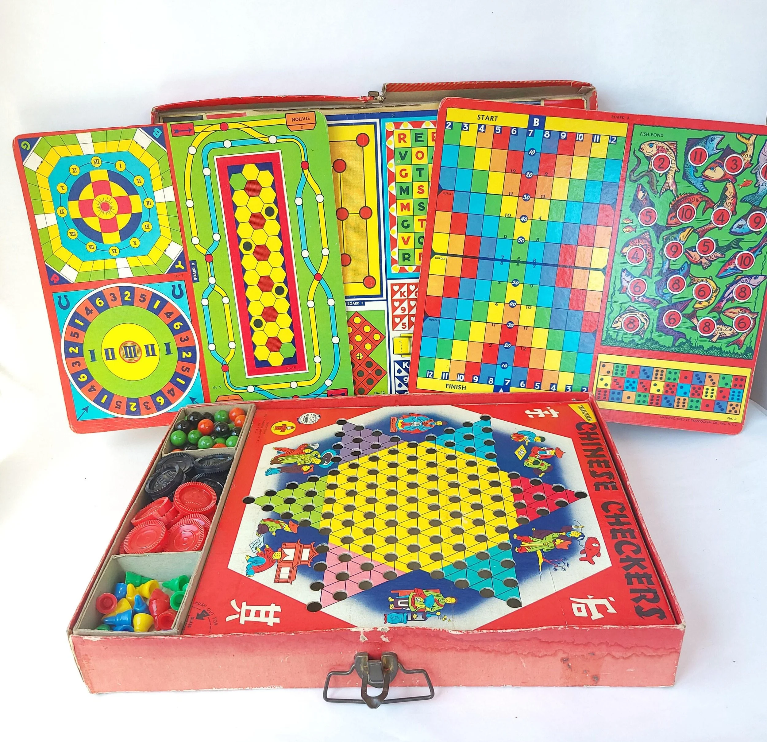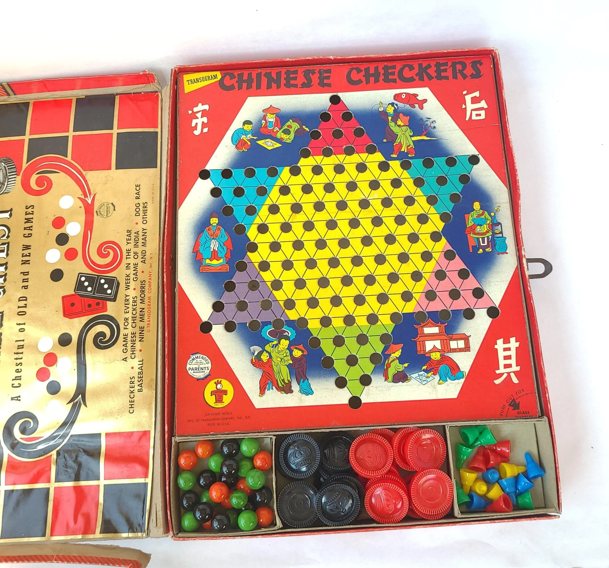 This gorgeous vintage 1950's 52 Variety Game Chest was made by the Transogram Company. The set includes: