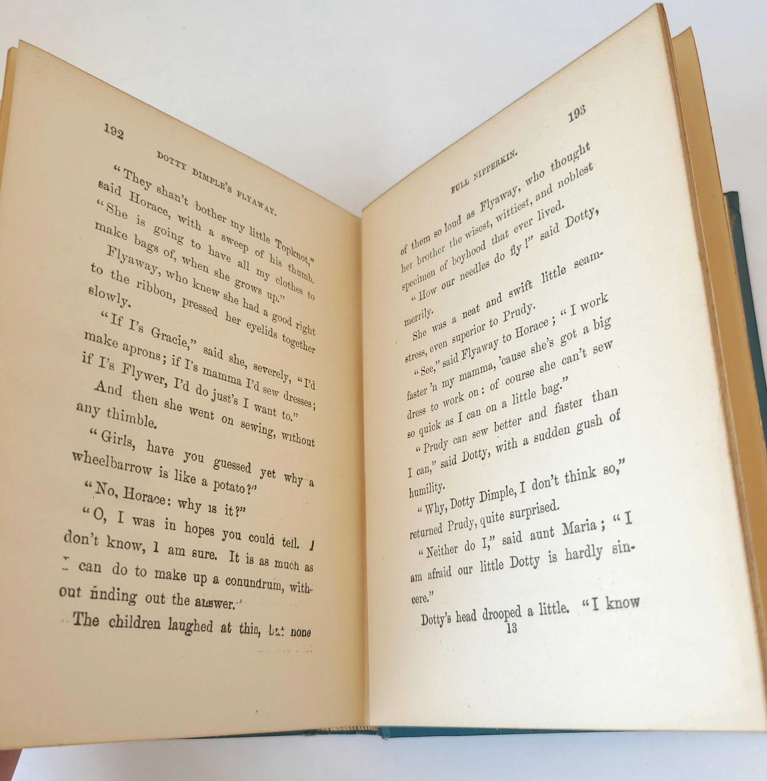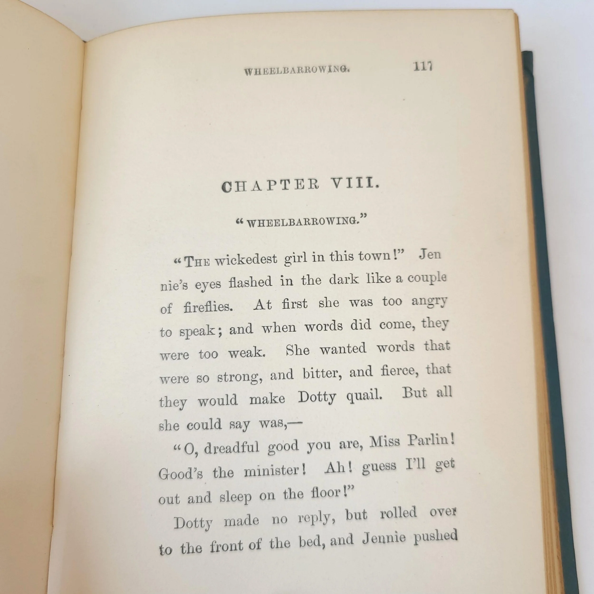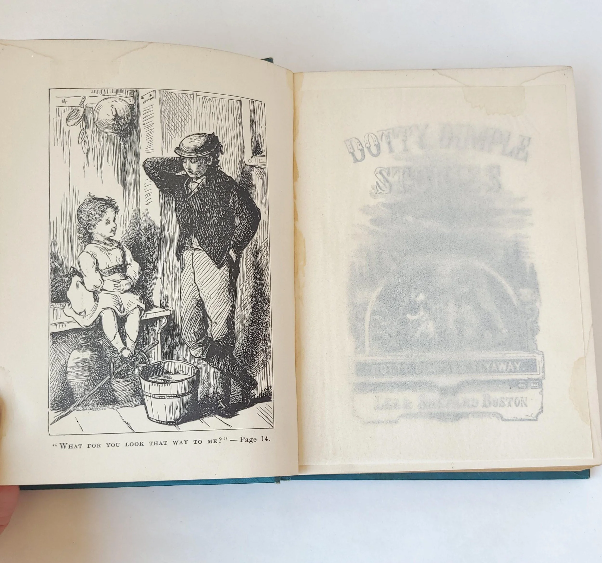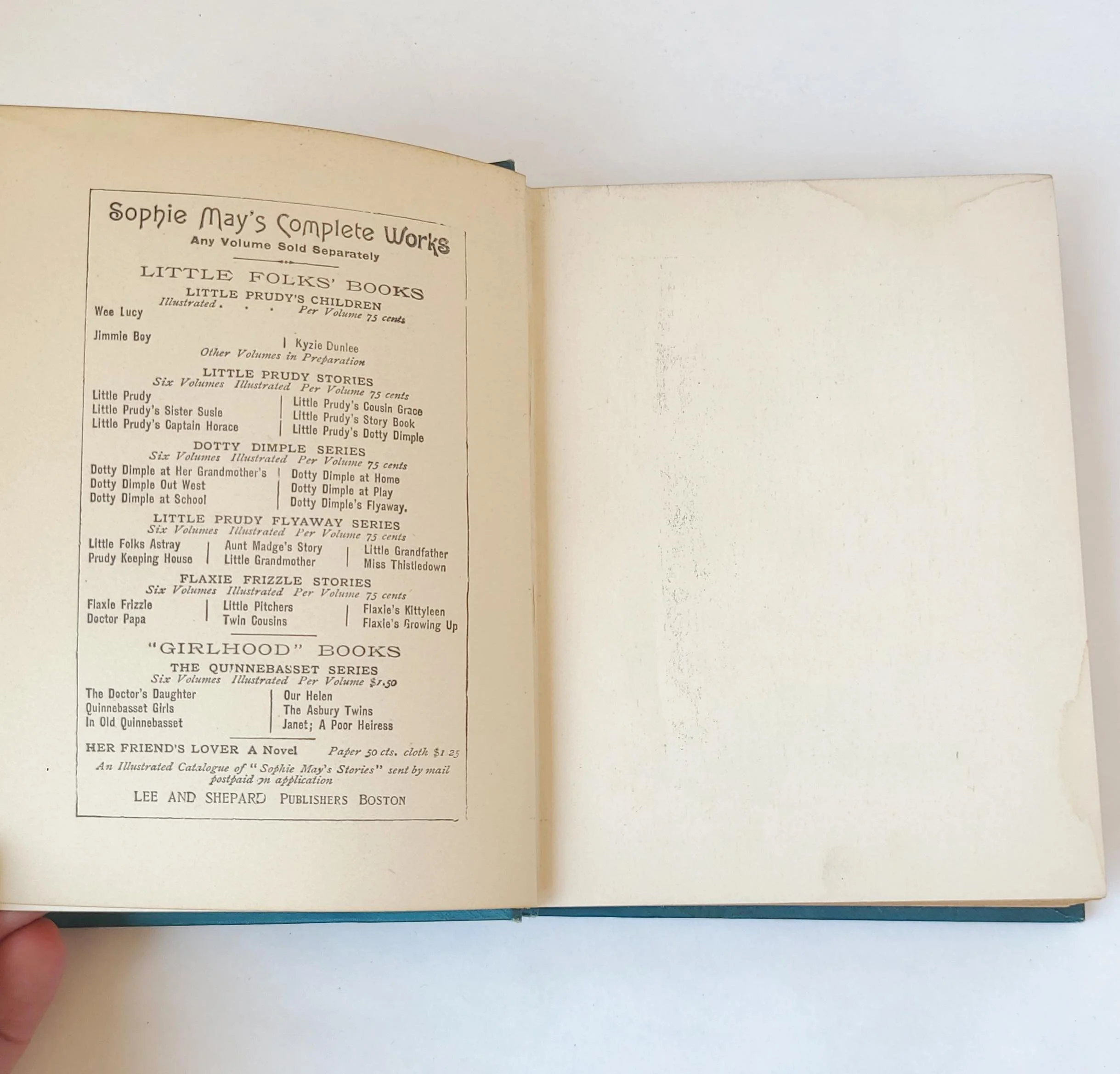This darling vintage 1957 first hardcover edition of Freddy was written by Miriam Mason and illustrated by Vee Guthrie. It tells the story of a brave little rabbit named Freddy and his adventures with his family at their new farm. The book belonged to a school library so it has had the image from the dust jacket clipped and adhered to the cloth cover which does have some wear to the edges and spots of discoloration. There are some marks on the front cover from the library, and a checkout card pouch inside the front cover along with some stamps and marks. There are a few creased pages and a few small stains, but there are no torn or marked pages and good overall color quality.