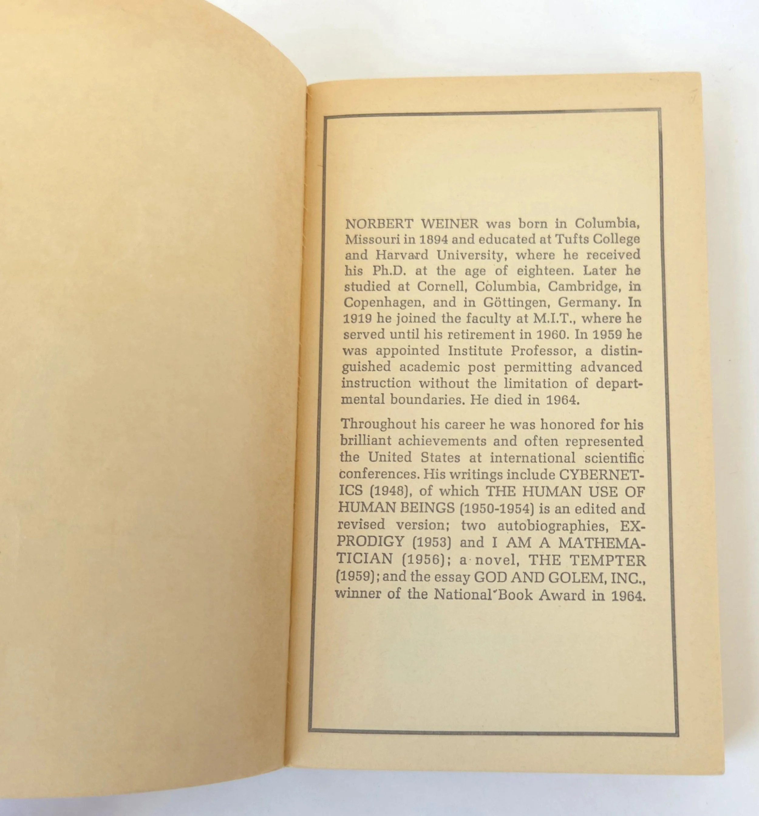 1969 The Human Use of Human Beings: Cybernetics and Society by Norbert Wiener