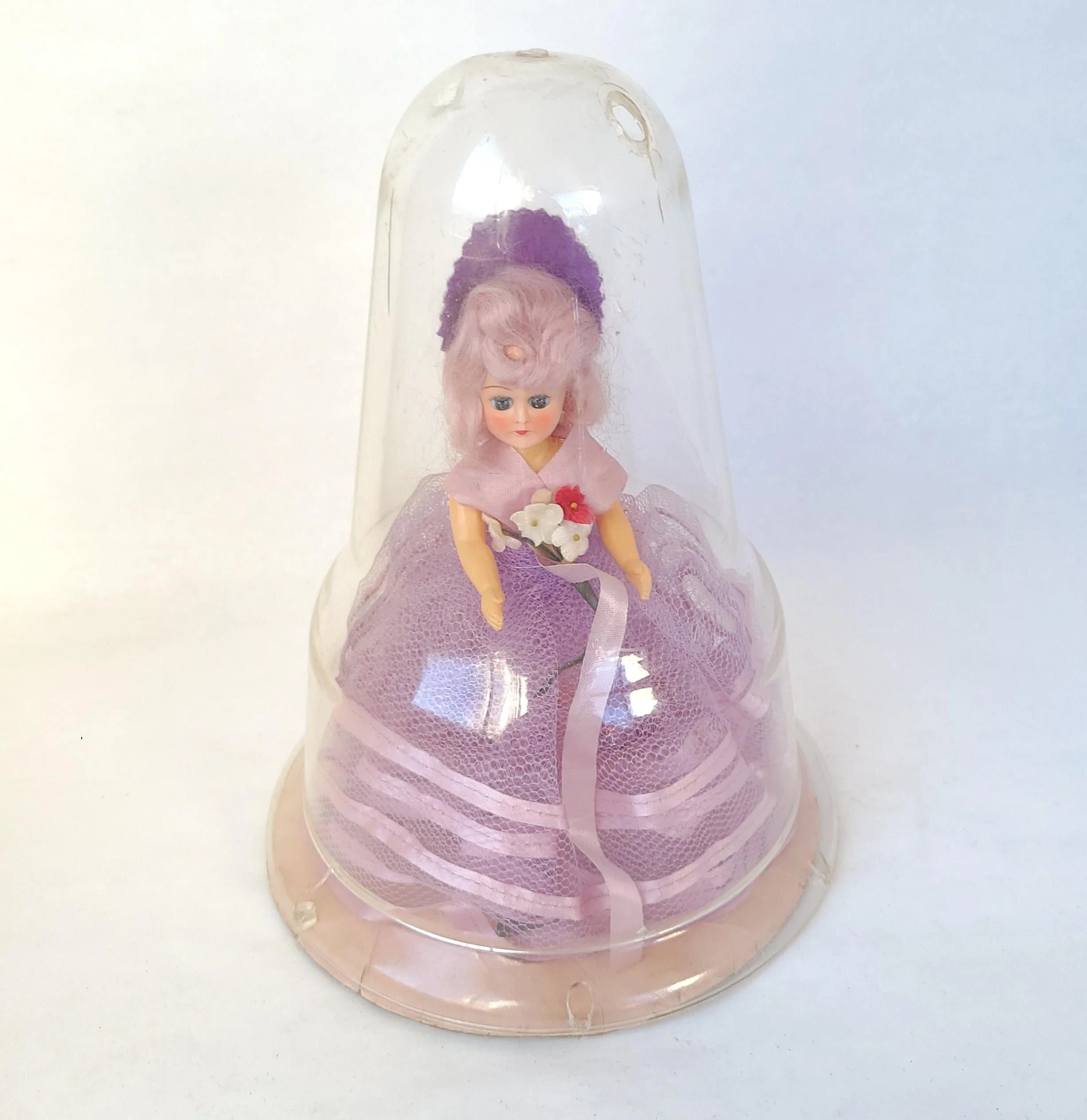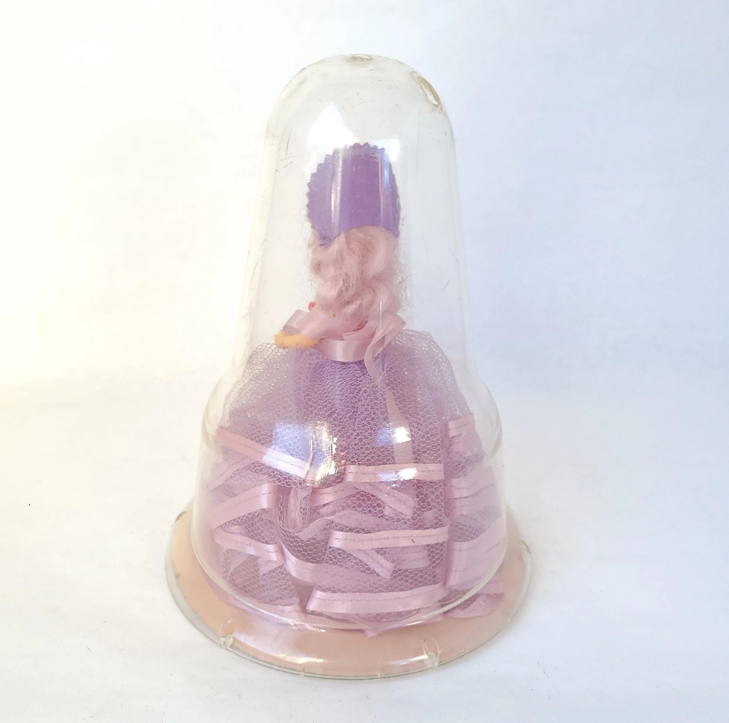 A&H Fair Doll in Plastic Bell Dome: Purple Dress, Pink Hair