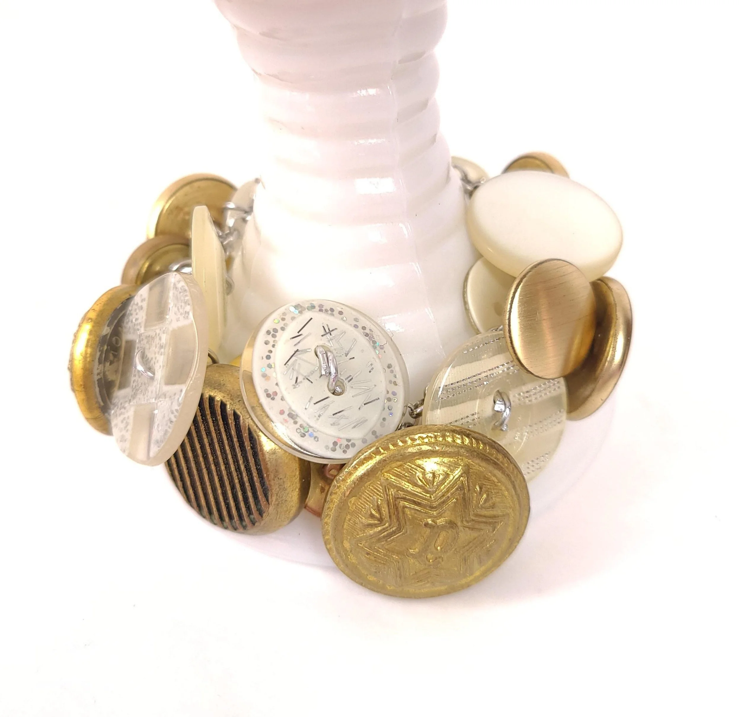 Vintage Button Statement Ring: Black, Beige, and Silver, Adjustable