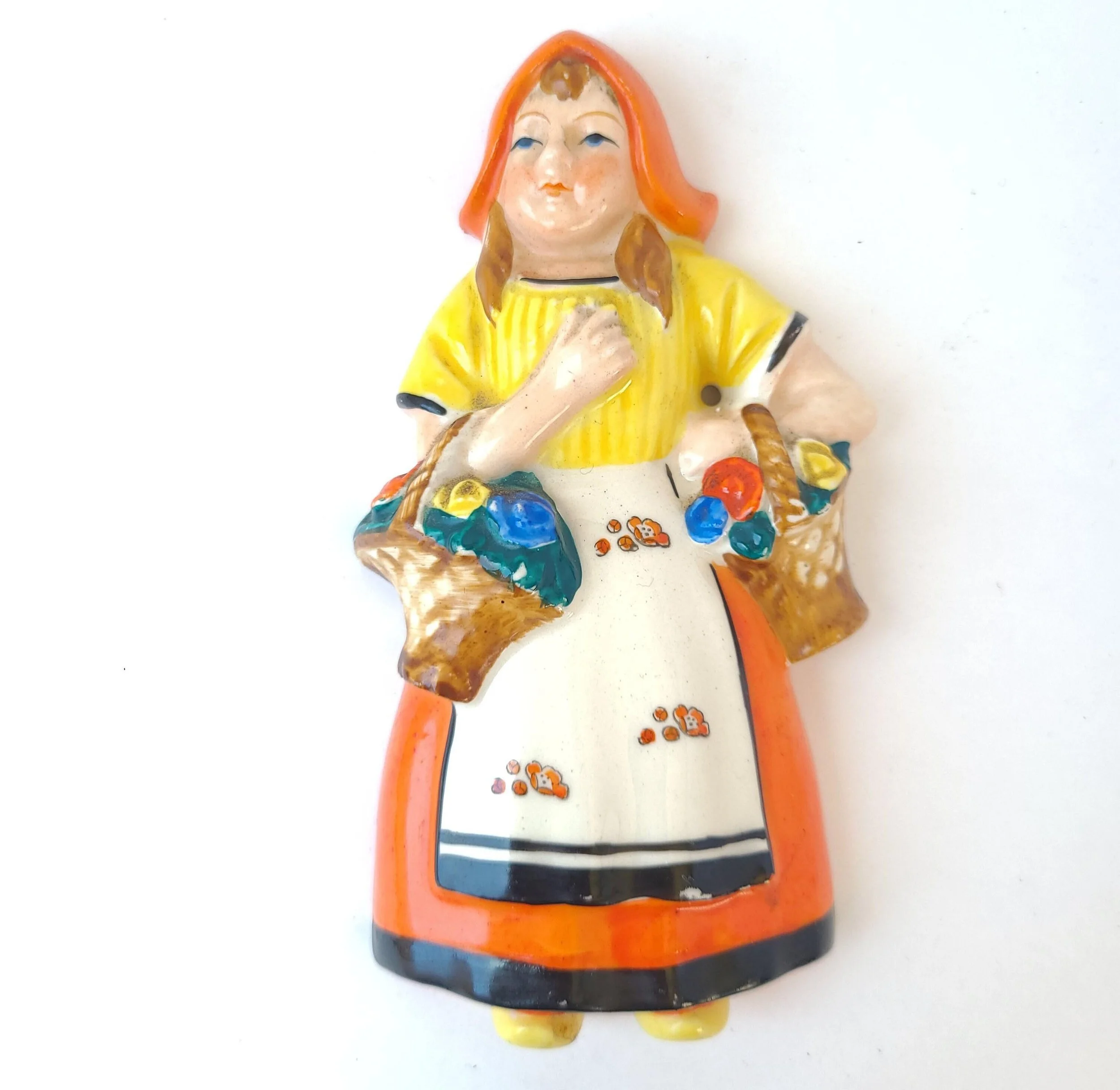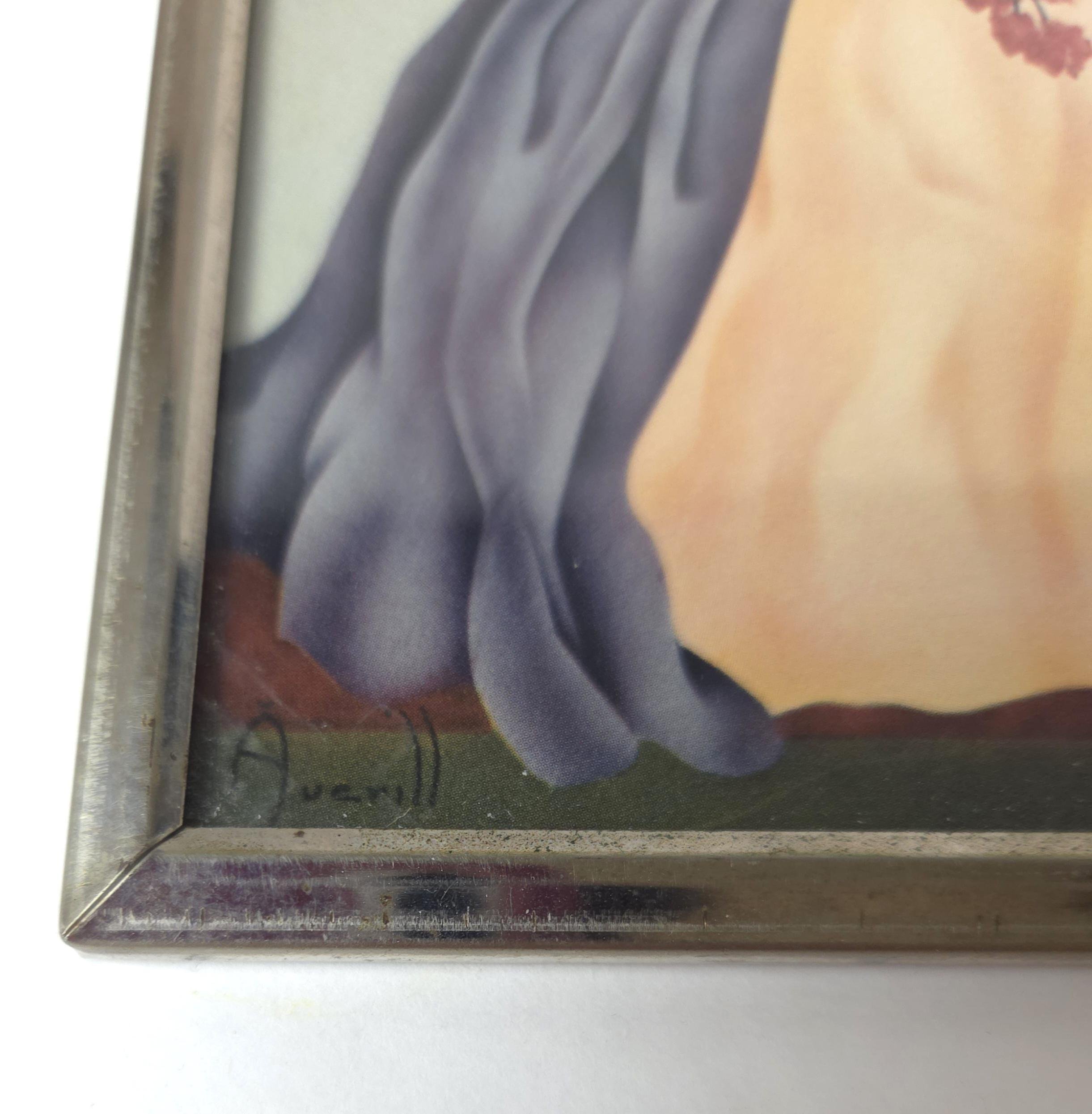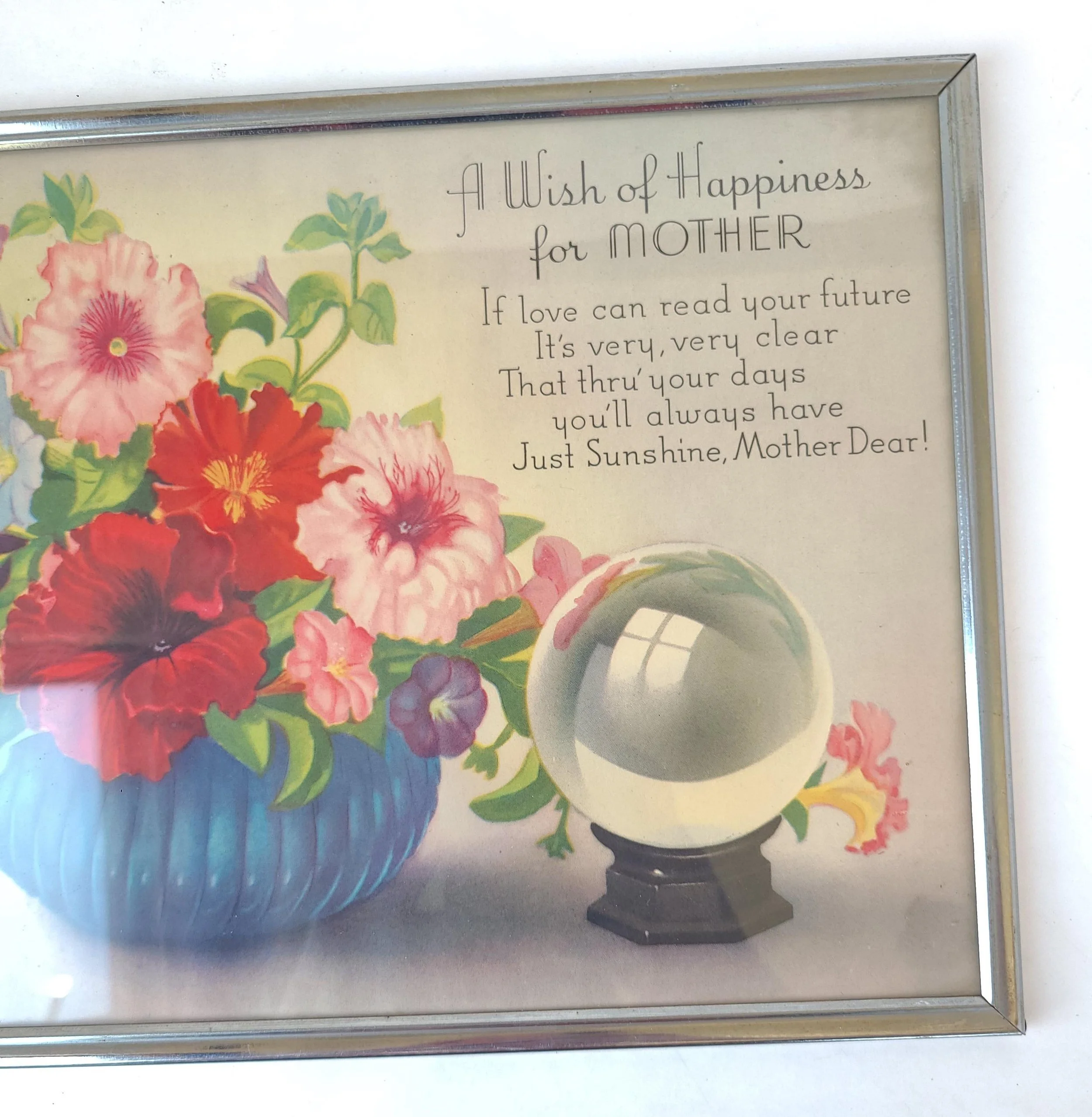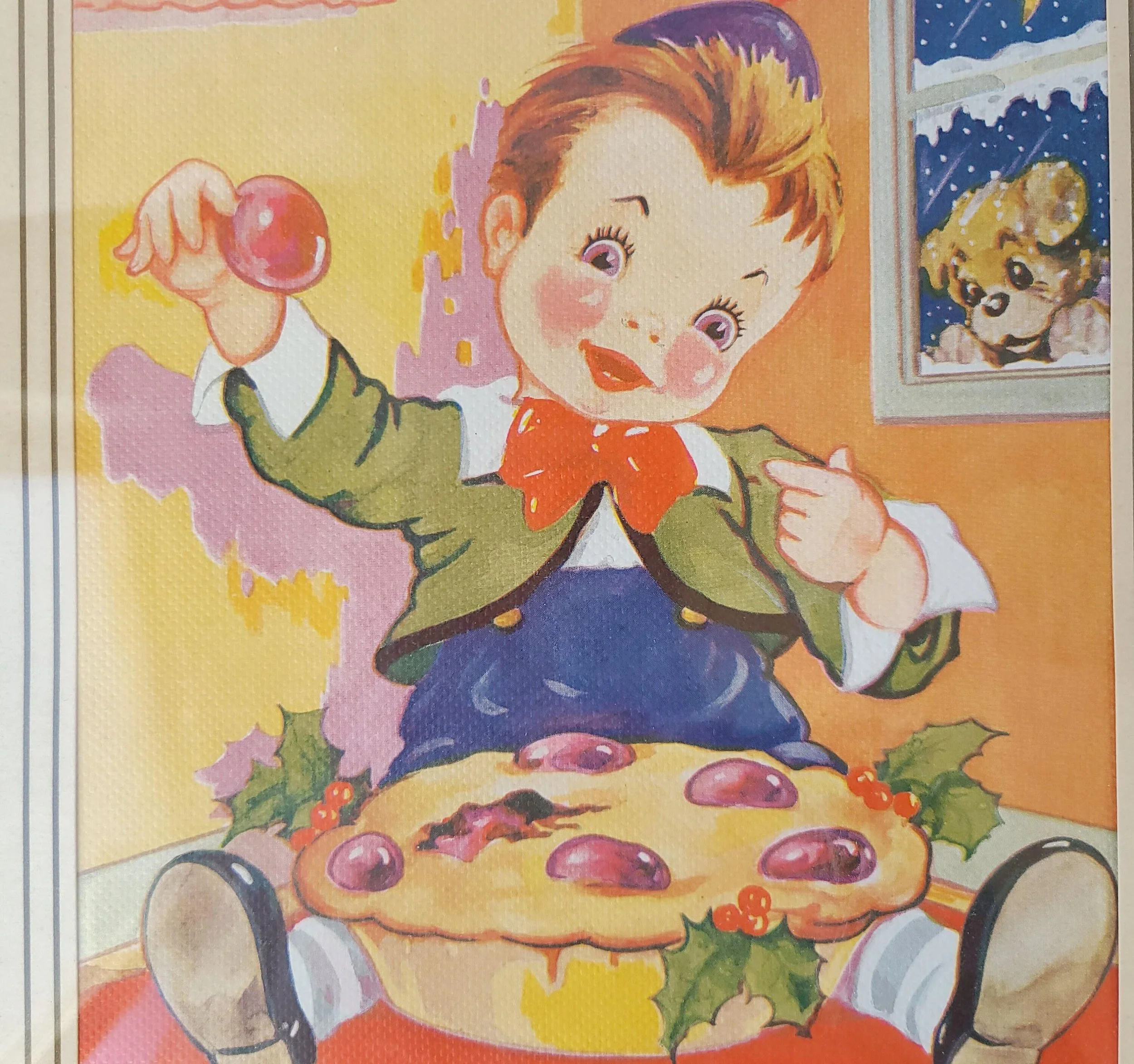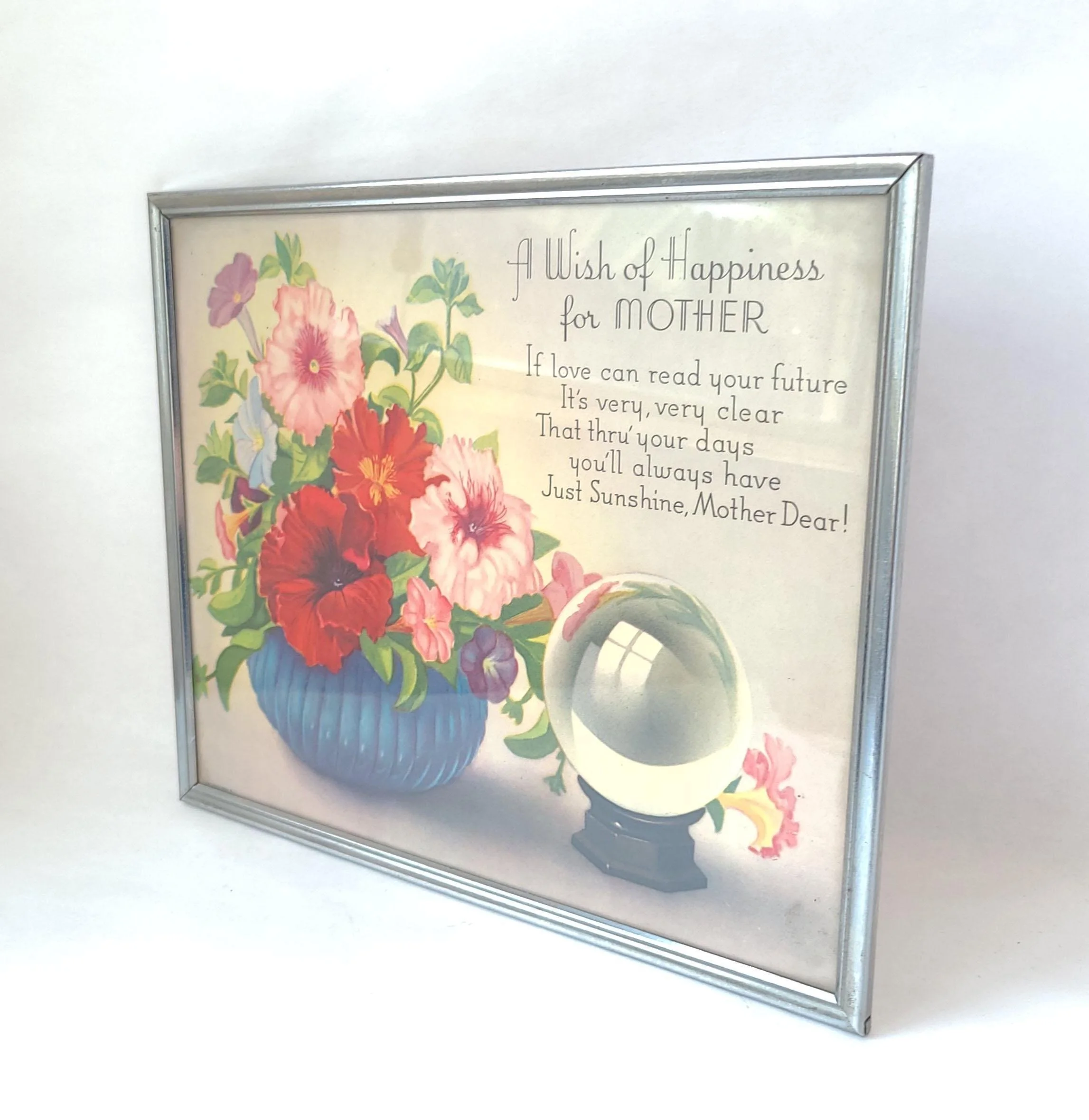 This darling vintage 1950's printed illustration by Penn Prints is matted, framed, and ready to hang on your wall for that perfect touch of vintage charm. The print itself is in good condition with no stains or tears and excellent color quality. The wood frame the piece is set in does have some paint loss, light scratches and scuffs with discoloration.