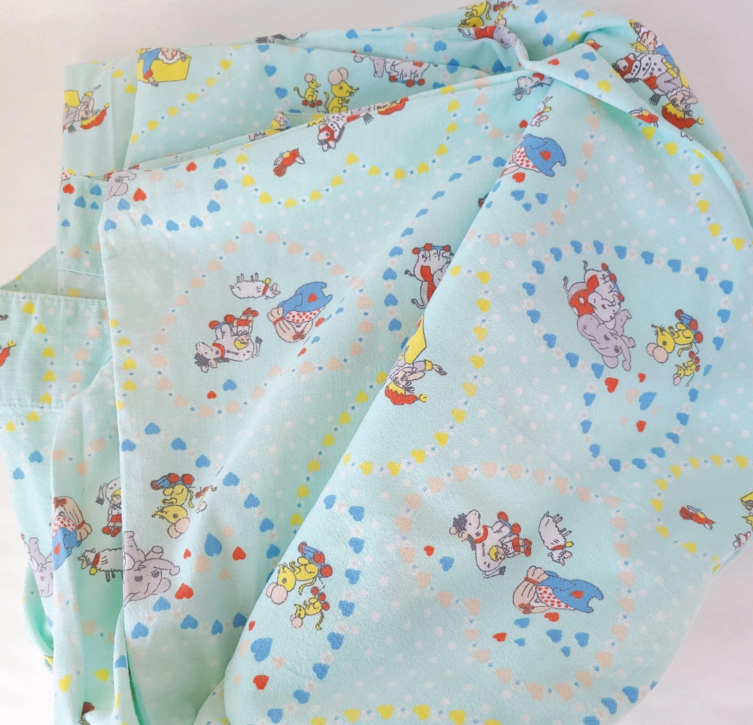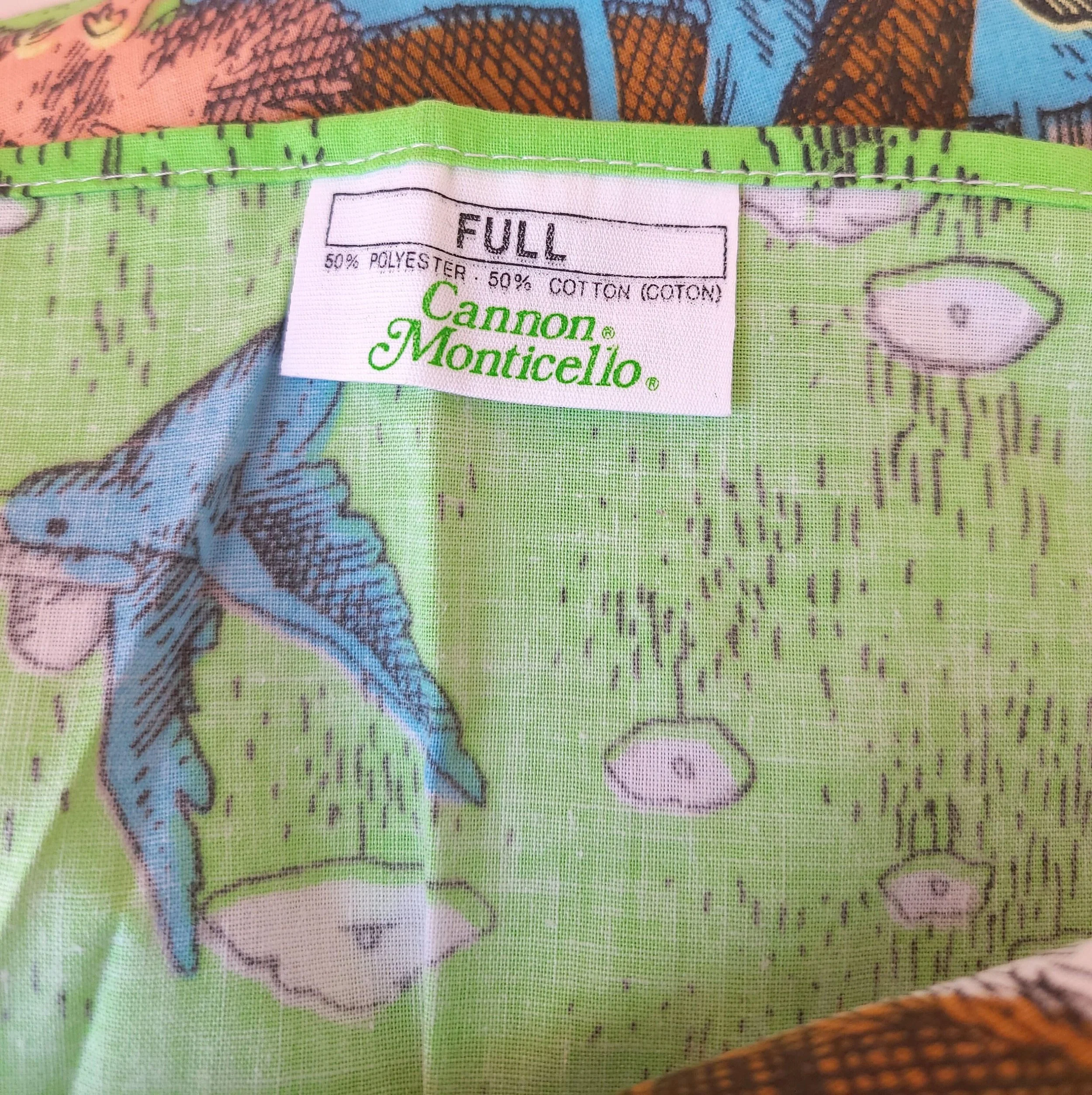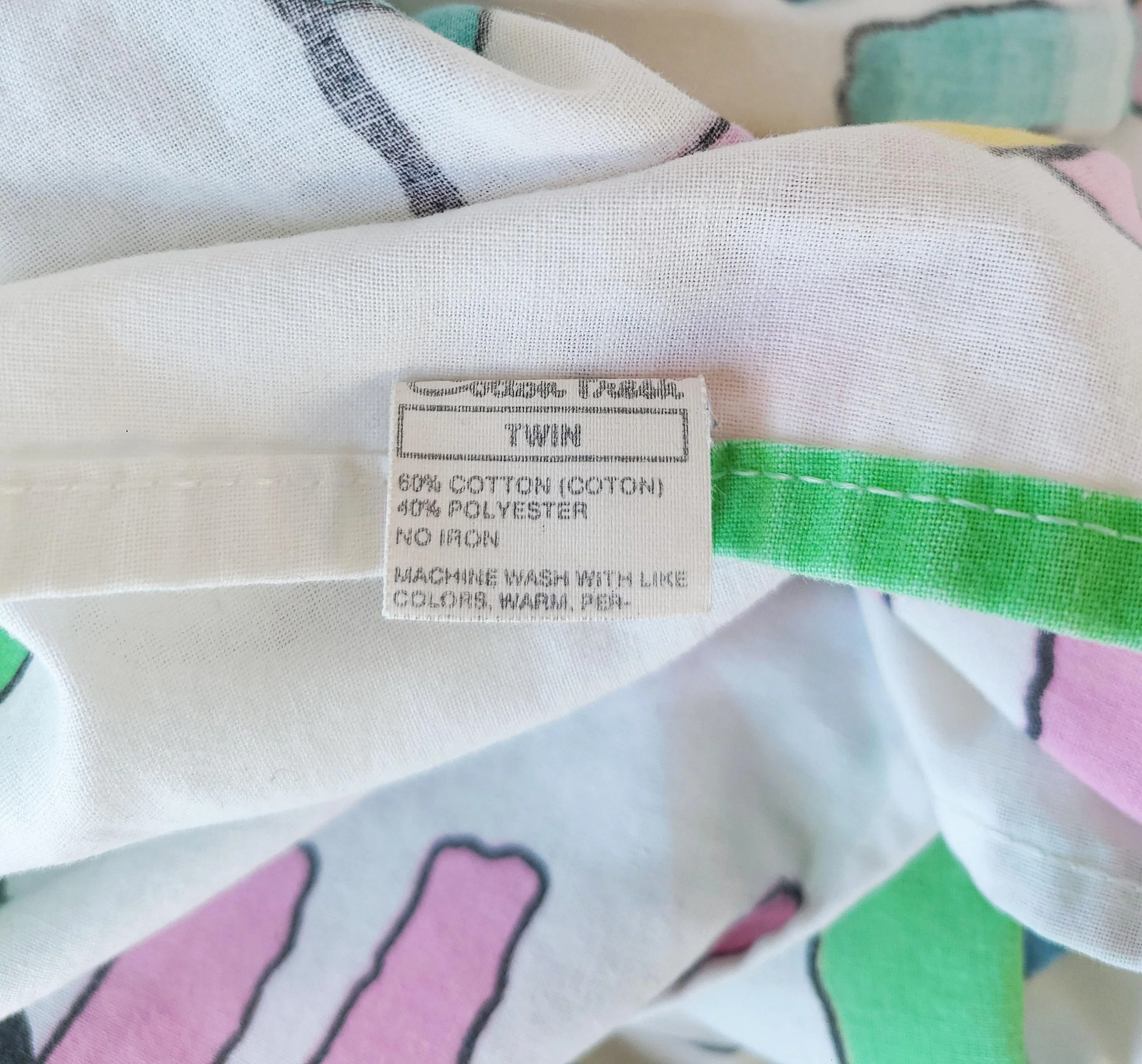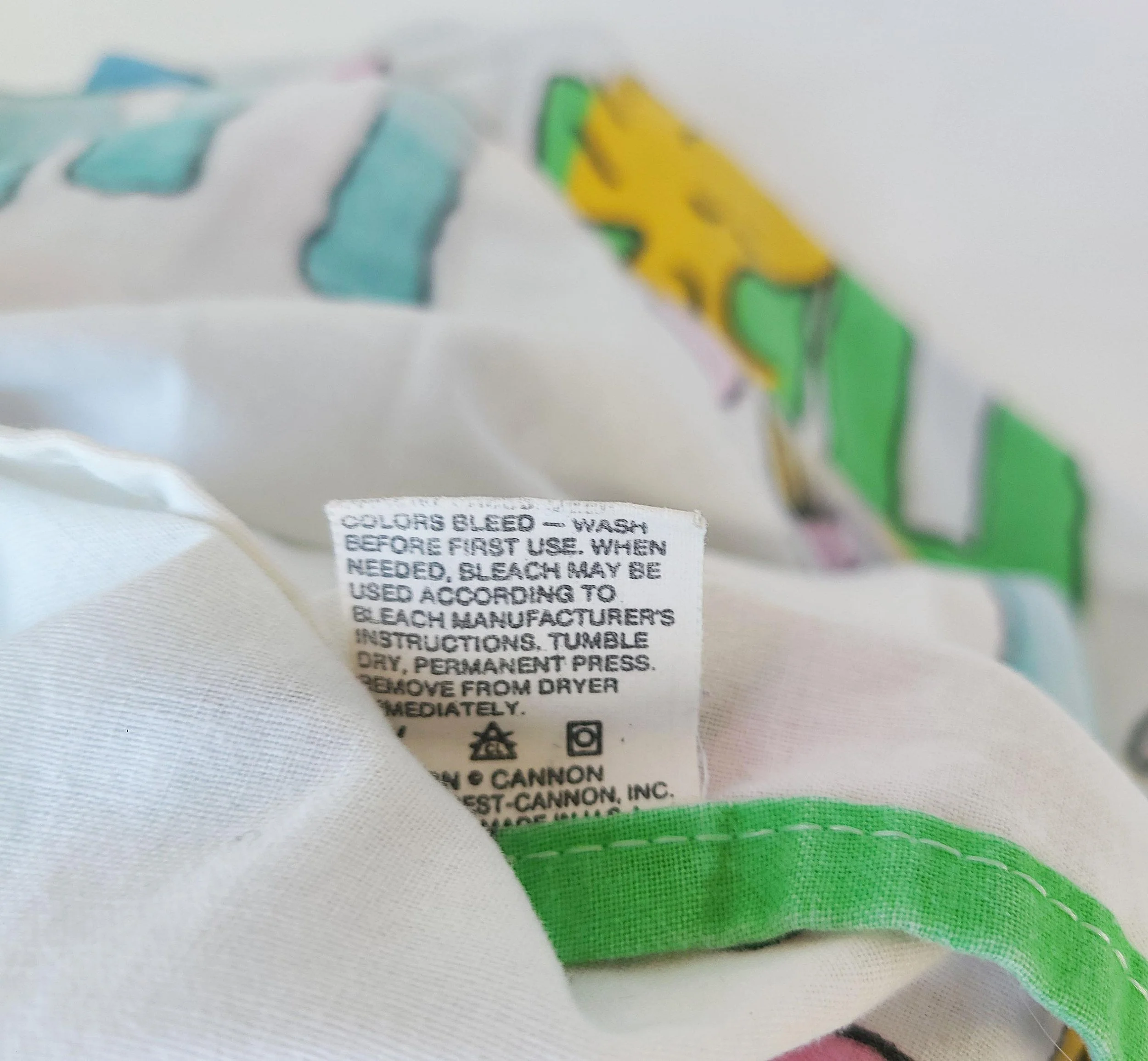 This extremely rare adorable vintage 1980's twin size flat sheet features beloved characters from Sesame street exploring outer space. Made for Montgomery Ward for their Children's bedding collection, this darling piece will add that perfect touch of eighties nostalgia to your or your child's bedroom. The sheet is in good used condition with no stains or tears and good color quality.