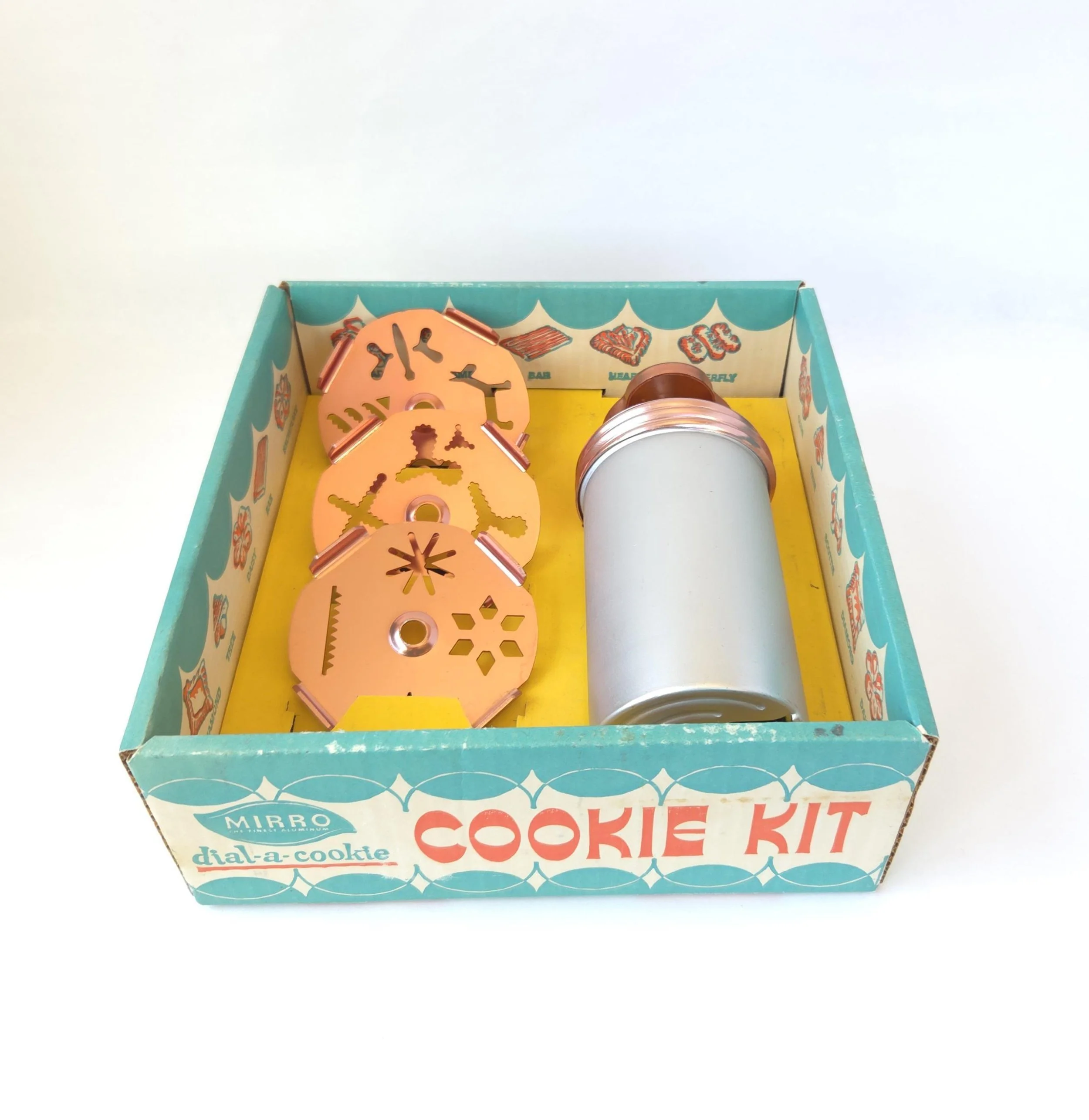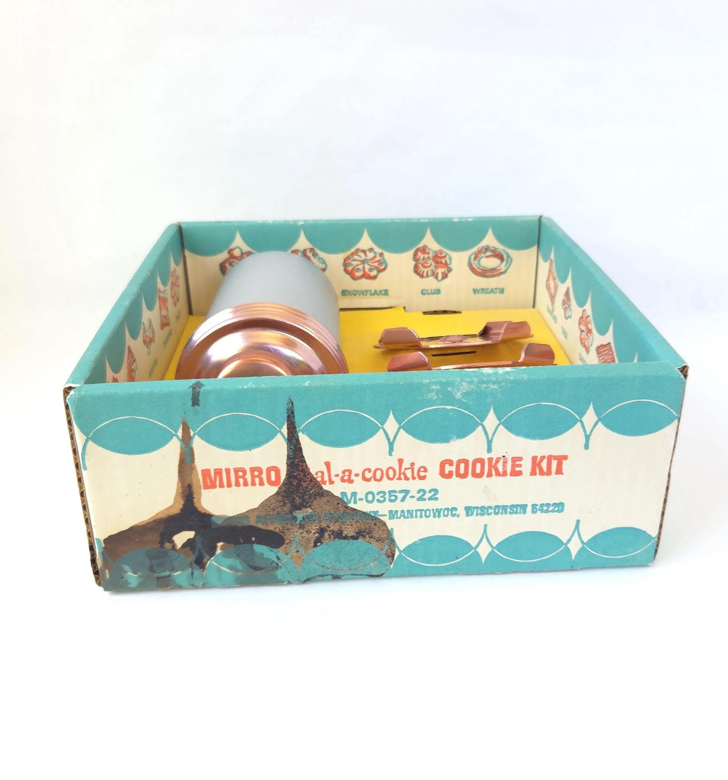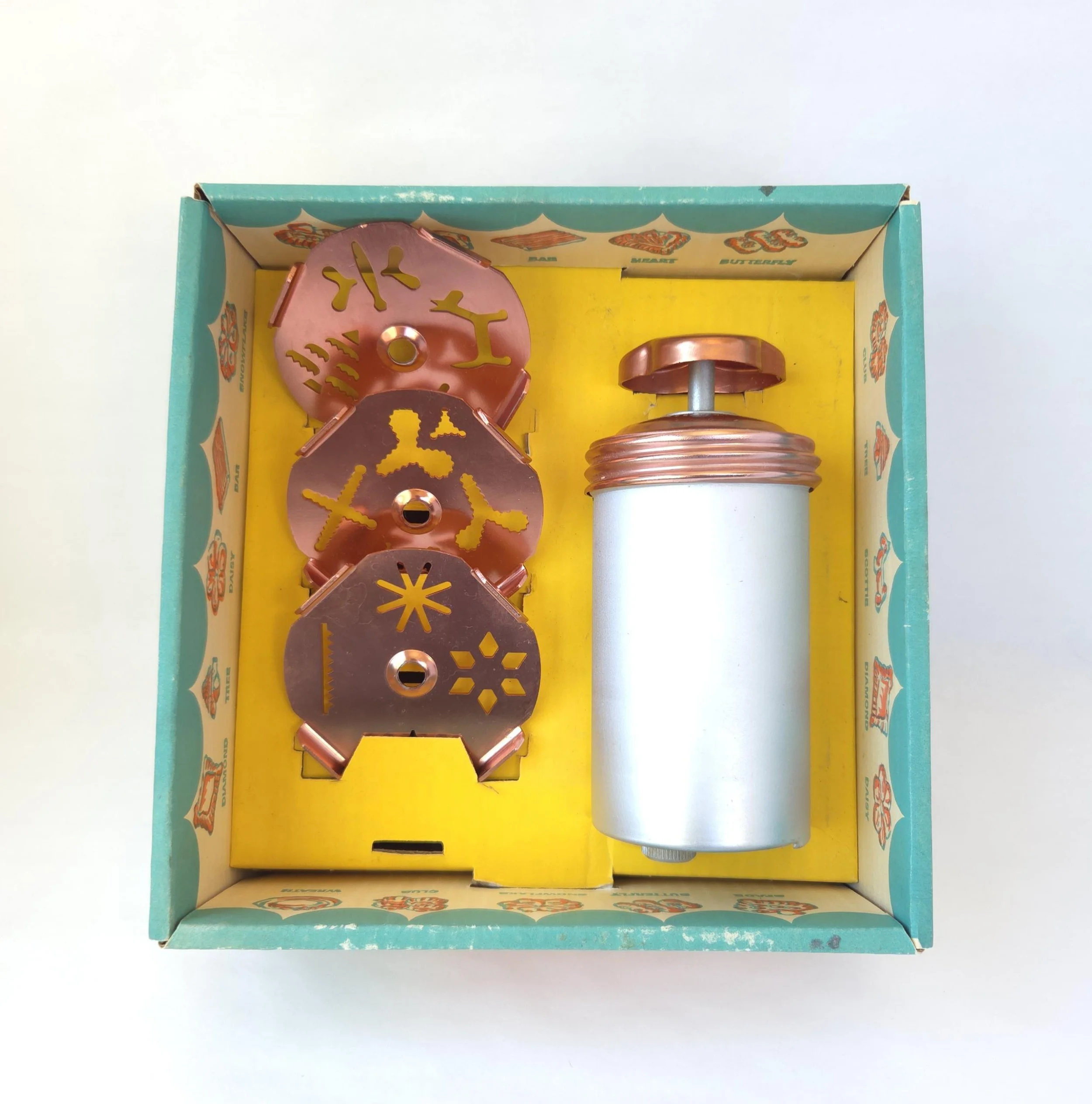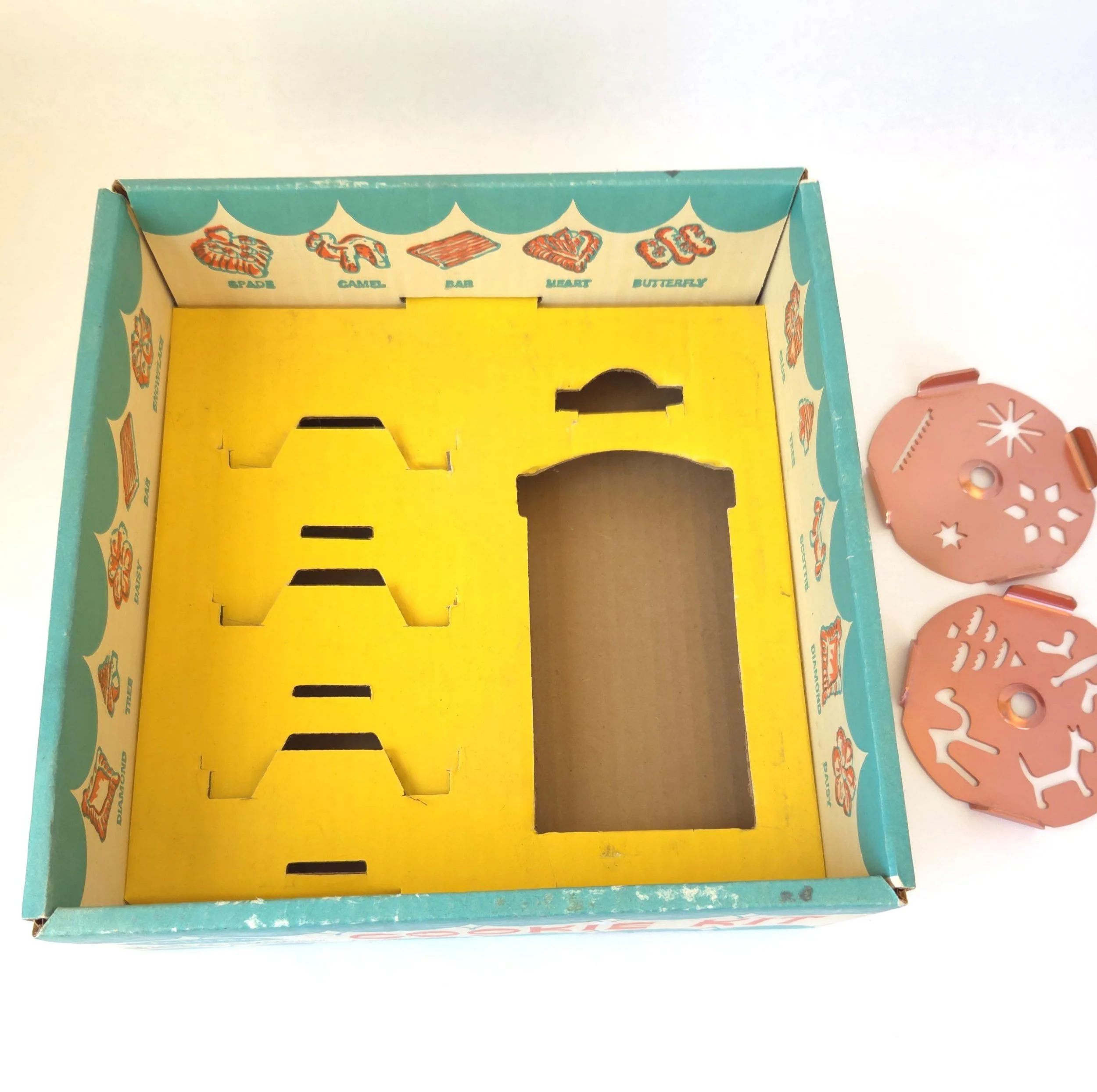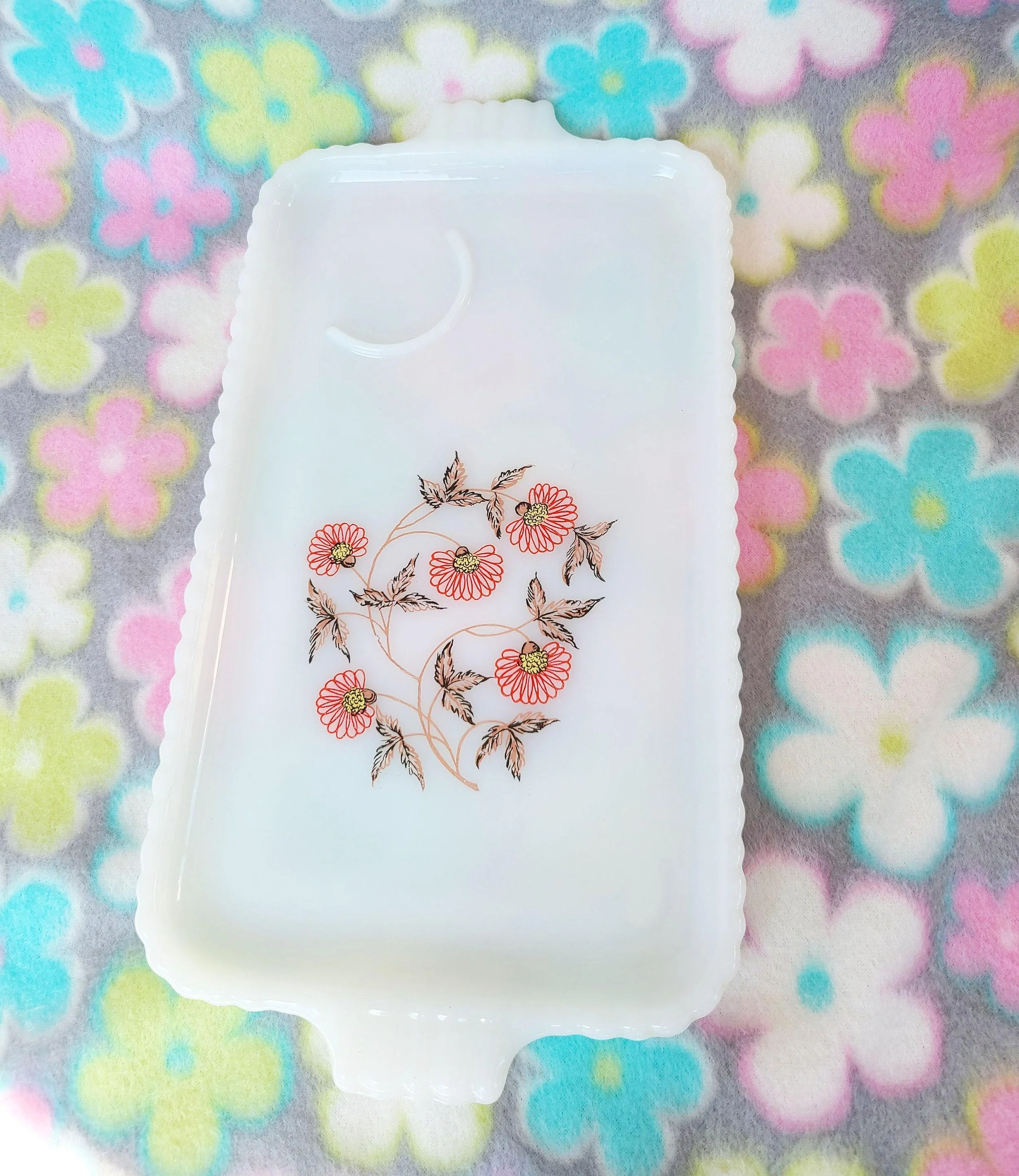 This charming vintage tin box features a photograph on the lid that features flowers in glass apothecary jars. The box is in good used condition, with a spot of paint of the top, along with some very light scratches, but excellent overall color quality.