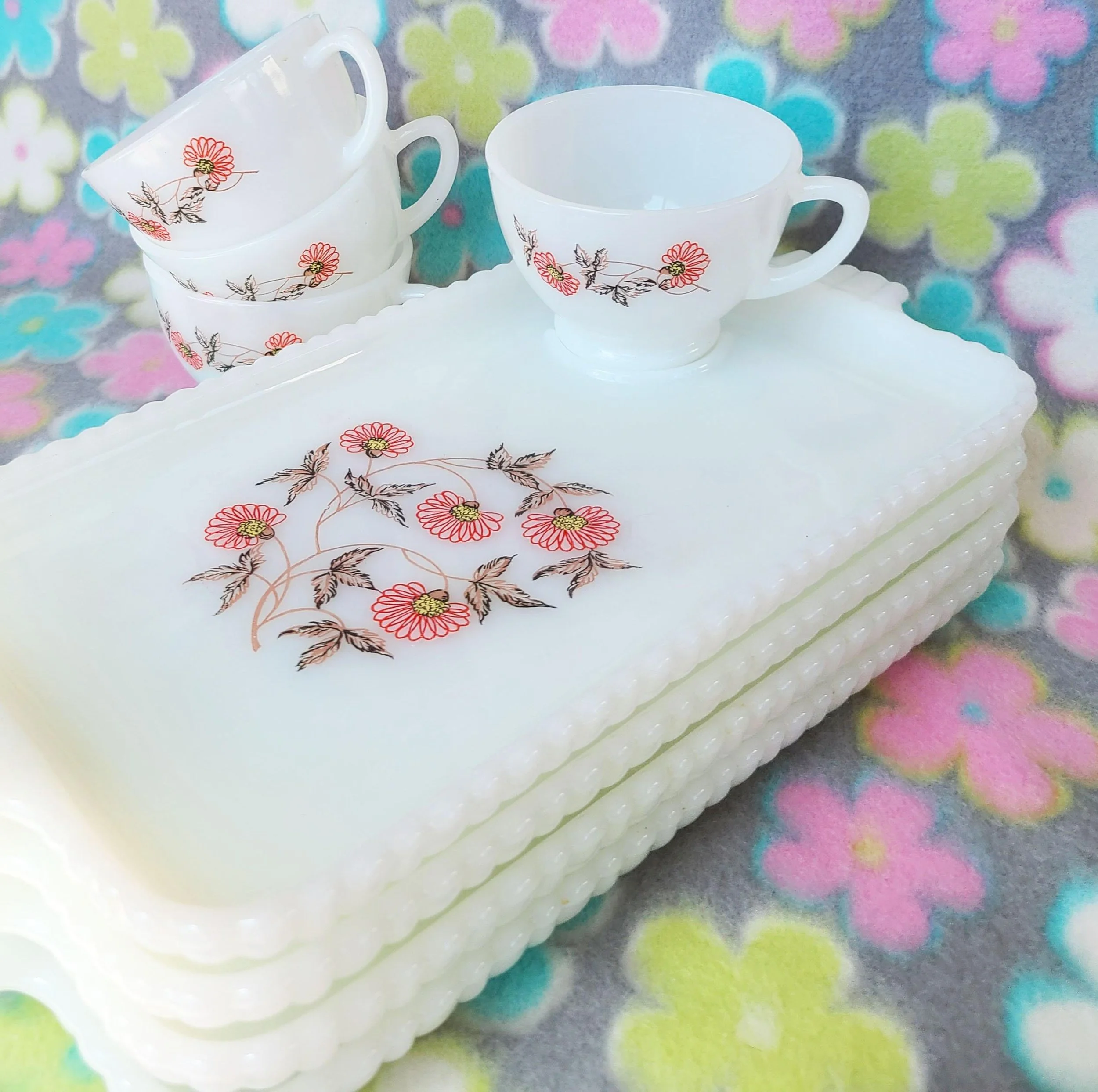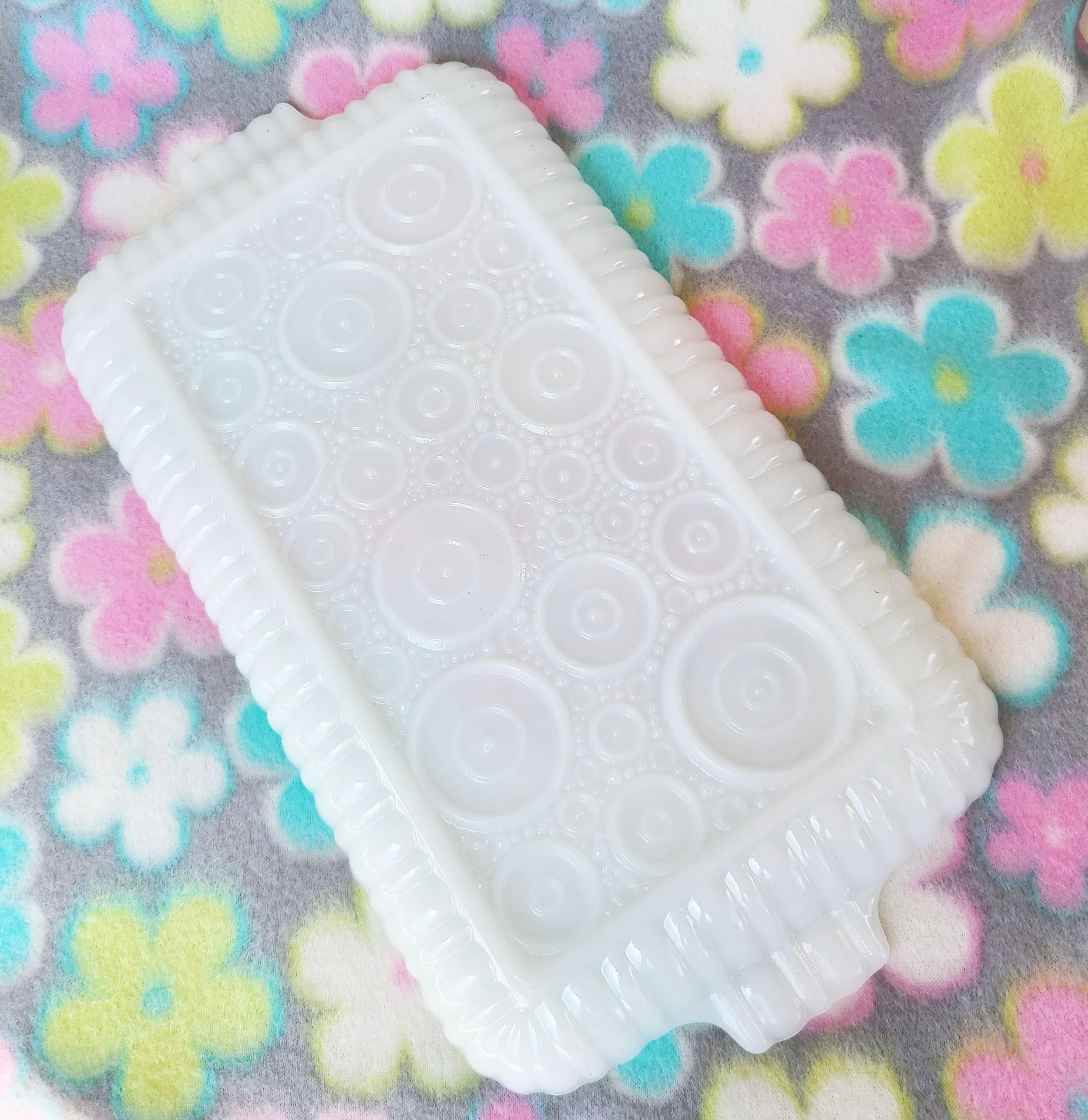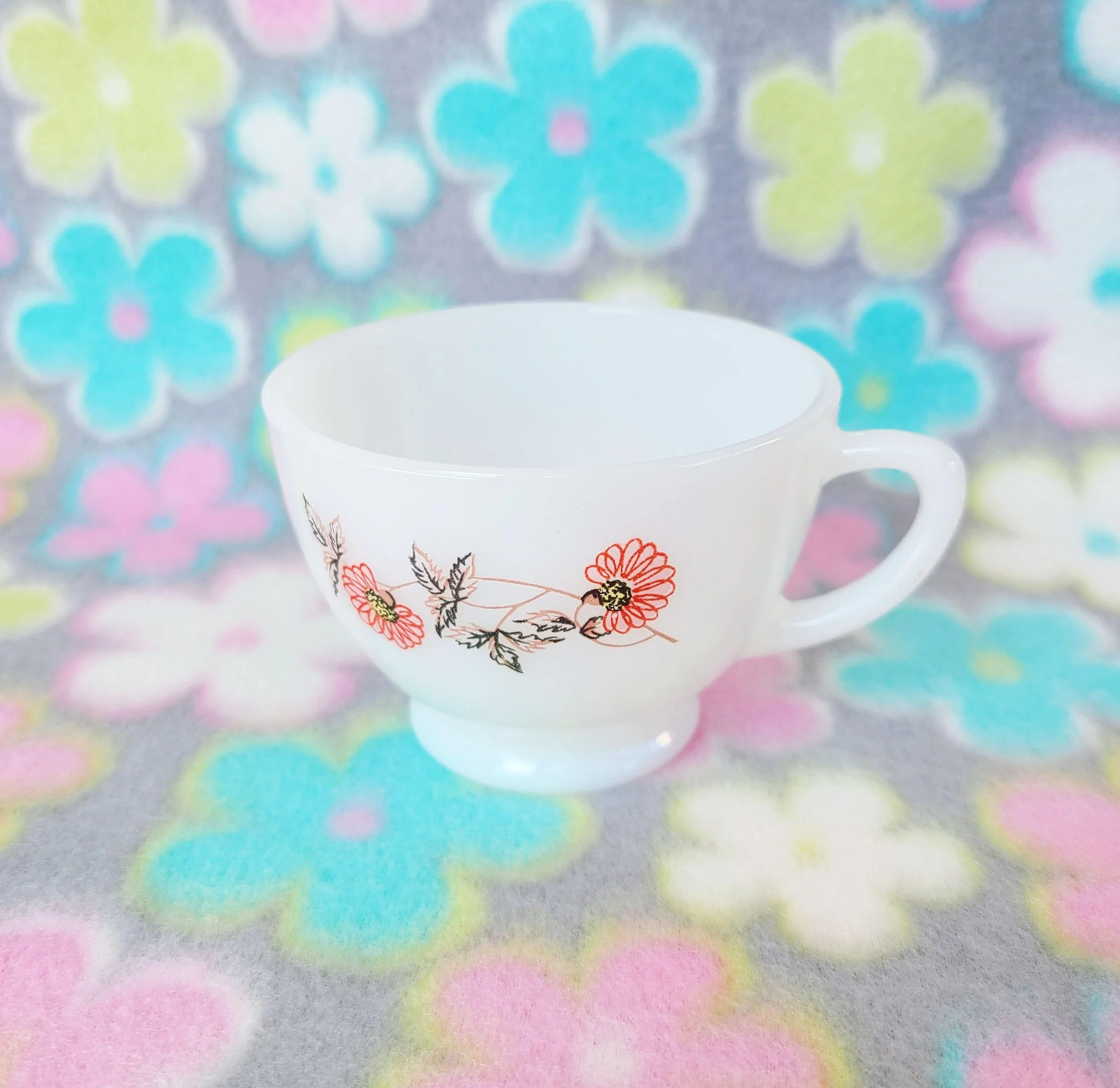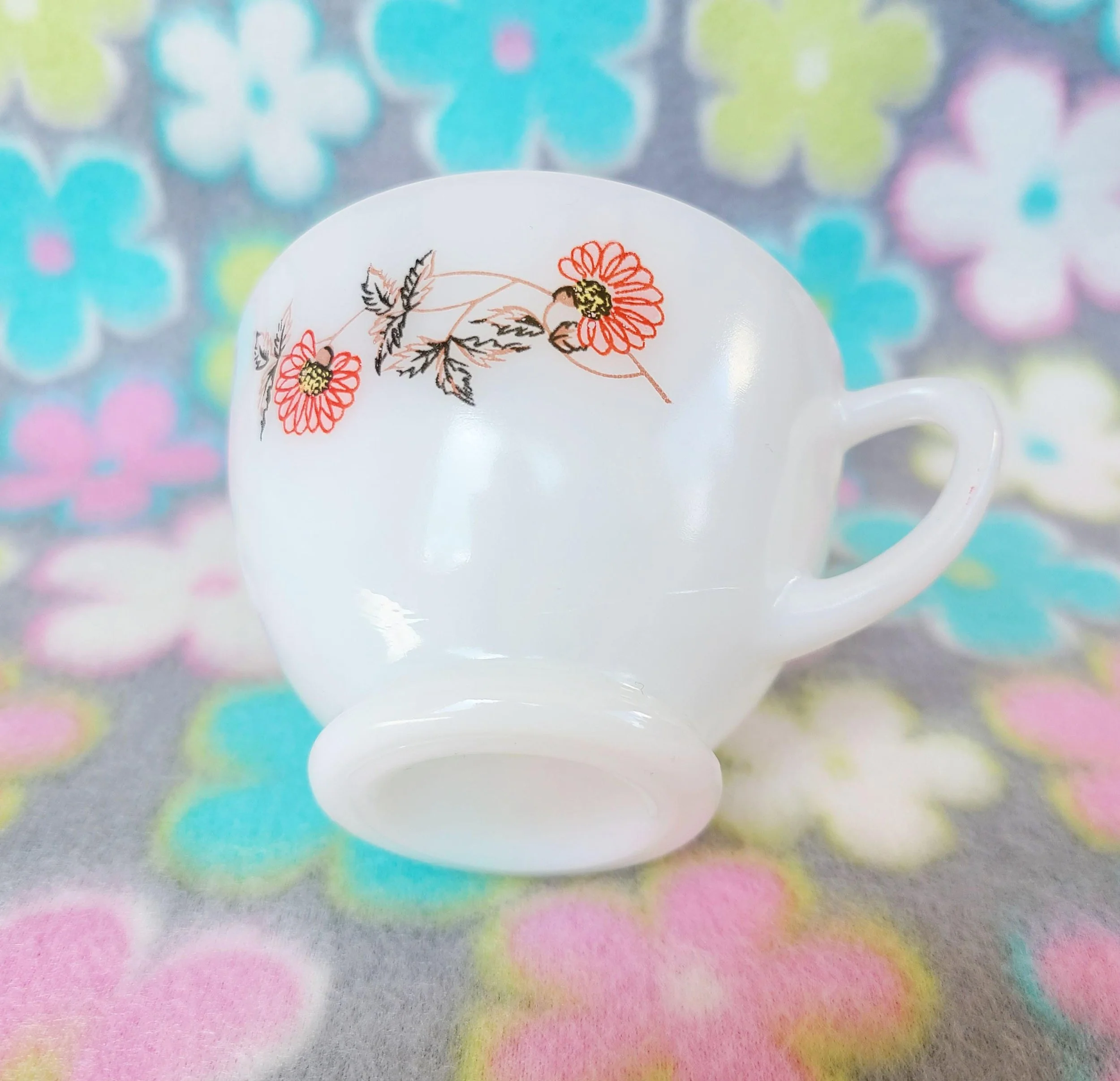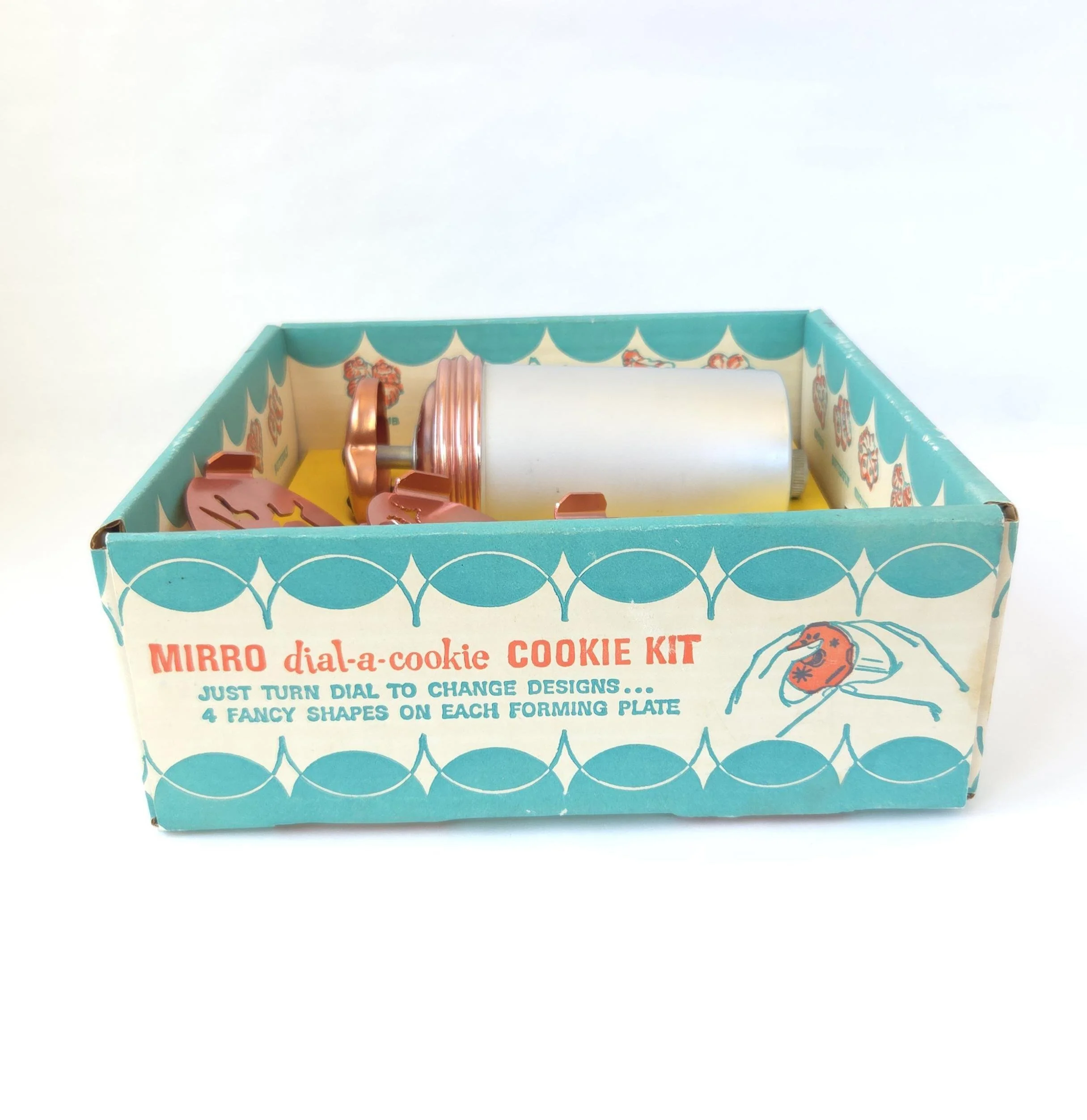 This charming vintage tin box features a photograph on the lid that features flowers in glass apothecary jars. The box is in good used condition, with a spot of paint of the top, along with some very light scratches, but excellent overall color quality.