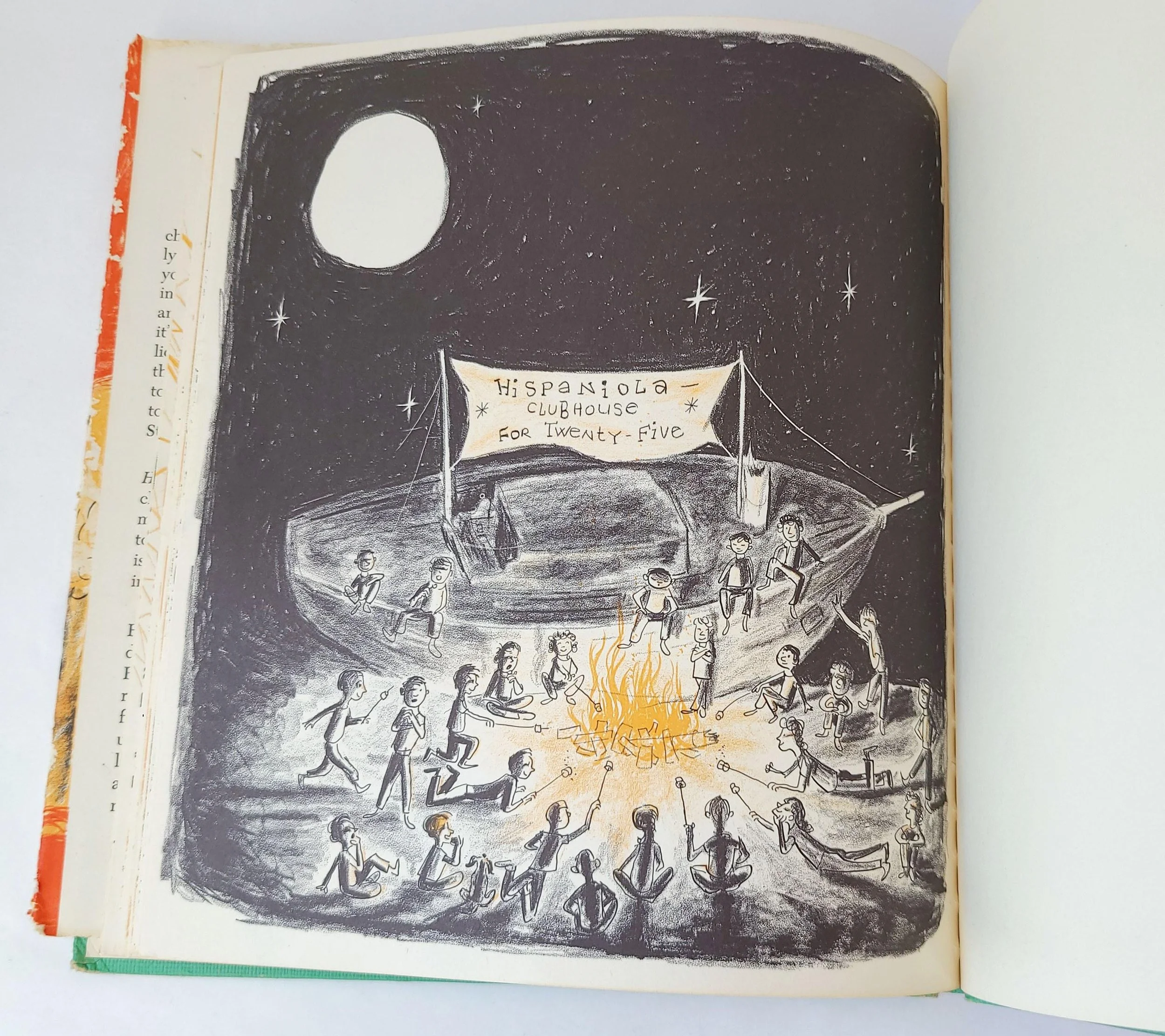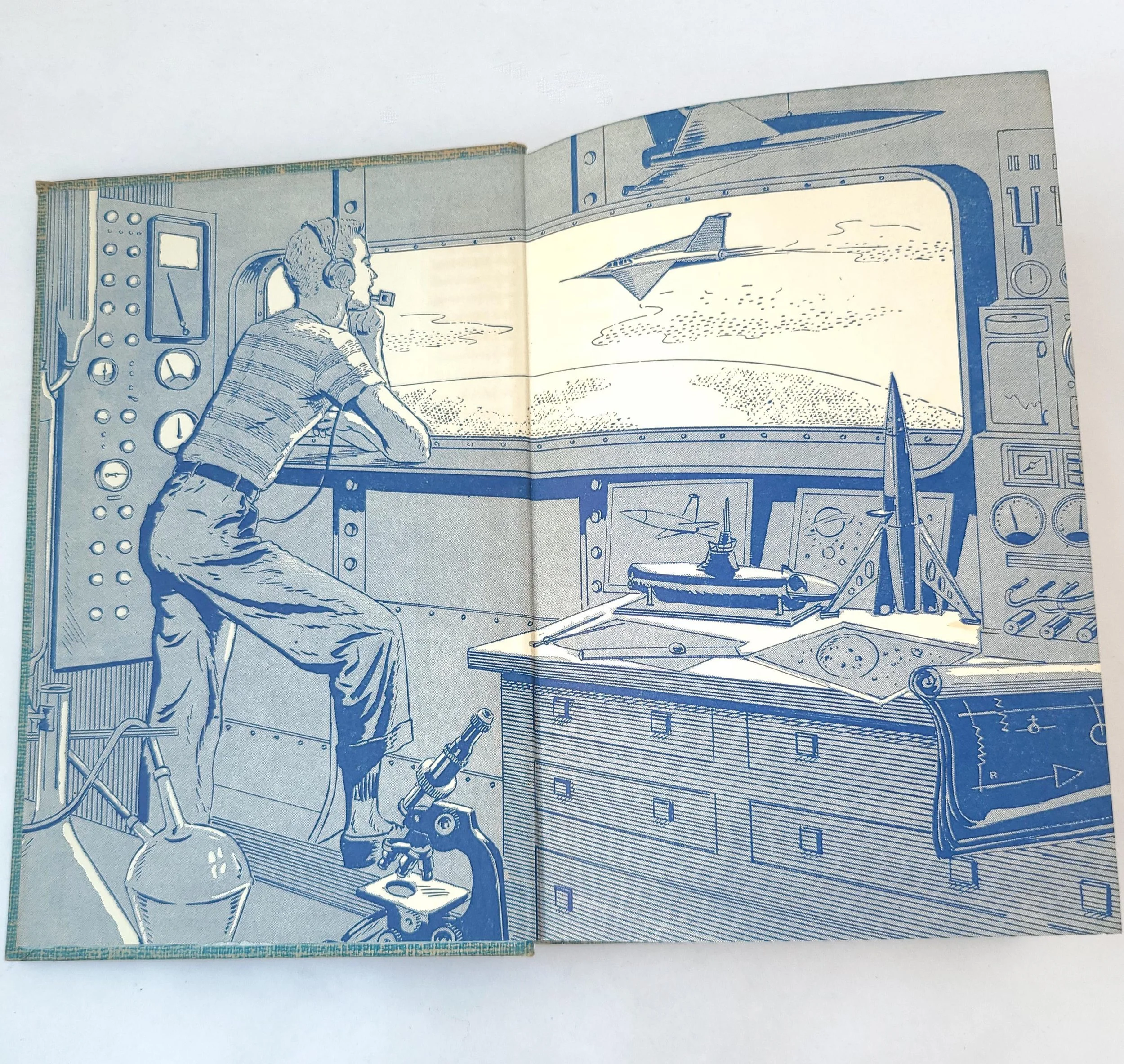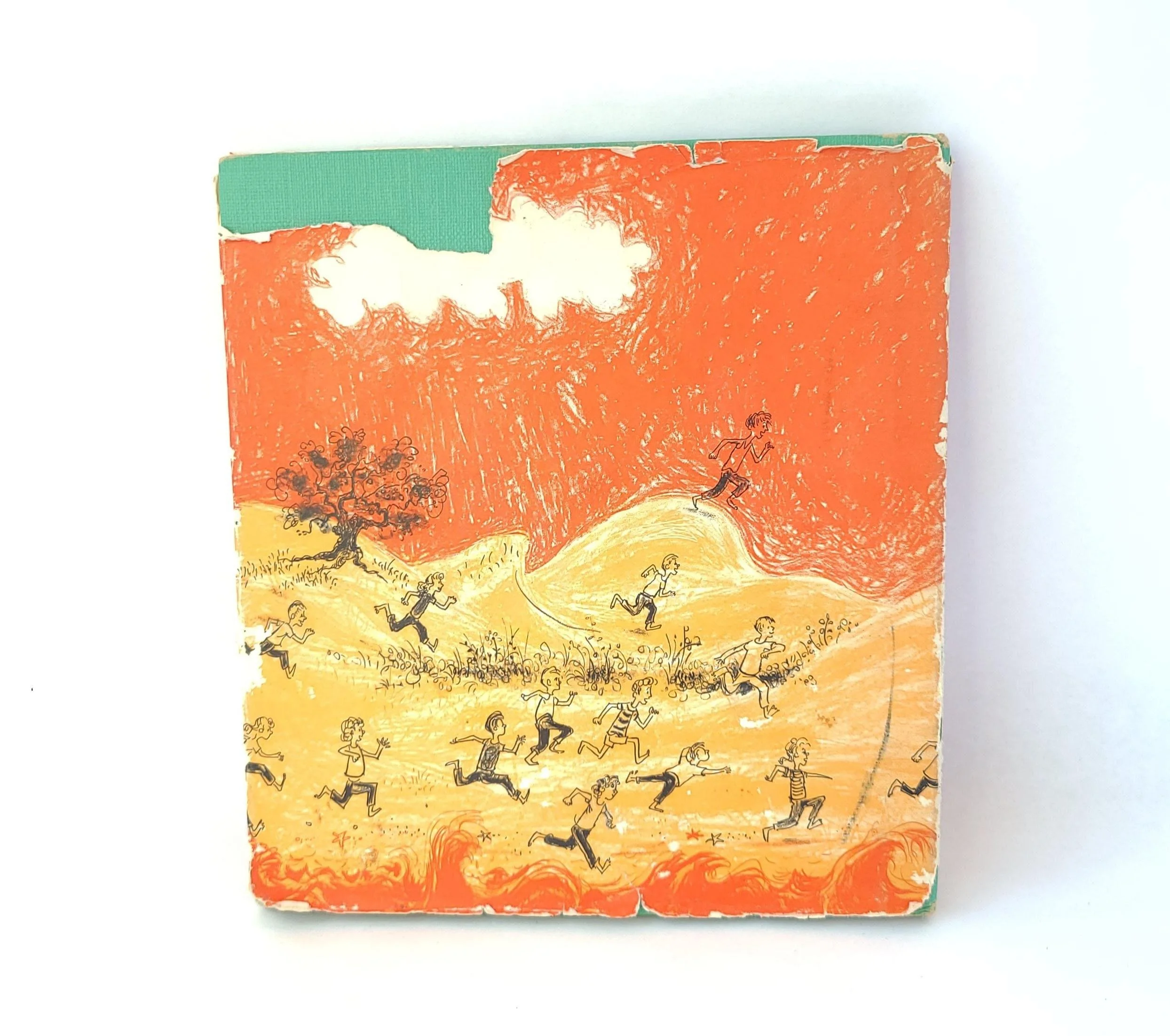 The book is in used vintage condition with the dust jacket missing and some spots of color loss to the cloth cover, along with wear and bumps to the corners. The original owner's name is written on the front end pages, and there are a few small spots of discoloration to the outer edge of the pages, but there are no torn or marked inner pages and good overall color quality.